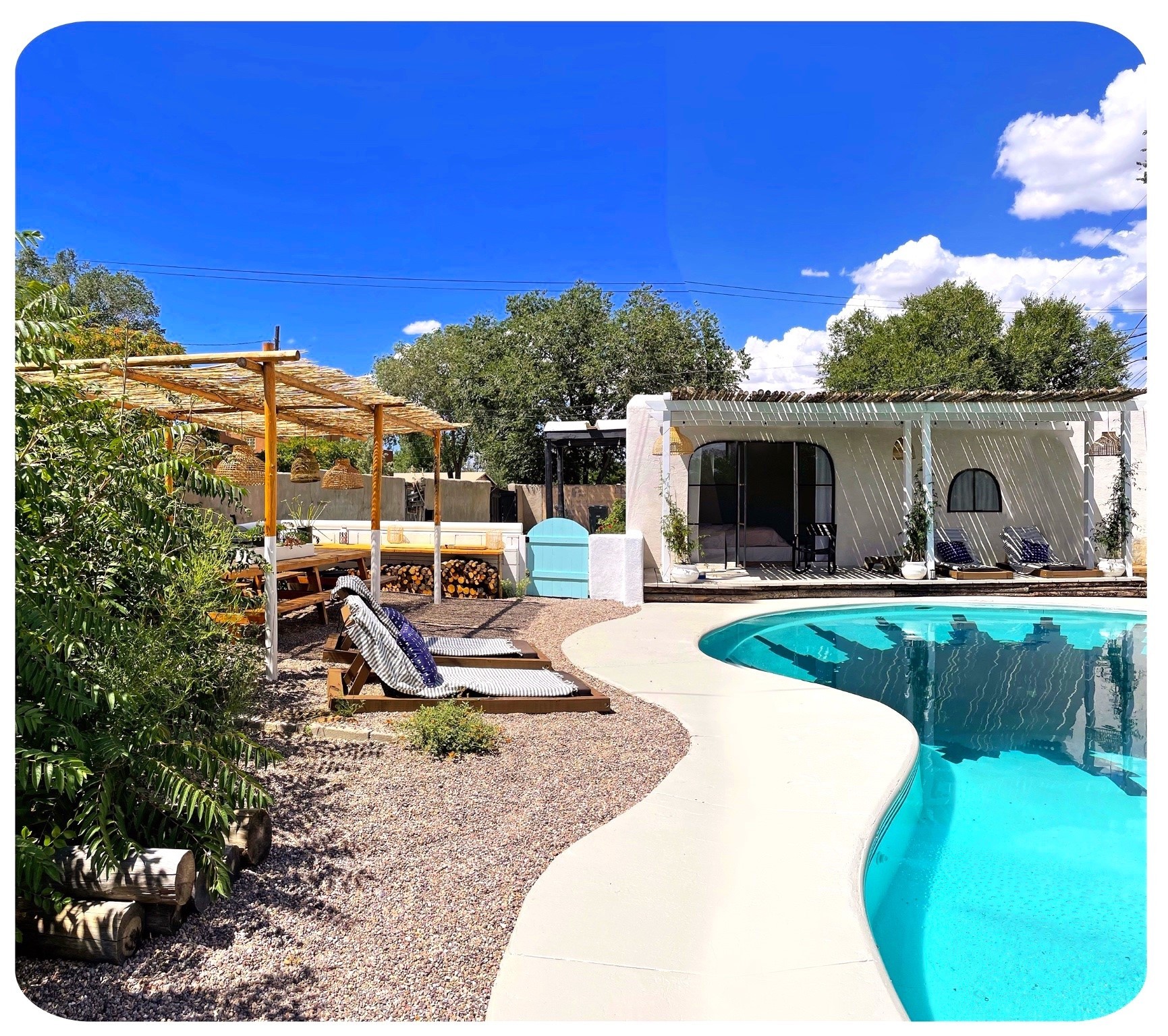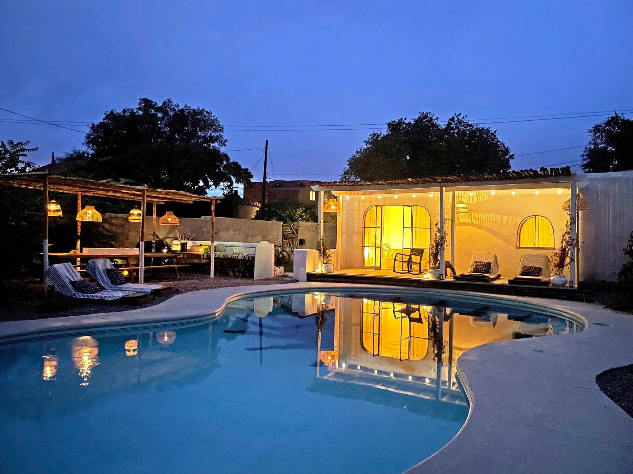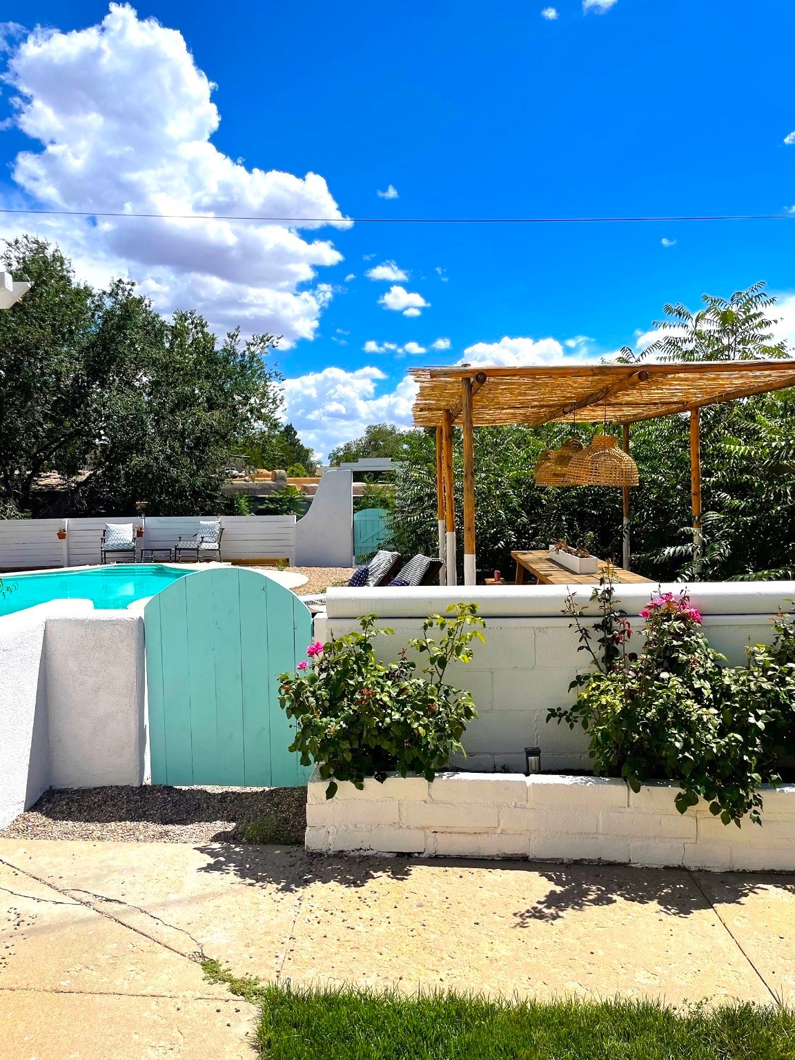 An incredibly fashionable 3 Bedroom remodel with a swimming pool in Santa Fe! You are not going to want to miss this perfectly remodeled property with incredible style. A new roof with four years remaining warranty, interior plaster replaced, exposed Vigas stripped and stained, exterior stucco repaired and painted, all floors replaced, full kitchen remodel with Samsung smart appliances, custom windows and doors, sewer line to street replaced, all new pool equipment with a saltwater system, pool deck and gazebo added, grass and landscape added. Make sure you check out the 3D Virtual Tour and take a walk through this beautiful oasis. And click on the video link for a drone flyover of the house. Furniture package available.