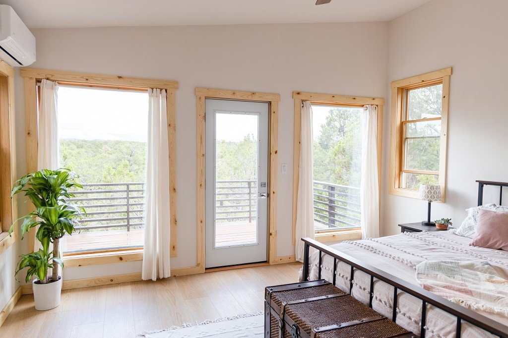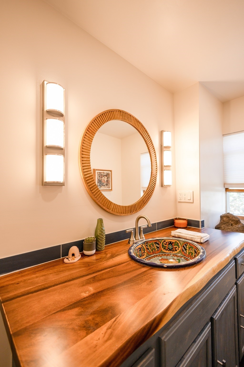 Beautifully remodeled hilltop oasis! Enjoy your personal getaway nestled in 6.4 acres of pristine land in the foothills of the Sangre de Cristo mountains. This elegantly and completely remodeled home integrates seamlessly into the natural landscape of mature junipers, ponderosas and pinons. Over 800 square feet of deck space, large windows on every wall, vaulted timber ceilings and custom woodworking throughout, make for true sleek southwestern and zen style home. With an updated kitchen and bathrooms, 200 amp electrical system, brand new mini splits heating/cooling system, new wood stove, radiant heated bathroom floors, luxury vinyl plank, new on-demand water heater, fresh stucco and high-end finishes, this overhauled renovation spared no expense. A mere 15 minutes from the historic Santa Fe plaza, in the desirable Apache Ridge neighborhood, there is no HOA and plenty of room to continue growing this gorgeous property. Owner is NMREL