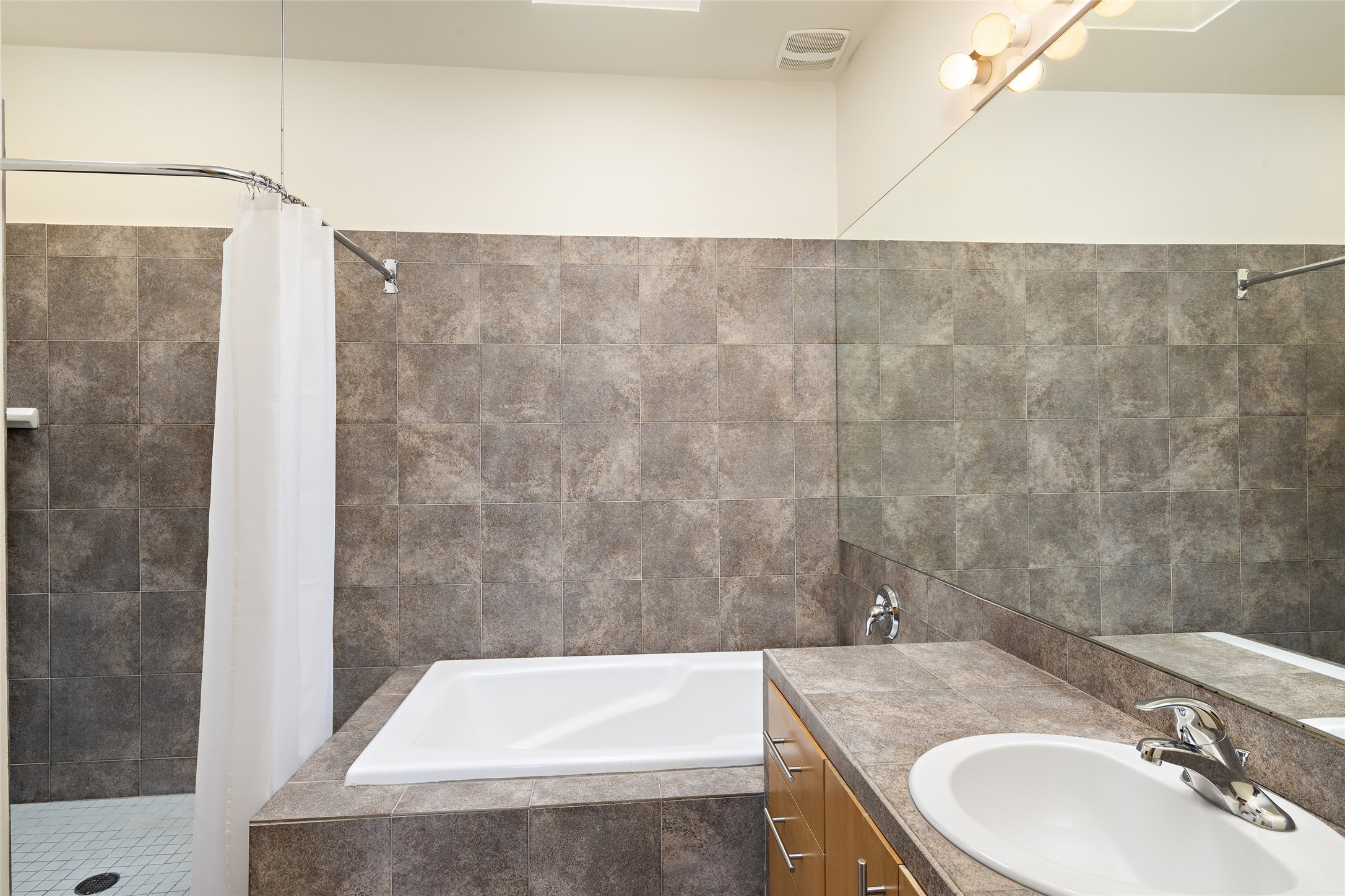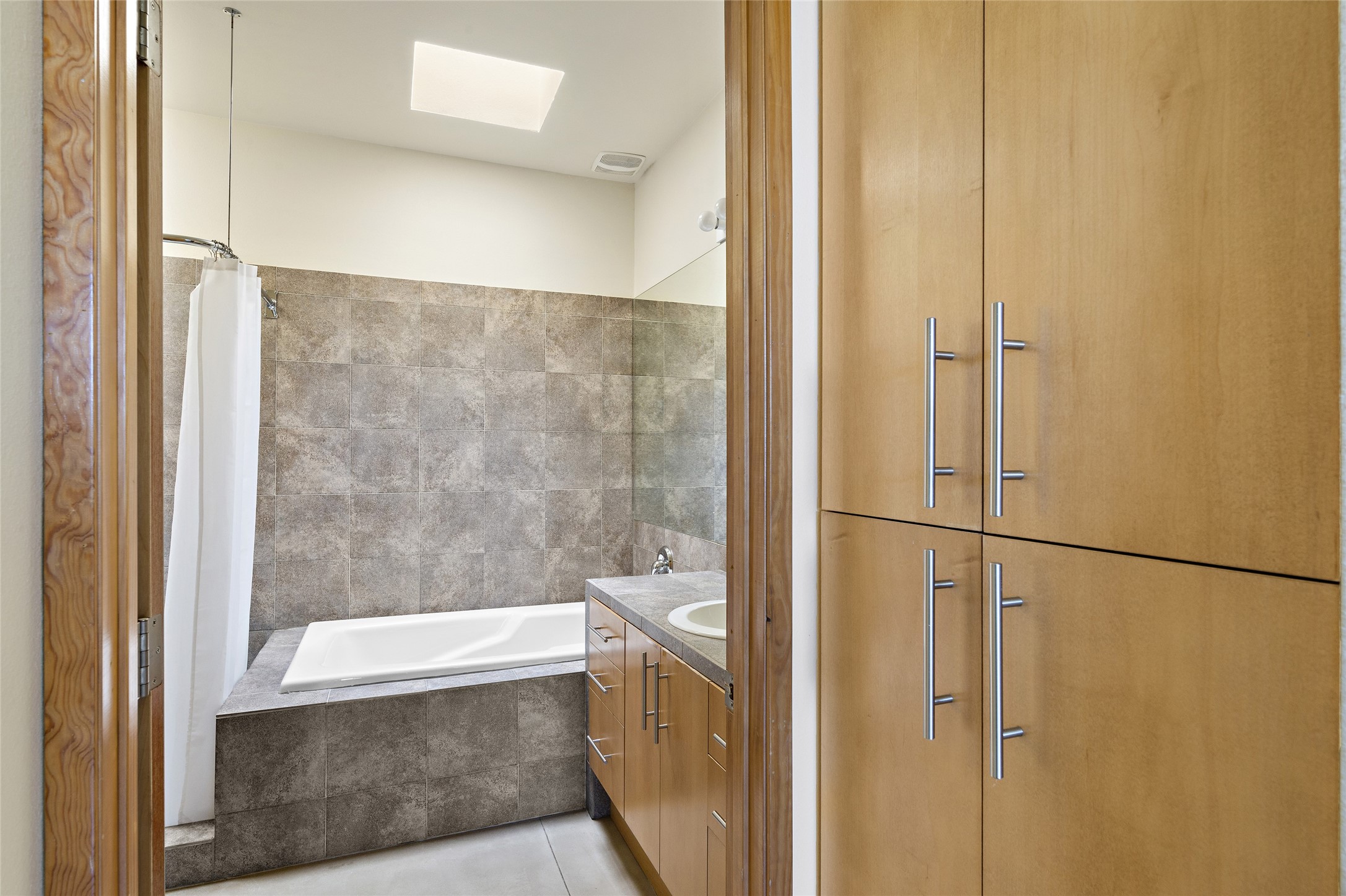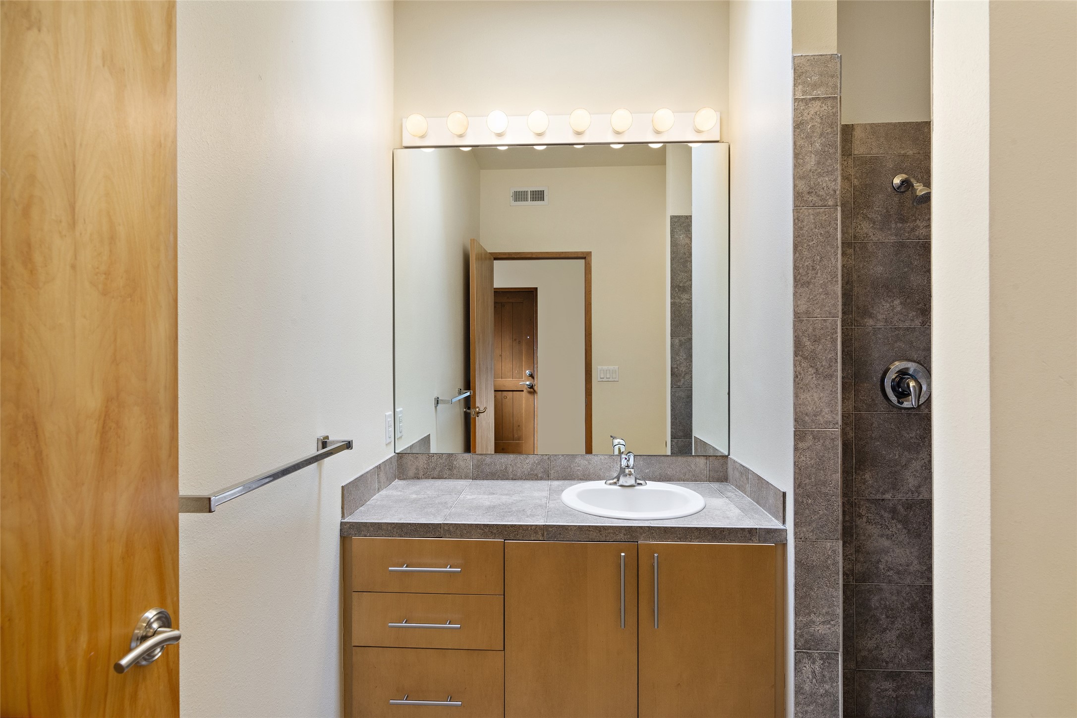 This light and bright two bedroom and 1-3/4 bathroom Zocalo condo is ideally located in Santa Fe's Northside with easy access to the 599 Bypass Highway and just minutes to downtown. Open and modern, the space has high ceilings in the large living area with a wooded view deck via sliding glass doors. A gas burning fireplace flanks the living area adding a warm detail to the space. The primary bedroom ensuite is separated from the secondary bedroom, boasting lots of storage, a walk-in closet, and a large spa-like bathroom with a large soaking tub and tiled shower. The secondary bedroom has its own private view deck from a sliding glass door. The kitchen opens up on to the living/dining area with a laundry area tucked away in a closet with a full size stackable washer and dryer. Ideal as a full time, second home or lucrative rental, the condo comes with an oversized, detached one-car garage and an additional designated parking space. The condo has forced air heating and central refrigerated A/C. Amenities include a fitness center, swimming pool, conference room, clubhouse kitchen, all maintained by the HOA close to shopping and great walking/bike trails.