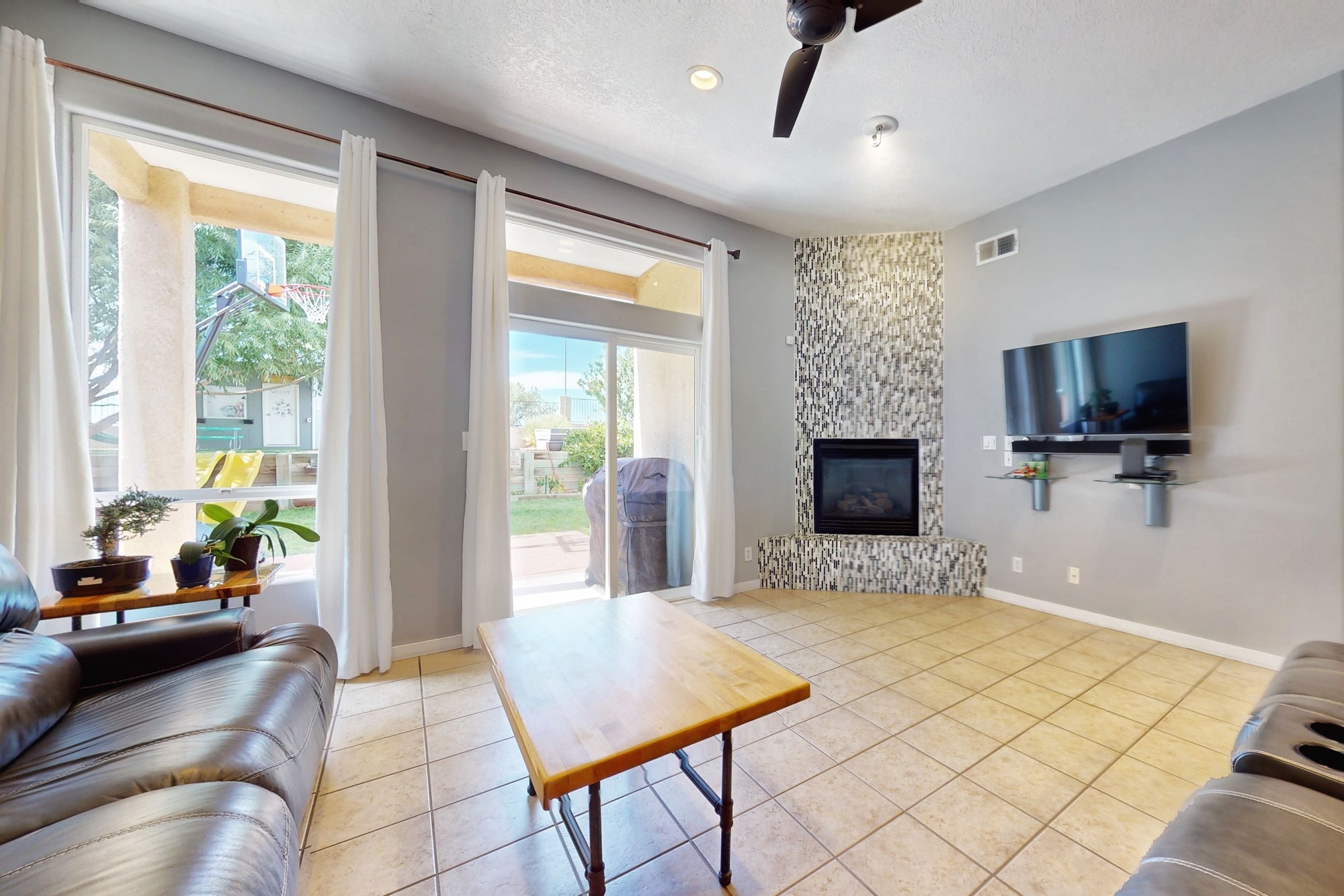 Don't Miss Out on this Exceptional Golf Course Home! Spacious and open, this 3-bedroom, 2-bathroom home offers the perfect blend of comfort and style. Enjoy an upgraded kitchen and bathrooms with granite countertops and custom tile work. Ceiling fans in all rooms along with added recessed lighting offer the custom touch you are looking for. The open-concept design connects the living space with the kitchen and dining area, perfect for entertaining friends and family. Tiled floors throughout the main living areas and kitchen, accentuated by a cozy fireplace. Natural light floods the space, creating a warm and inviting ambiance. The eat-in kitchen boasts a good-sized pantry for all your storage needs. Outdoor living has been thoughtfully designed and expands the living space of the home to enjoy it to its fullest! Fully landscaped with mature trees and a drip system. Completing the package is a finished and heated 2-car garage, keeping your vehicles safe and providing extra storage space. Nothing is needed here but a proud new owner.