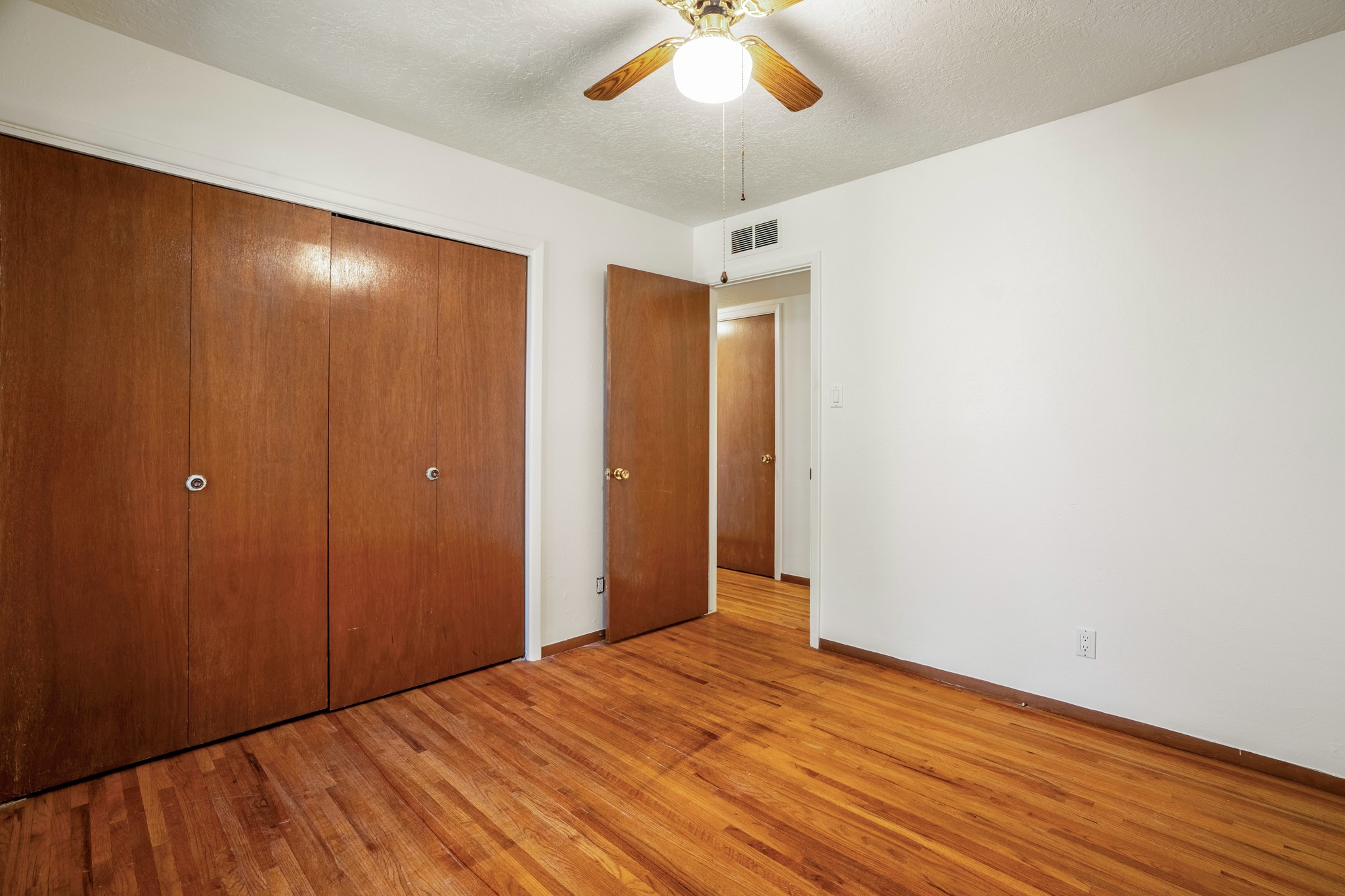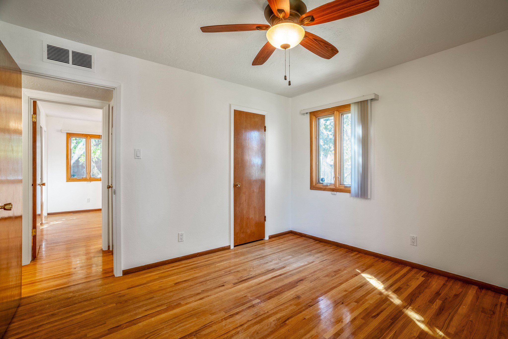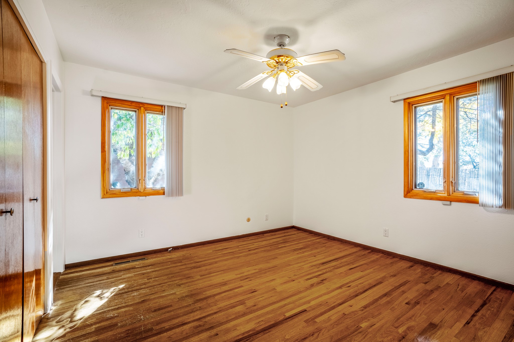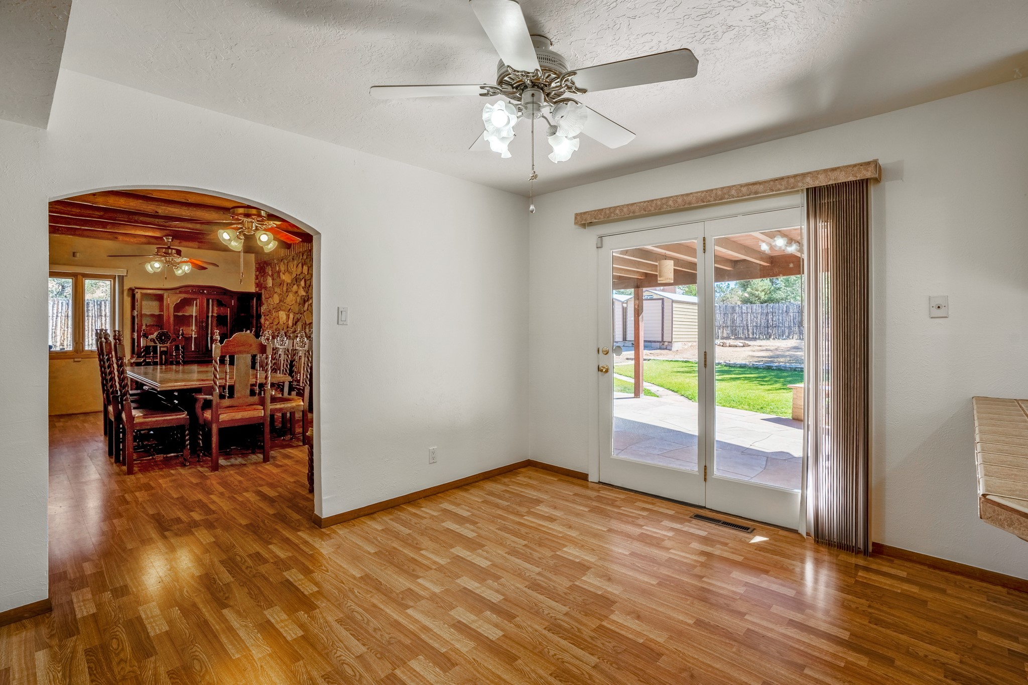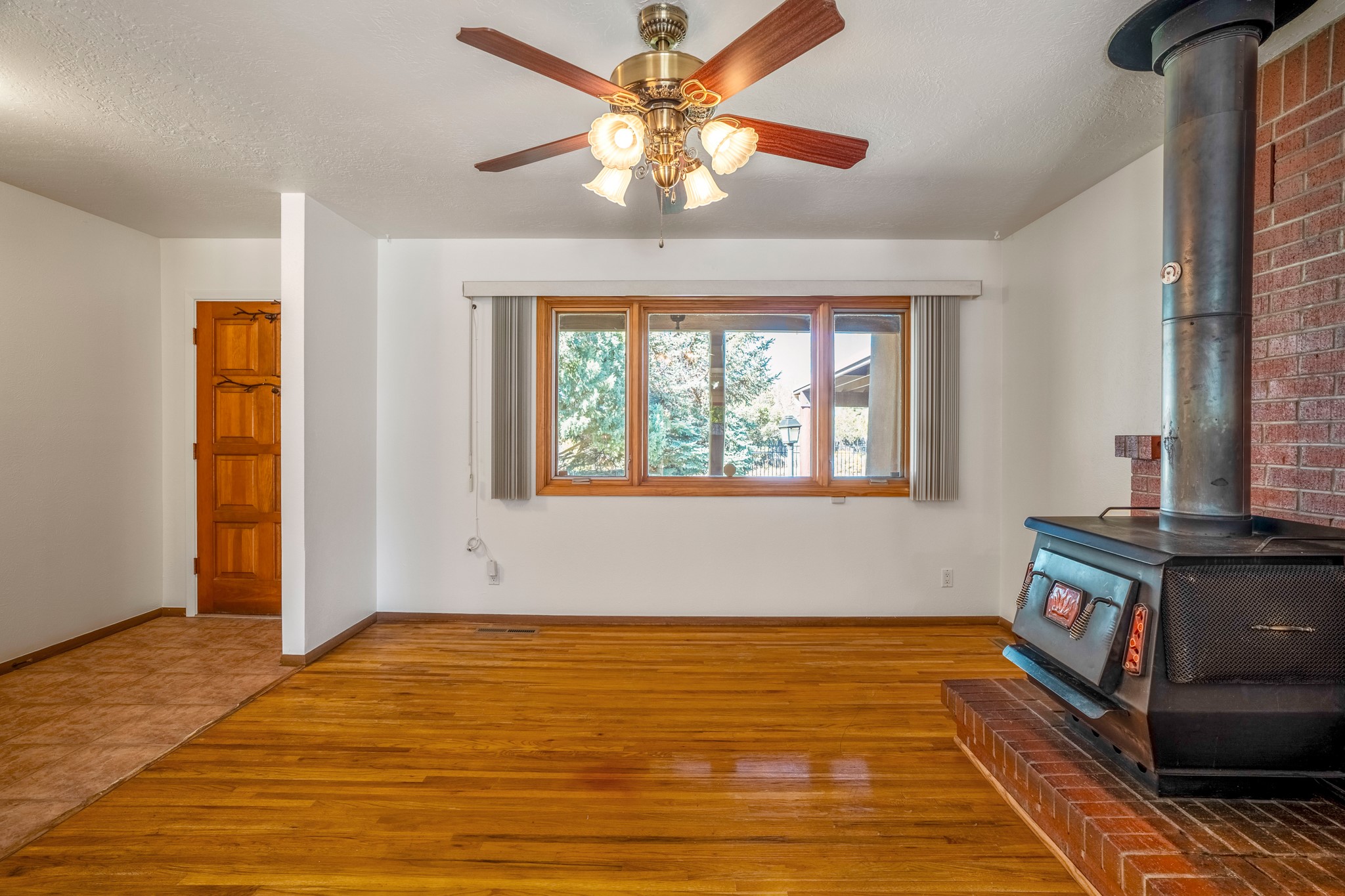 This is a home to get excited about. It is a Mid-century modern on a 1/2 acre lot located in one of the most desirable areas of town. Noted for its easy access to the hospital, I-25, Smiths grocery store and Harry Roadhouse and El Gancho, and only 12 minutes to downtown.Lovingly enjoyed and taken care of by the family over the years.This home features 3 beds, 2 baths, living room and family room with wood stoves and a private dining room with a wood burning fireplace. The bedrooms and living room have beautiful oak wood floors. Outside the kitchen is a covered portal with another fireplace for entertaining your guest all year round. This area leads to the back yard where you can enjoy the sound of water from the recirculating rock fountain. Both kids and adults and animals will delight playing in this huge completely fenced yard with green grass that is watered with the private well. Here you will find 2 large storage sheds to store your gear. Further charm of this property is mature pine trees that create shade and a story book yard that provides an oasis from the busy world. There is also an electronic gate for privacy and safety. There is no need to worry about parking either. Not only is there a carport but there is also ample parking in front and on the sides of the house. Bring your RV's and boats with no worries about restrictive covenants other than those imposed by the city. There is no HOA and no dues. On city, gas, electric and sewer. The roof is approximately 5 years old and is still under warranty with "Fix my Roof". Furnace is 2 years old. Most of the windows have been replaced with double pain windows. This well located mid-century home is waiting for your creative touches to give it a fresh contemporary look.