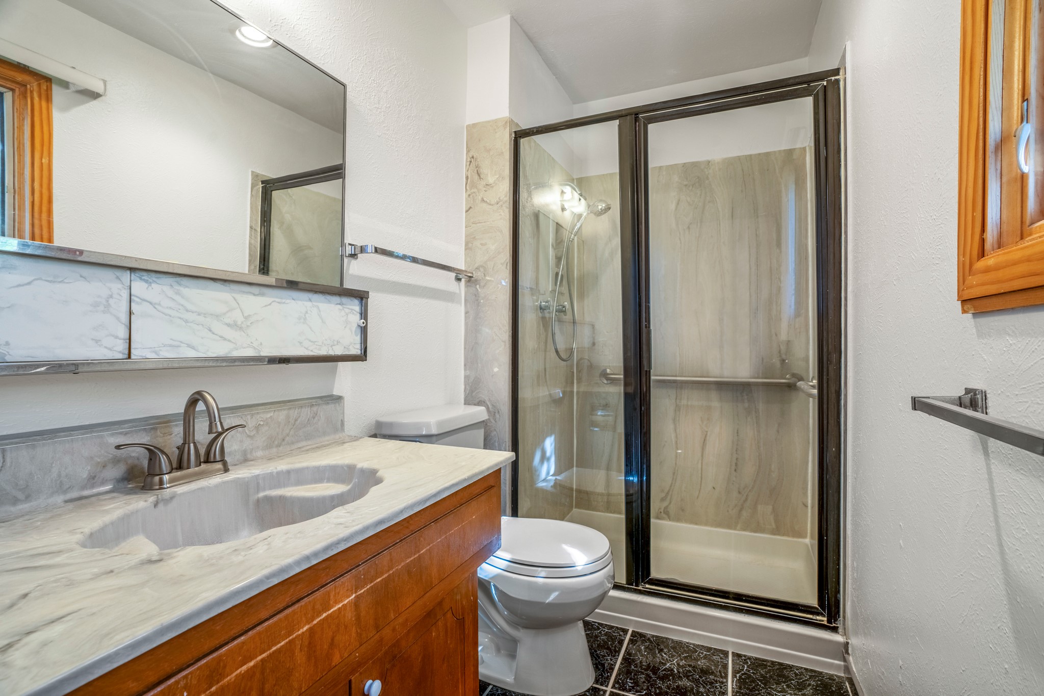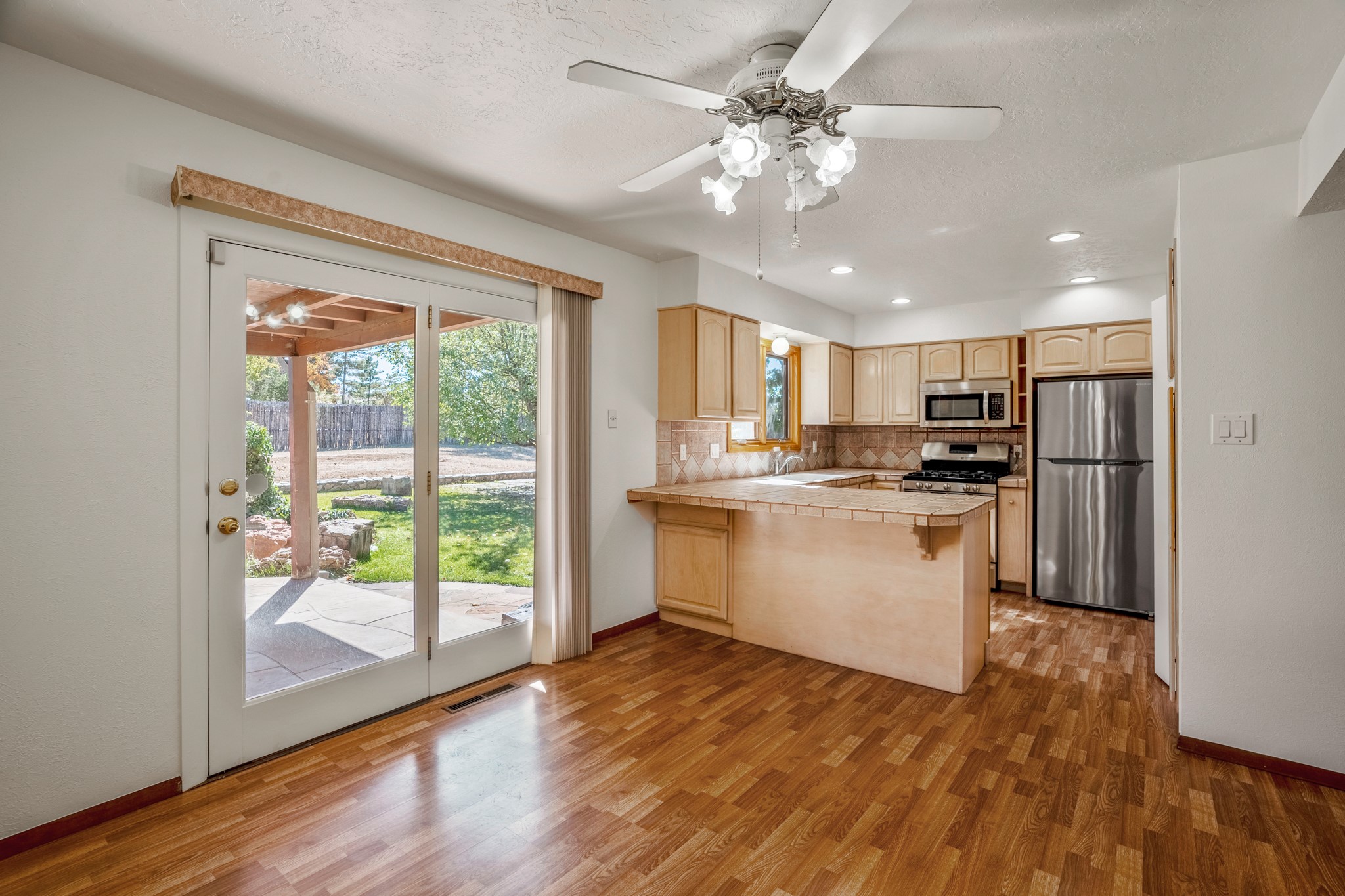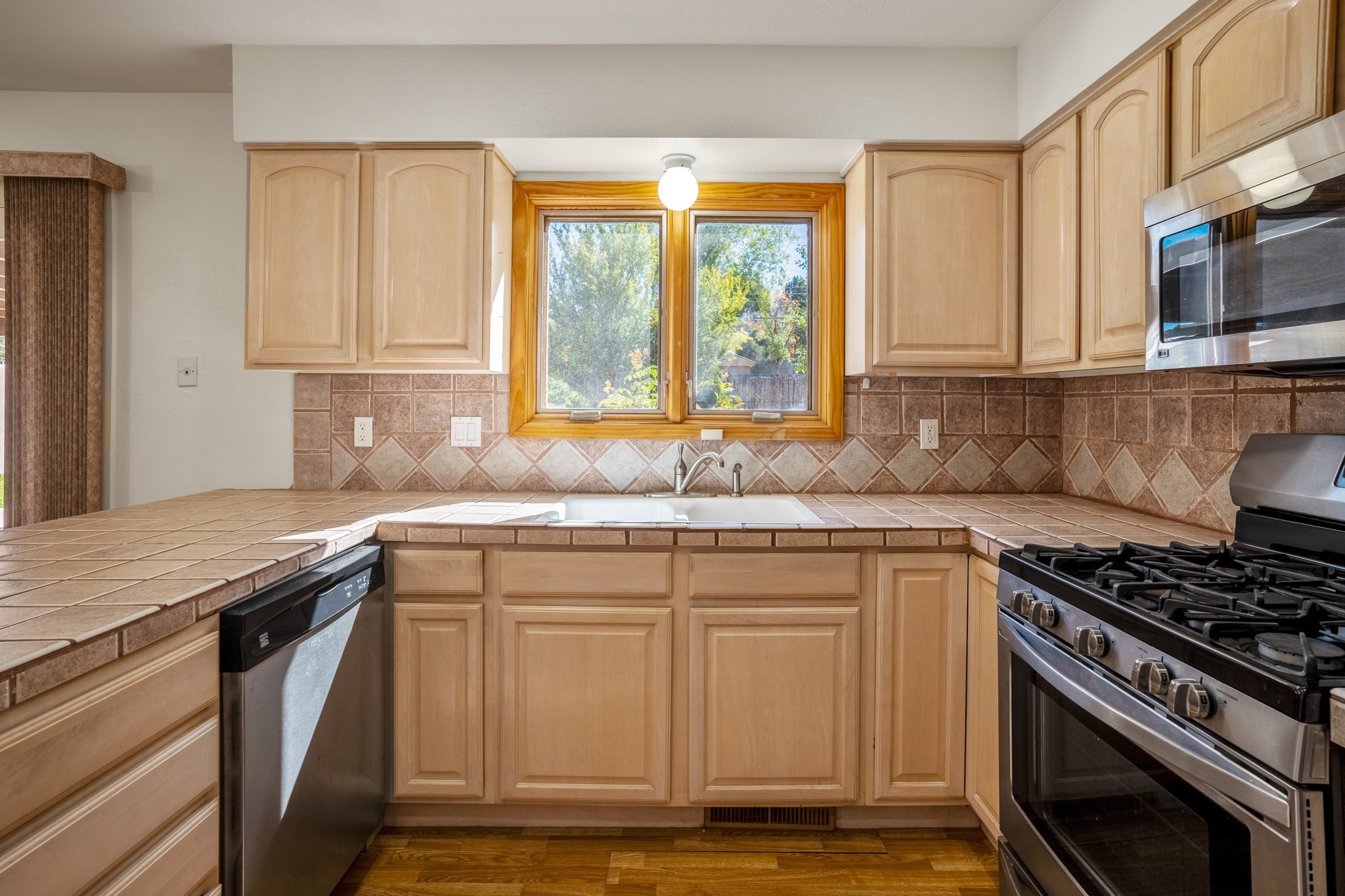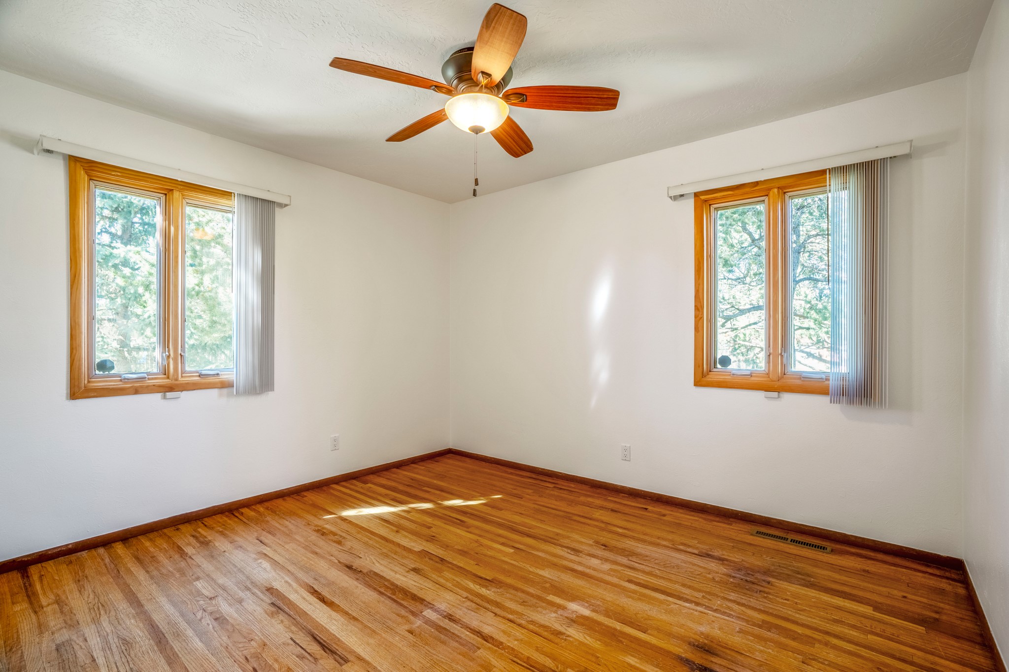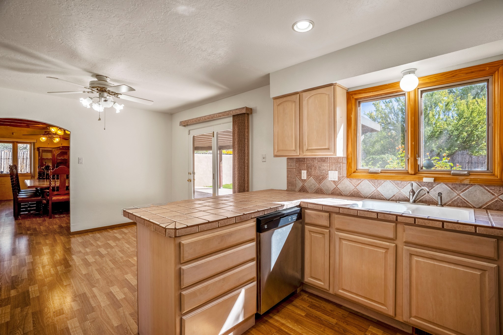 This is a home to get excited about. It is a Mid-century modern on a 1/2 acre lot located in one of the most desirable areas of town. Noted for its easy access to the hospital, I-25, Smiths grocery store and Harry Roadhouse and El Gancho, and only 12 minutes to downtown.Lovingly enjoyed and taken care of by the family over the years.This home features 3 beds, 2 baths, living room and family room with wood stoves and a private dining room with a wood burning fireplace. The bedrooms and living room have beautiful oak wood floors. Outside the kitchen is a covered portal with another fireplace for entertaining your guest all year round. This area leads to the back yard where you can enjoy the sound of water from the recirculating rock fountain. Both kids and adults and animals will delight playing in this huge completely fenced yard with green grass that is watered with the private well. Here you will find 2 large storage sheds to store your gear. Further charm of this property is mature pine trees that create shade and a story book yard that provides an oasis from the busy world. There is also an electronic gate for privacy and safety. There is no need to worry about parking either. Not only is there a carport but there is also ample parking in front and on the sides of the house. Bring your RV's and boats with no worries about restrictive covenants other than those imposed by the city. There is no HOA and no dues. On city, gas, electric and sewer. The roof is approximately 5 years old and is still under warranty with "Fix my Roof". Furnace is 2 years old. Most of the windows have been replaced with double pain windows. This well located mid-century home is waiting for your creative touches to give it a fresh contemporary look.