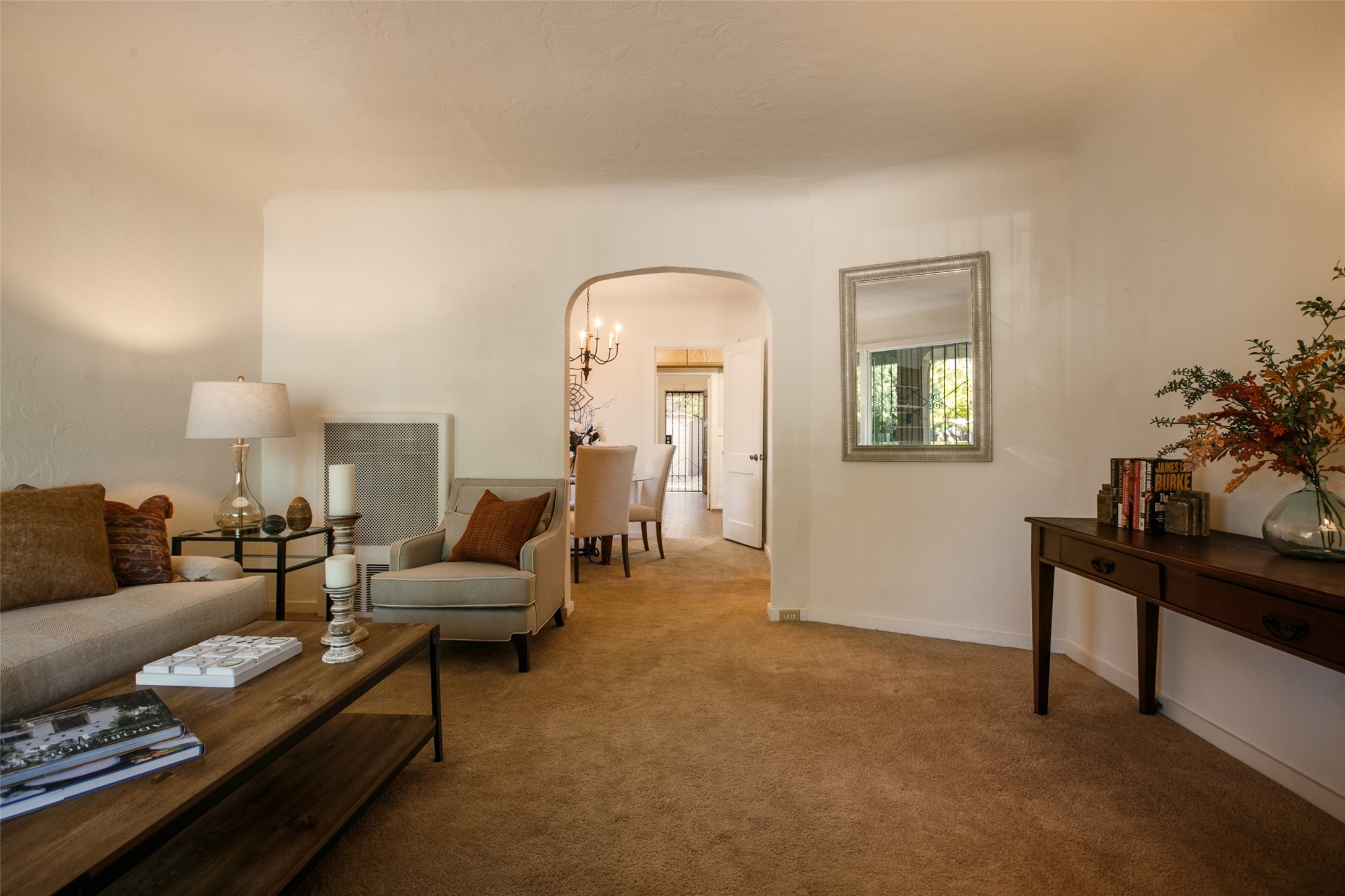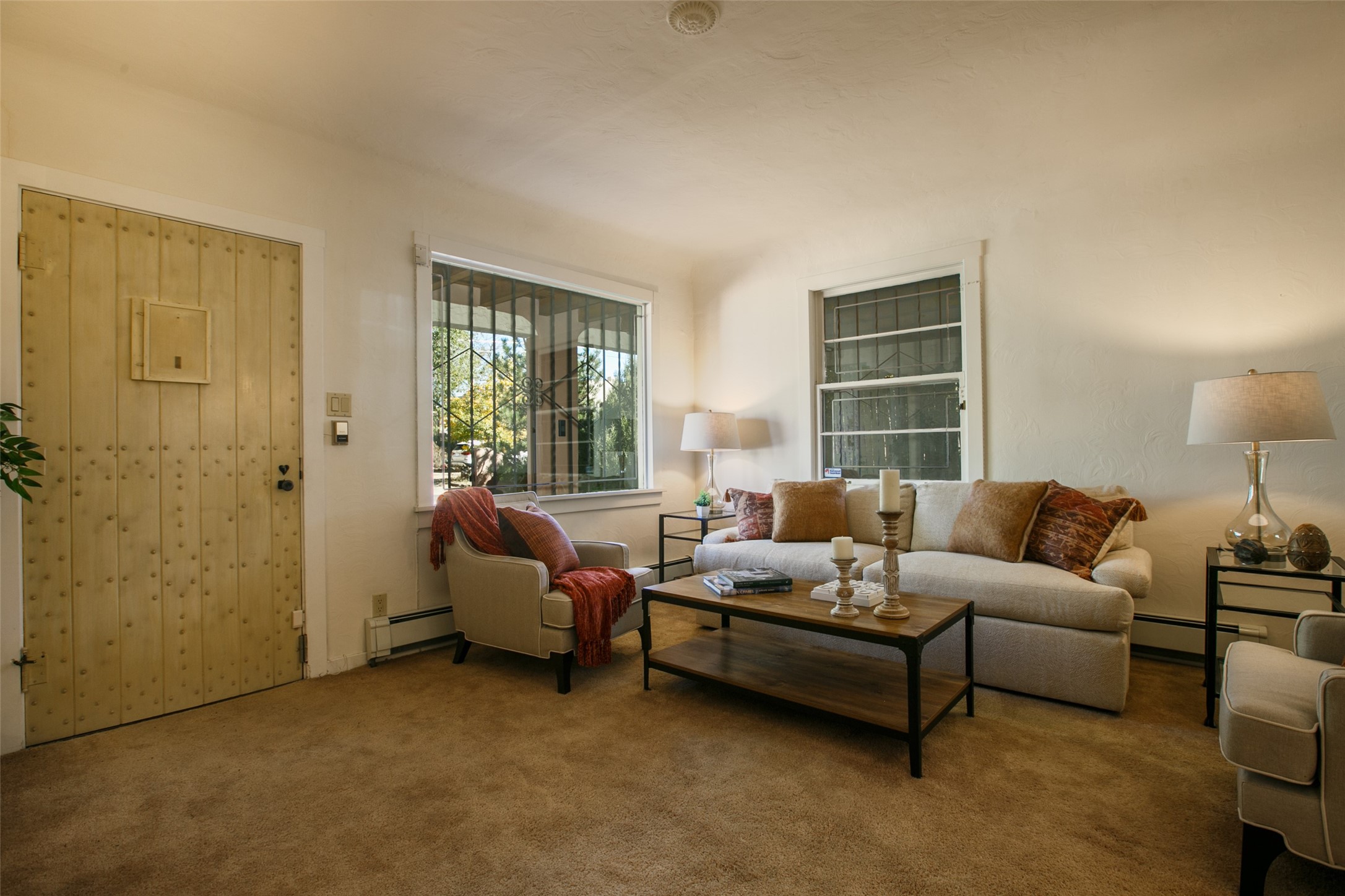 Classic, South Capitol home built pre WW II with mid 1900's flair. Gated entry, brick lined driveway, Porte Cochere, and a beautiful, spacious gazebo surrounded by mature trees are highlights. Three bedrooms, 1 full and 1 half baths, large windows, exceptional closet space (most are cedar lined), and a two car detached garage. It is possible there is hard wood flooring under much of the carpeting. With rounded doorways and private landscaped spaces this property is a hide-away jewel just two blocks from Wood Gormley school. Lovely landscaping, many upgrades over the years, Single Level, hot water baseboard heat. The kitchen is small but very functional with an electric cooktop, two wall ovens, cabinets, and adjacent to laundry room. Oversized windows allow in plenty of natural light.