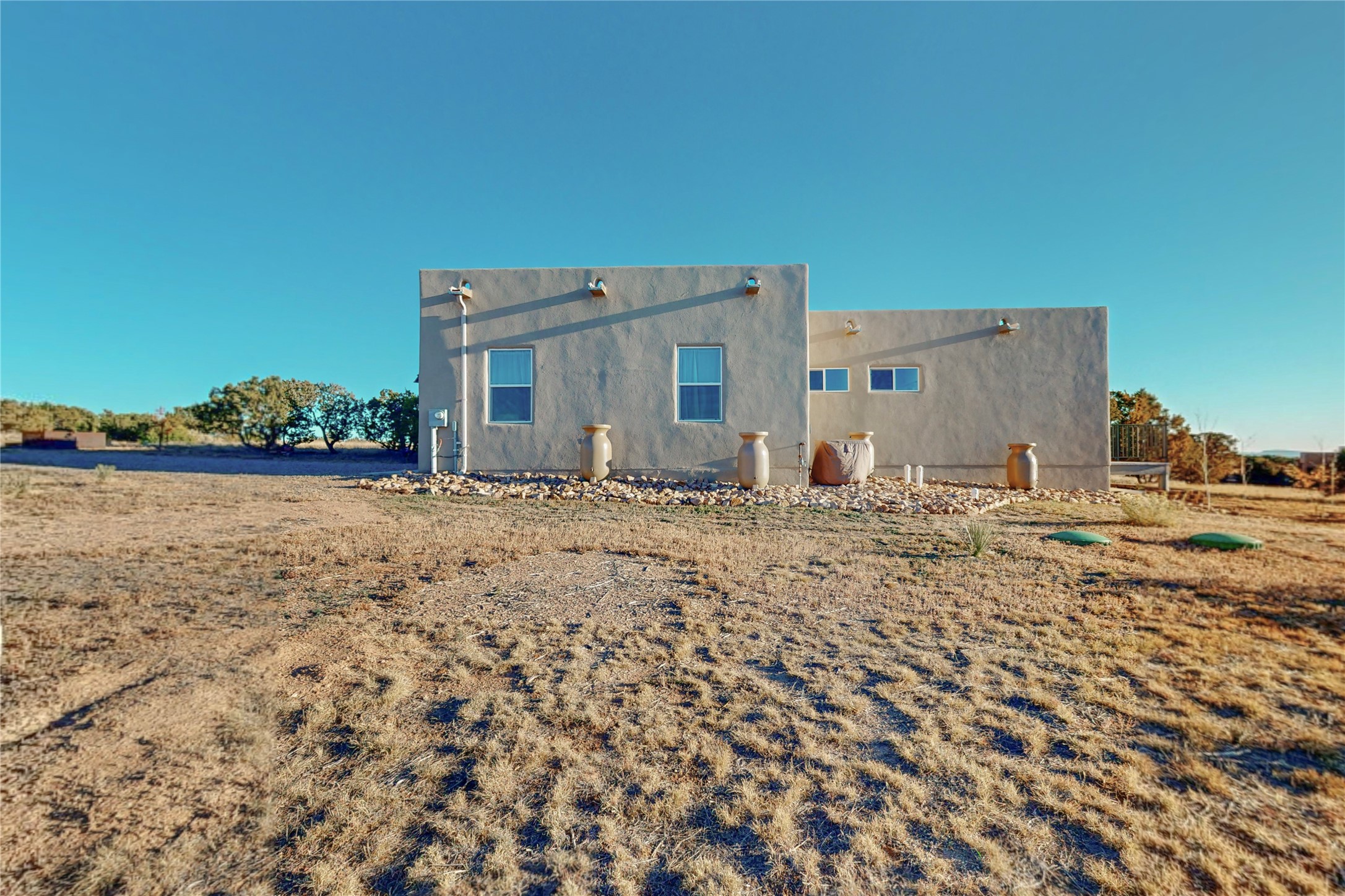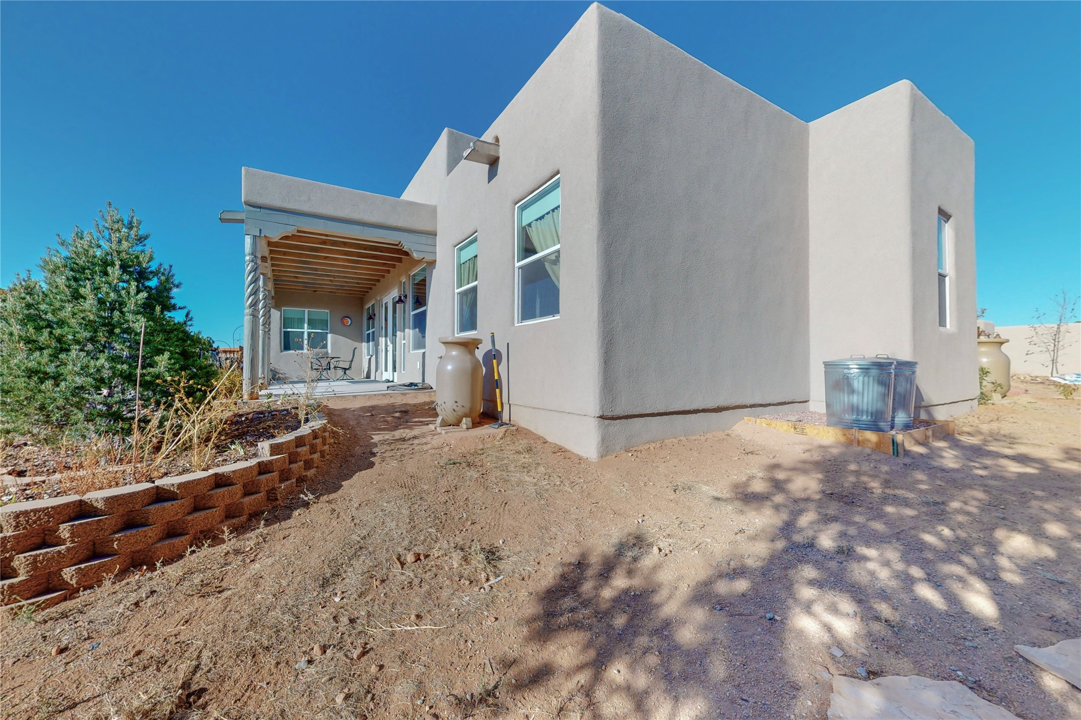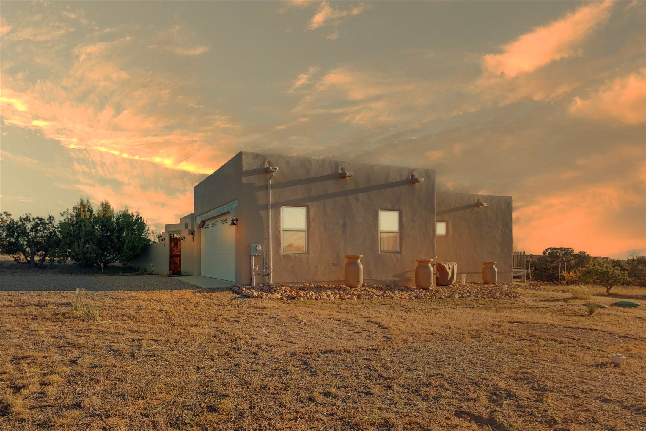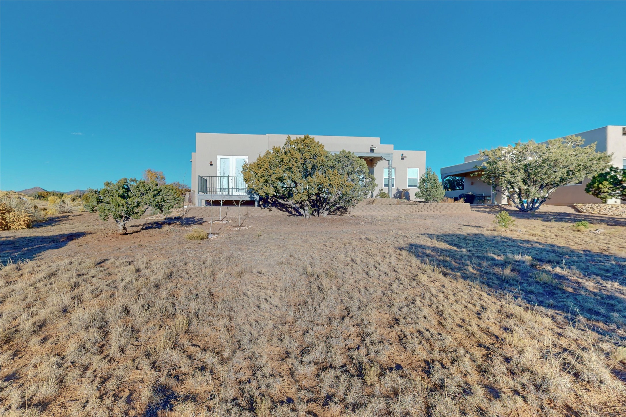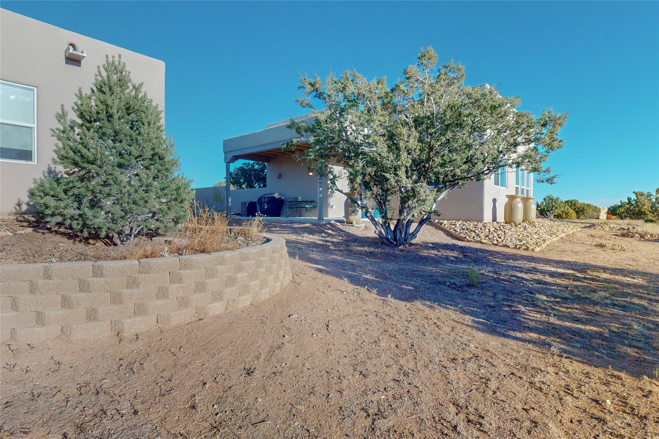Sparkling bright "as new" 3 year old contemporary home on high corner view lot, a custom creation by Wild Sage Homes for the owners. With high ceilings and gleaming engineered wood floors throughout, this home is a perfect example of Pride of Ownership. An open plan, split bedroom design centered on a spacious great room this home was built for energy efficiency with a HERS rating of 70. Lovely long E-glass windows maximize the views and light, natural gas forced air provides efficient heating and cooling, high insulation factors make low utility bills year round. the attached finished 2 car garage includes a dedicated electrical for a freezer. An on demand gas hot water heater with a recirculating pump for instant hot water plus energy efficient upscale appliances. An 800 sqft heated RV garage with two bays and a workshop area plus a greenhouse creates space for all your hobbies and toys. This home accesses Eldorado amenities, local community activities, shopping and services plus only minutes into Santa Fe. A must see!