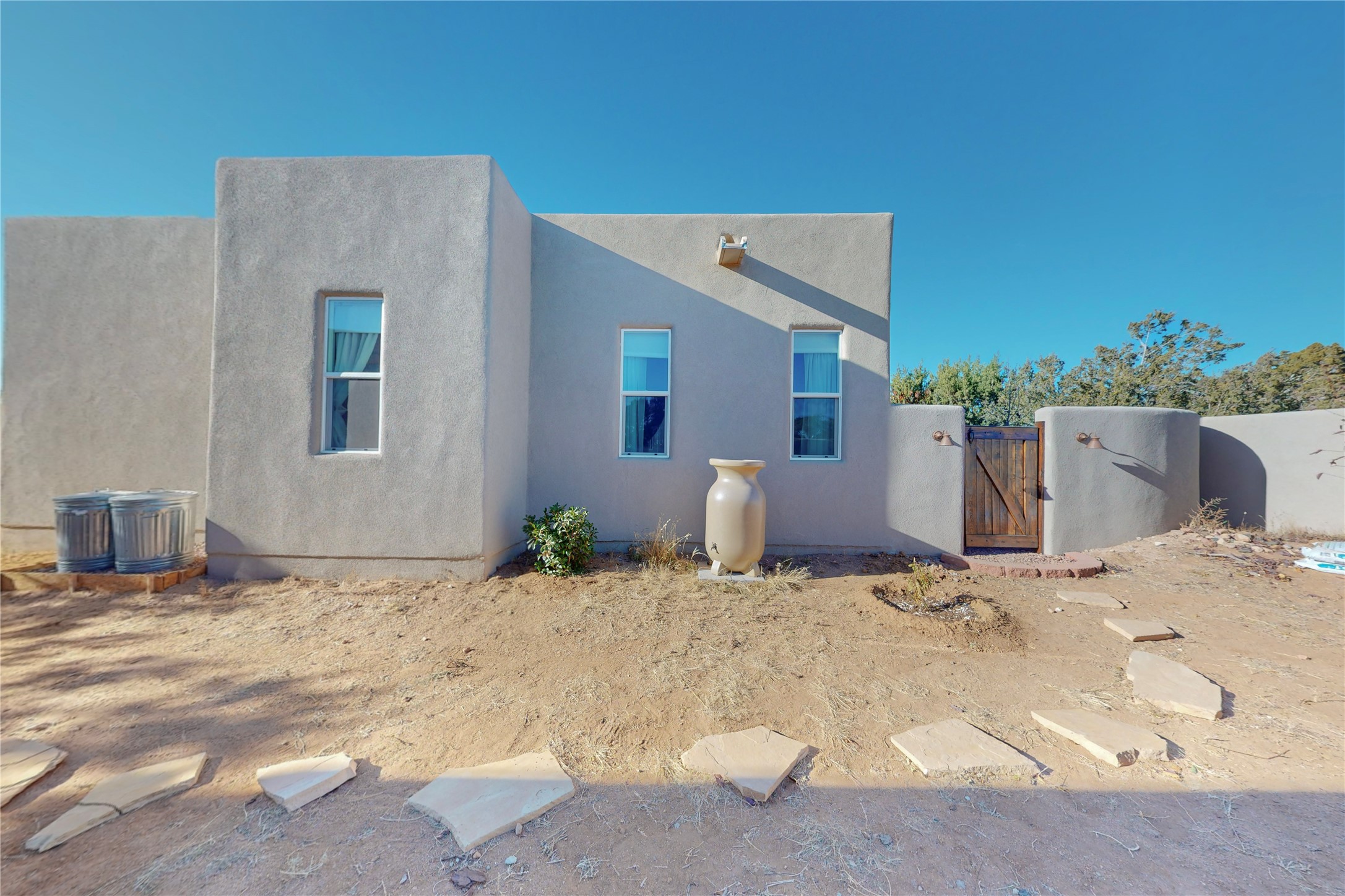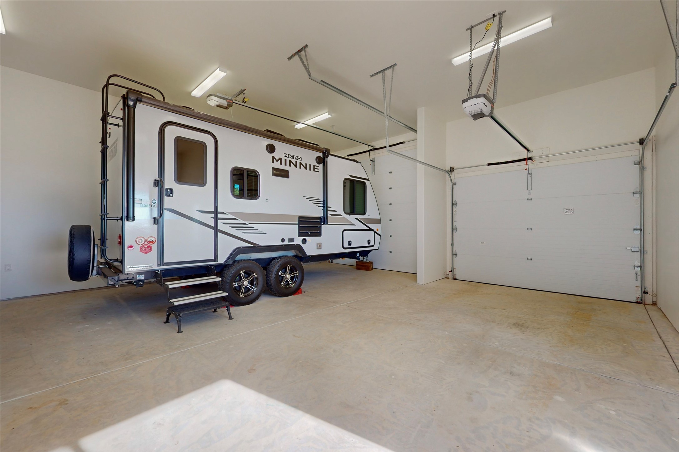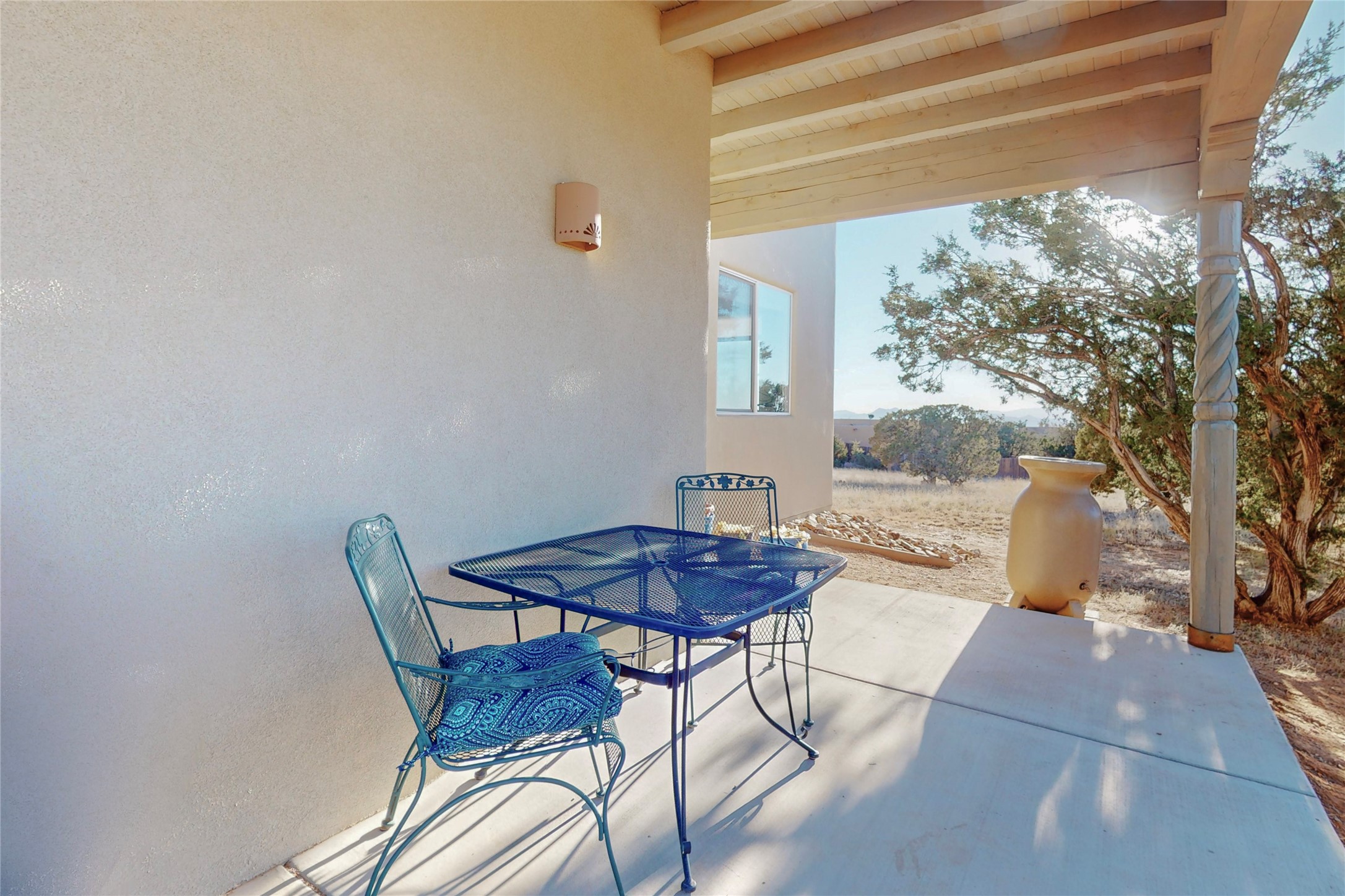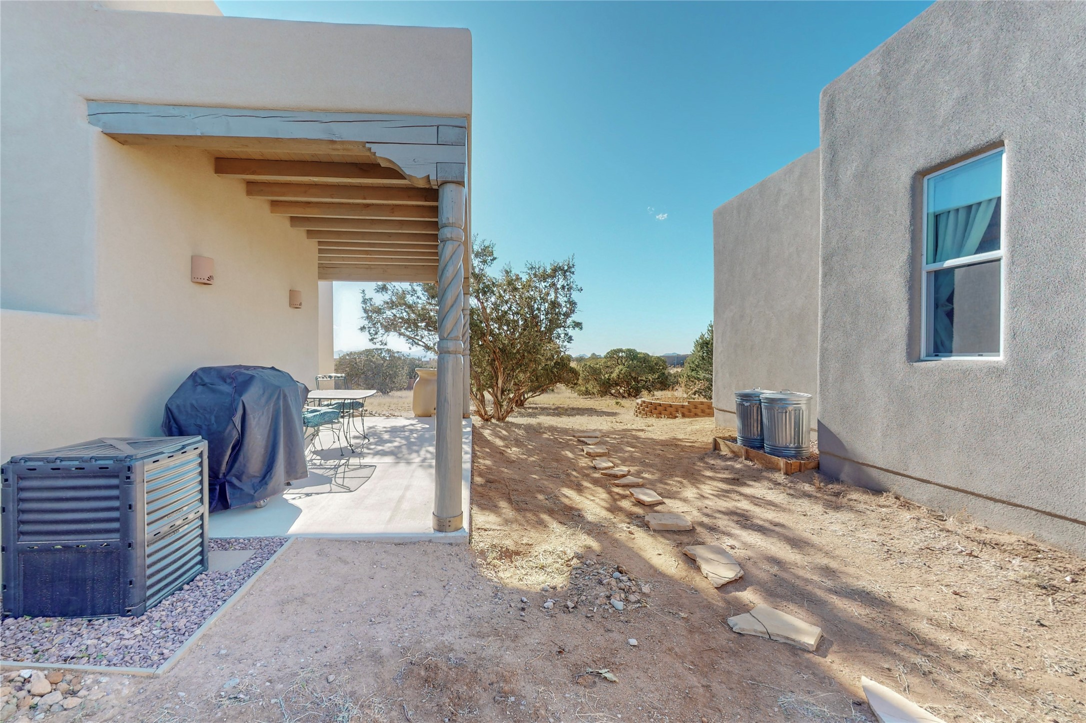Sparkling bright "as new" 3 year old contemporary home on high corner view lot, a custom creation by Wild Sage Homes for the owners. With high ceilings and gleaming engineered wood floors throughout, this home is a perfect example of Pride of Ownership. An open plan, split bedroom design centered on a spacious great room this home was built for energy efficiency with a HERS rating of 70. Lovely long E-glass windows maximize the views and light, natural gas forced air provides efficient heating and cooling, high insulation factors make low utility bills year round. the attached finished 2 car garage includes a dedicated electrical for a freezer. An on demand gas hot water heater with a recirculating pump for instant hot water plus energy efficient upscale appliances. An 800 sqft heated RV garage with two bays and a workshop area plus a greenhouse creates space for all your hobbies and toys. This home accesses Eldorado amenities, local community activities, shopping and services plus only minutes into Santa Fe. A must see!
