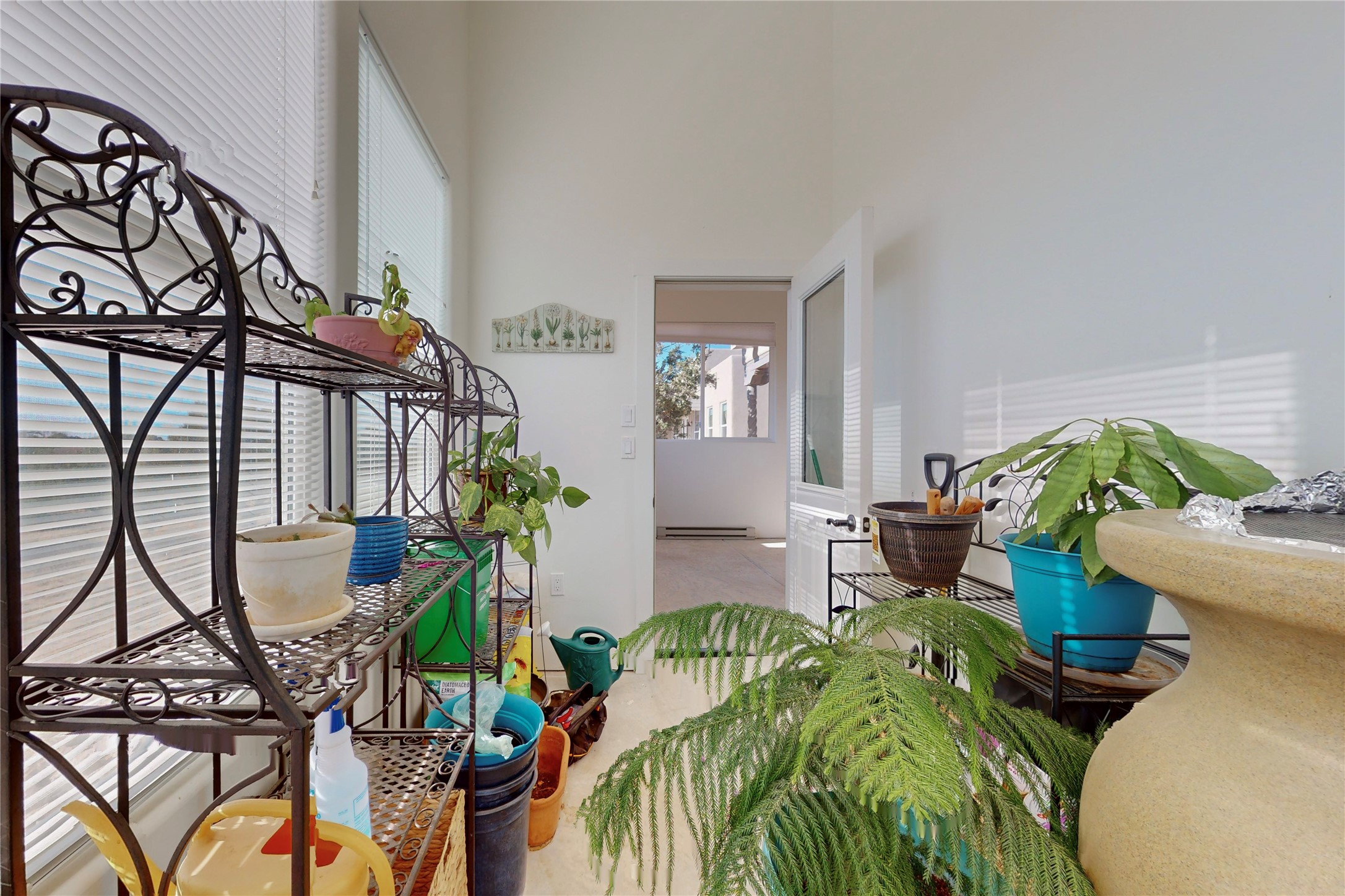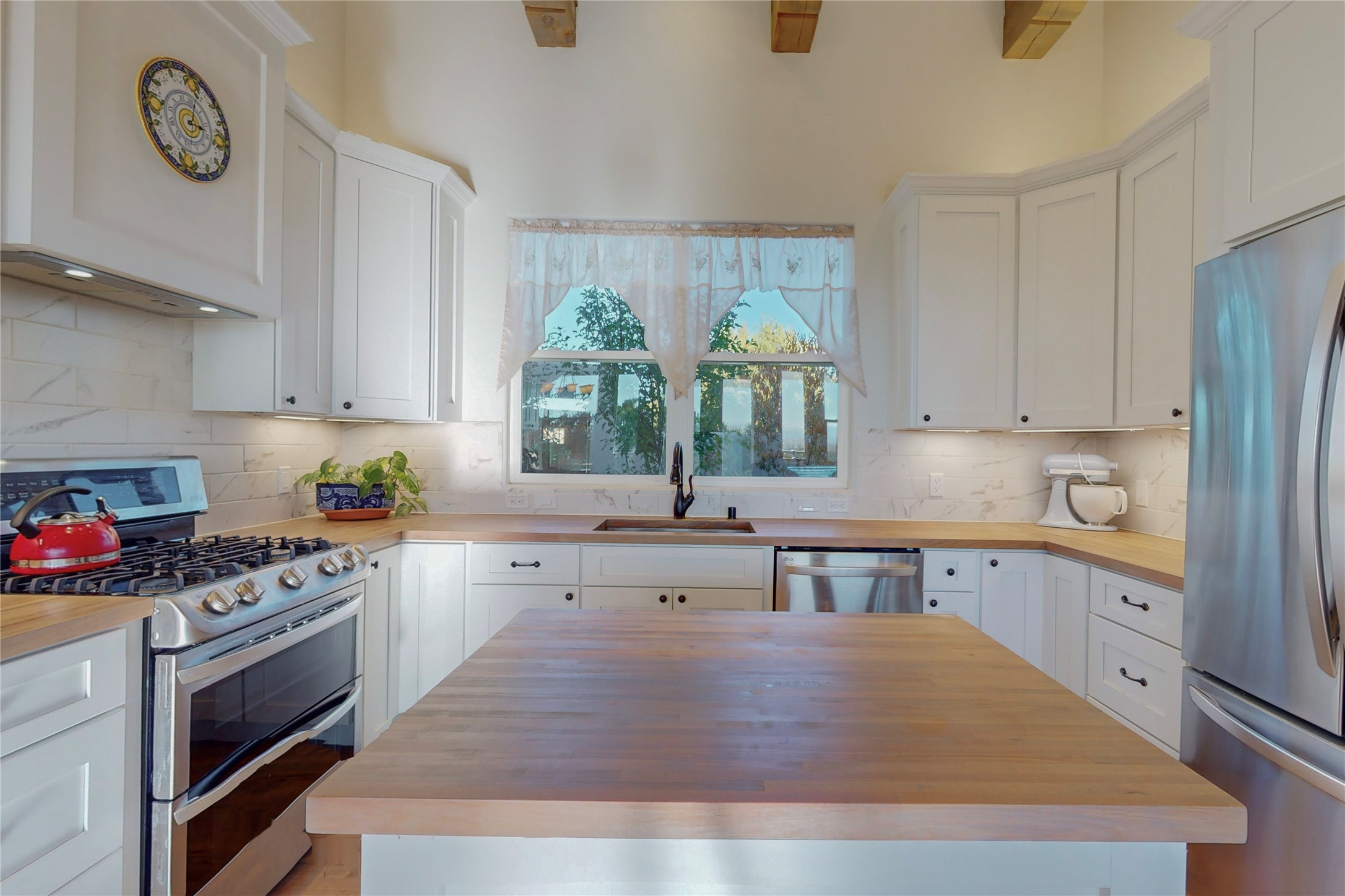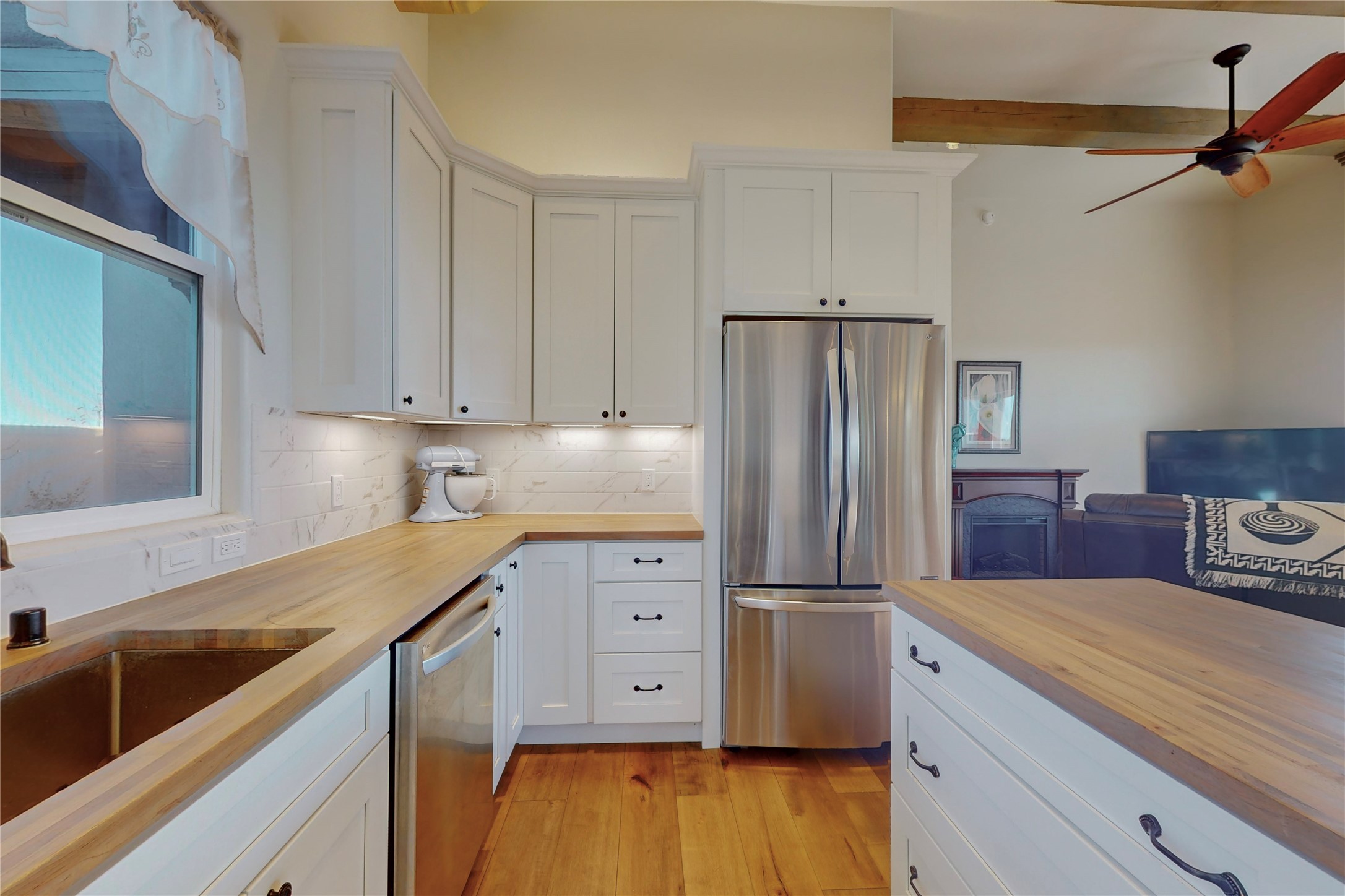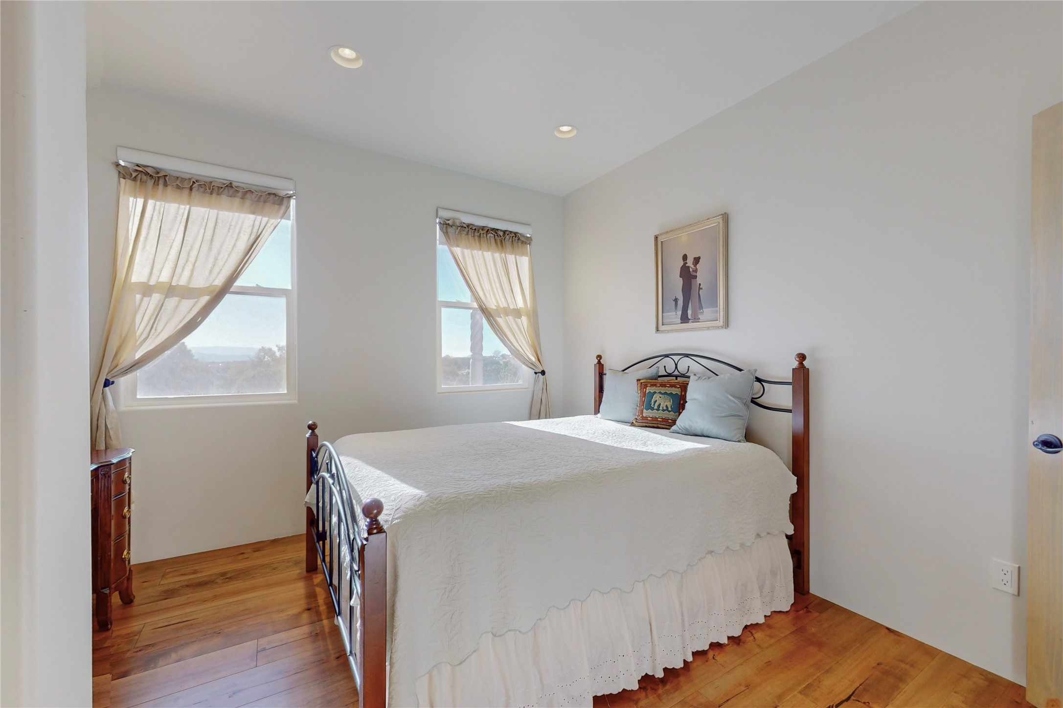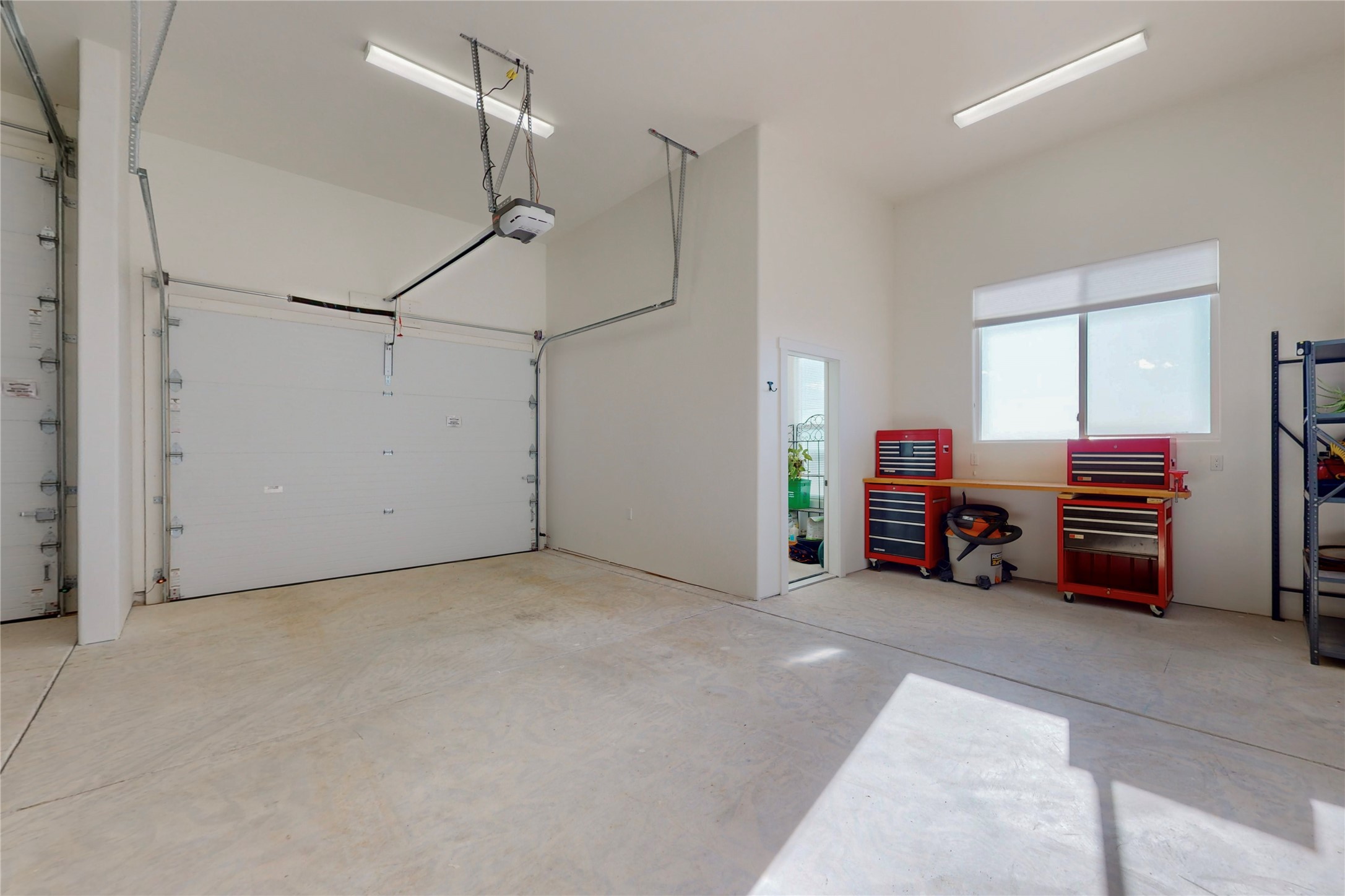 Sparkling bright "as new" 3 year old contemporary home on high corner view lot, a custom creation by Wild Sage Homes for the owners. With high ceilings and gleaming engineered wood floors throughout, this home is a perfect example of Pride of Ownership. An open plan, split bedroom design centered on a spacious great room this home was built for energy efficiency with a HERS rating of 70. Lovely long E-glass windows maximize the views and light, natural gas forced air provides efficient heating and cooling, high insulation factors make low utility bills year round. the attached finished 2 car garage includes a dedicated electrical for a freezer. An on demand gas hot water heater with a recirculating pump for instant hot water plus energy efficient upscale appliances. An 800 sqft heated RV garage with two bays and a workshop area plus a greenhouse creates space for all your hobbies and toys. This home accesses Eldorado amenities, local community activities, shopping and services plus only minutes into Santa Fe. A must see!