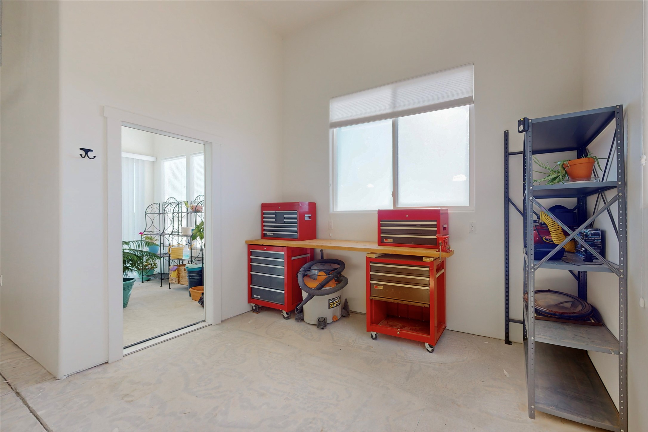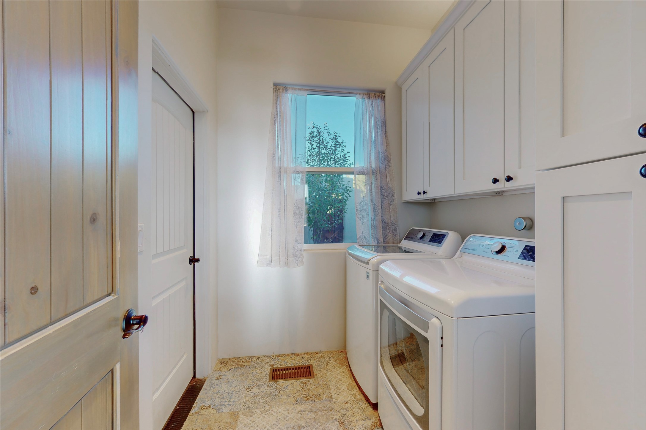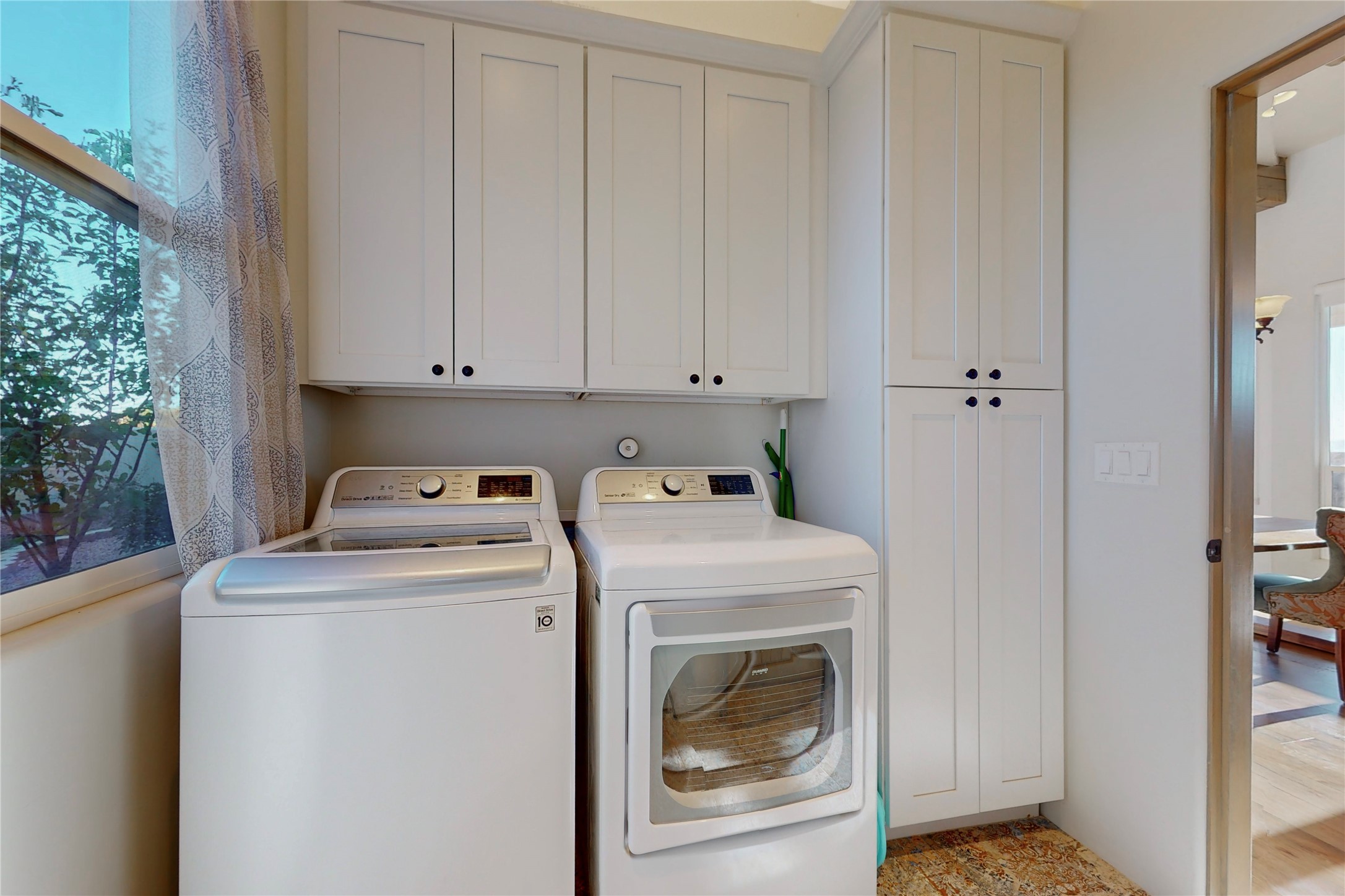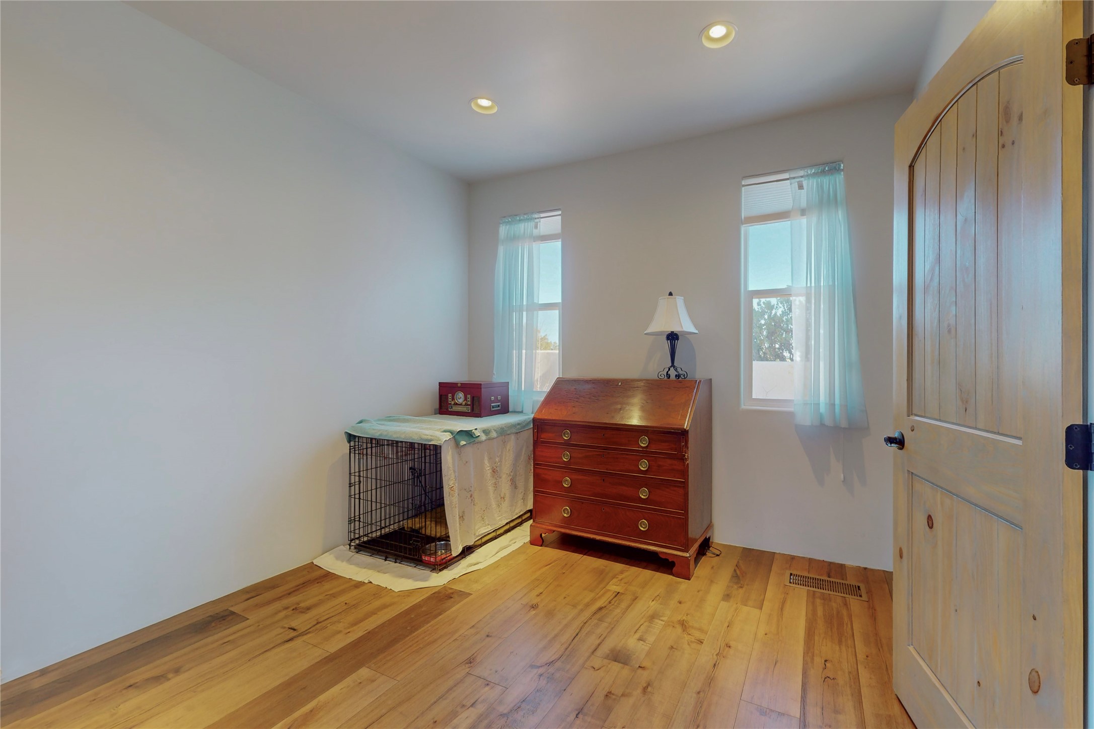 Sparkling bright "as new" 3 year old contemporary home on high corner view lot, a custom creation by Wild Sage Homes for the owners. With high ceilings and gleaming engineered wood floors throughout, this home is a perfect example of Pride of Ownership. An open plan, split bedroom design centered on a spacious great room this home was built for energy efficiency with a HERS rating of 70. Lovely long E-glass windows maximize the views and light, natural gas forced air provides efficient heating and cooling, high insulation factors make low utility bills year round. the attached finished 2 car garage includes a dedicated electrical for a freezer. An on demand gas hot water heater with a recirculating pump for instant hot water plus energy efficient upscale appliances. An 800 sqft heated RV garage with two bays and a workshop area plus a greenhouse creates space for all your hobbies and toys. This home accesses Eldorado amenities, local community activities, shopping and services plus only minutes into Santa Fe. A must see!