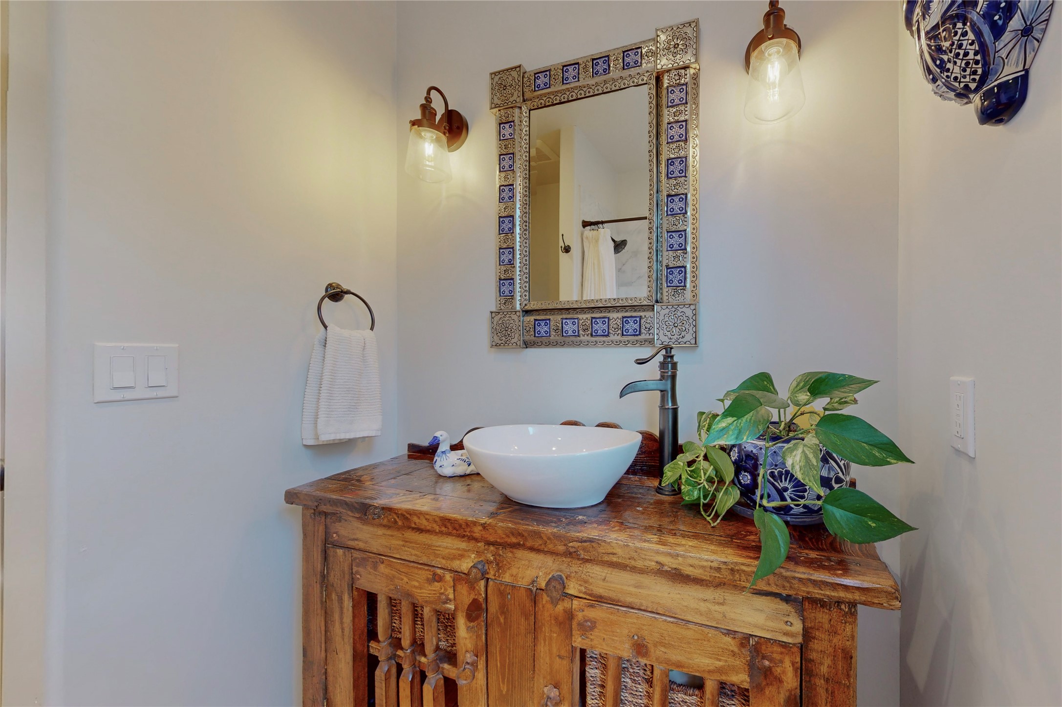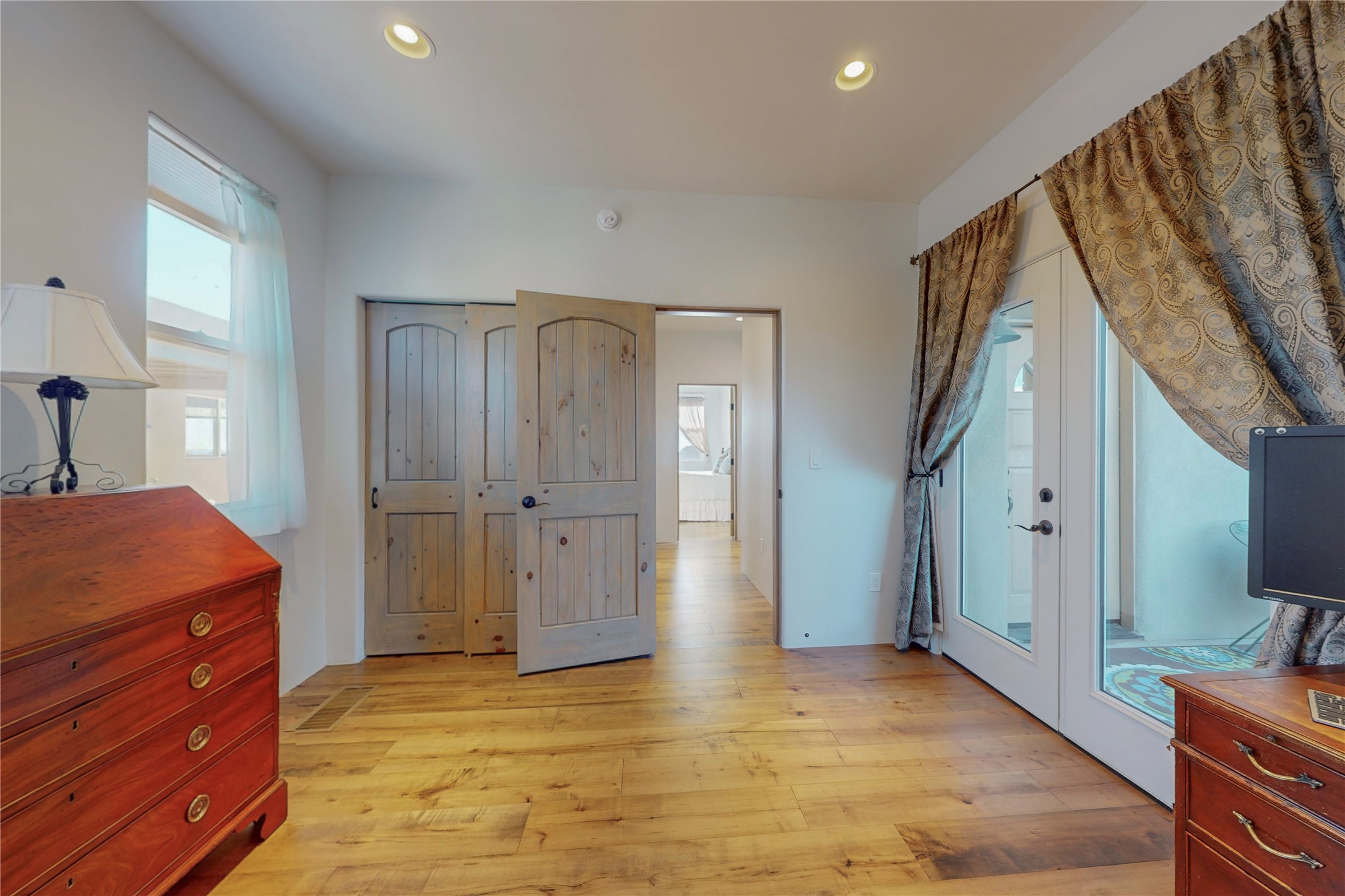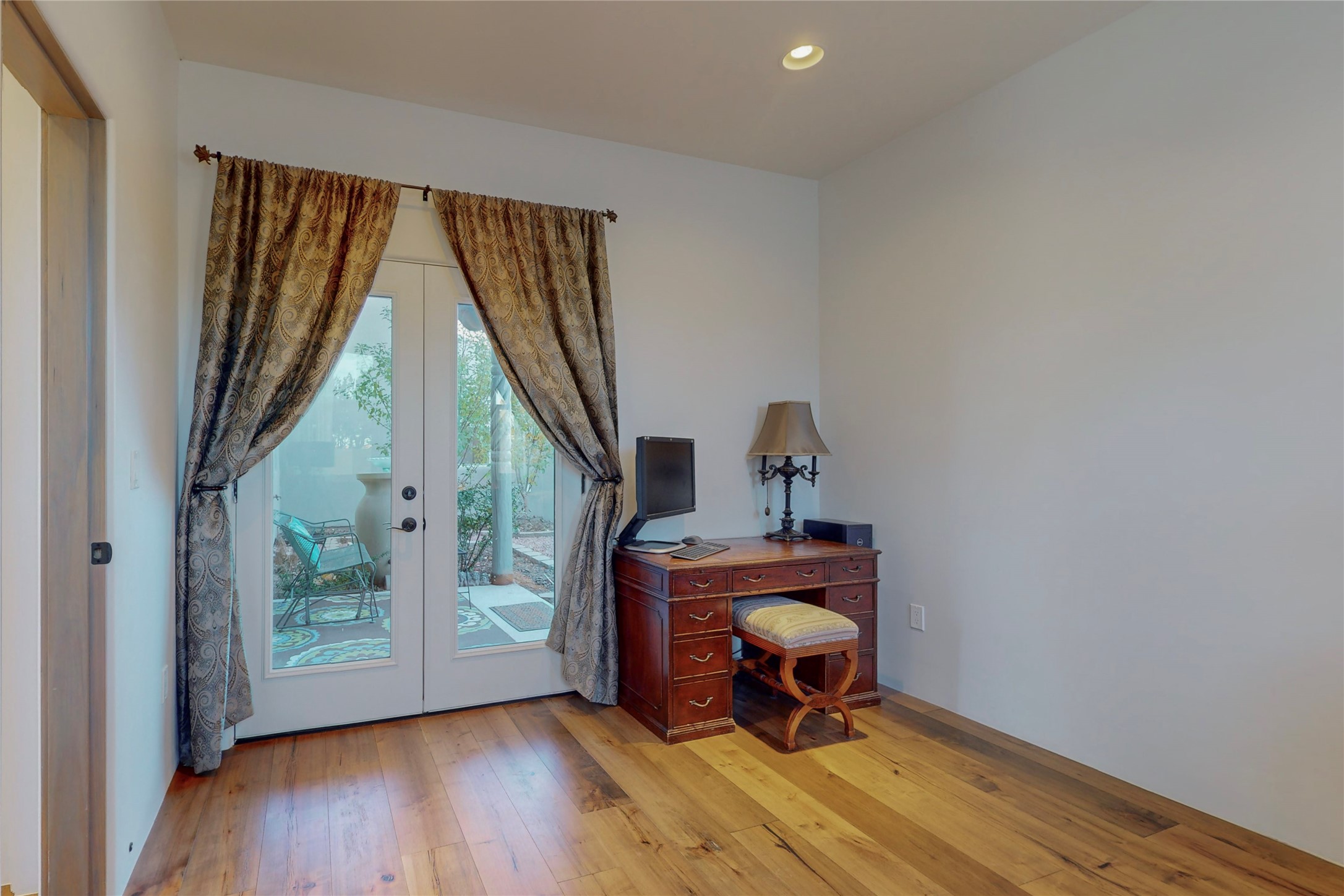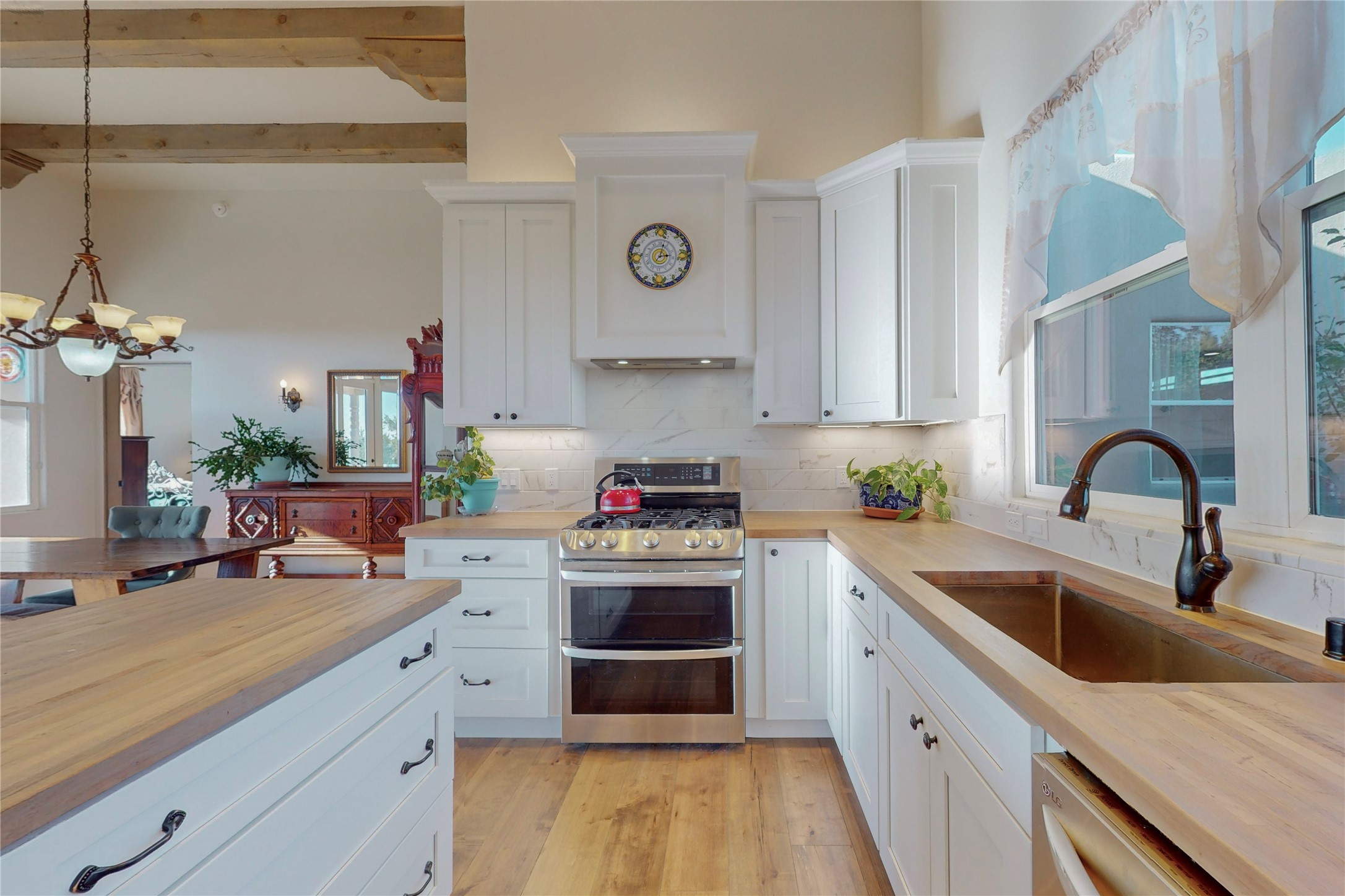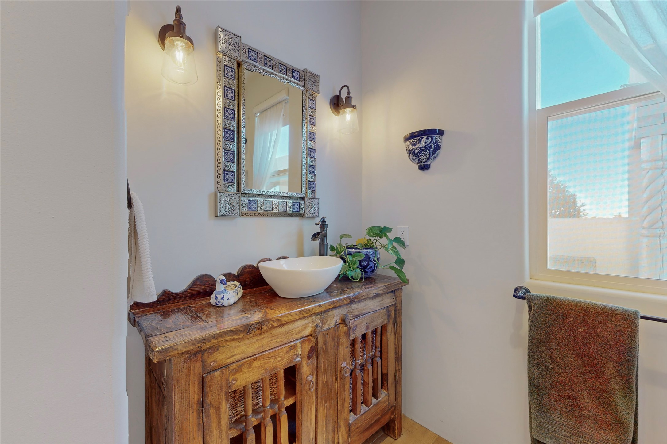 Sparkling bright "as new" 3 year old contemporary home on high corner view lot, a custom creation by Wild Sage Homes for the owners. With high ceilings and gleaming engineered wood floors throughout, this home is a perfect example of Pride of Ownership. An open plan, split bedroom design centered on a spacious great room this home was built for energy efficiency with a HERS rating of 70. Lovely long E-glass windows maximize the views and light, natural gas forced air provides efficient heating and cooling, high insulation factors make low utility bills year round. the attached finished 2 car garage includes a dedicated electrical for a freezer. An on demand gas hot water heater with a recirculating pump for instant hot water plus energy efficient upscale appliances. An 800 sqft heated RV garage with two bays and a workshop area plus a greenhouse creates space for all your hobbies and toys. This home accesses Eldorado amenities, local community activities, shopping and services plus only minutes into Santa Fe. A must see!