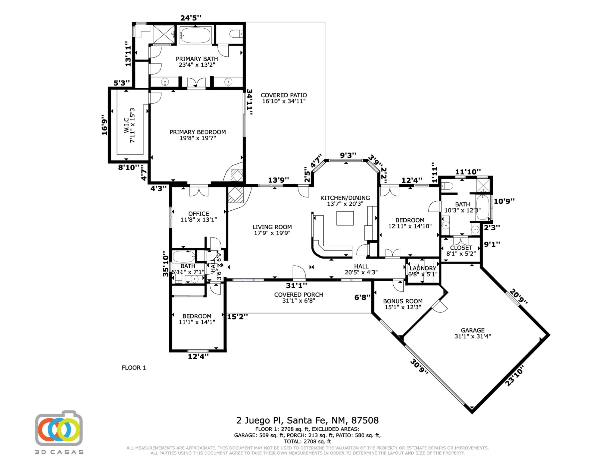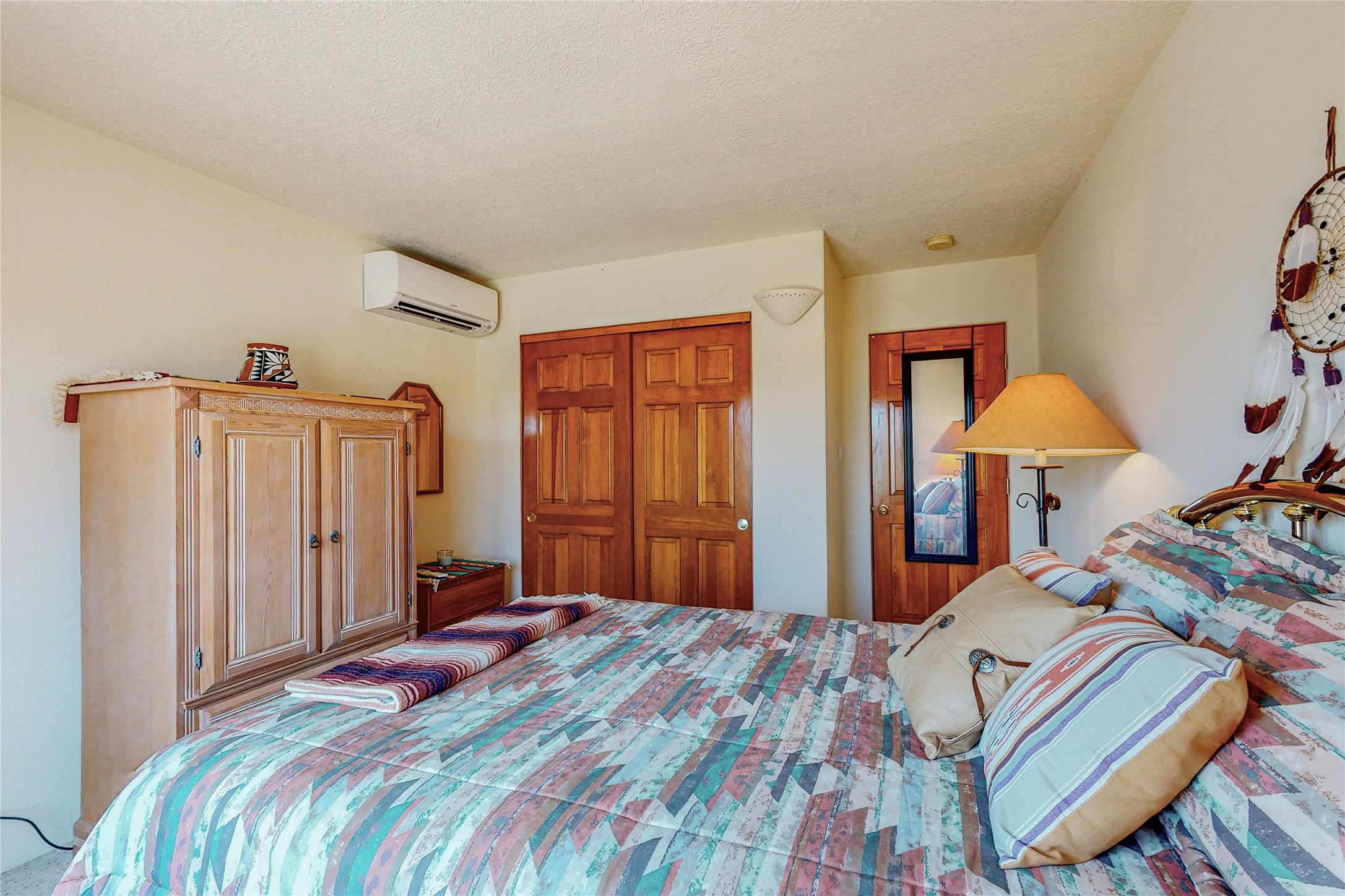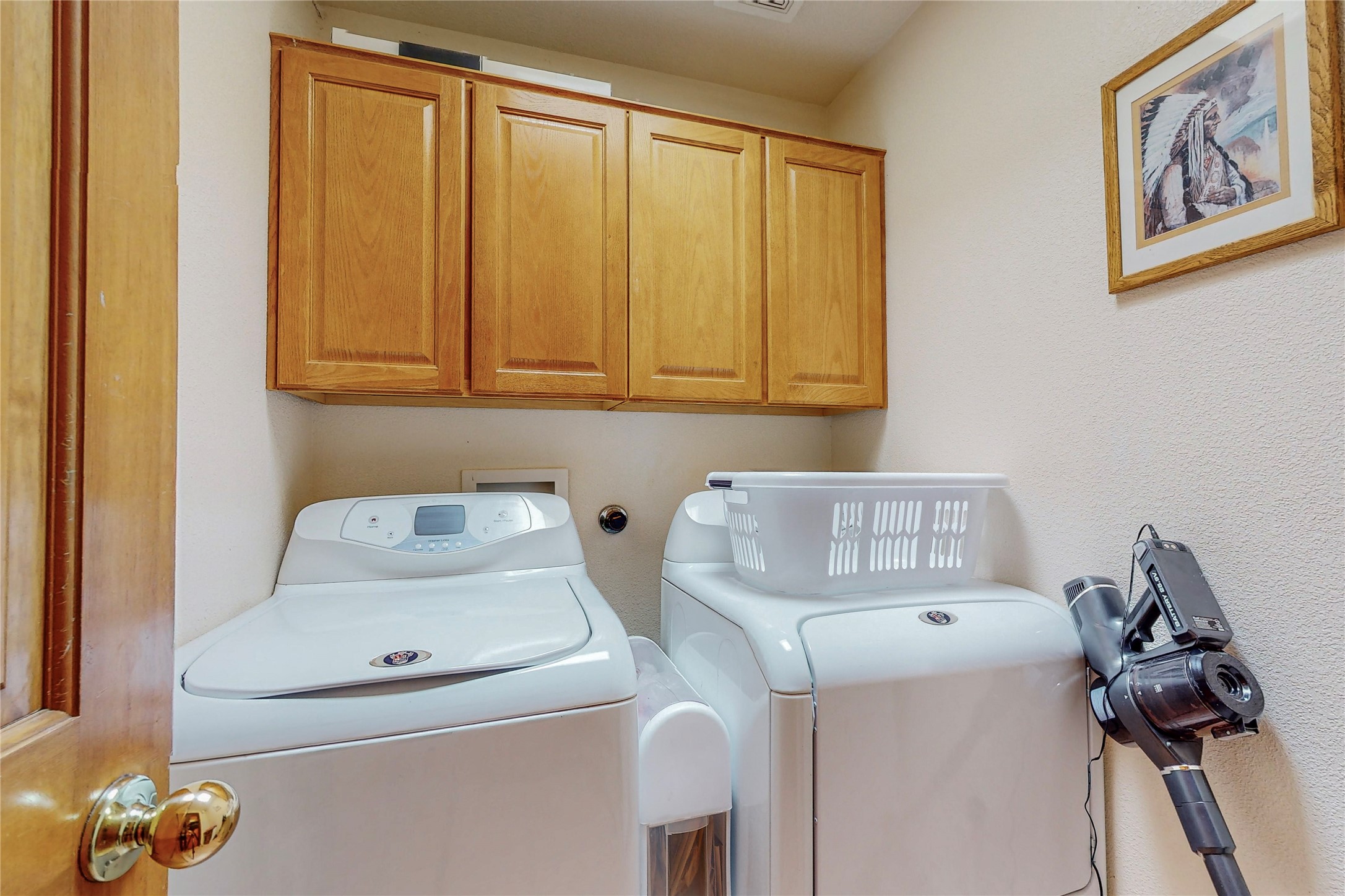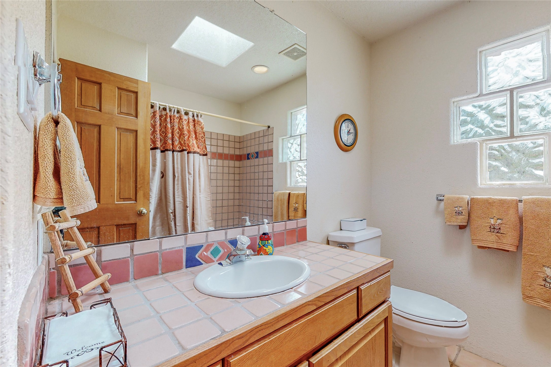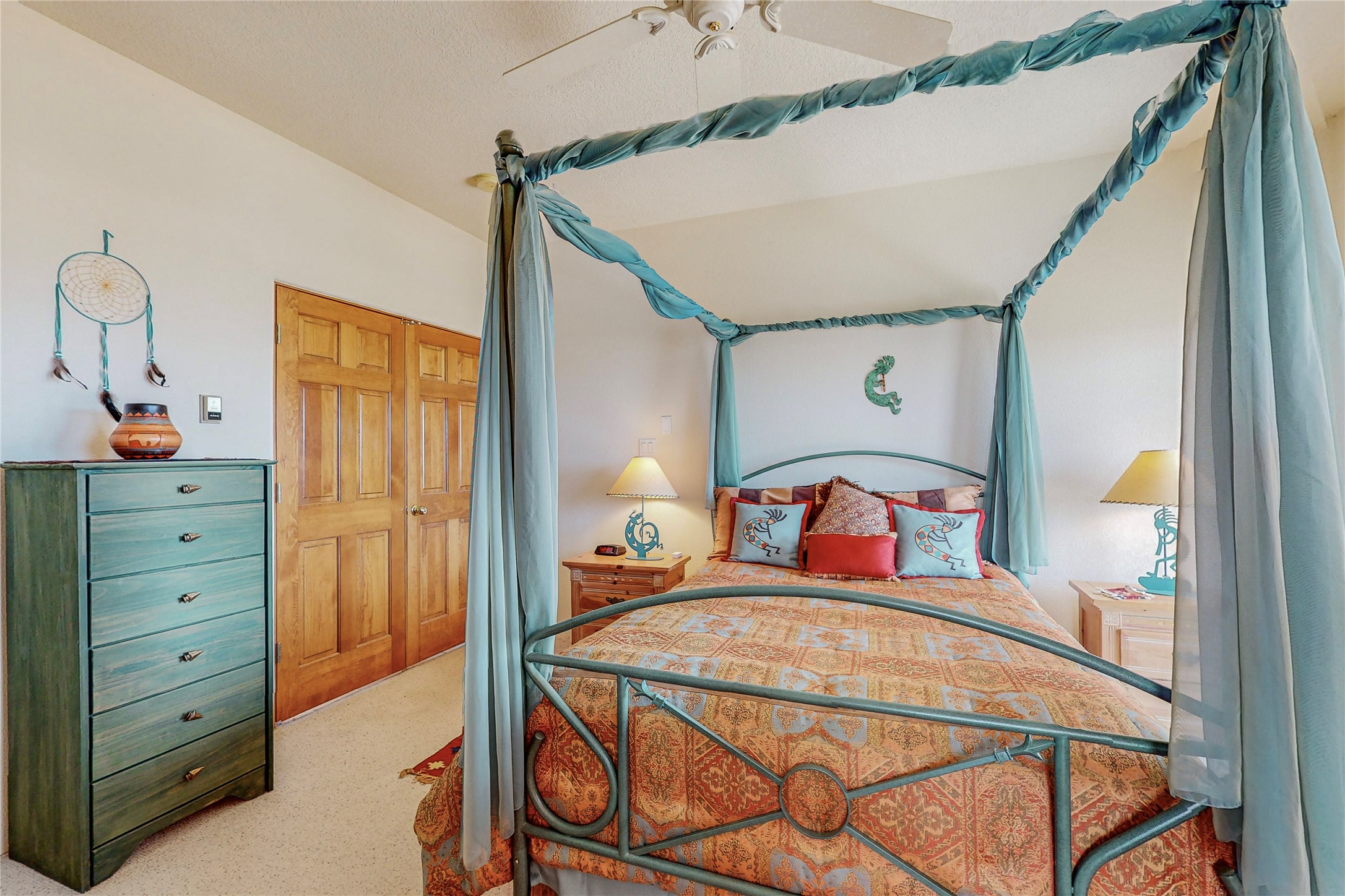 This lovely one owner home was carefully sited and built by Homes by Marie to access expansive mountain views. Lovely light and spacious open plan contemporary pueblo design. The split 3 bedroom design has been enlarged to add a den on one side and an exquisite expansive main bedroom suite with a spa like bathroom and large walk in closet on the other. 3 mini-splits have been added for summer cool, natural gas radiant heating in the original home and gas forced air in the newer wing. A large portal for summer sunset dining overlooking a privately walled garden and an easterly front view portal for early coffee or breakfast. This home is ideally located close to the Eldorado Community Center and amenities, 2 local shopping centers, a school, library and senior center. It is on a paved road close to the exits making it an easy few minutes into Santa Fe or to the train station in historic Lamy village.