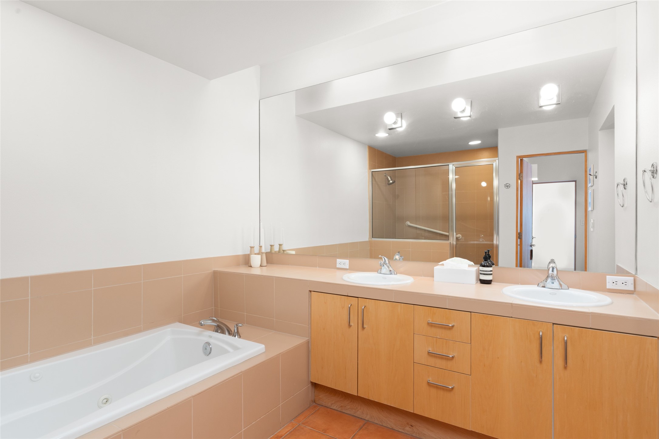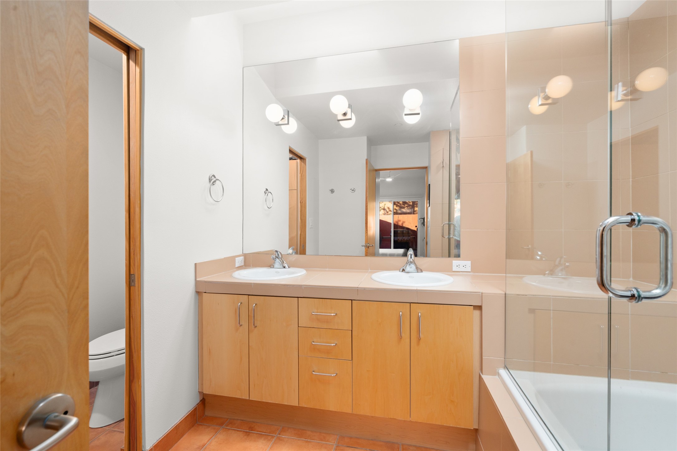 Your search is finally over! Recently remodeled kitchen and living area with stunning white oak wood floors! Architect Ricardo Leggoreta designed this exquisite two-bedroom, three-bathroom plus office in the desirable Zocalo subdivision with sophisticated contemporary design elements. The owner, a world-renowned designer, recently remodeled it with ease of living, functionality, and style considered in every detail. The bedrooms have excellent separation, each with a large closet, an en suite full bath, and a double vanity. The master includes a fully remodeled, California walk-in closet, plus a separate office with a charming deck for sunset viewing. The comfortable living room shares a double-sided fireplace, updated to gas for ease and comfort, and the dining room is open to the kitchen with plenty of storage and accesses an EXCEPTIONALLY spacious entertaining terrace, newly landscaped and on drip irrigation. The dramatic dining room features soaring ceilings and skylights. Zocalo amenities include two well-equipped gyms, An outdoor seasonal pool, A lovely community party room with a kitchen, and evening security patrol. Located less than 10 minutes from downtown Santa Fe's markets, restaurants & shops!