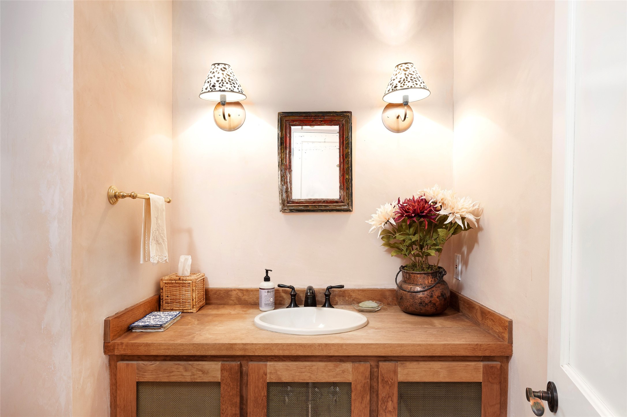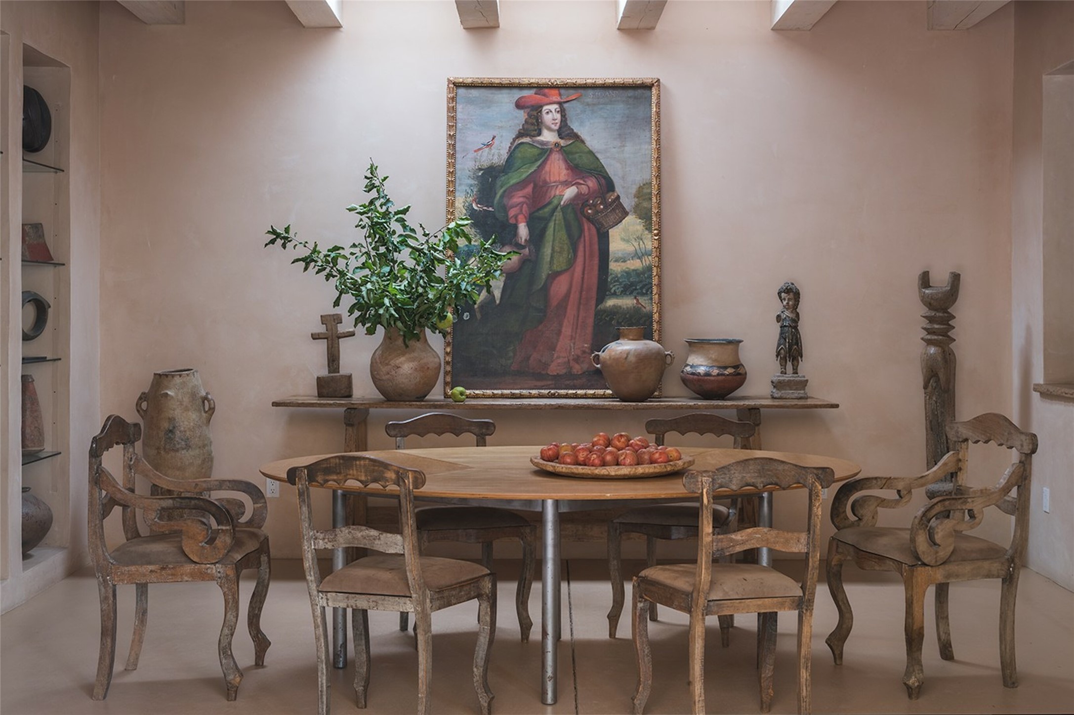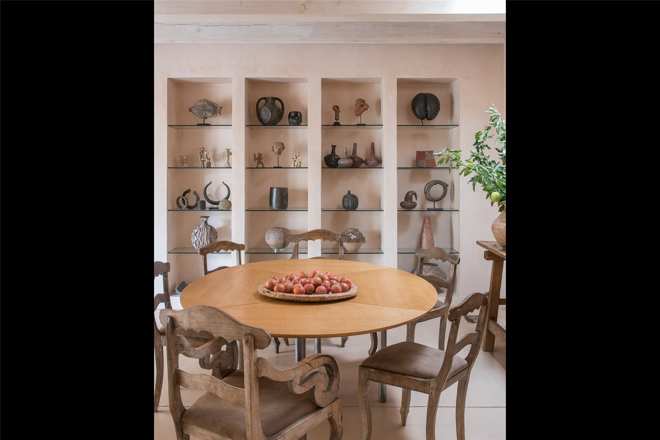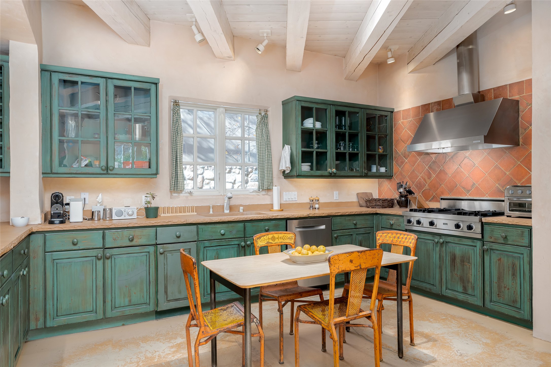 Home of the noted collector and beloved Santa Fe icon , the late Omer Claiborne- this lovely compound is tucked down a quiet lane off Canyon Road. The original home and guest house were built by Agnes Sims in 1947- 1948 . Omer designed the elegant main house in 1997 , attaching it to the original structure . This single level home has a clean , modernist aesthetic and features many architectural details , including lighted , recessed shelves for his museum quality artifacts , multiple fireplaces , concrete floors , French doors throughout , and 12' beamed ceilings. The 2 bedroom main house opens to a gracious entry courtyard, and flows seamlessly into the original house. The original adobe building is currently used as a gallery but can easily be converted into 2 bedrooms with an existing bath and a sitting area. The detached guest house is accessed through a brick courtyard , and offers privacy and charm. The established landscaping ,coveted location and flexible spaces add to the magic of this special property.