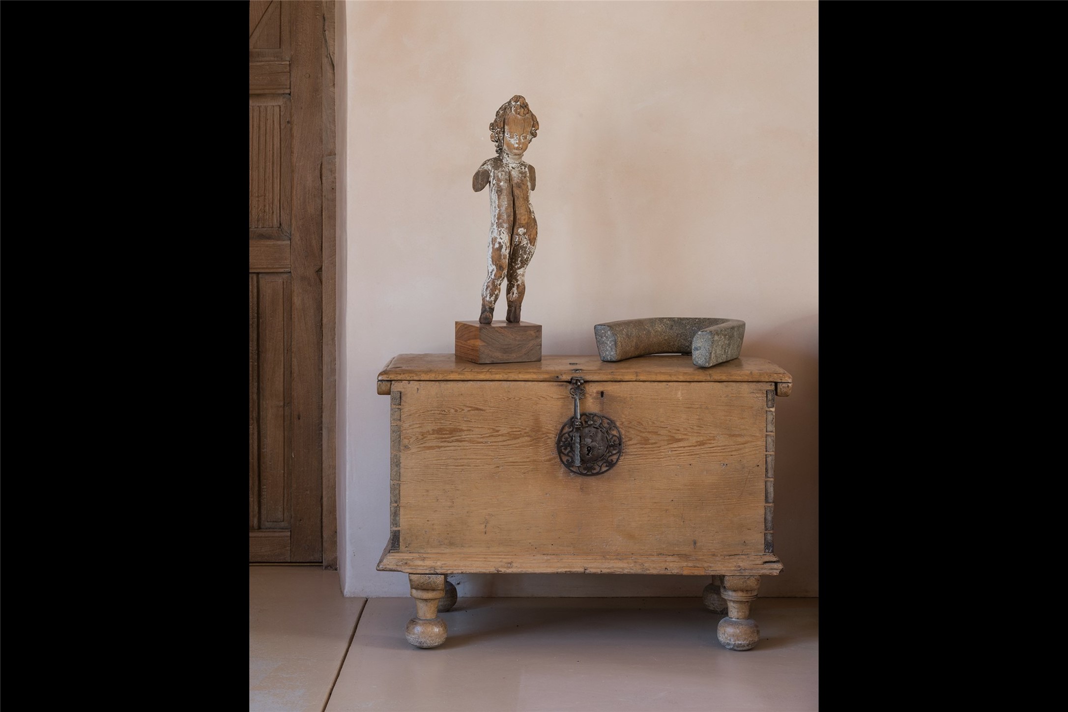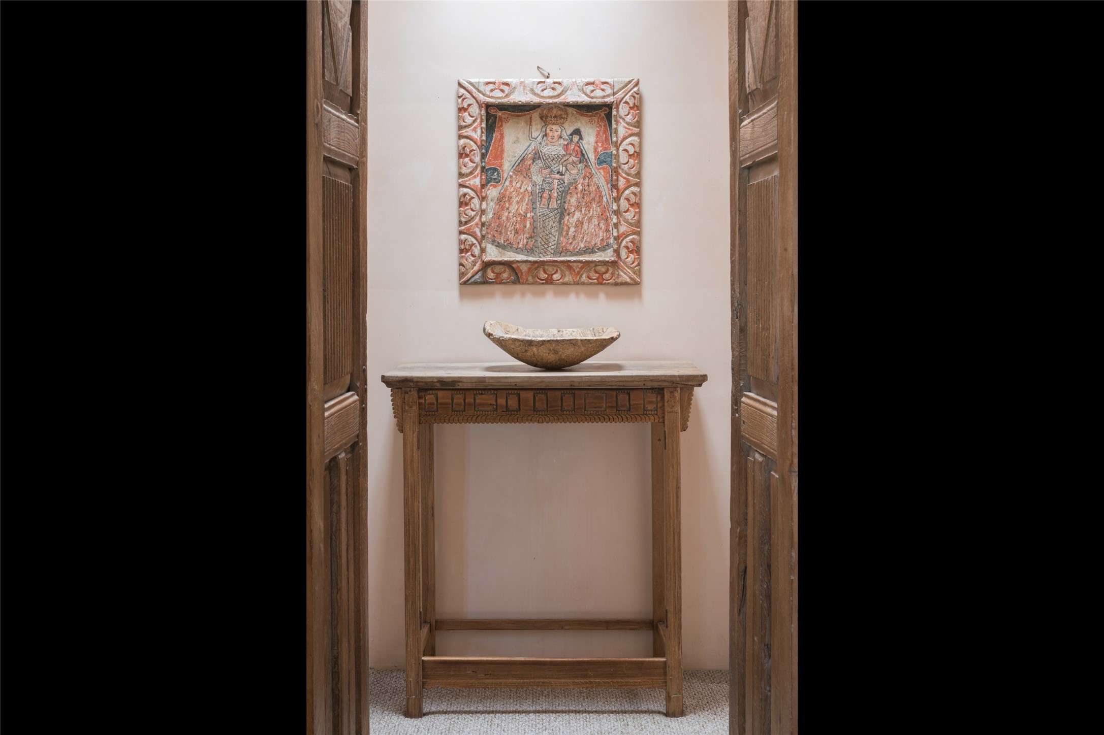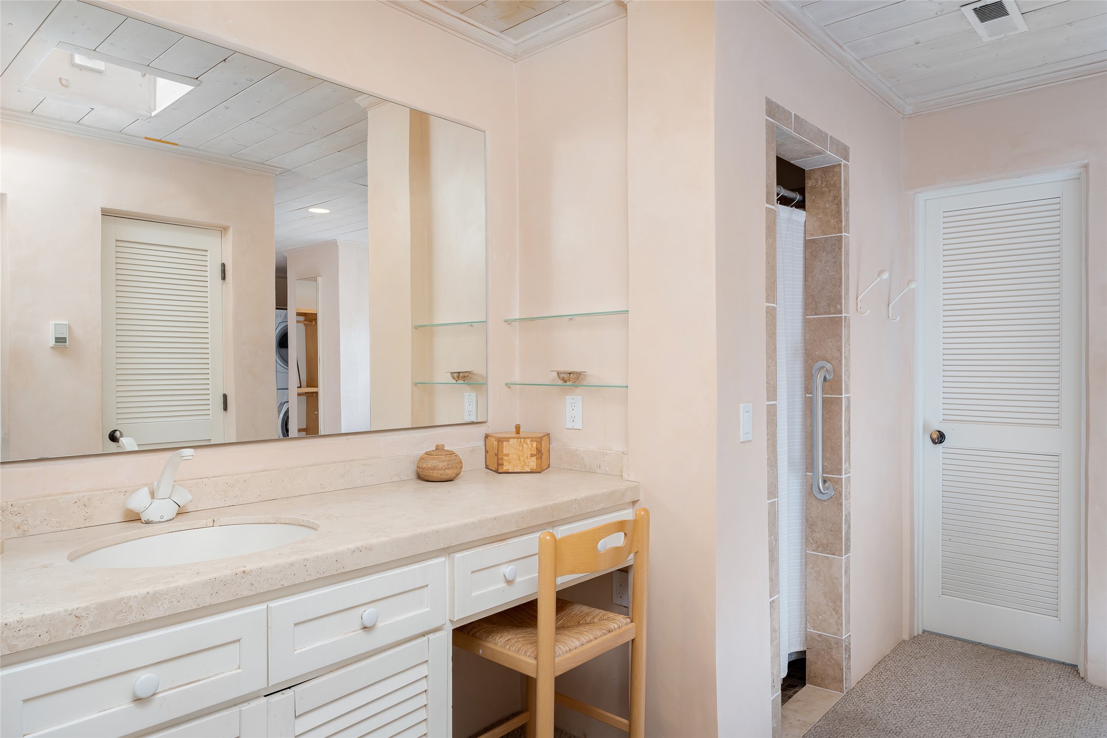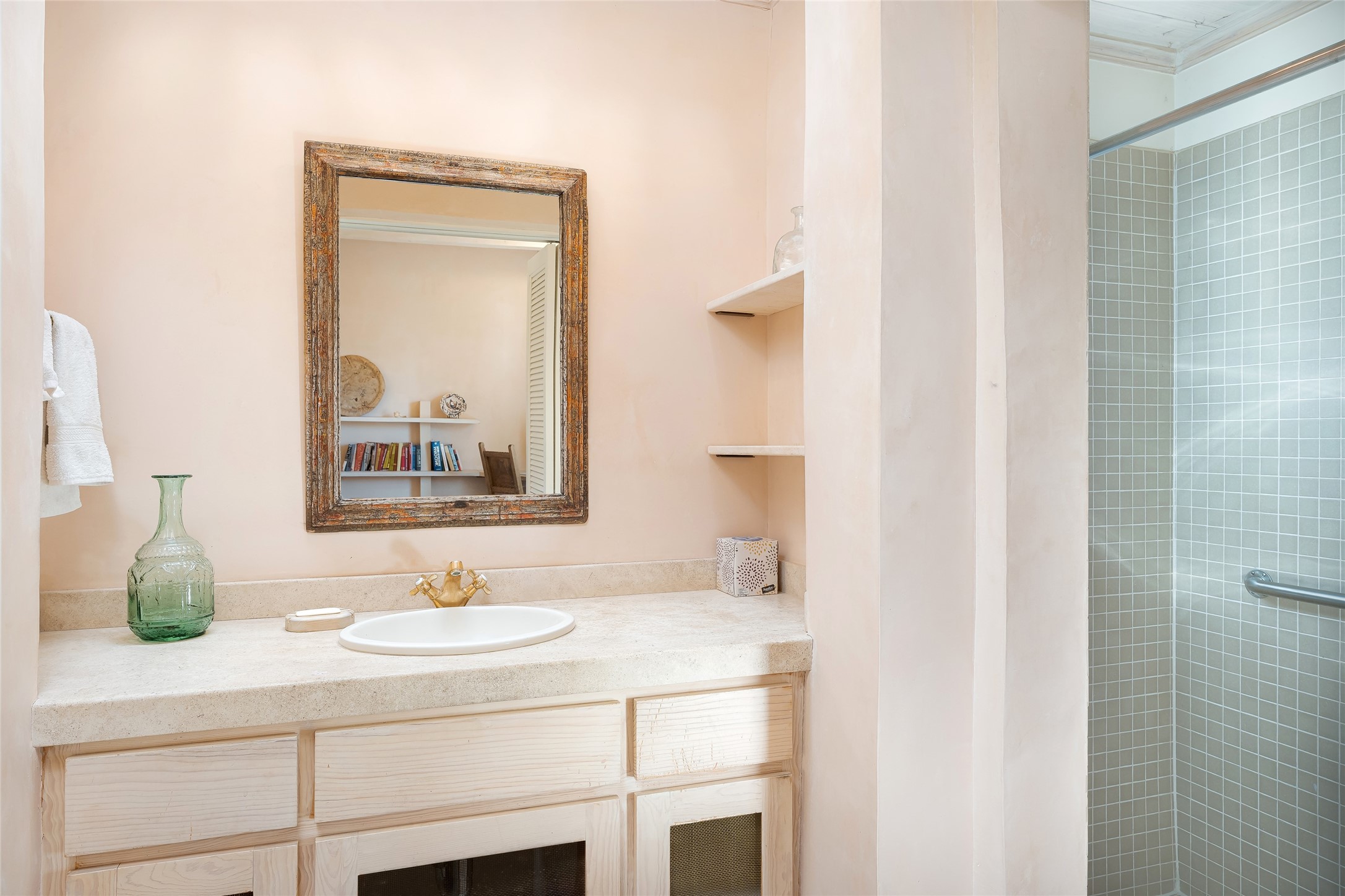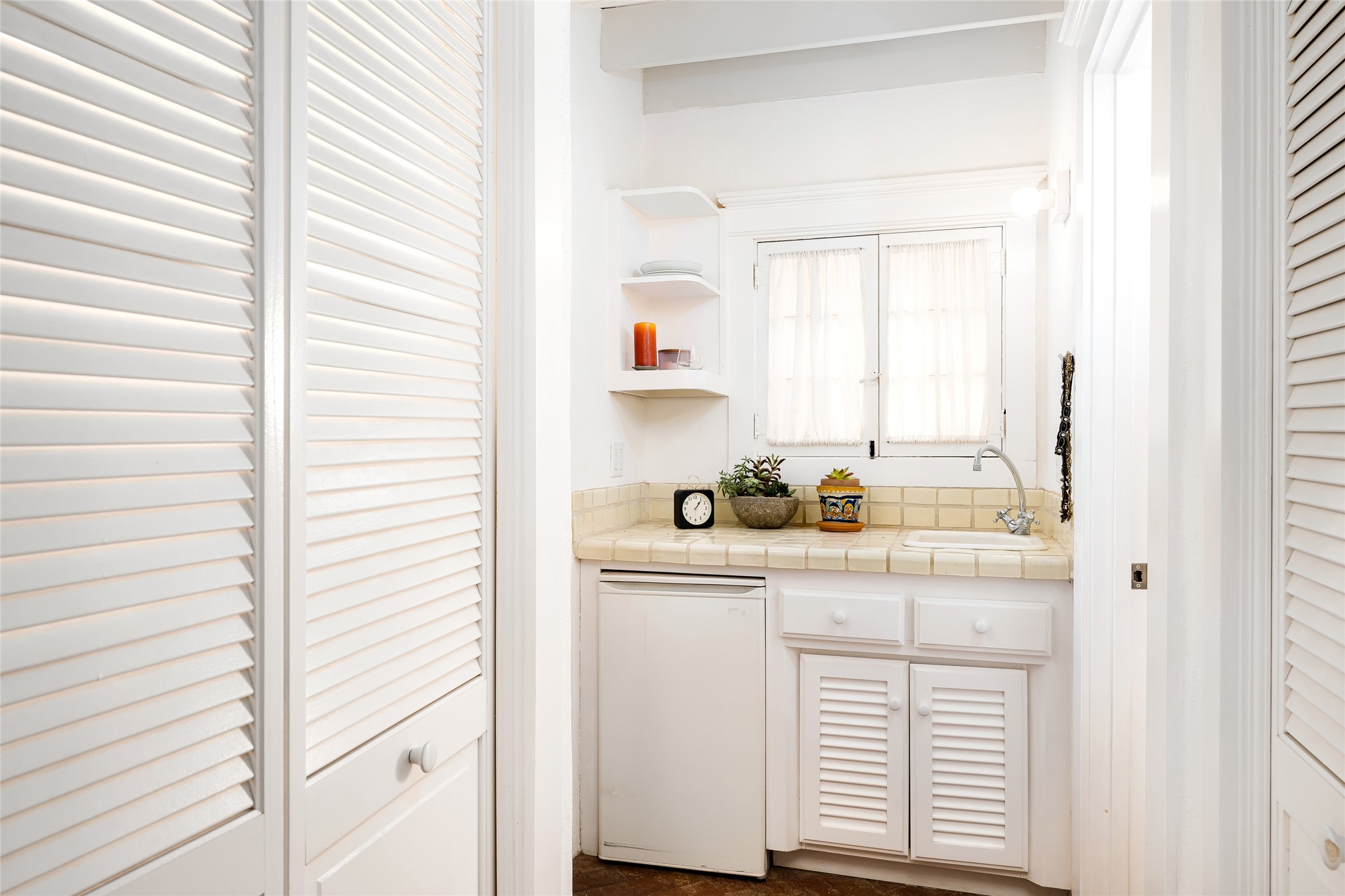 Home of the noted collector and beloved Santa Fe icon , the late Omer Claiborne- this lovely compound is tucked down a quiet lane off Canyon Road. The original home and guest house were built by Agnes Sims in 1947- 1948 . Omer designed the elegant main house in 1997 , attaching it to the original structure . This single level home has a clean , modernist aesthetic and features many architectural details , including lighted , recessed shelves for his museum quality artifacts , multiple fireplaces , concrete floors , French doors throughout , and 12' beamed ceilings. The 2 bedroom main house opens to a gracious entry courtyard, and flows seamlessly into the original house. The original adobe building is currently used as a gallery but can easily be converted into 2 bedrooms with an existing bath and a sitting area. The detached guest house is accessed through a brick courtyard , and offers privacy and charm. The established landscaping ,coveted location and flexible spaces add to the magic of this special property.