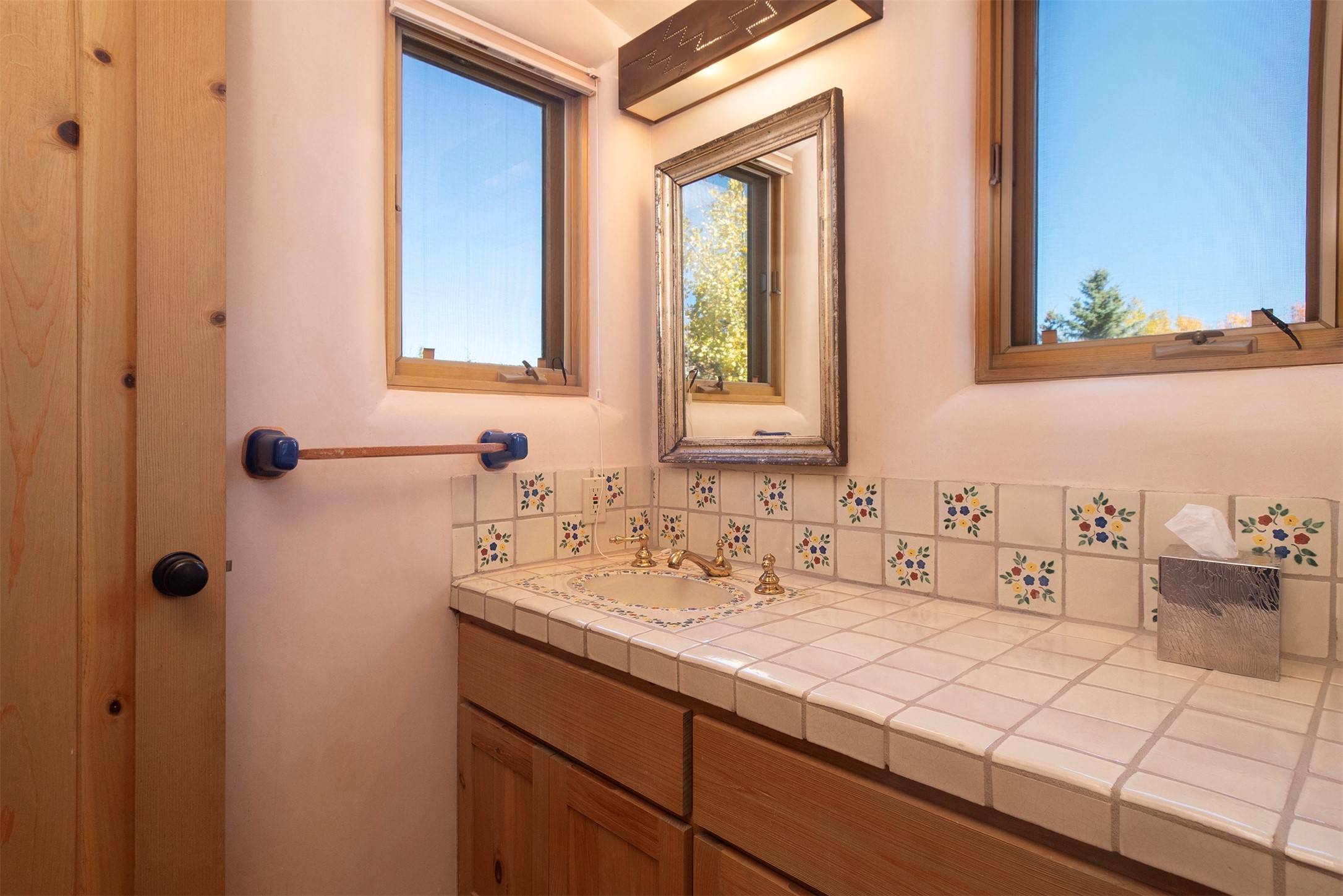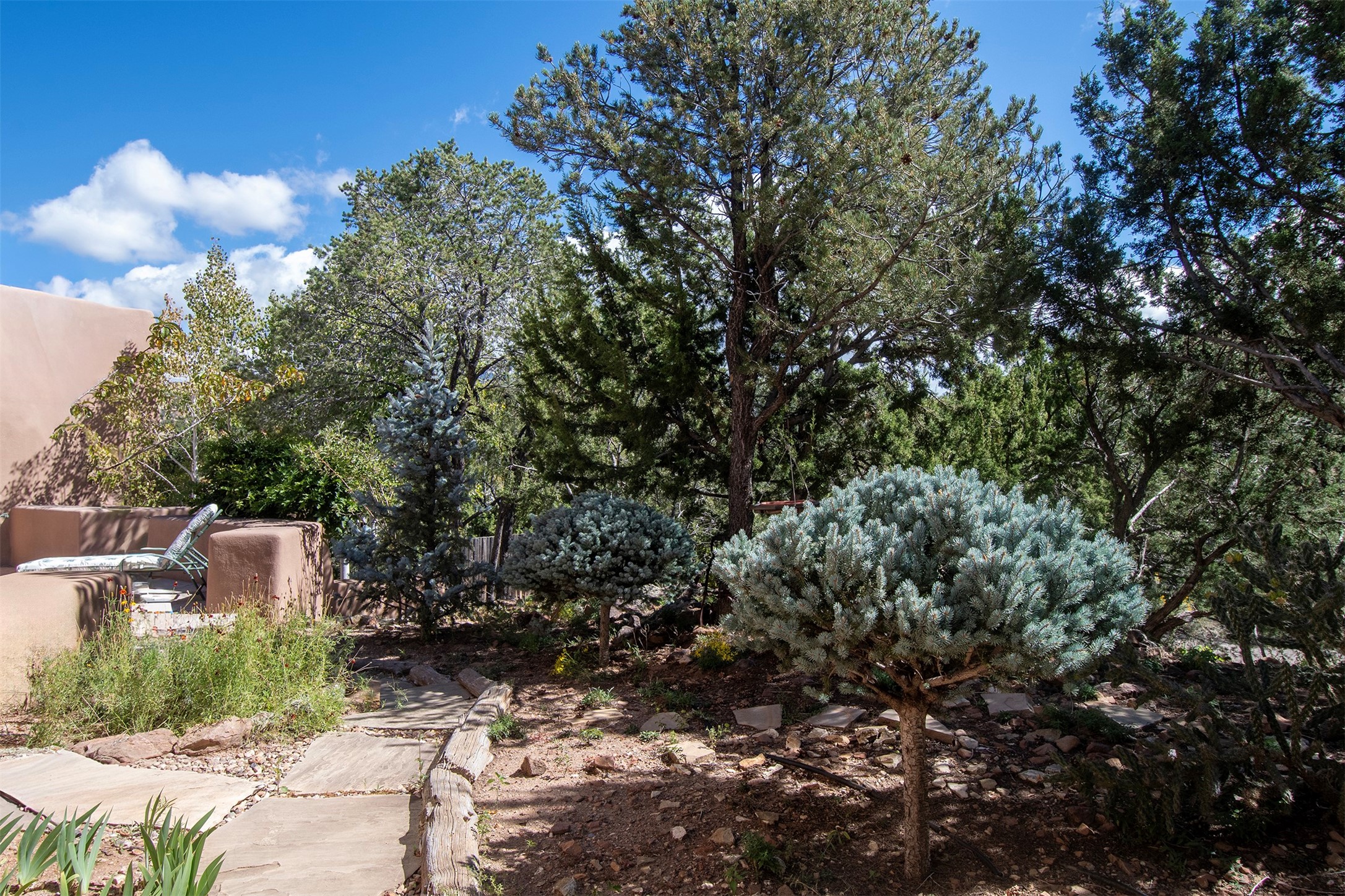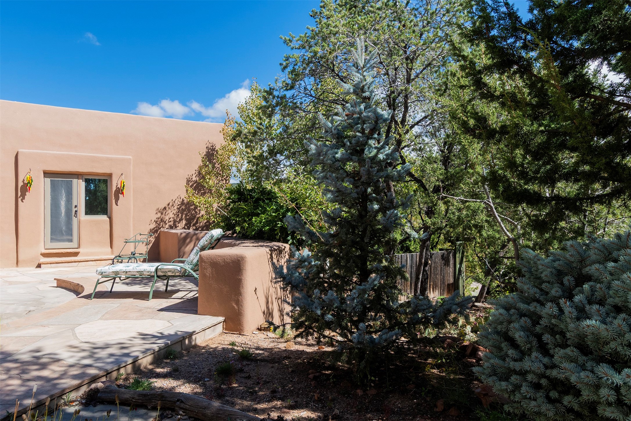 HIDDEN GEM IN THE OUTSTANDING EL CANON NEIGHBORHOOD - 4 BED | 5 BATH | 2 CARG - On a cul-de-sac tucked into the ridge top of a private canyon enclave in the upper east heights of the Cerro Gordo + Upper Canyon Road corridor, this 4 Bed, 5 Bath home boasts beautifulnorth east views of the Sangre de Cristos foothills and the Jemez Mountains.Designed by Robert Nestor the pueblo architecture and regional style make you feel right at home with the natural surroundings.This home is a true nest high in the foothills. A beautiful and dramatic entry features a calming fountain. Large vigas and beautiful decking, latillas, and split cedargrace the ceilings.Floor to ceiling glass doors on eitherside of the great room open this home up to the sky.With 4 bedrooms featuring en suite baths, this is a great home for hosting family or friends. This home has a wonderful layout with great separation of guest rooms from the main suite. One of the bedrooms is wonderfully situatedto double as an office and home gym. Mature trees and tiered rock garden beds make for privacy and a wonderful outdoor experience.Traditional Talavera tile kitchen and baths bring warmth and craft to this pueblo charmer.The kitchen is complete with breakfast nook, desk center, large kitchen island, hardwood cabinetry and walk-through pantry.The outdoor covered portal overlooking the hillsides is perfect for morning coffee or grilling dinner. Saltillo floors, skylights, and wood burning fireplaces bring comfort and brightness. A wonderfully handmade New Mexican tin chandeliersand sconce enhance the entry and guest wing.Sandstone patio and garden paths merge beautifully with the landscape, and a hot tub deck provides relaxation for soaking in the sun. While providing great privacy this home is only a short drivethrough the beautiful canyon into town and makes daily outings easy and pleasant. Don't miss the chance to own this slice of traditional pueblo living with views on the eastside!