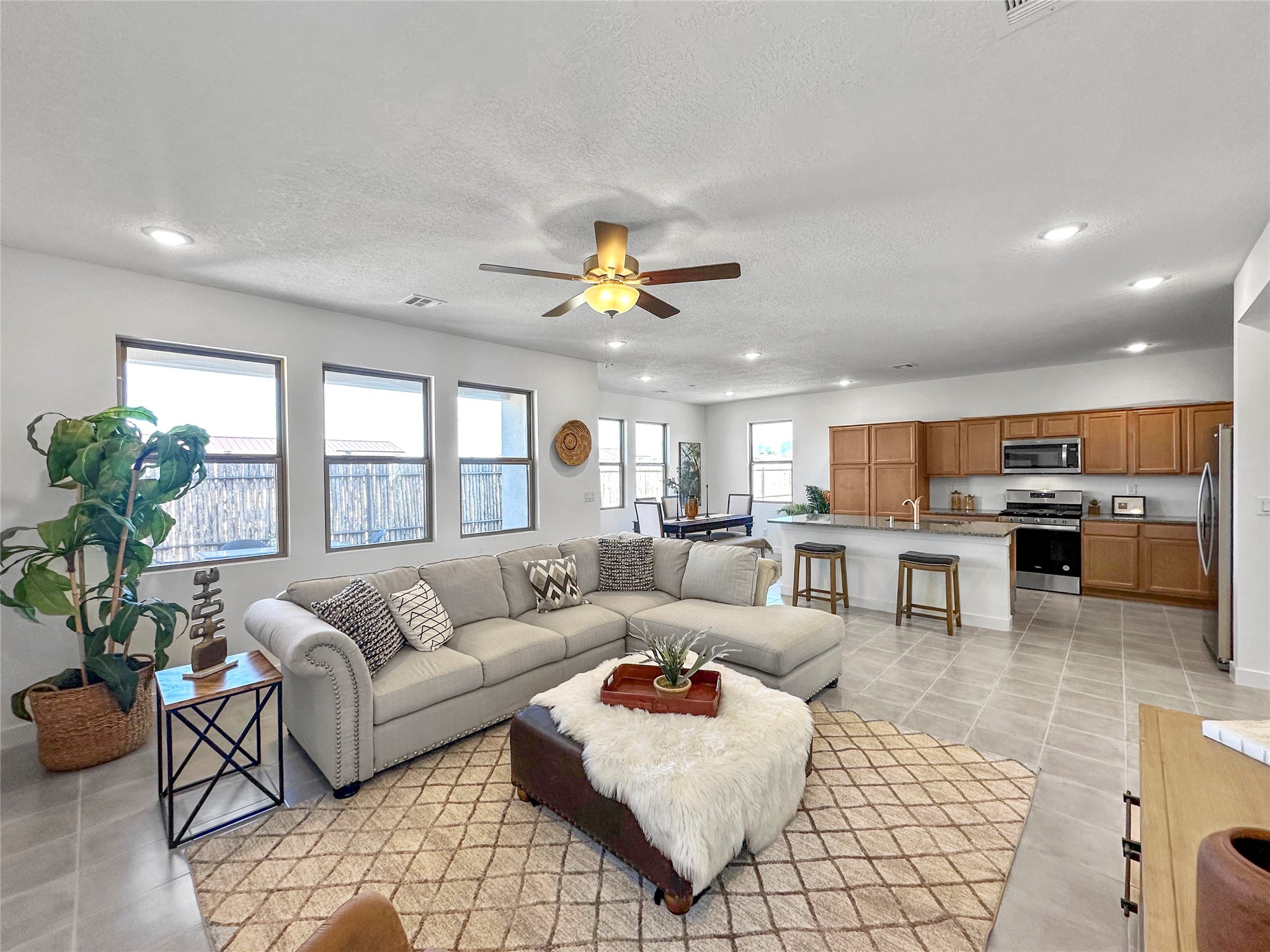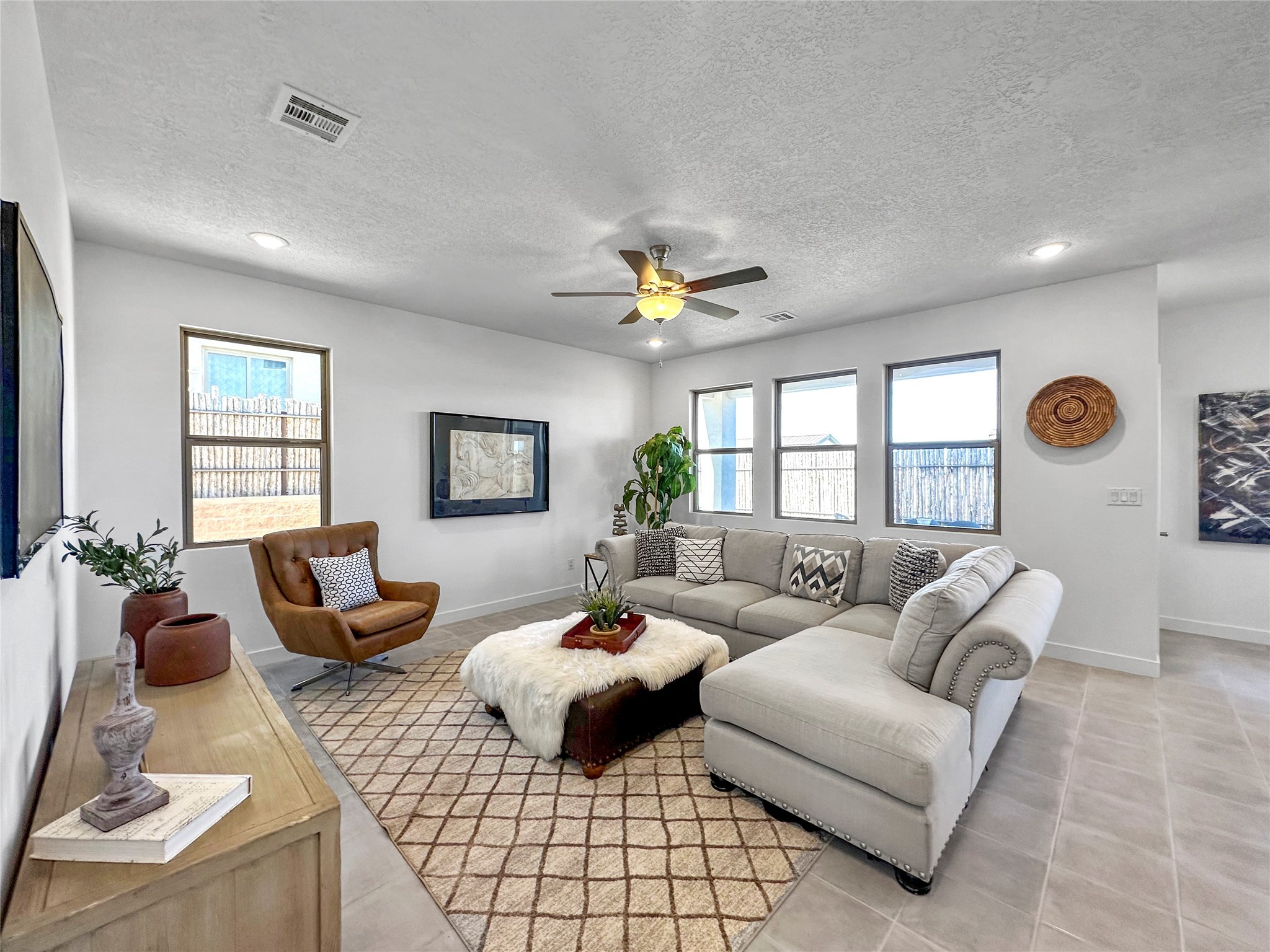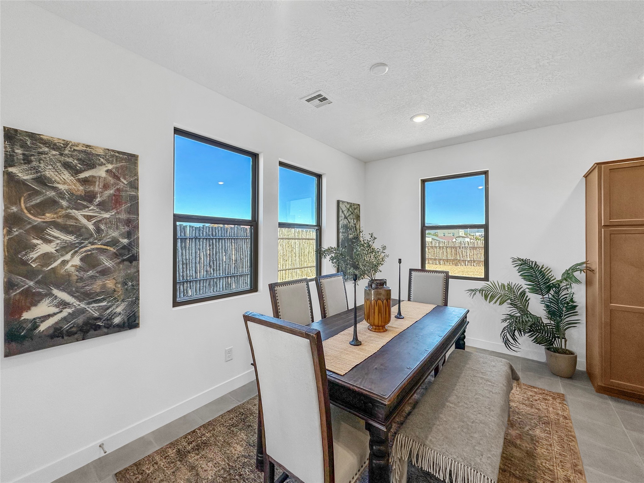 Welcome to this beautiful two-story Desert Sage home! Thoughtfully designed, it features spacious communal areas along with a versatile bonus room on the main floor, perfect for added privacy while still offering plenty of space for entertaining. Upstairs, the generous loft provides an additional place to unwind without sacrificing room for the three comfortable bedrooms.These exceptional homes are Build Green NM Certified and come equipped with energy-efficient features, including a tankless hot water heater, 100% blown-in recycled cellulose insulation, and low-E, double-pane windows. Front landscaping is also included and connected to a low-flow irrigation system, offering both convenience and sustainability.Come check out the big backyard, a wonderful space with endless potential for outdoor living, play, or relaxation.