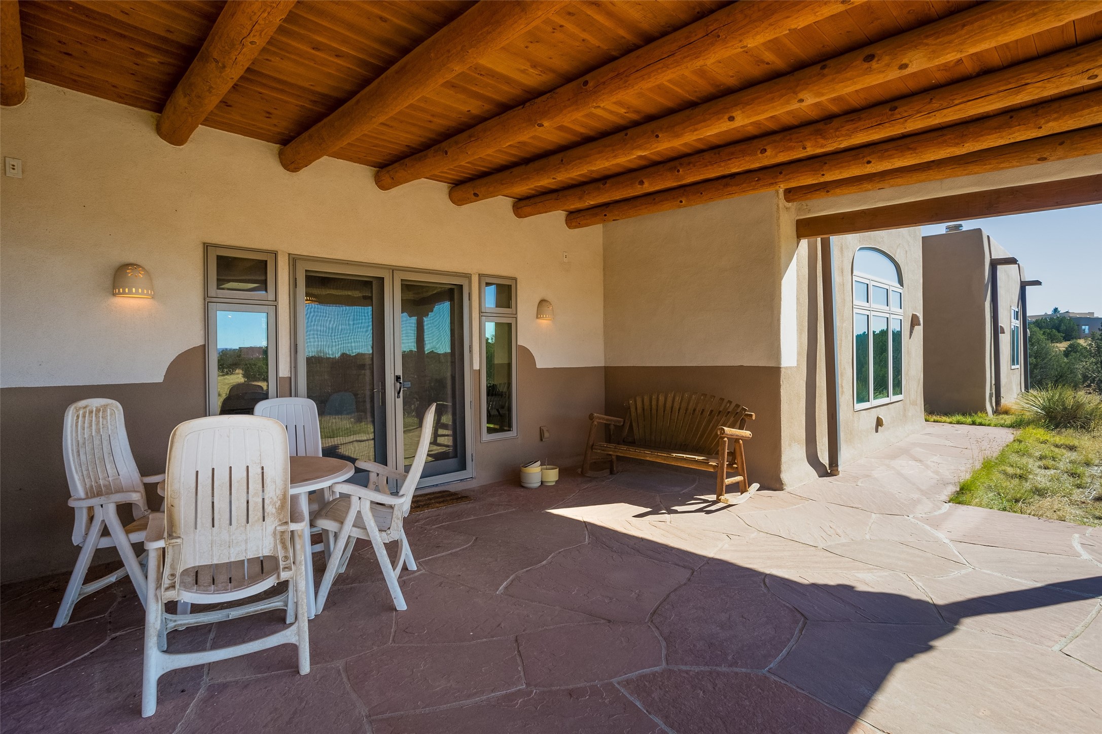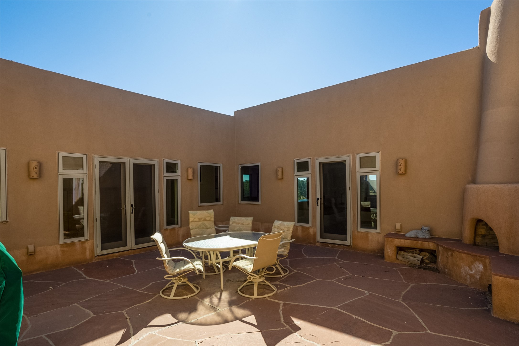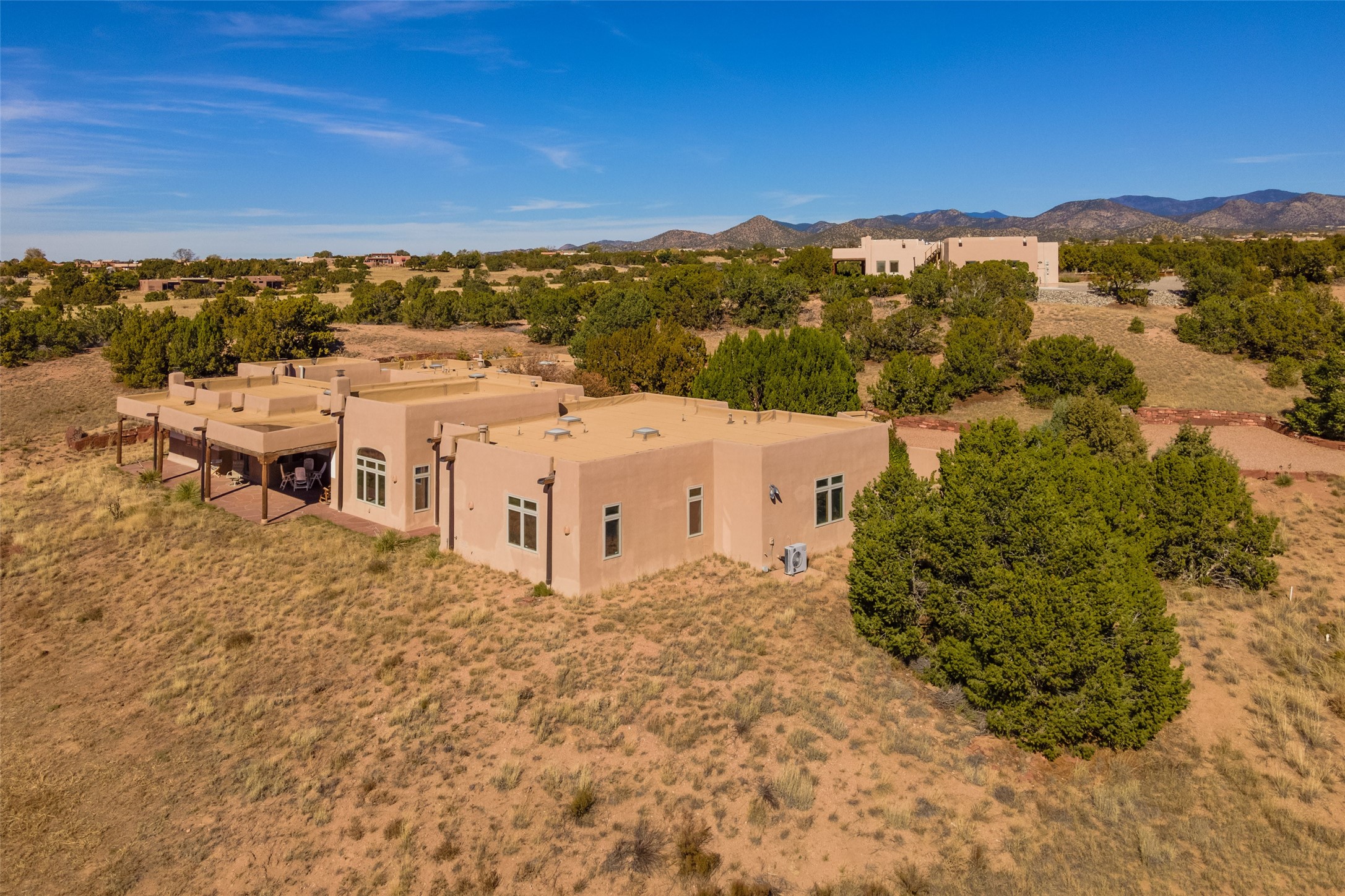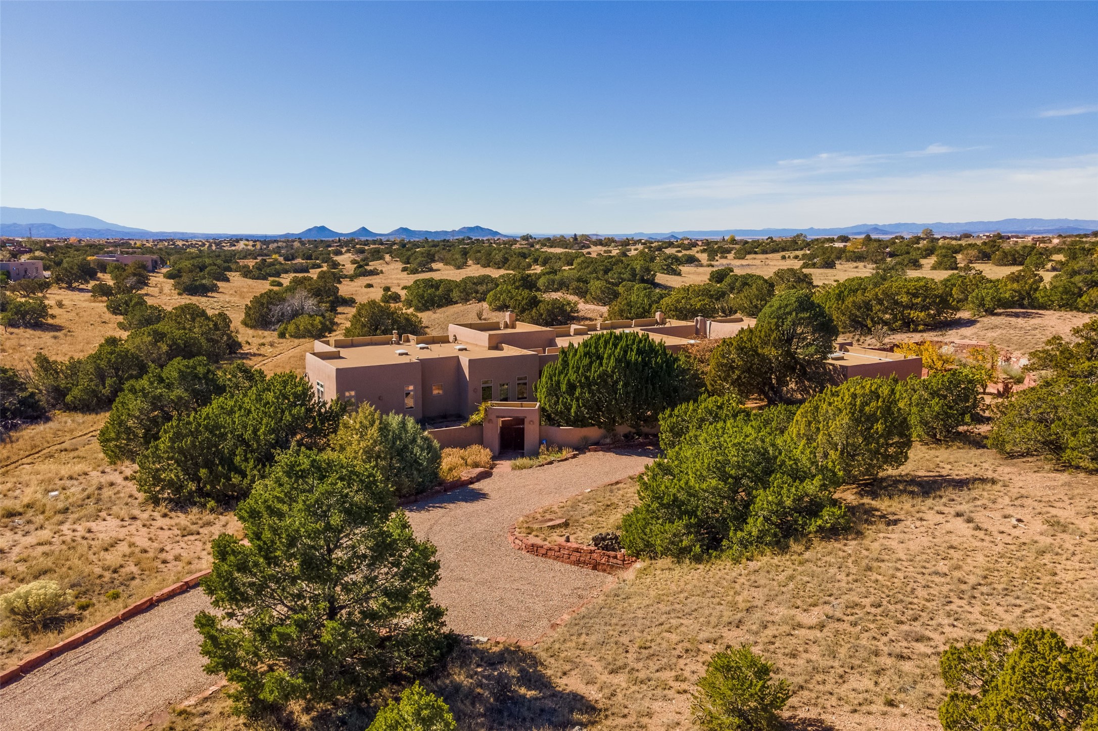 Exquisite Pueblo-Style Home nestled on a private 2.55-acre lot in the coveted El Dorado area, this stunning 5,315 sq ft single-story Pueblo-style home blends timeless Southwestern charm with modern comforts. Owned by the original owner since its 2004 build, this home offers a rare opportunity to own a true desert retreat. This spacious home features 4 bedrooms & 4 bathrooms, including 2 large primary suites. One suite offers a spa-like bath with garden tub, double sinks & 2 spacious walk-in closets--ideal for ample storage & comfort, while the other suite offers a walk-in shower, double vanities & 2 oversized walk-in closets. The design includes 2 bright & airy living areas with natural light pouring in from large windows, creating a welcoming, open atmosphere.A living room, dining room & 3 Kiva fireplaces (2 inside & 1 in the private courtyard) add to the warmth & inviting charm of the space. At the heart of this home is a commercial-grade chef's kitchen equipped with Wolf & Subzero appliances, two large kitchen islands & a massive butler's pantry perfect for both everyday cooking & large-scale entertaining. A built-in wine cooler completes this chef's dream space. Step outside into the serene courtyard with a covered patio & outdoor fireplace, a perfect spot to relax or entertain. With plenty of room for gatherings & Sandia Mountain views, this private outdoor oasis offers a peaceful retreat. The property is thoughtfully designed to provide privacy & a seamless indoor-outdoor living experience. Additional highlights include radiant heating, tile floors, ductless AC & wood beam ceilings, all contributing to the home's warmth & comfort in all seasons. The 2-car garage & expansive lot further enhance the home's appeal. With an incredible combination of space, privacy, luxury & potential, this Pueblo-style home offers the perfect balance of charm & modern living. Don't miss the chance to make this breathtaking property your own. Property to be sold "As Is".
