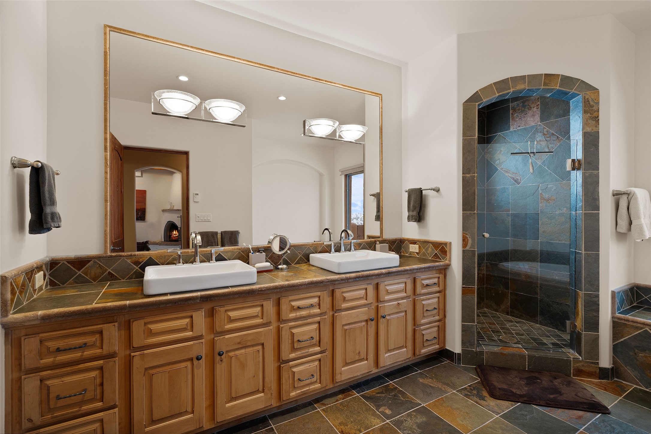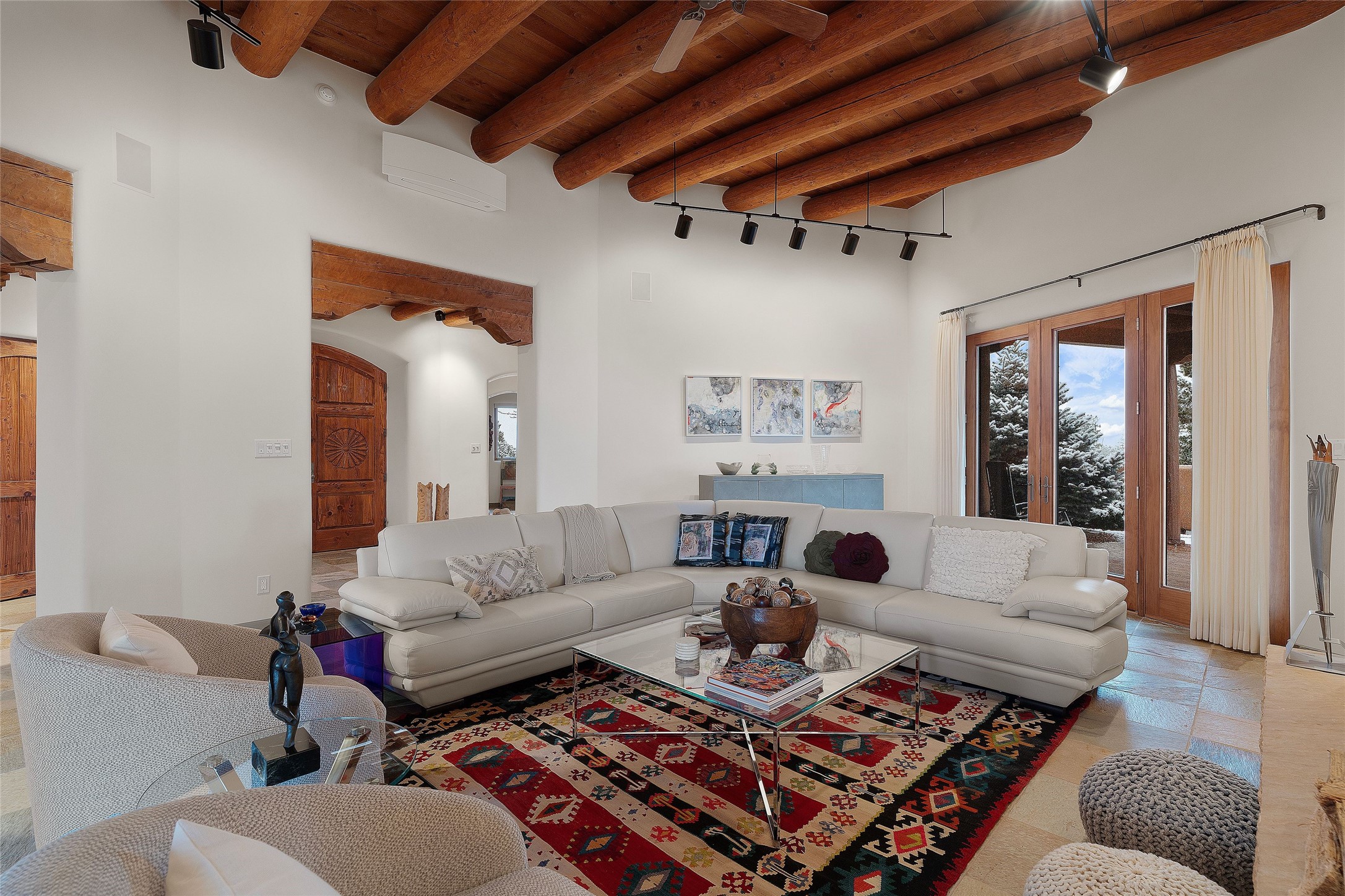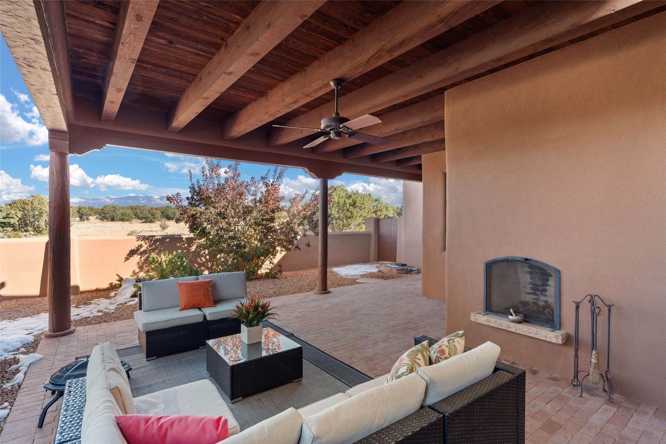 A stunning 3 bedroom/3.5 bedroom home beautifully sited on over 3 acres, providing impressive mountain views and privacy. Constructed by the award-winning Tierra Concepts, style, quality and wonderful functionality define this gorgeous residence. The primary suite is large and impressive, and the additional 2 bedroom suites occupy a very private location within the residence. There is also a large office, conveniently located close to the primary suite. One approaches this special residence from its long and private driveway. The kitchen is beautifully equipped and the living areas are smartly designed and perfect for quiet living or grand entertaining. The Seller owns an Equity Social membership to the Club at Las Campanas, which is available to the purchaser of the property at an additional cost. A complete furniture package is also available to the future owner.