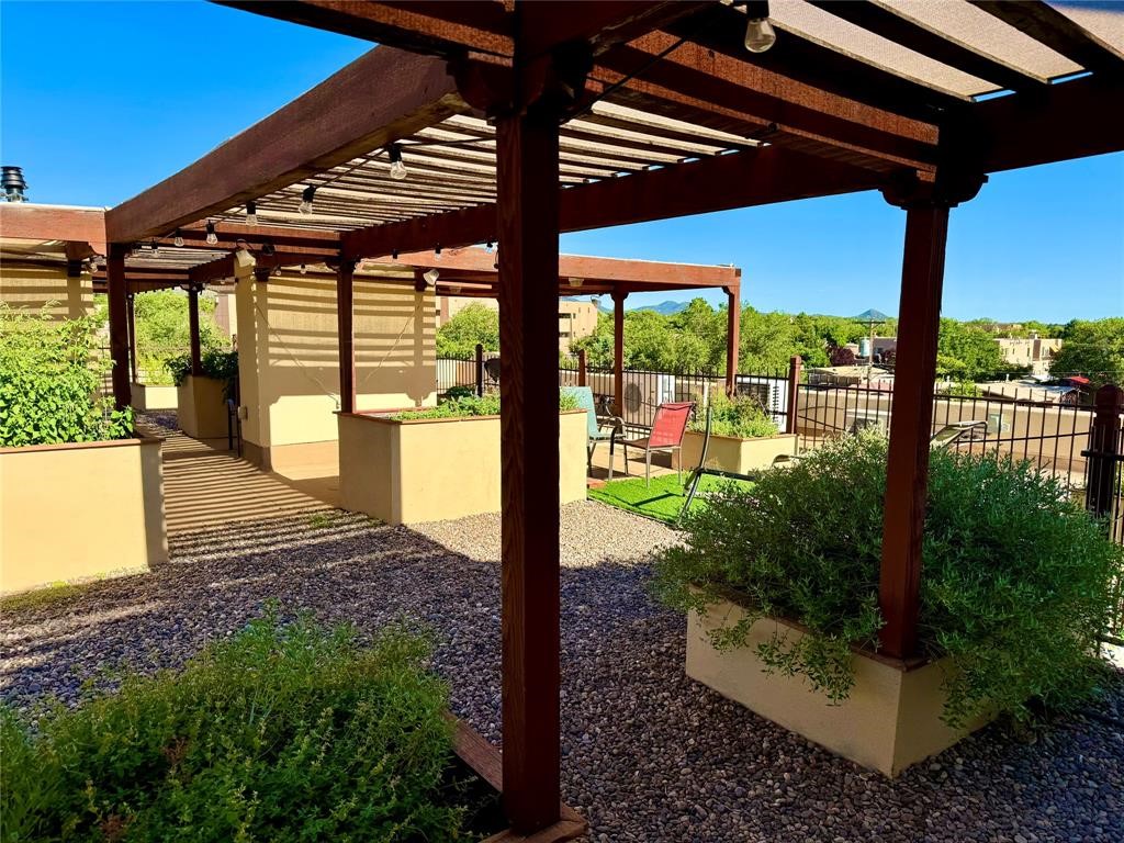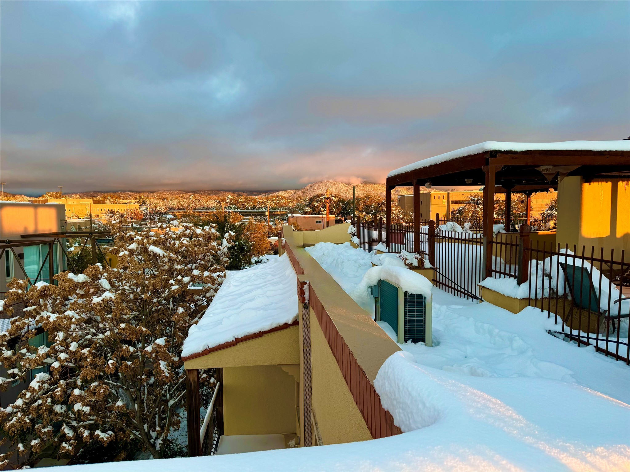 Located just one block from the South Capitol RailRunner Station, this stunning property offers unparalleled convenience. Situated near a variety of restaurants, grocery stores, and shopping centers, and only minutes from downtown Santa Fe, it combines accessibility with luxury. Designed with sustainability in mind, the property boasts energy-efficient features such as R-6 insulated (double glass) German windows, R-60 ceiling, and R-48 walls. These eco-friendly elements complement its elegant design. Bosch appliances, granite countertops, Italian porcelain tile flooring, and new wood composite flooring add to its luxurious appeal. Zoned as a live-work condo, the property offers flexibility in its use. Whether enjoying Santa Fe's beauty from one of two balconies, or taking in the breathtaking 360-degree infinity views from the rooftop garden, this unit provides an exceptional living and/or working experience.Unit is move-in-ready and is being sold "as-is".
