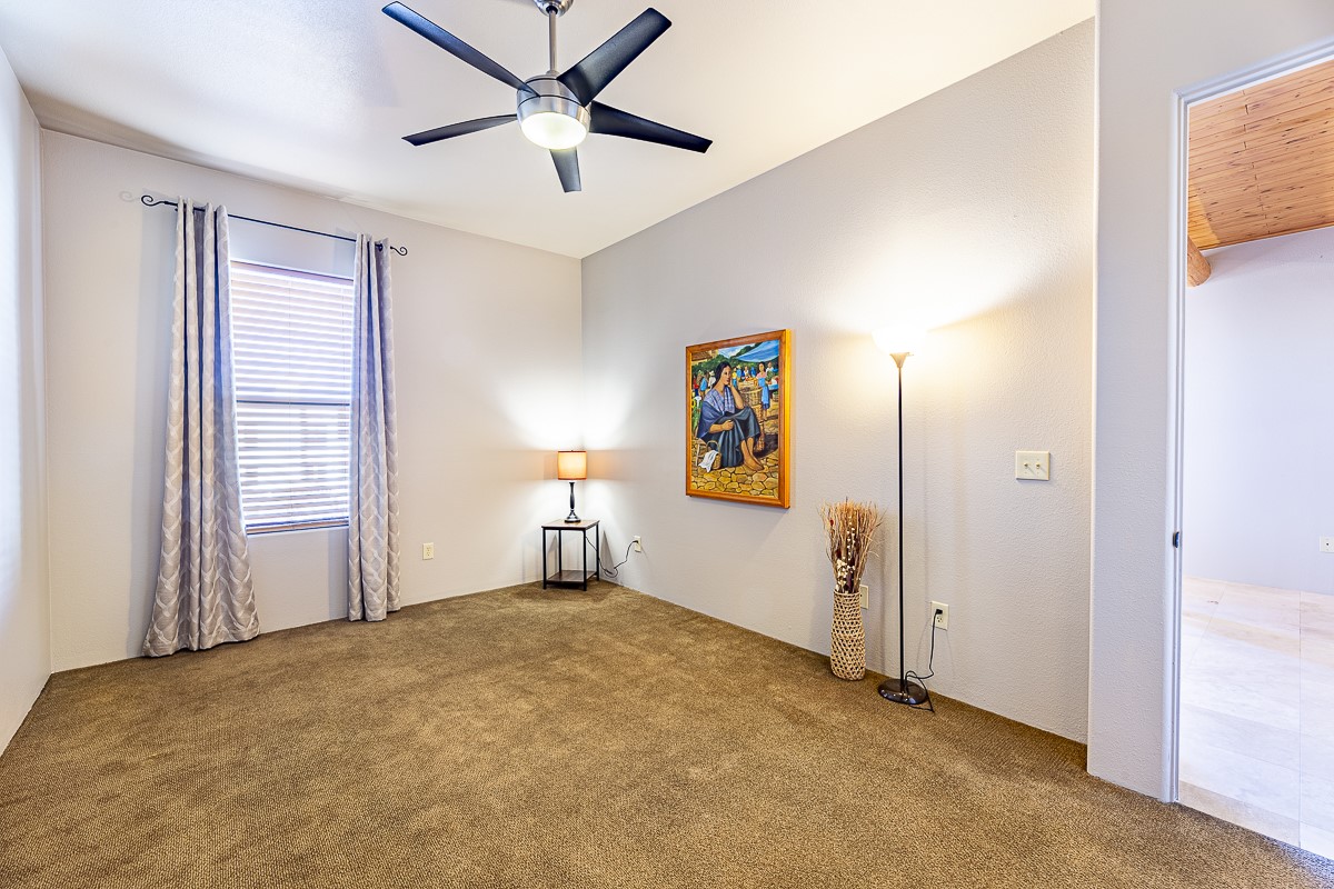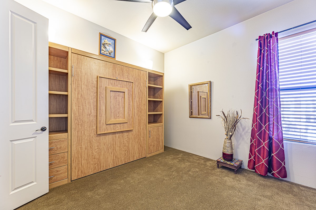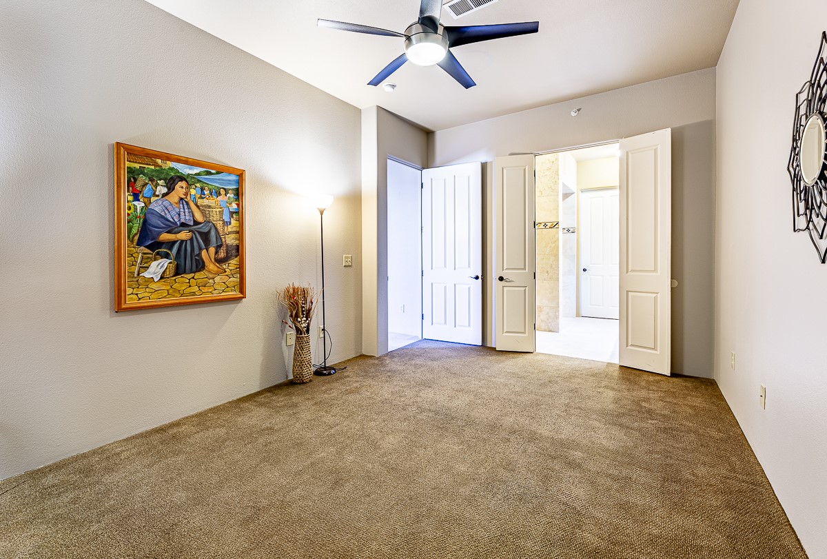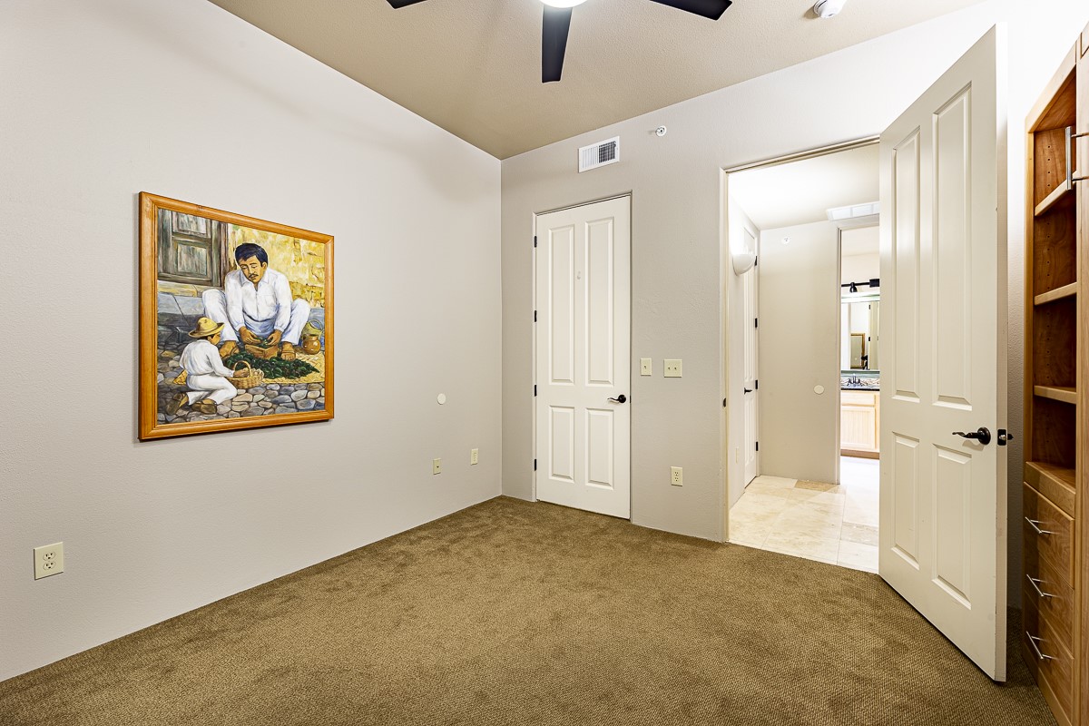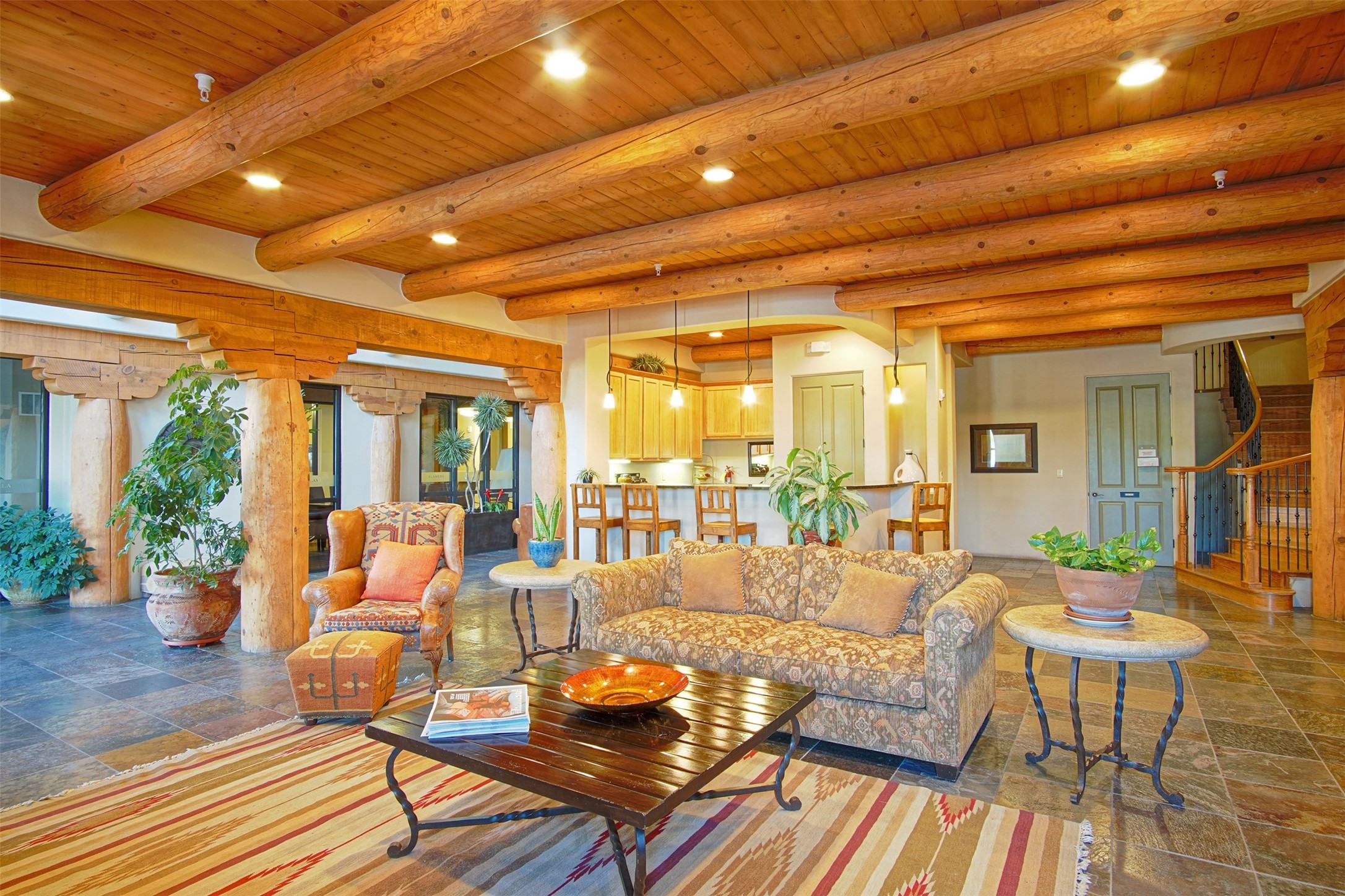 DRASTIC PRICE REDUCTION of 25K off original on this exceptional 2 BR/2 BA condo package with STORAGE UNIT and GARAGE. At 1275 sf, this is the LARGEST available, (the ONLY one currently on the market), and a RARE JEWEL, with a custom rehab by renowned designer-decorator Lisa Barker. Lisa's luxe finishes truly set this one apart: Luminous travertine baths and flooring, mosaic tile accents, and designer lighting all offer a beauy and refinement not found in other units. Other fabulous details: Coveted 3rd floor (with elevator) location, Patio with pool court view, 3 skylights, Granite countertops, Stainless steel appliances and W/D, 14K custom Murphy Bed, new bath faucets, paint, curtains and blinds, smoke/CO2 detectors and more. ***The package is complete with an adjacent STORAGE UNIT and an 1-car GARAGE (with storage loft)*** plus 2 additional parking spaces (non-reserved) in the gated lot. As for the Alameda, this landmark complex has set the standard for luxury condo living since 2008 with its Pueblo architecture, a magnificent pool court, fitness center, beautiful reception rooms, library, gated parking, elevators, full time onsite management, and 24 hr controlled access for your peace of mind. Located 12 mins from the plaza, and proximate to shopping, restaurants, culture, and major transportation, this location makes Santa Fe living a breeze. Don't wait, this is a CUT-ABOVE unit at a GIVEAWAY price!