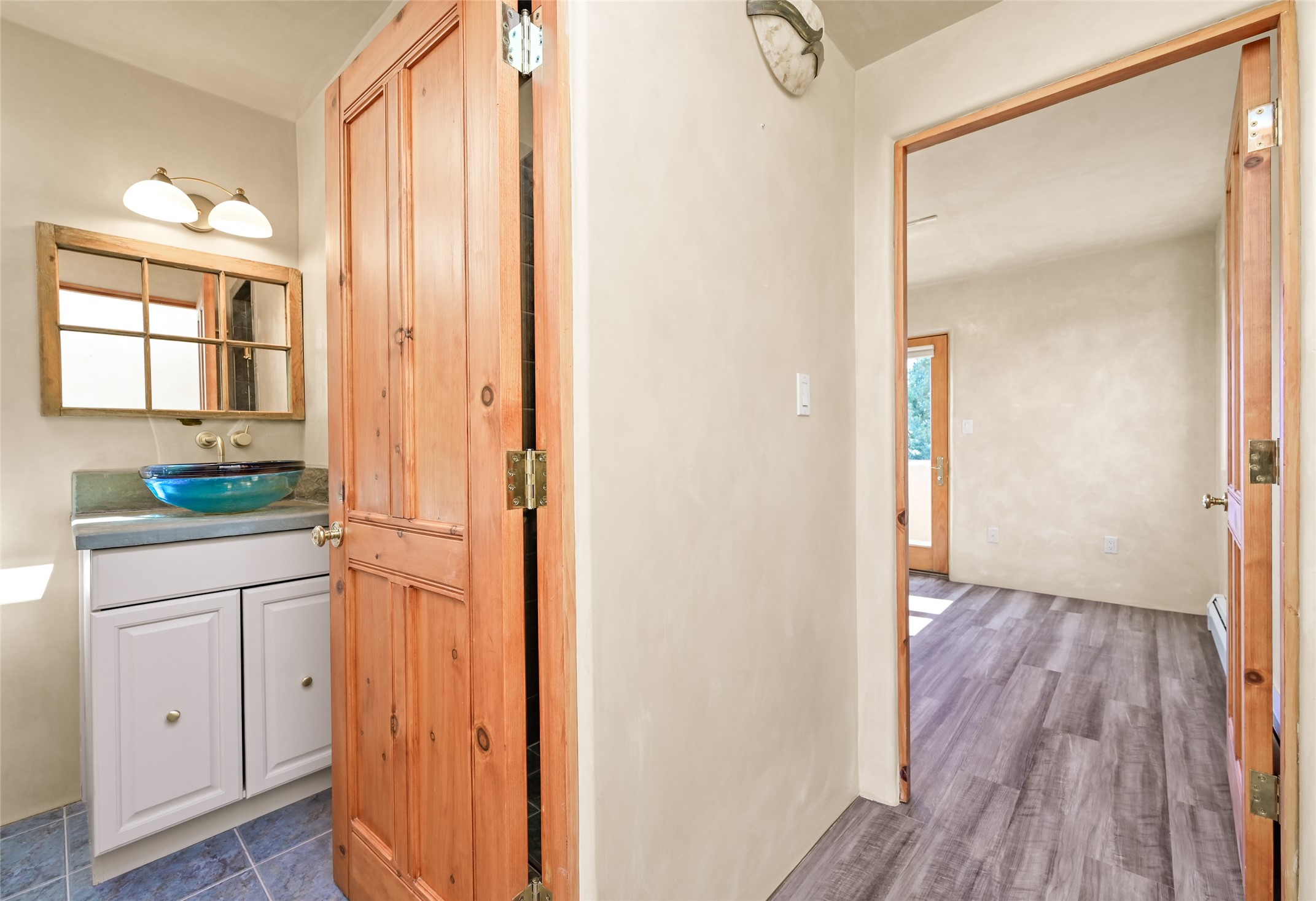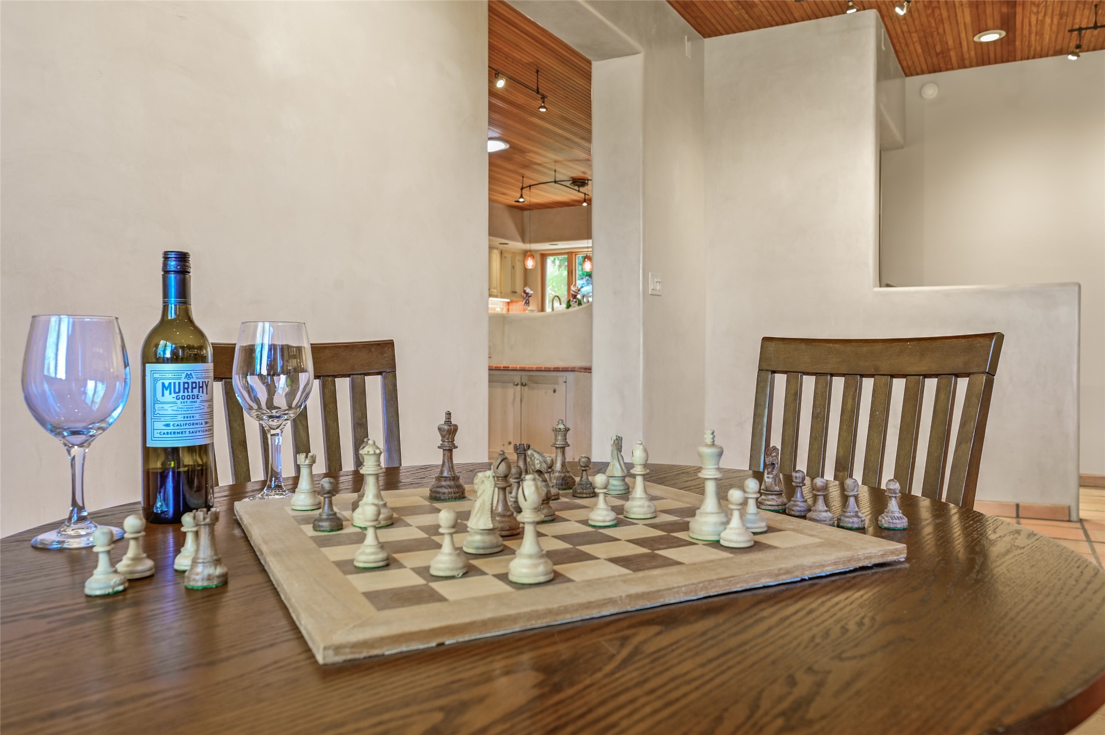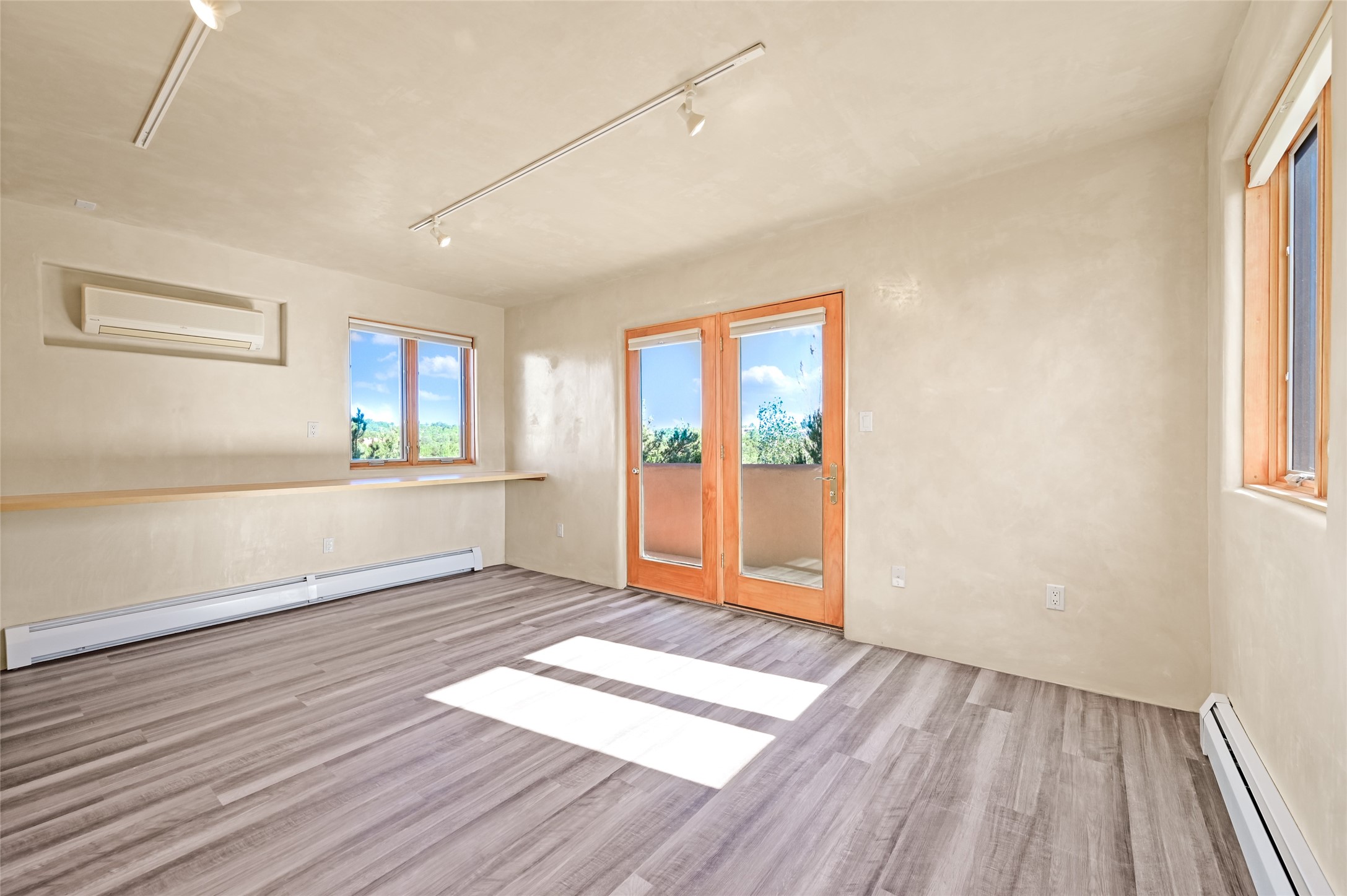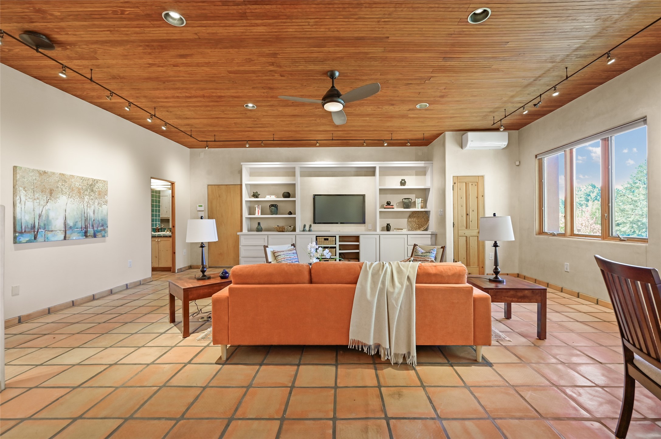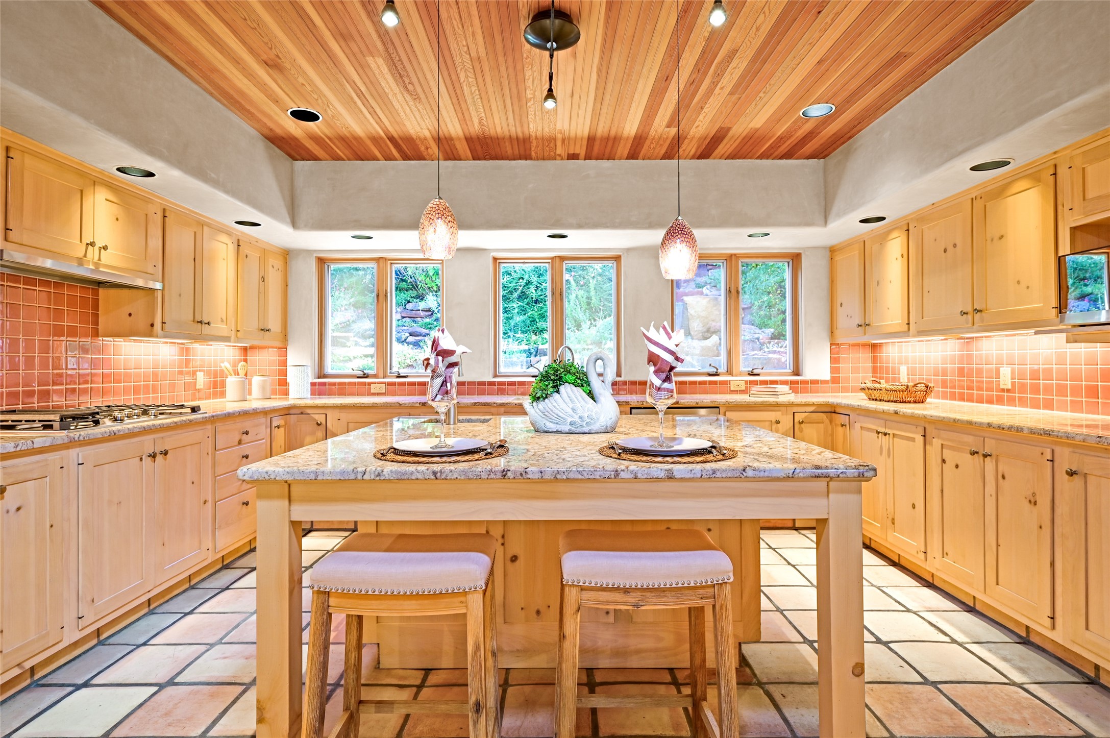 This oasis of a home is located close to downtown but far enough that you feel like you are at a private retreat. With multiple living areas inside and outside, this house can be a quiet space or offer an entertaining opportunity. With soaring ceilings, (some with tongue and groove, some with beams), plaster walls, saltillo tile, granite counters, fireplaces, and windows allowing the outside in throughout, this home is one to see and claim as your own. The outdoor spaces offer views, quiet time options and areas to enjoy family and friends throughout many of the months in Santa Fe. The upper level has an extra bedroom and a bonus room that currently operates as a workout room. Storage options abound throughout the house. From the kitchen window, you can watch the flowing fountain while you create that gourmet meal. The property is gated and has parking for at least 3 outside of the garages. Come and see it for yourself and you won't want to leave.