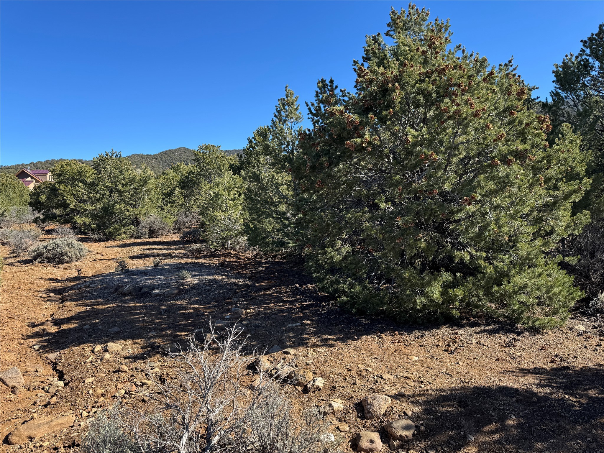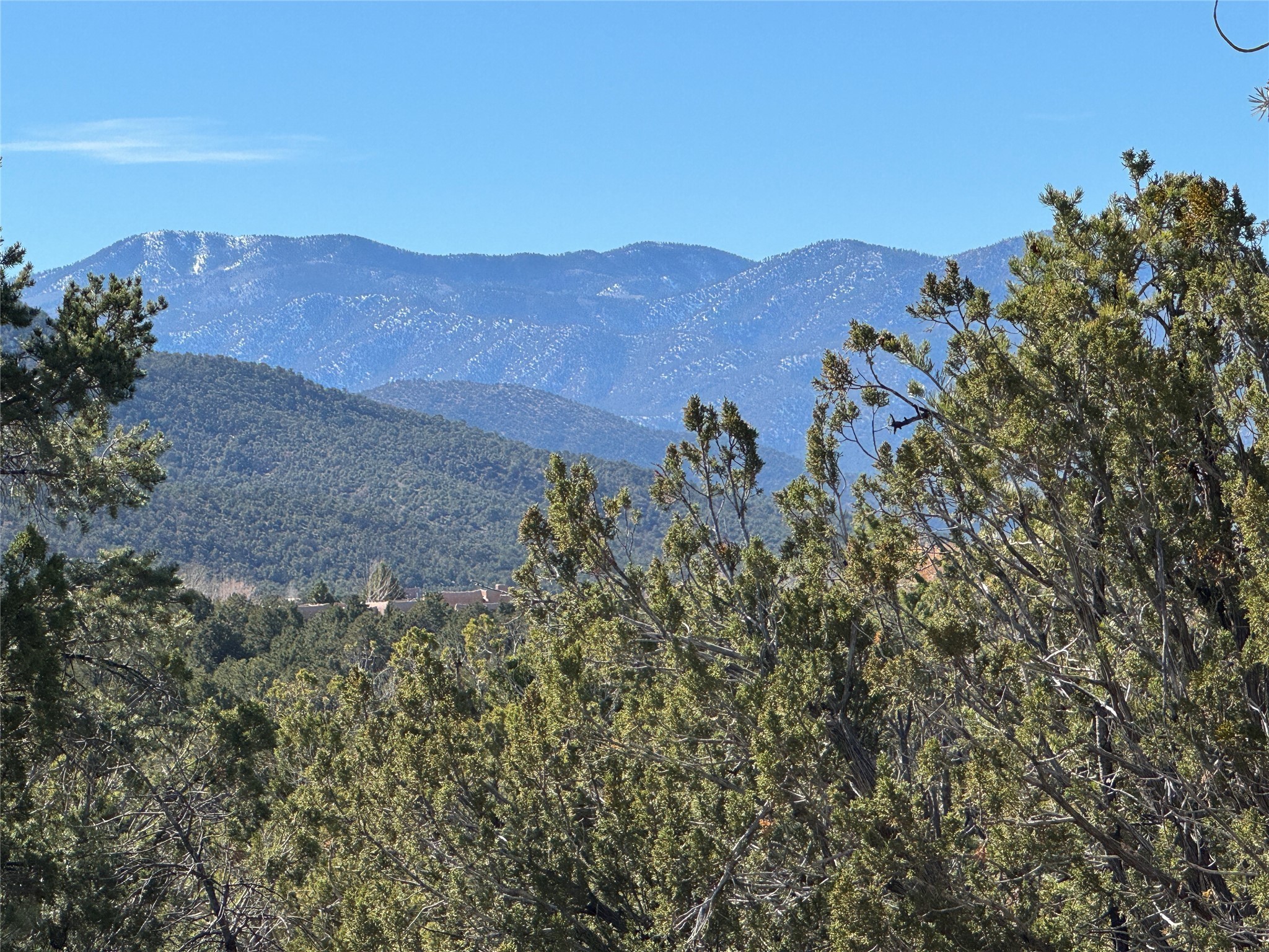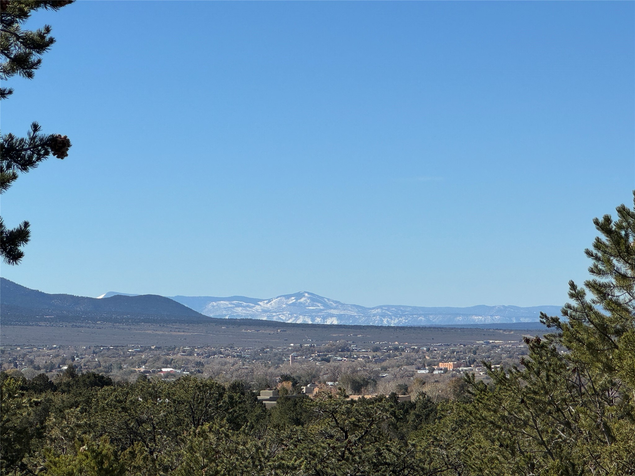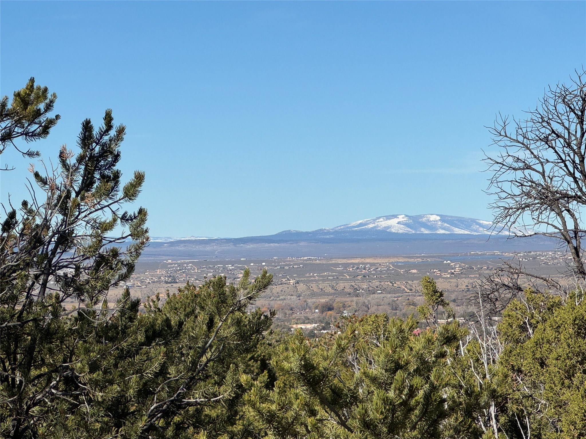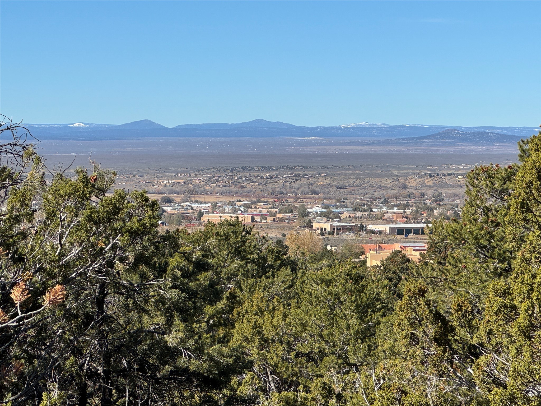 For the discriminating buyer looking for quiet privacy, forest access and forever views, this 3 acre Weimer Verde Road foothills lot is as good as it gets. Gently rolling terrain in an almost square shape offers a choice of building sites amongst the pion and juniper, and a long border with the Kit Carson National Forest. Walk outside your door and access hiking and biking trails for as far as you like. The highest lot up in the Weimer foothills with an elevation of approximately 7300 feet. Looming foothills views, wrap around Sangre de Cristo mountain views from the Jemez between Albuquerque and Santa Fe to Taos Mountain, and into Colorado. Commanding sunset views of the entire Taos Valley. All this in the heart of town less than 15 minutes from Taos Plaza. You would never know it once you're home. Natural gas and fiber optic Internet in the road. Well and septic required. No large arroyos. GPS: 36.36781941387119, -105.55915863174438. Easy restrictions and no HOA. Minutes from all local amenities and entertainment! * To view property drive to between #577 (bronze gate with donkey medallion) and #579 on your left. On east side of road look for our sign below an orange survey ribbon in the pinon tree behind it. The ribbon indicates the center line of the 40' access easement to Tract 5 (please refer to survey). Follow the ribbons, walking to the south (right) side of the ribbons up the gentle slope and you will see weathered survey stakes that remain from flagging of easement north and south boundaries. Please try to stay within the easement while walking to the top of the easement. You will find survey stakes denoting the SW corner of Tract 5. From there you may walk the entire property up to the National Forest fencing.
