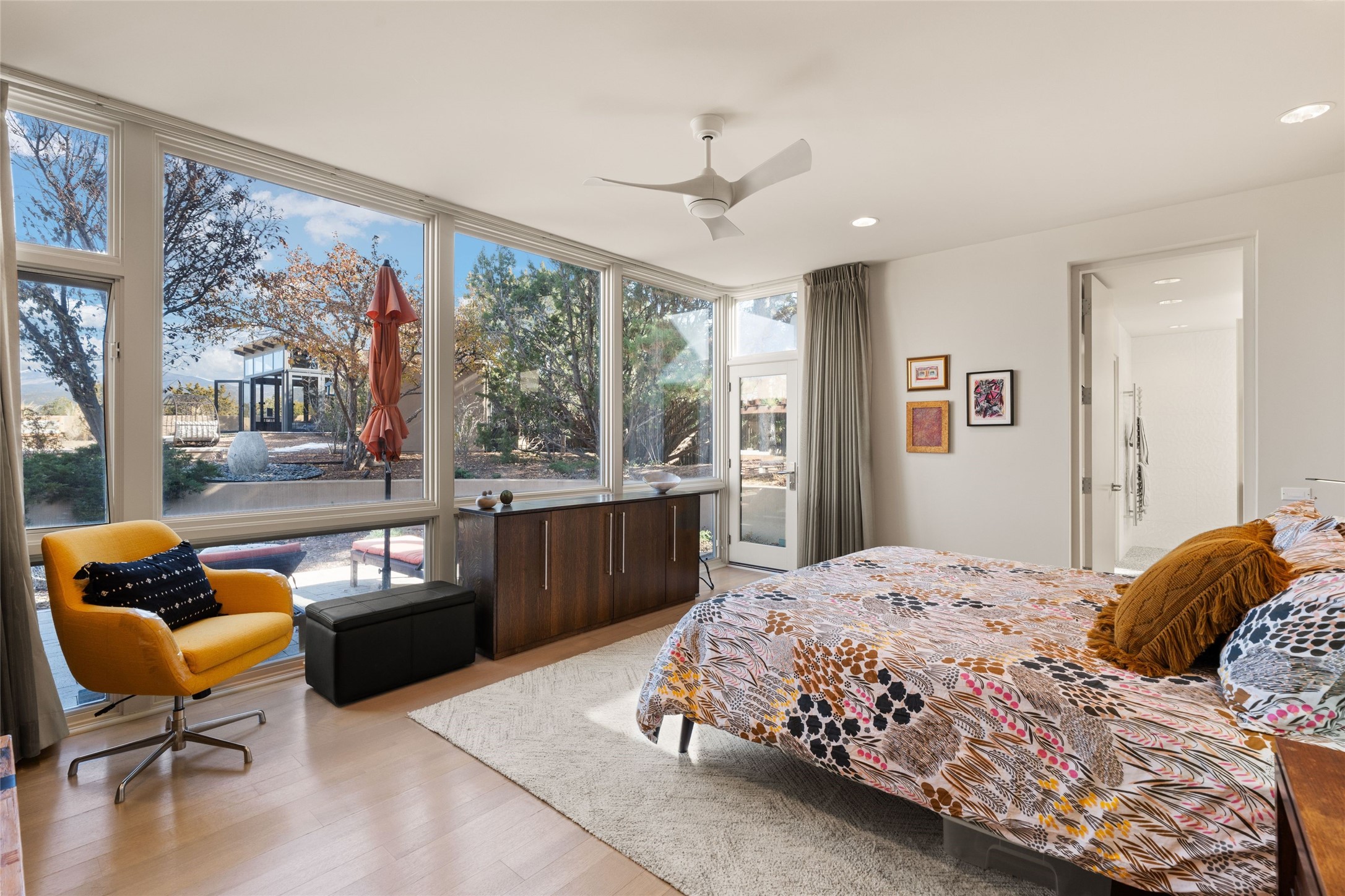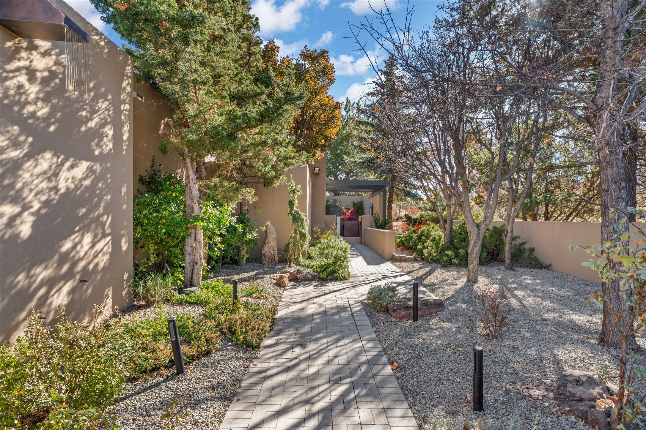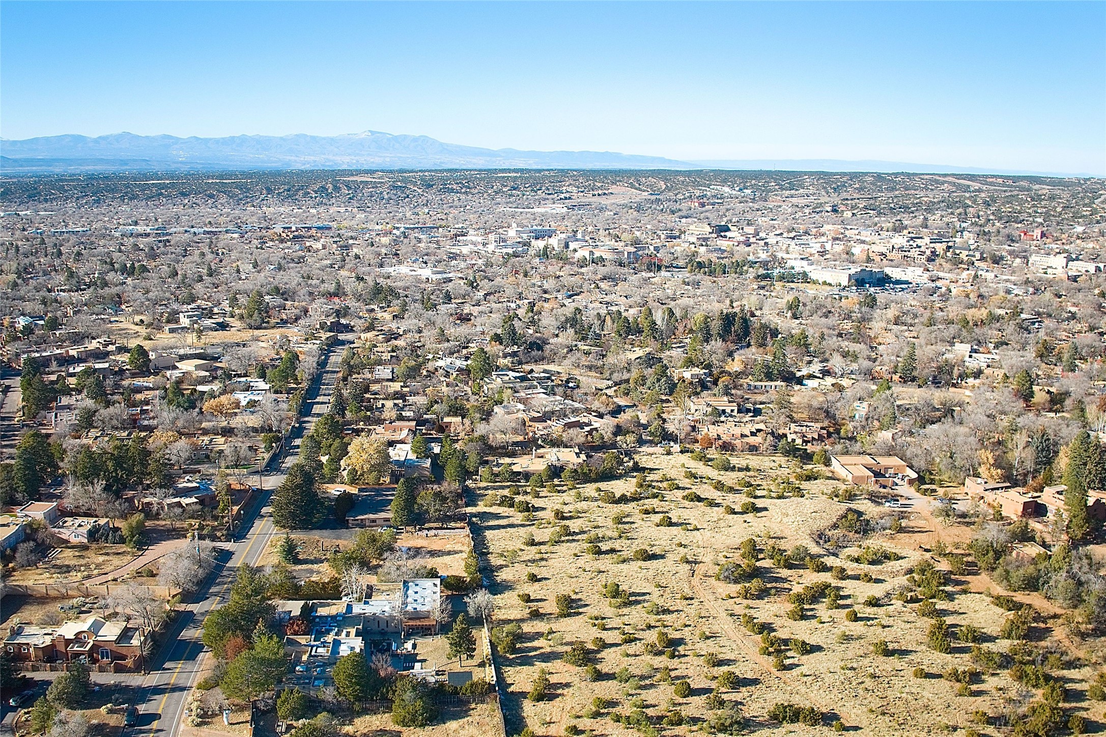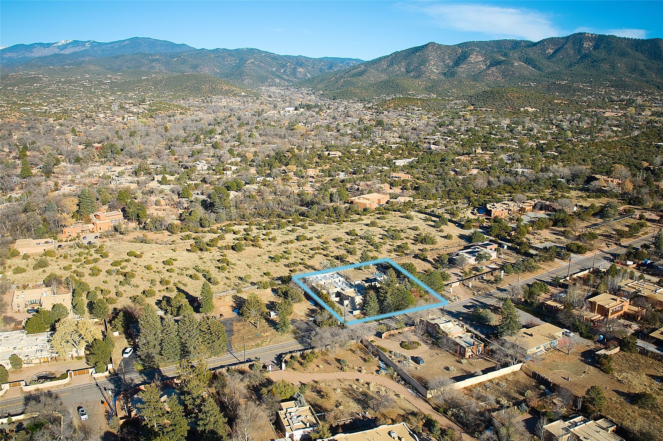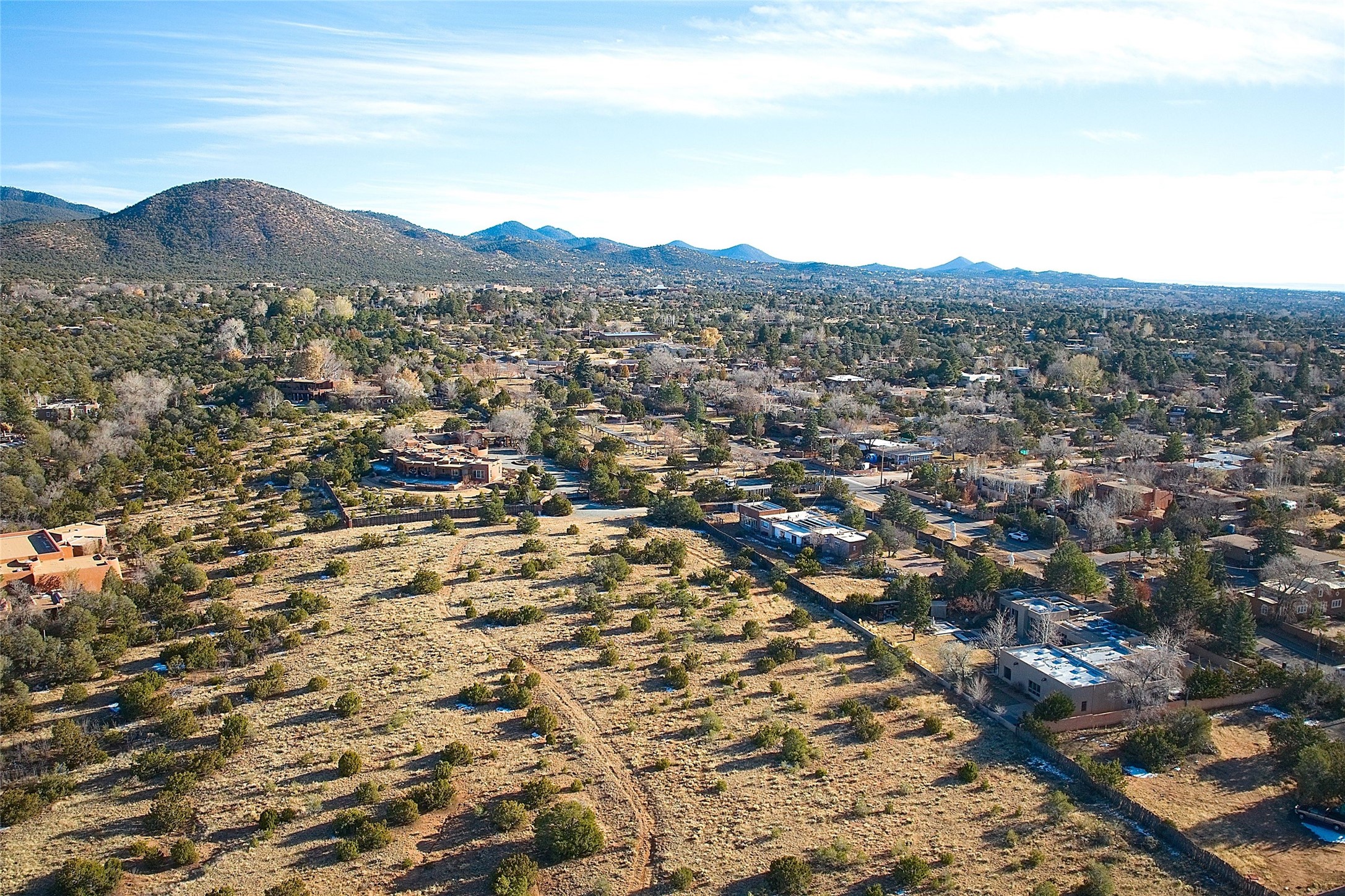 Remarkable. To be on Old Santa Fe Trail with majestic, panoramic views overlooking dedicated open space towards the Sangre de Cristo Mountains in a one-level, light filled Contemporary Masterpiece that had a major renovations done in 2021 is a singular opportunity. The home features a gleaming new kitchen, spectacular new baths in the main suites, expansive open spaces and your own private resort in the backyard. The current owners lovingly and intelligently renovated and elevated this bright, open space that lets the outside in - from the views to the private backyard featuring koi pond, plunge pool, fire pit and gazebo. - this home surprises on every level. The kitchen/living room arrangement now flows to match today's lifestyle and provides a wonderful backdrop for art lovers as well as a grand entertaining space. The large, totally renovated kitchen has a 16' island with Wolf/Sub Zero appliances, including an induction cooktop and steam oven. The new butler pantry provides additional storage, a freezer, second oven, and second microwave. A chef's kitchen perfect for entertaining. The library off the primary bedroom, along with an attached bedroom or workout space and additional bath - make for a private suite area that is comfortable for day-to-day living.The extraordinary north area with 2nd primary suite, is rare to say the least. The area, with one of Santa Fe's great media rooms, has soaring ceiling height, great walls for the largest flat screens, and walls of glass that frame the magnificent views of the rear of the property and the Sangres. The next space in the north section of the house functions as a ceramics studio for the current owners, but could be a command-central home office sharing the attributes of the media room as well or an extended master closet. The great primary suite with views and volume, is cloistered away from the rest of the home for privacy and quiet and is serviced by a brand new bathroom. The attached guest quarters is ideal for many living situations, maintaining privacy and comfort. One cannot overestimate the convenience of being close-in Old Santa Fe Trail and the ability to enjoy downtown Santa Fe on a moment's notice. All in all, this is one of the most extraordinary offerings in the entire Santa Fe marketplace with views of the Sangre's that can never be obstructed.