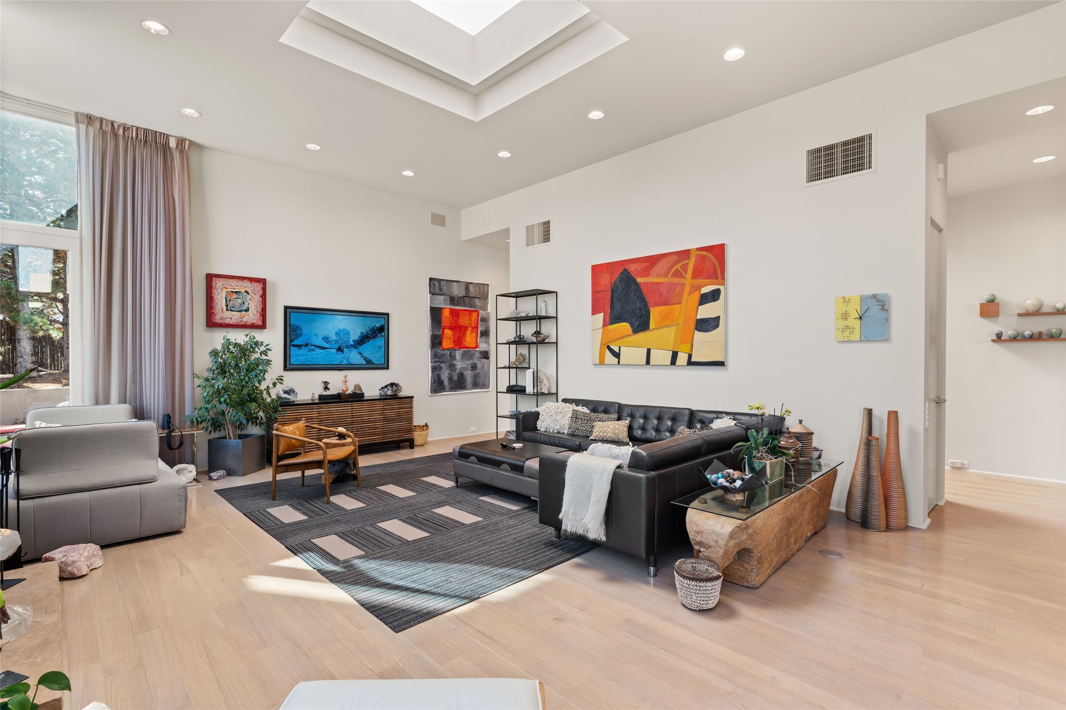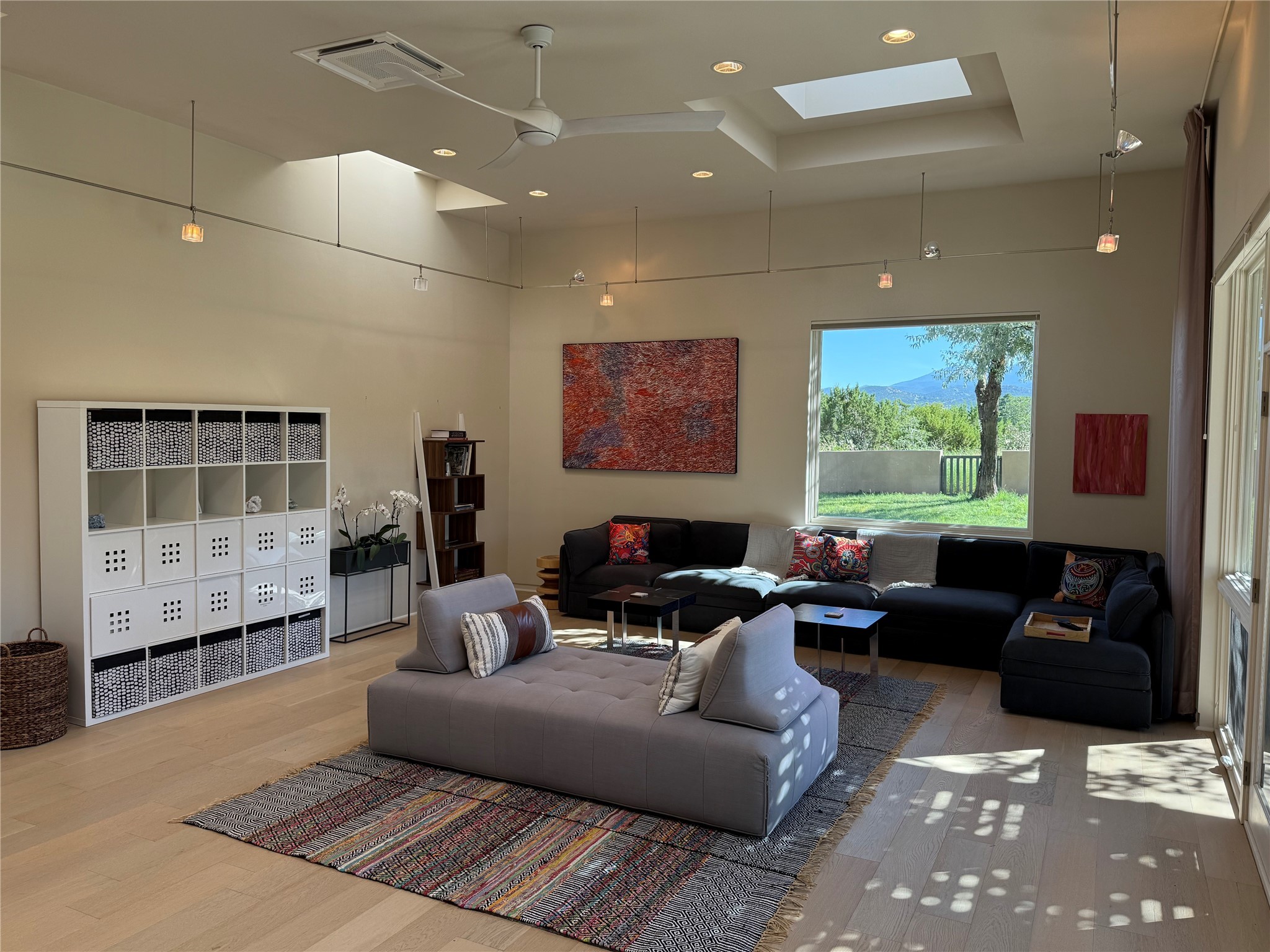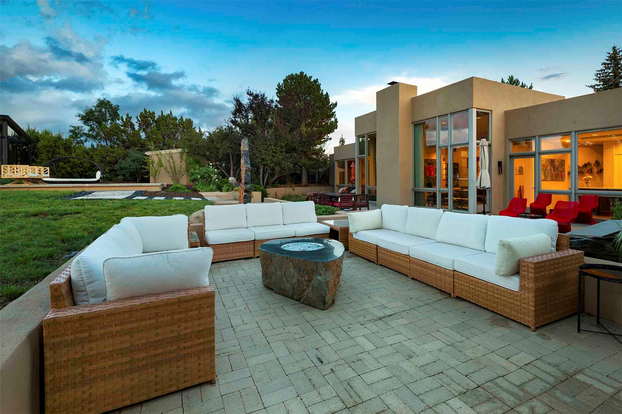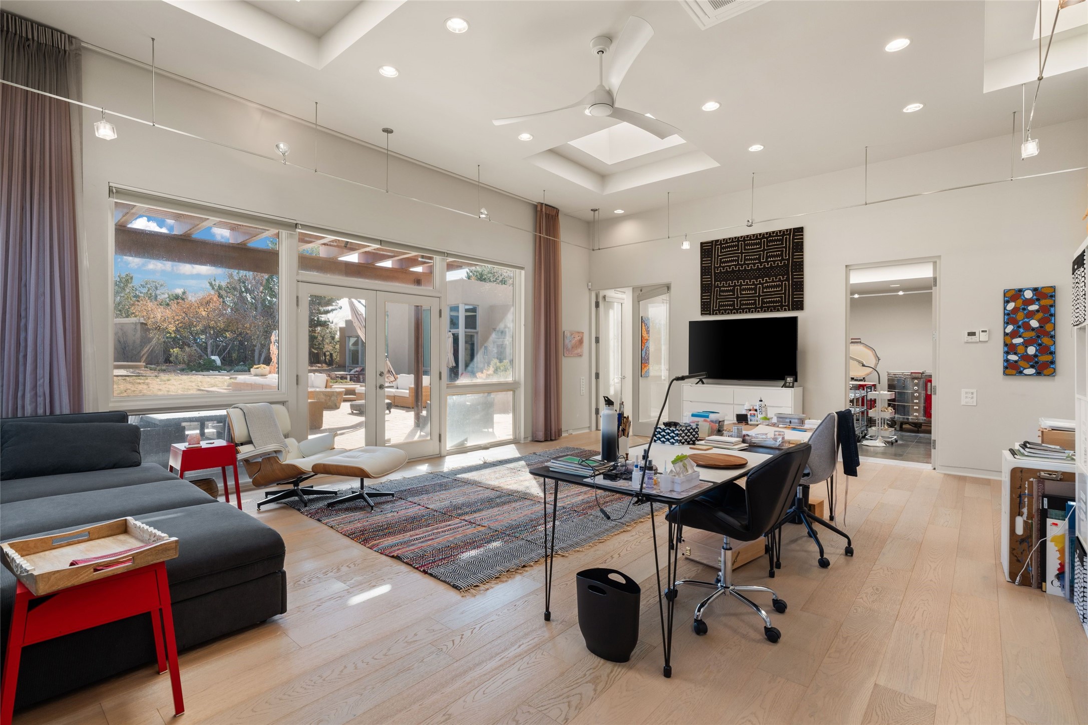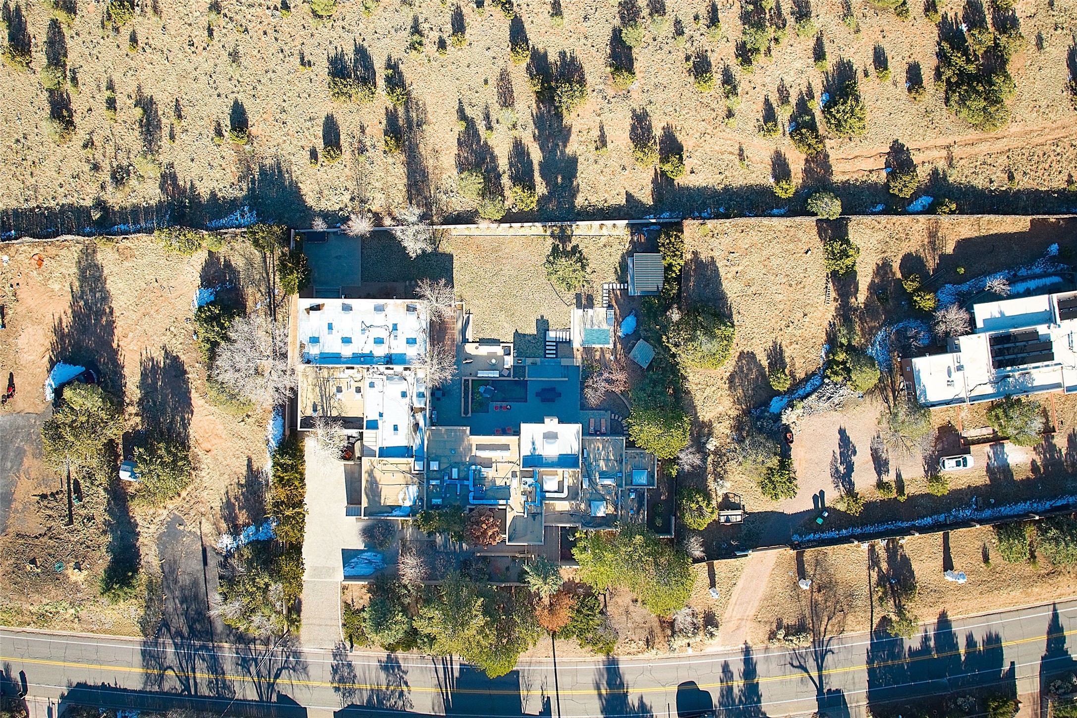 Remarkable. To be on Old Santa Fe Trail with majestic, panoramic views overlooking dedicated open space towards the Sangre de Cristo Mountains in a one-level, light filled Contemporary Masterpiece that had a major renovations done in 2021 is a singular opportunity. The home features a gleaming new kitchen, spectacular new baths in the main suites, expansive open spaces and your own private resort in the backyard. The current owners lovingly and intelligently renovated and elevated this bright, open space that lets the outside in - from the views to the private backyard featuring koi pond, plunge pool, fire pit and gazebo. - this home surprises on every level. The kitchen/living room arrangement now flows to match today's lifestyle and provides a wonderful backdrop for art lovers as well as a grand entertaining space. The large, totally renovated kitchen has a 16' island with Wolf/Sub Zero appliances, including an induction cooktop and steam oven. The new butler pantry provides additional storage, a freezer, second oven, and second microwave. A chef's kitchen perfect for entertaining. The library off the primary bedroom, along with an attached bedroom or workout space and additional bath - make for a private suite area that is comfortable for day-to-day living.The extraordinary north area with 2nd primary suite, is rare to say the least. The area, with one of Santa Fe's great media rooms, has soaring ceiling height, great walls for the largest flat screens, and walls of glass that frame the magnificent views of the rear of the property and the Sangres. The next space in the north section of the house functions as a ceramics studio for the current owners, but could be a command-central home office sharing the attributes of the media room as well or an extended master closet. The great primary suite with views and volume, is cloistered away from the rest of the home for privacy and quiet and is serviced by a brand new bathroom. The attached guest quarters is ideal for many living situations, maintaining privacy and comfort. One cannot overestimate the convenience of being close-in Old Santa Fe Trail and the ability to enjoy downtown Santa Fe on a moment's notice. All in all, this is one of the most extraordinary offerings in the entire Santa Fe marketplace with views of the Sangre's that can never be obstructed.