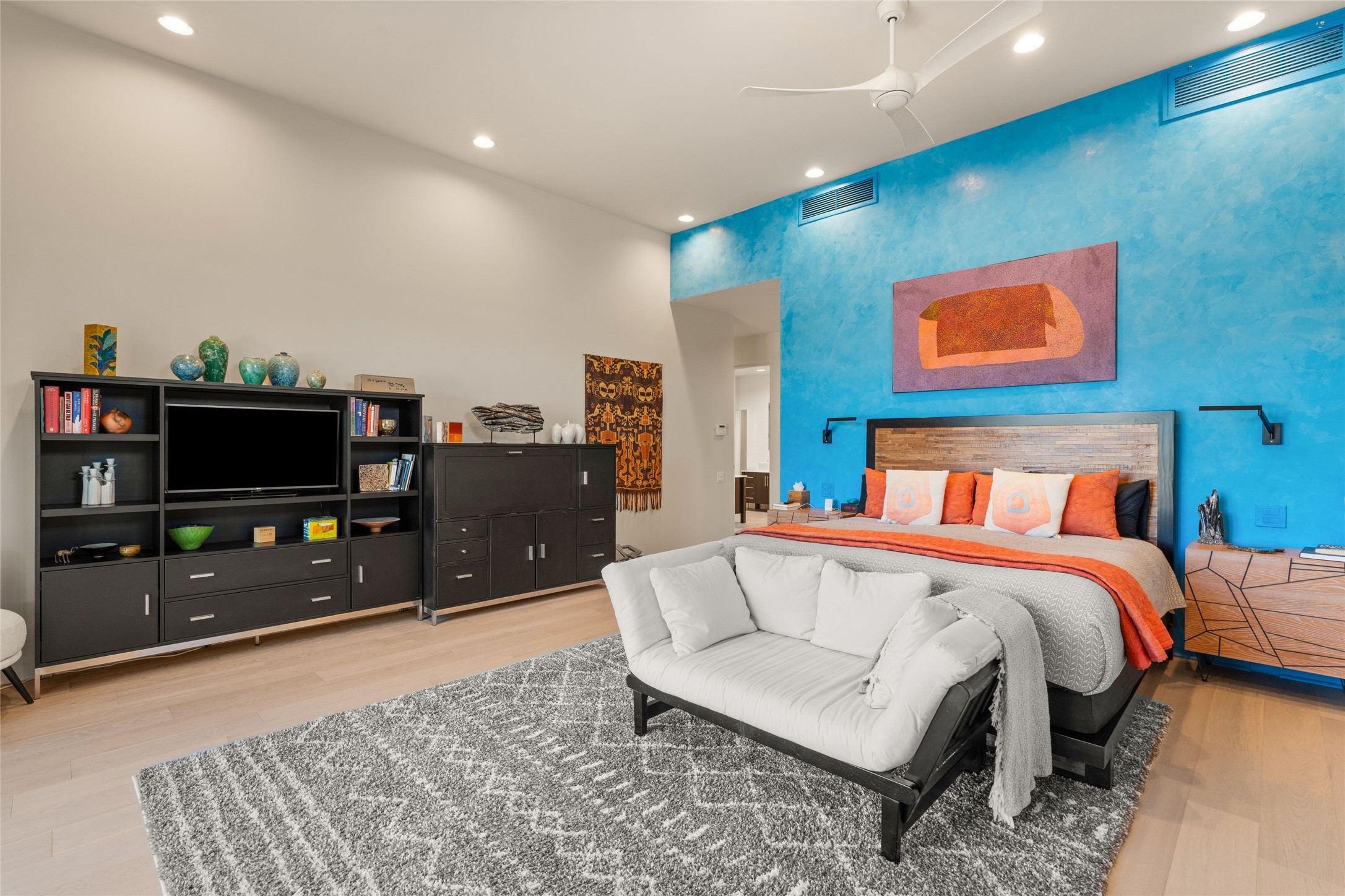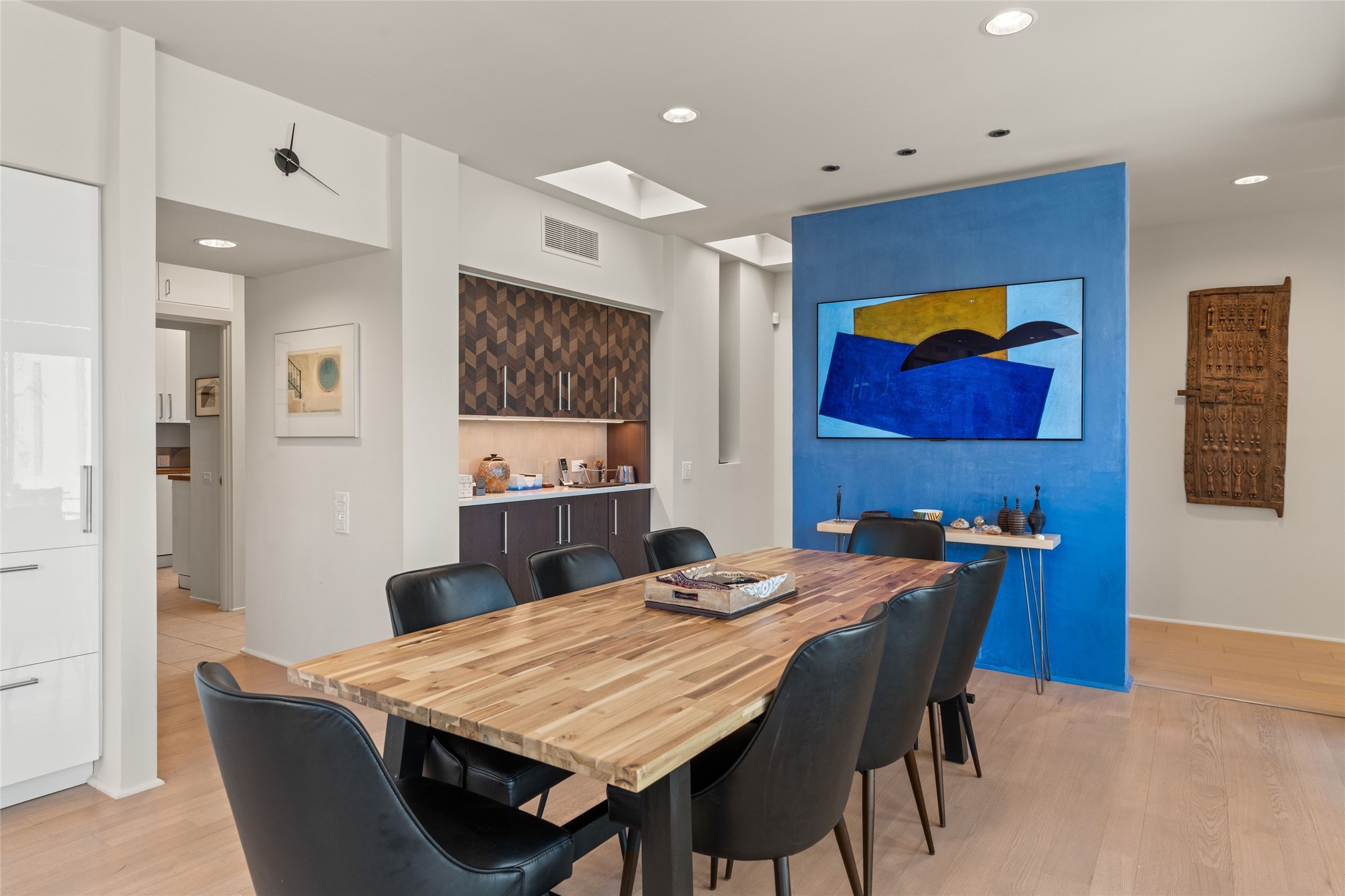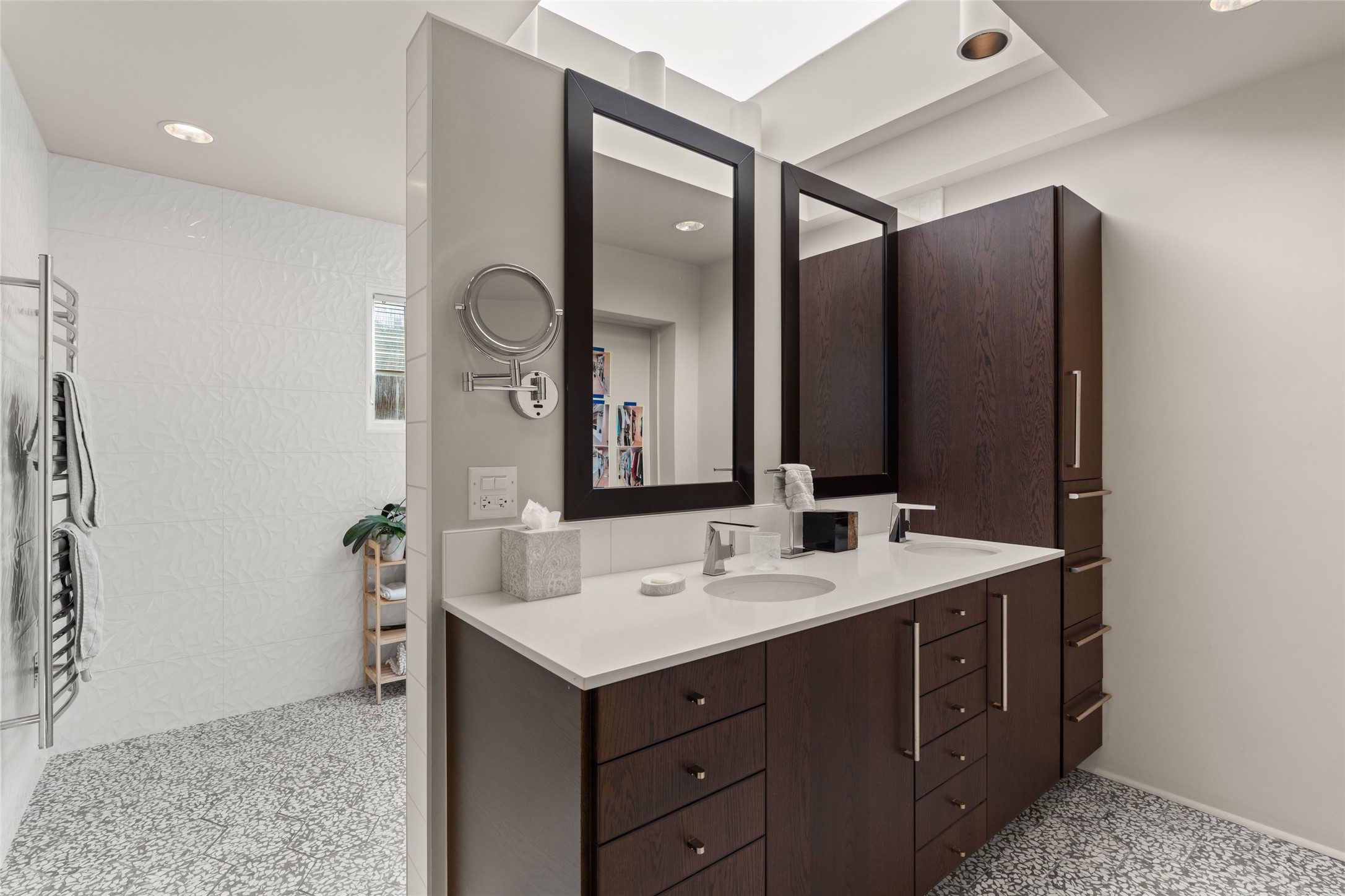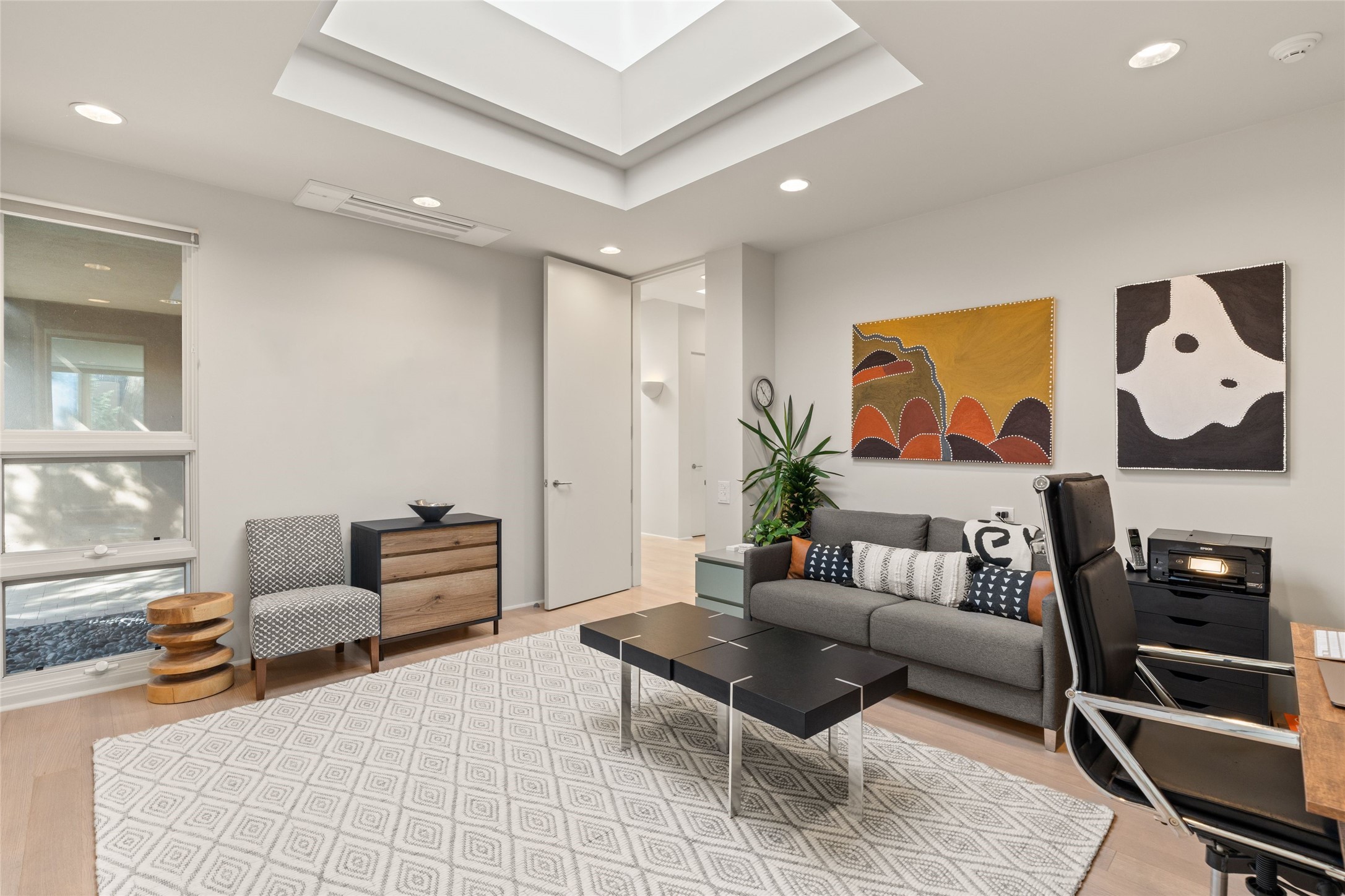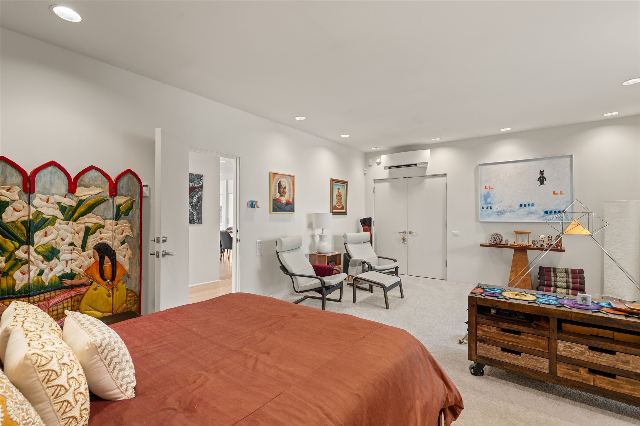Remarkable. To be on Old Santa Fe Trail with majestic, panoramic views overlooking dedicated open space towards the Sangre de Cristo Mountains in a one-level, light filled Contemporary Masterpiece that had a major renovations done in 2021 is a singular opportunity. The home features a gleaming new kitchen, spectacular new baths in the main suites, expansive open spaces and your own private resort in the backyard. The current owners lovingly and intelligently renovated and elevated this bright, open space that lets the outside in - from the views to the private backyard featuring koi pond, plunge pool, fire pit and gazebo. - this home surprises on every level. The kitchen/living room arrangement now flows to match today's lifestyle and provides a wonderful backdrop for art lovers as well as a grand entertaining space. The large, totally renovated kitchen has a 16' island with Wolf/Sub Zero appliances, including an induction cooktop and steam oven. The new butler pantry provides additional storage, a freezer, second oven, and second microwave. A chef's kitchen perfect for entertaining. The library off the primary bedroom, along with an attached bedroom or workout space and additional bath - make for a private suite area that is comfortable for day-to-day living.The extraordinary north area with 2nd primary suite, is rare to say the least. The area, with one of Santa Fe's great media rooms, has soaring ceiling height, great walls for the largest flat screens, and walls of glass that frame the magnificent views of the rear of the property and the Sangres. The next space in the north section of the house functions as a ceramics studio for the current owners, but could be a command-central home office sharing the attributes of the media room as well or an extended master closet. The great primary suite with views and volume, is cloistered away from the rest of the home for privacy and quiet and is serviced by a brand new bathroom. The attached guest quarters is ideal for many living situations, maintaining privacy and comfort. One cannot overestimate the convenience of being close-in Old Santa Fe Trail and the ability to enjoy downtown Santa Fe on a moment's notice. All in all, this is one of the most extraordinary offerings in the entire Santa Fe marketplace with views of the Sangre's that can never be obstructed.