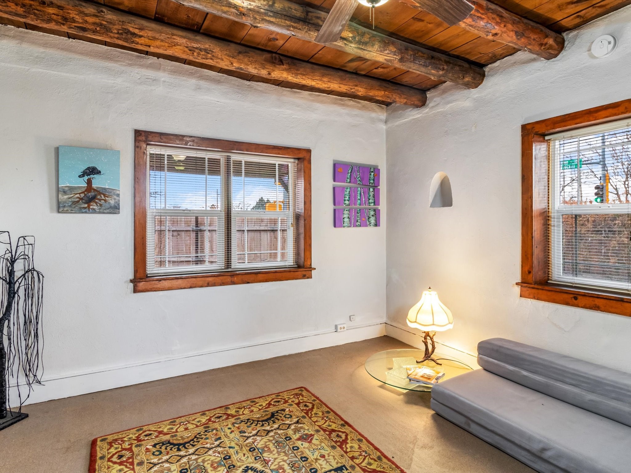 Welcome to 1217 Agua Fra Street, a versatile and charming adobe property that offers endless possibilities for families, multigenerational living, or investment opportunities.The main home features 2 bedrooms and 1 bath, complemented by a 1-bedroom, 1-bath attached unit. The main living area showcases Saltillo tile flooring, known for its durability AND scratch resistance making it a practical yet stylish choice. Lots of Santa fe Charm with wood ceilings and Vegas.In the back, you'll find a spacious 2-bedroom, 1-bath casita that exudes the same quintessential Santa Fe charm. Both homes highlight stunning adobe walls and authentic wood vigas, creating a warm and inviting atmosphere.Situated in the heart of Santa Fe, this property is perfectly positioned for easy access to local attractions, dining, and shopping. Ample parking and flexible zoning (C-1) add to its appeal, offering potential for additional development or creative uses.Don't miss the opportunity to own a piece of Santa Fe's rich heritage and vibrant culture. Schedule your private tour today!