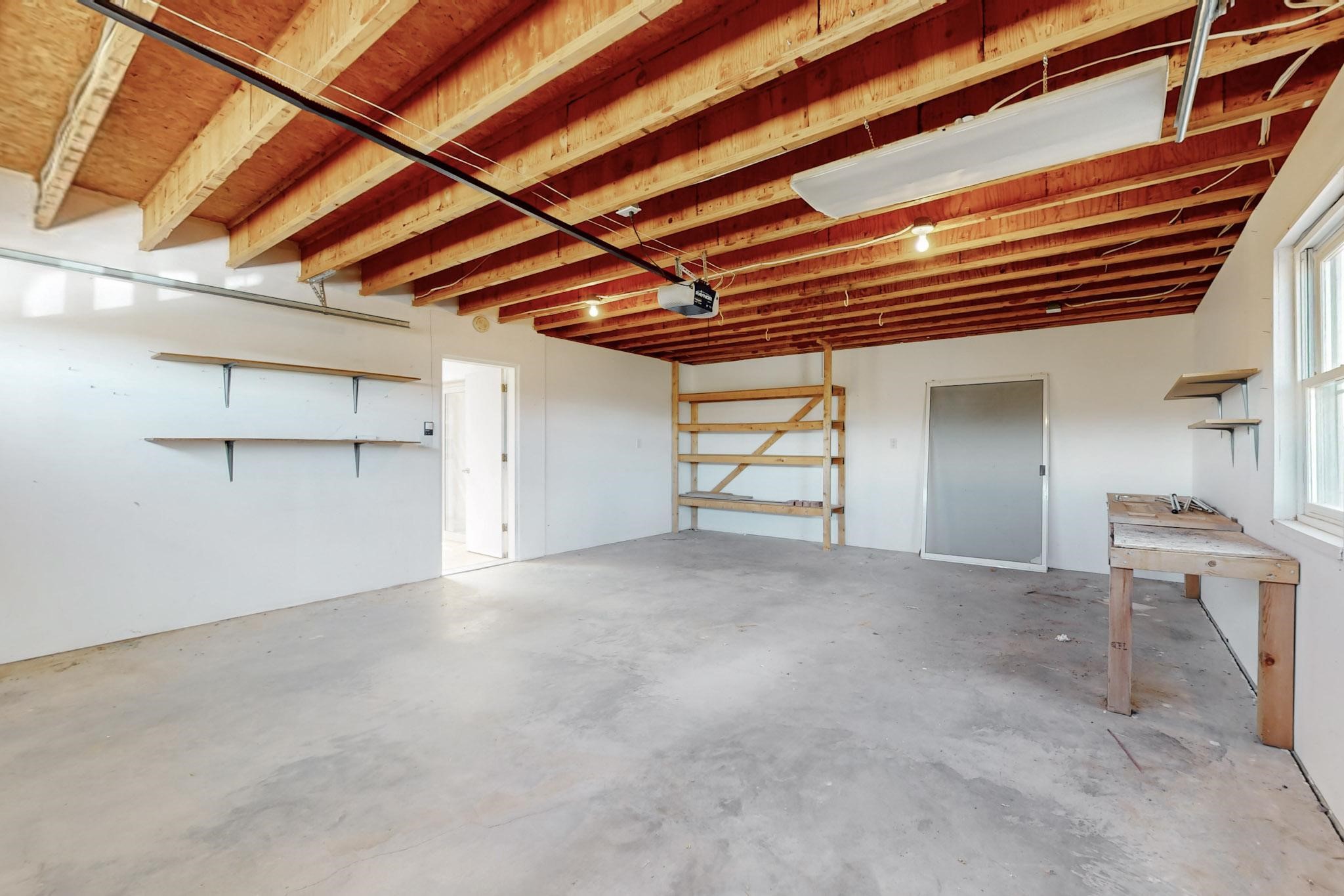 Classic popular design created by architect Rad Acton and built by one of Santa Fe's premier builders Kim Dressel in 1989. This home and garden is waiting to be loved again. Contemporary pueblo design with Santa Fe detailing throughout. Passive solar and electric baseboard heating, hickory wood floors, carved wood beams and a traditional masonry kiva fireplace. Brand new Stucco, upgraded roof with a 2 year warranty, brand new skylights, maintained windows and a new driveway all in 2024. A studio / play room separates the kitchen from the oversized 2 car garage. There are wonderful walled outside garden spaces ready for the avid gardener with sunset and mountain vistas. Needs a little loving uplift to bring it back. This home is in an ideal location for access to the Rail Trail, all of Eldorado Amenities, 2 local shopping centers, library, schools, senior center and parks. Only minutes into Santa Fe