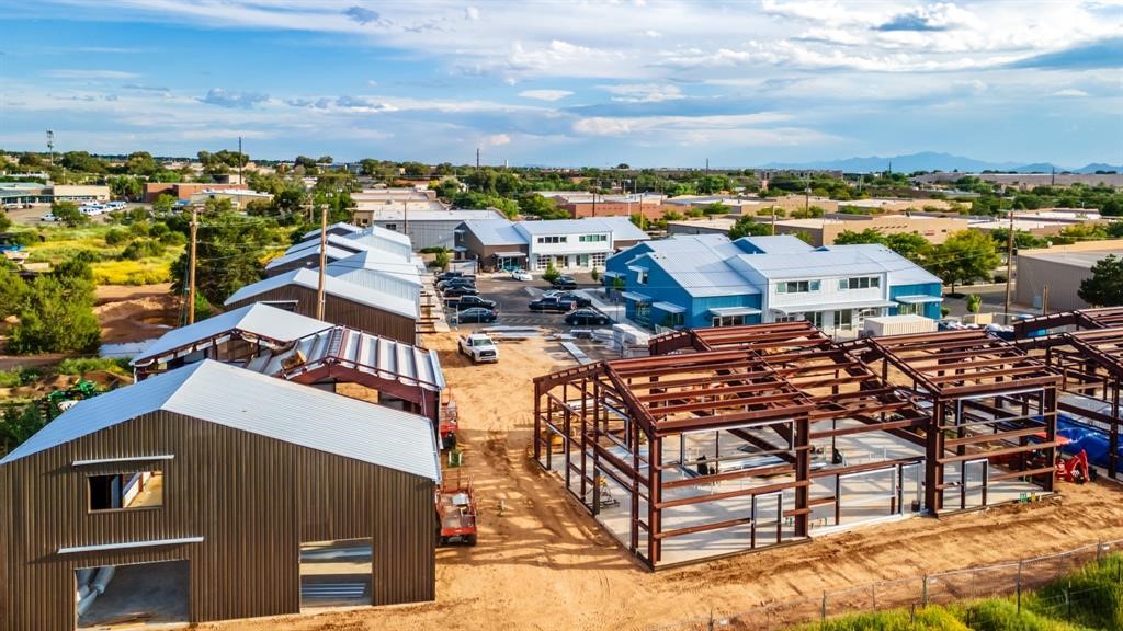 The Studios at Parkway is Santa Fe's newest commercial, industrial, and flex-use condominium development, ideally located in the burgeoning Warehouse and Arts District of Siler/Rufina. Designed to inspire creativity and support growth, the community will total 29 units, with Phase II's 14 units scheduled for completion in Spring 2026. Already home to thriving businesses including Wild Leaven, F1 Cyclery, and 2Faded Barbershop, The Studios offers durable metal buildings with an industrial aesthetic and contemporary design. Each unit features 1,677 heated square feet with soaring 24-foot ceilings, expansive storefront windows, and roll-up aluminum glass garage doors that flood the interiors with natural light. Thoughtful finishes include polished concrete floors, LED lighting, smooth drywall, and handcrafted steel staircases with oak treads, while provisions are stubbed for kitchens and showers to allow flexible use. Wide sidewalks provide opportunities for seating, shipping, and receiving, and the landscaped grounds create an inviting atmosphere for both visitors and tenants. Zoned I-1, the property accommodates a wide range of uses--from offices and galleries to light industry, wellness studios, and artisan workshops--and with solar-ready rooftops and its location within a Federal Opportunity Zone, The Studios at Parkway presents both a dynamic environment for businesses and a compelling opportunity for investors. Multiple units can be combined together for larger spaces.