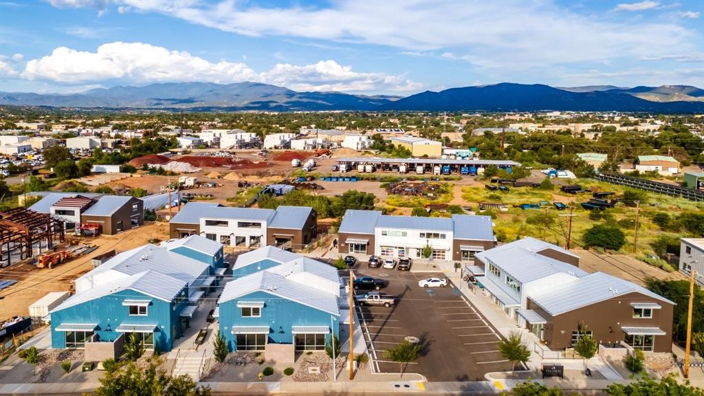 The Studios at Parkway Phase 2, currently under construction, is Santa Fe's newest commercial, industrial, and flex-use condominium development in the thriving Siler/Rufina Warehouse, Art & Innovation District.Designed with an industrial aesthetic, The Studios offer open, light-filled spaces with contemporary touches that create an inspiring environment for business. Each unit spans nearly 1,677 square feet, including 1,587 square feet of interior space ("walls in"), and features tall ceilings, large aluminum glass roll-up garage doors, expansive storefront windows, and finished concrete floors. Inside, you'll find LED lighting, handcrafted steel staircases with wood treads, and smooth drywall finishes. The ground floor encompasses 1,092 square feet, while the second story adds 584 square feet.These units are designed with flexibility in mind, with an option for Live-Work as an accessory to commercial use. Each unit has separately metered utilities, kitchen-ready hookups, a designated area for a shower, and thoughtfully landscaped grounds tailored for shipping and receiving. Zoned I-1, these state-of-the-art condominiums are suitable for a range of uses, from offices, galleries, and artist studios to warehouses, wellness businesses, and light industry. Additionally, the roof is prepared for solar PV installation, and the property is located in a Federal Opportunity Zone.