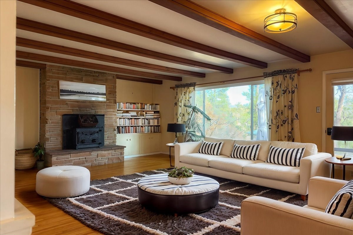 BACK ON THE MARKET!Tucked away in a quiet cul-de-sac, this beautifully crafted home is the perfect mix of comfort and style. From the welcoming front courtyard to the peaceful backyard with a patio and stunning views, this place is designed for relaxation.With a durable metal roof and well-maintained stucco, you get both charm and longevity. Plus, you're just a short distance from an elementary school, community pool, tennis courts, a park, and scenic hiking trails--perfect for active lifestyles or scenic strolls! Inside, warm wood floors set the tone, while the living room steals the show with picture windows, a cozy fireplace, and a beamed ceiling. Another set of picture windows in the family room fills the space with natural light, creating an inviting vibe. You'll also love the convenience of a dedicated office, laundry room, and powder room. The updated kitchen and bathrooms bring modern style to this functional floor plan, making everyday living a breeze. With a new water heater and a newer furnace, you can move in with peace of mind. Don't miss out on this one-of-a-kind home in a prime location--schedule your private showing today!