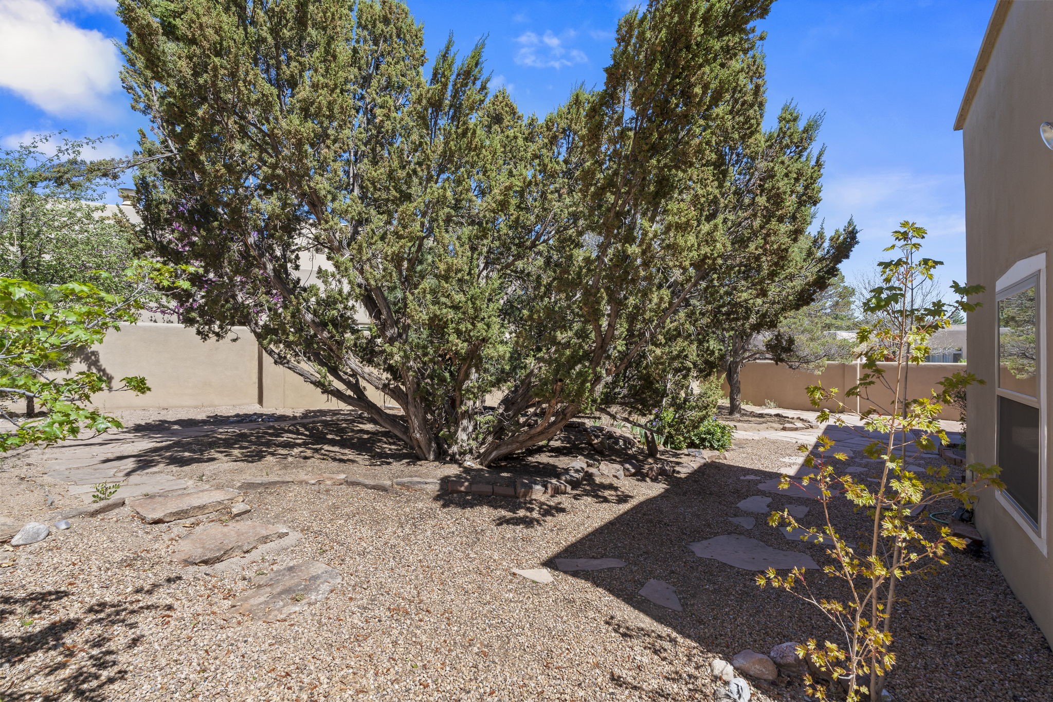 Step into this beautifully updated single-story home where thoughtful design and easy living come together. Freshly painted and topped with a one-year-old roof under a ten-year warranty, this home blends peace of mind with stylish appeal.The spacious and flowing layout offers three generously sized bedrooms, including a luxurious primary suite tucked away for privacy. A cozy gas fireplace framed by a decorative rock wall adds warmth and character, while custom French doors open to your personal retreat. The spa-like bath is a true standout--featuring double vanities, a large triangular soaking tub, a separate shower, and an expansive walk-in closet designed for effortless organization.At the heart of the home is a well-appointed kitchen with modern updates, ample cabinetry, instant hot water, and a walk-in pantry. The adjacent breakfast area boasts a built-in sideboard and China cupboard and opens directly onto a large flagstone patio--ideal for indoor-outdoor entertaining. The enclosed backyard is a private oasis with new drip irrigation and lush, low-maintenance landscaping.The inviting living room showcases a gas fireplace with a charming wood mantle and flows seamlessly into the dining room, all enhanced by recessed lighting and abundant natural light. A dedicated laundry room with extra storage and a utility sink adds convenience, while the attached two-car garage ensures daily ease.Set on a desirable corner lot, this move-in-ready home offers both style and functionality in equal measure. Whether you're hosting guests or savoring quiet evenings, this residence is the perfect blend of comfort, space, and elegant Southwest living.