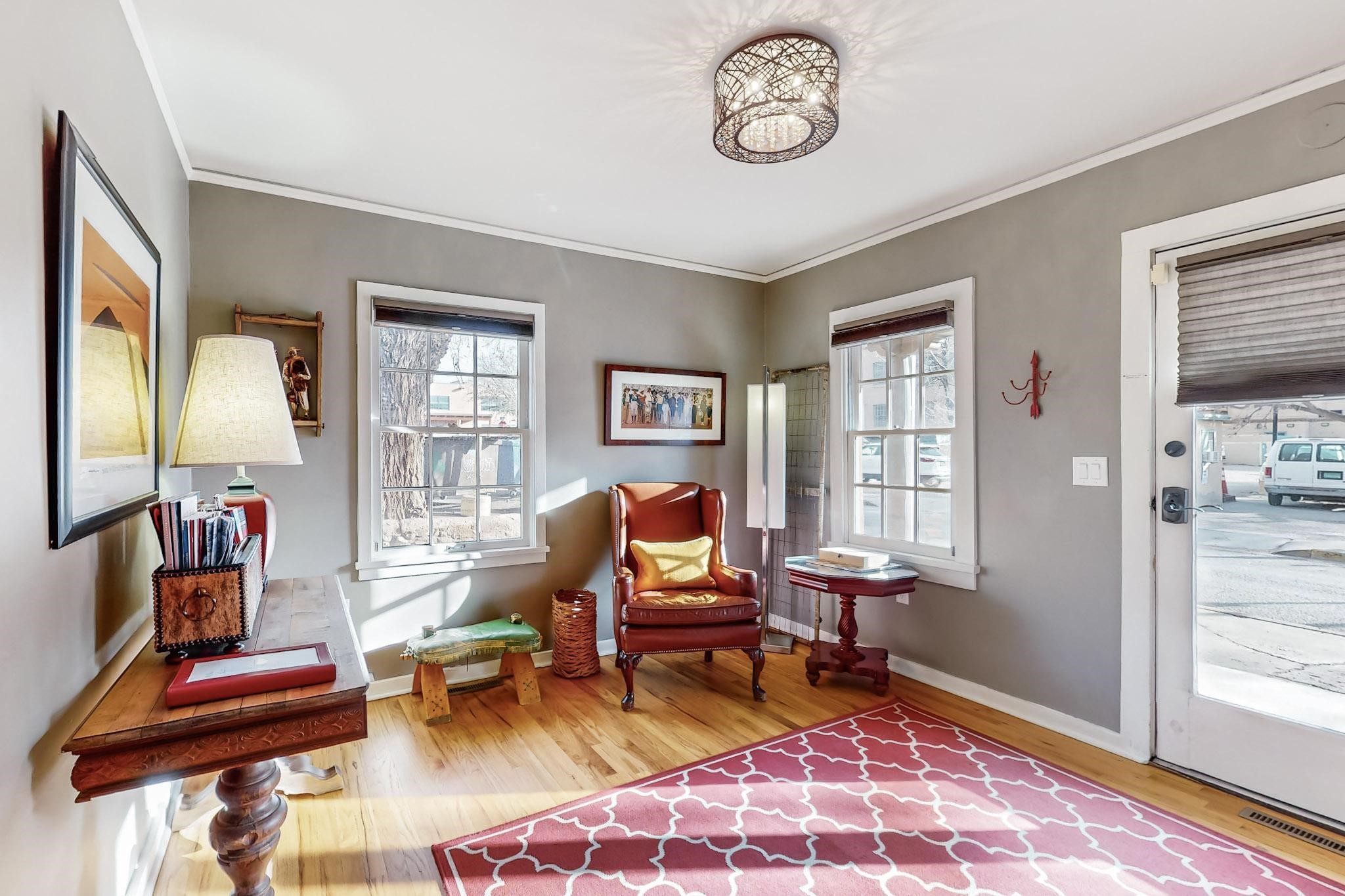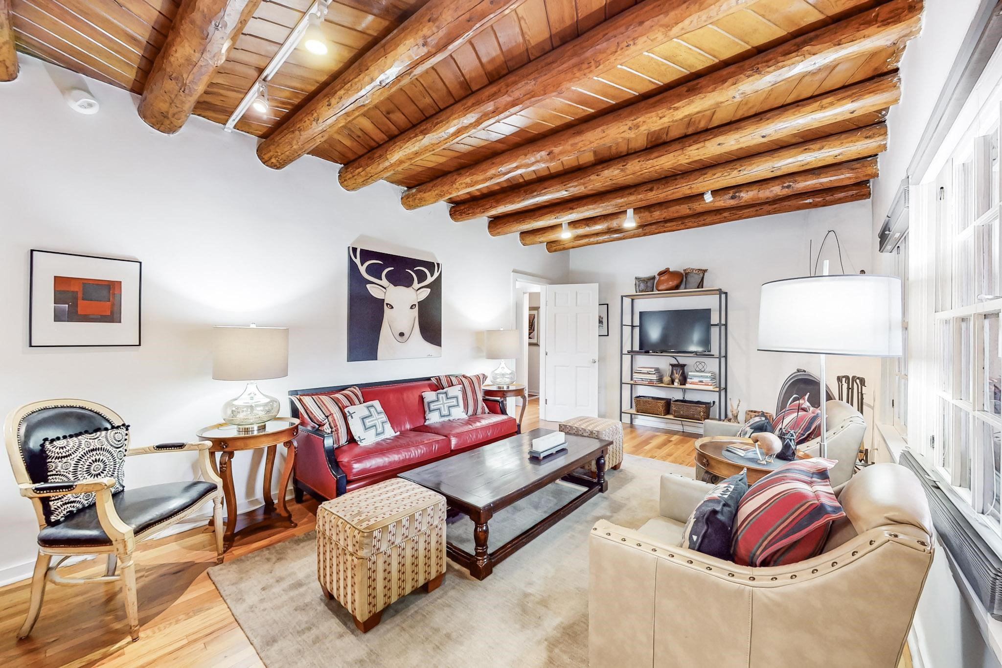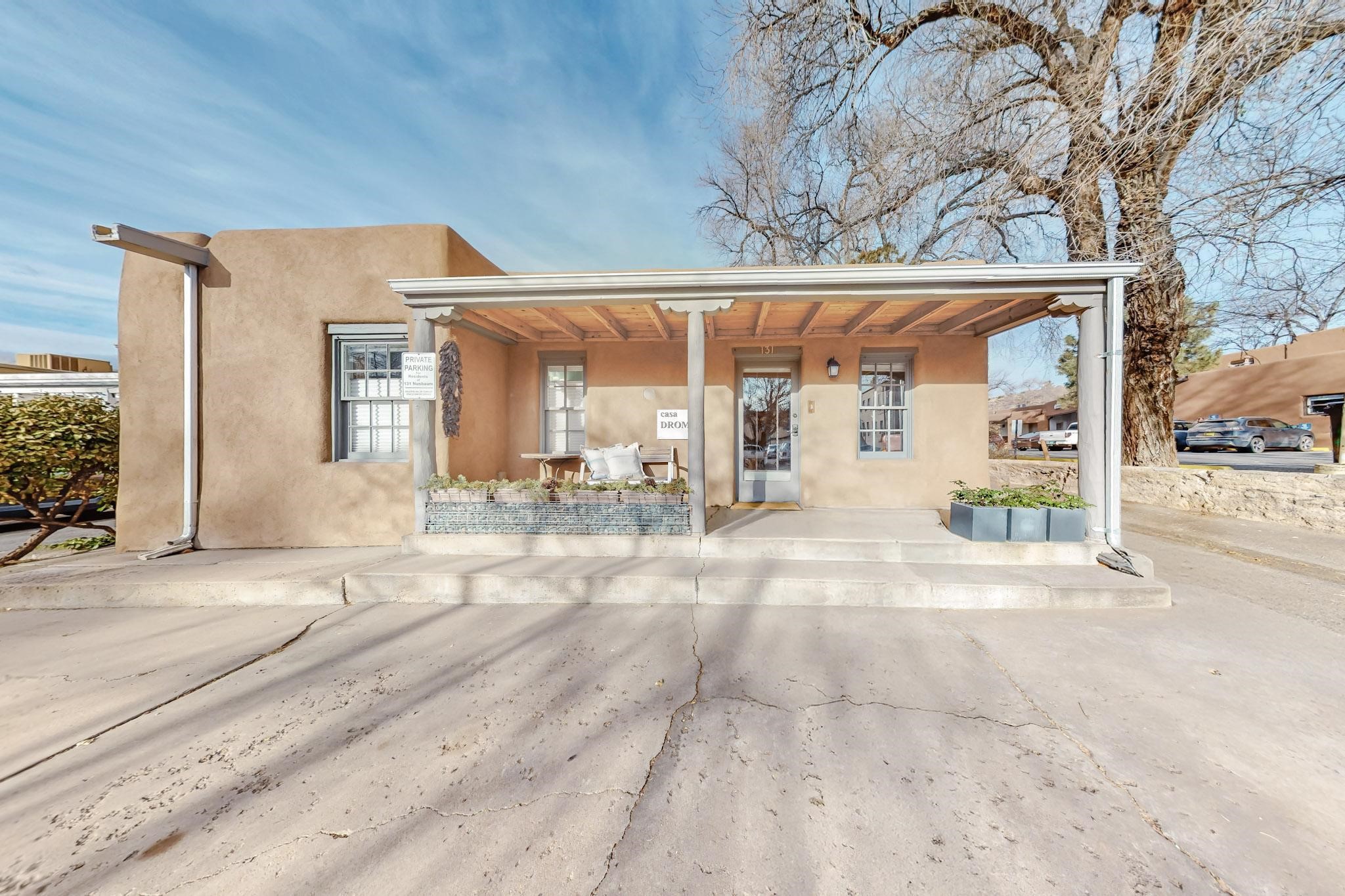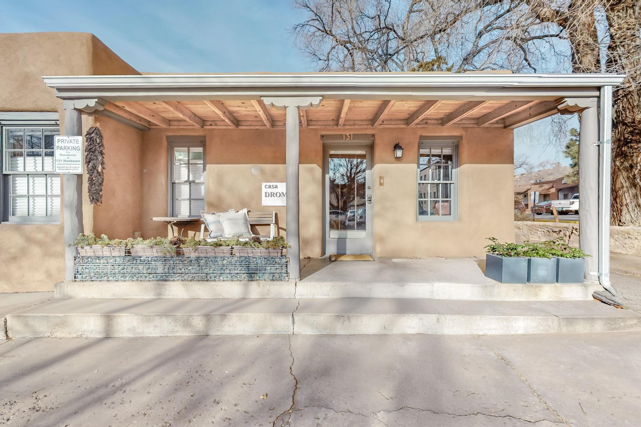 Charming, historic, single level, mostly free standing 3/2 home in the heart of downtown one block from the plaza. Classic Santa Fe style with hardwood floors, plaster walls, vigas. Extensively remodeled including kitchen, bathrooms, plumbing, electrical, sewer line, roof and stucco. Delightful living room with working, kiva fireplace. The front entry was a bedroom in the past so is a potential 4th bedroom by simply reopening alternative existing side entrance(s)? The BCD zoning allows for both residential or commercial use including short term rentals with few restictions (see attached document). Currently the property is being used as a very successful STR grossing $100K per year with potential for more. If not an STR, would also be a delightful full or part time home. Previously was an office. Other possible commercial uses could be gallery, retail, live/work etc. Walled portal/side yard. Scrupulously maintained. Furniture package available. Approved off street parking on the sidewalk. What a gem and so close to the plaza!