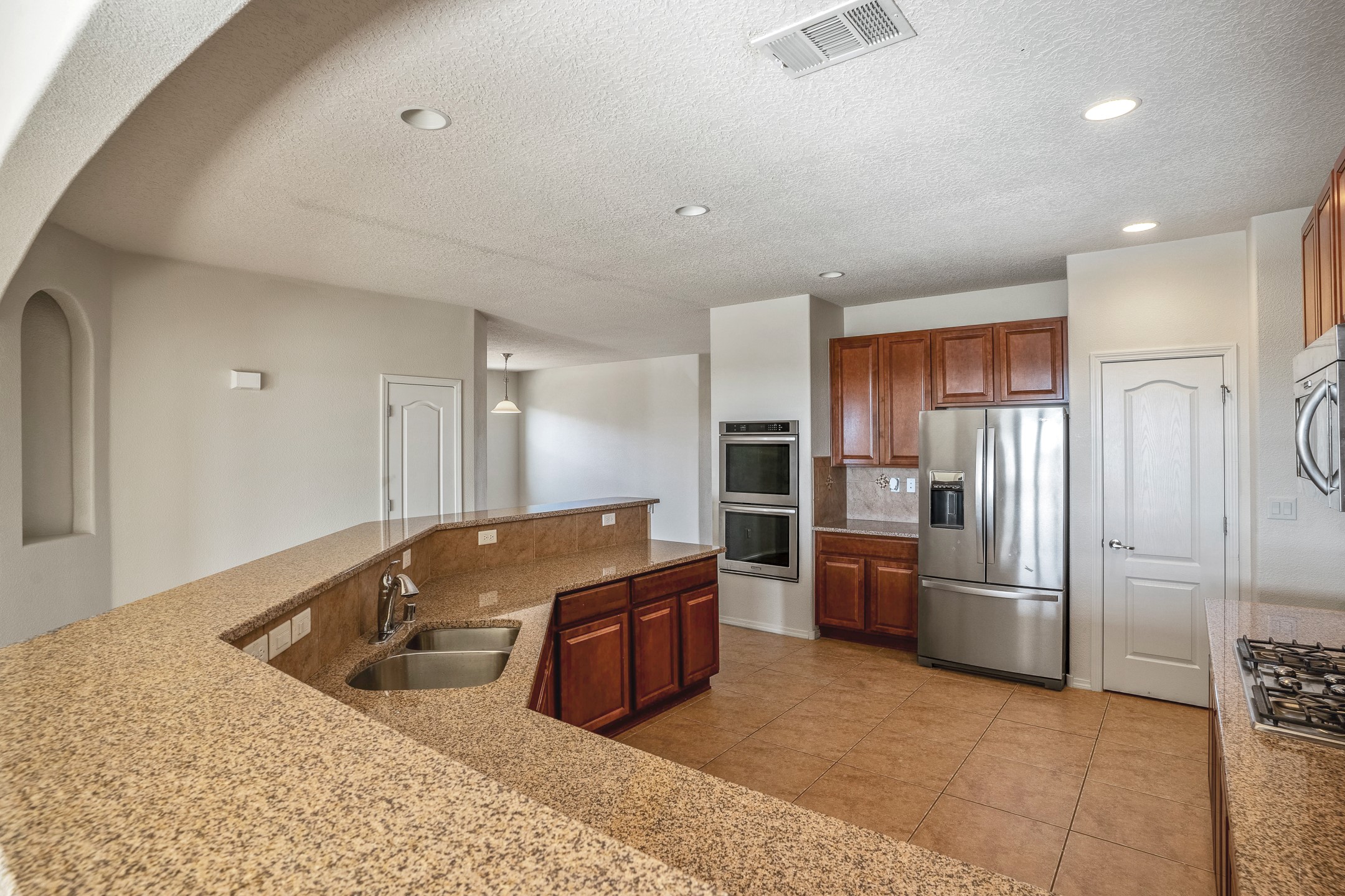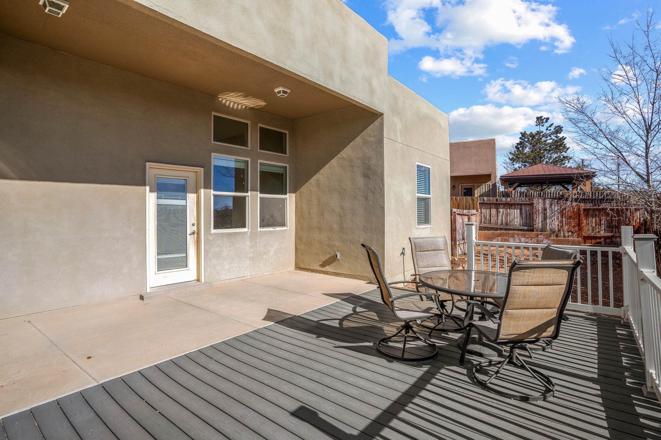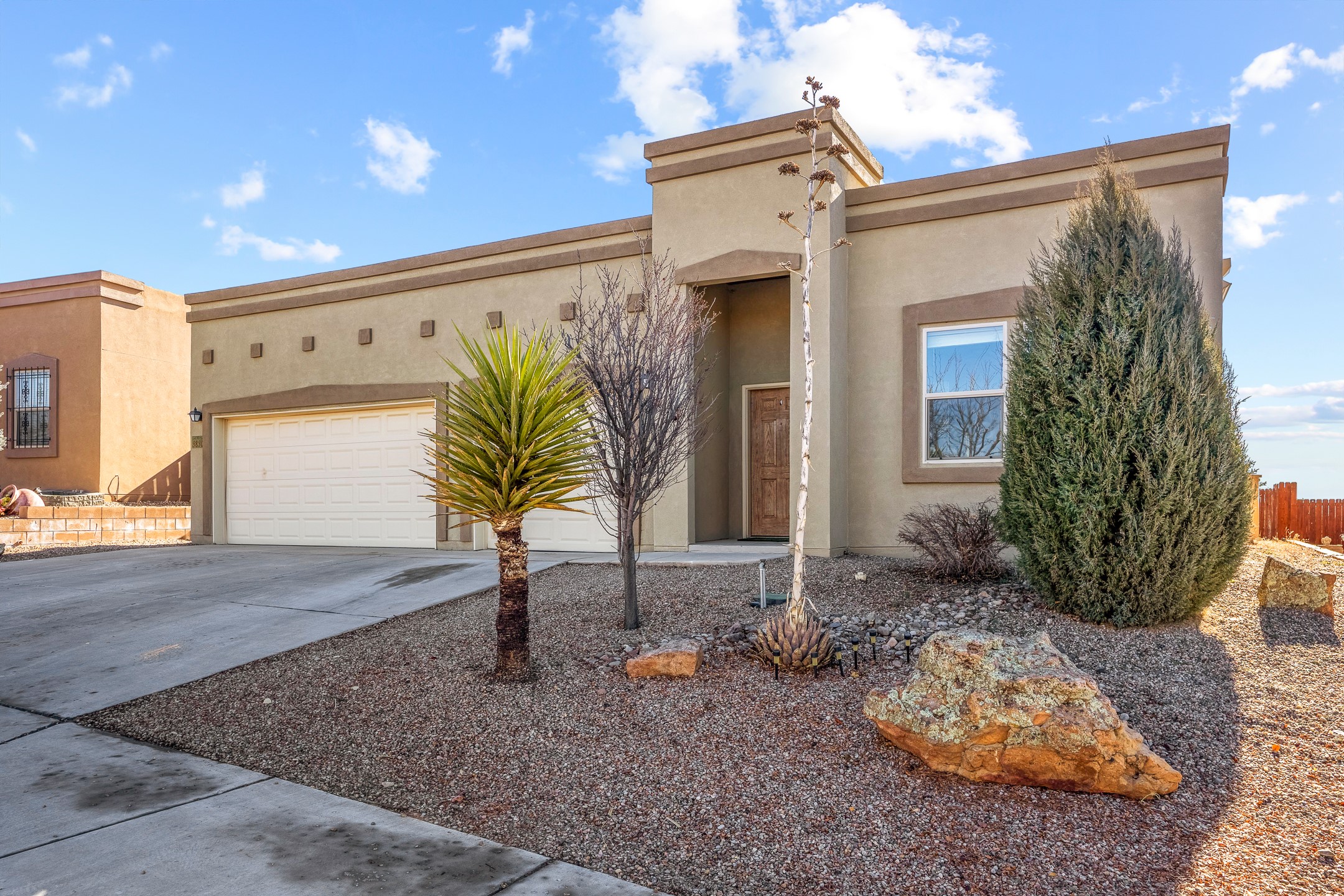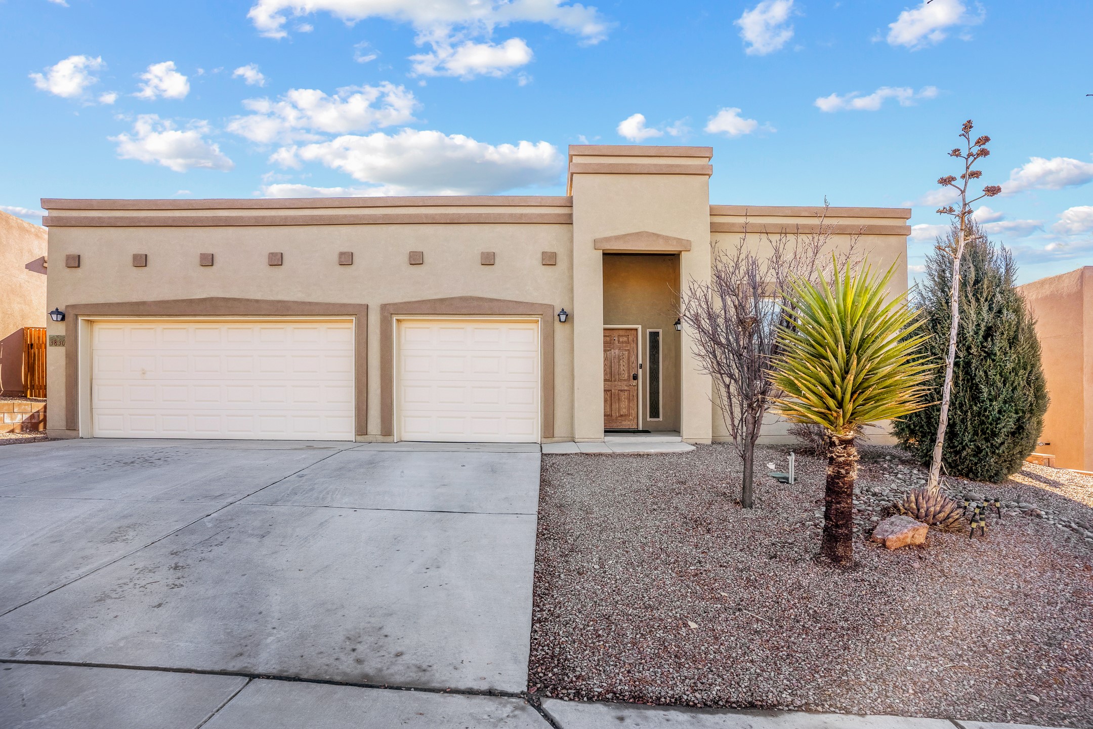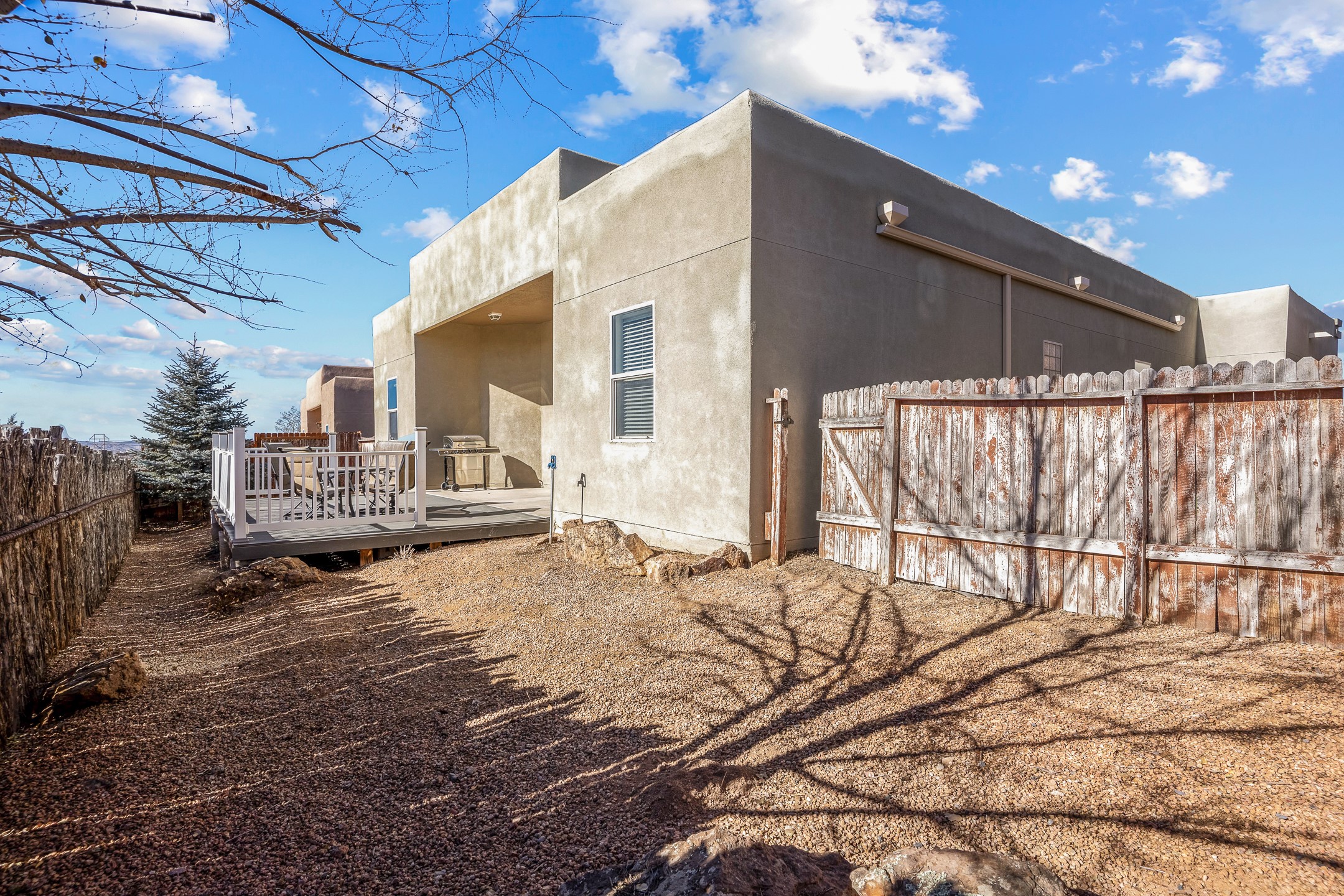 Back on the market after significant maintenance completed including stucco work, roof maintenance, deck was re-built, new hot water heater, new Bosch dishwasher, new carpet, and the tile floors had the grout cleaned and color sealed. Reach out for more details! This inviting home in the highly desirable Villa Sonata subdivision features a spacious and well-appointed floor plan featuring three generously sized bedrooms, a dedicated office space, a dining room, and a three car garage. High ceilings, and wonderful natural light throughout. The heart of the home is a gourmet kitchen, complete with stainless steel appliances, including a double oven, built-in gas range, ample cabinetry, and elegant granite countertops. The luxurious primary suite features a large walk-in closet, soaking tub, separate shower, separate sink vanities, and a water closet. Enjoy stunning views from the expansive back deck and relax or play in the side yard featuring low-maintenance artificial turf. This location offers easy access to shopping, dining, Santa Fe Community College, IAIA, and I-25 or 599 for convenient commuting. This home is priced to sell, call your favorite Realtor and schedule a showing today.