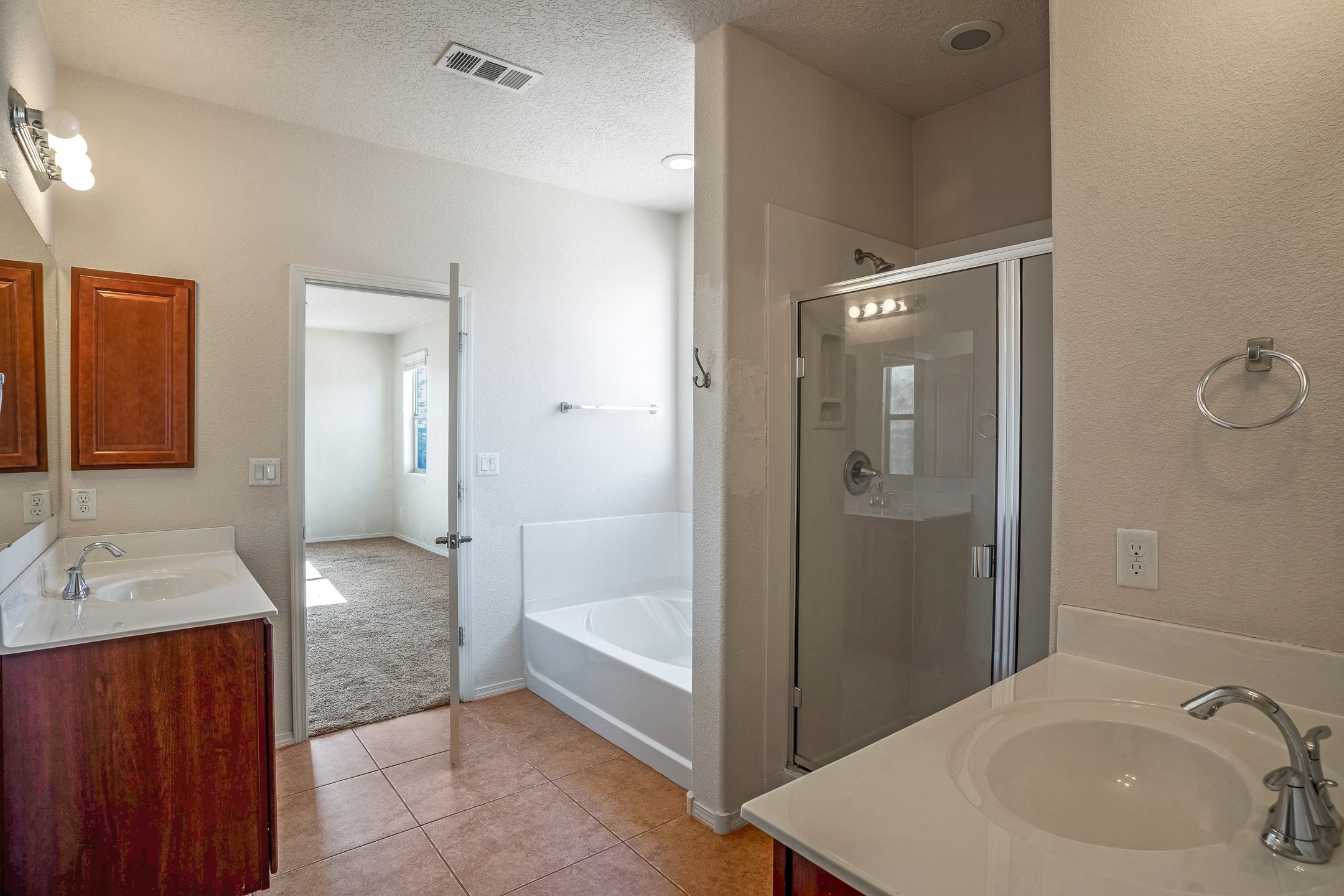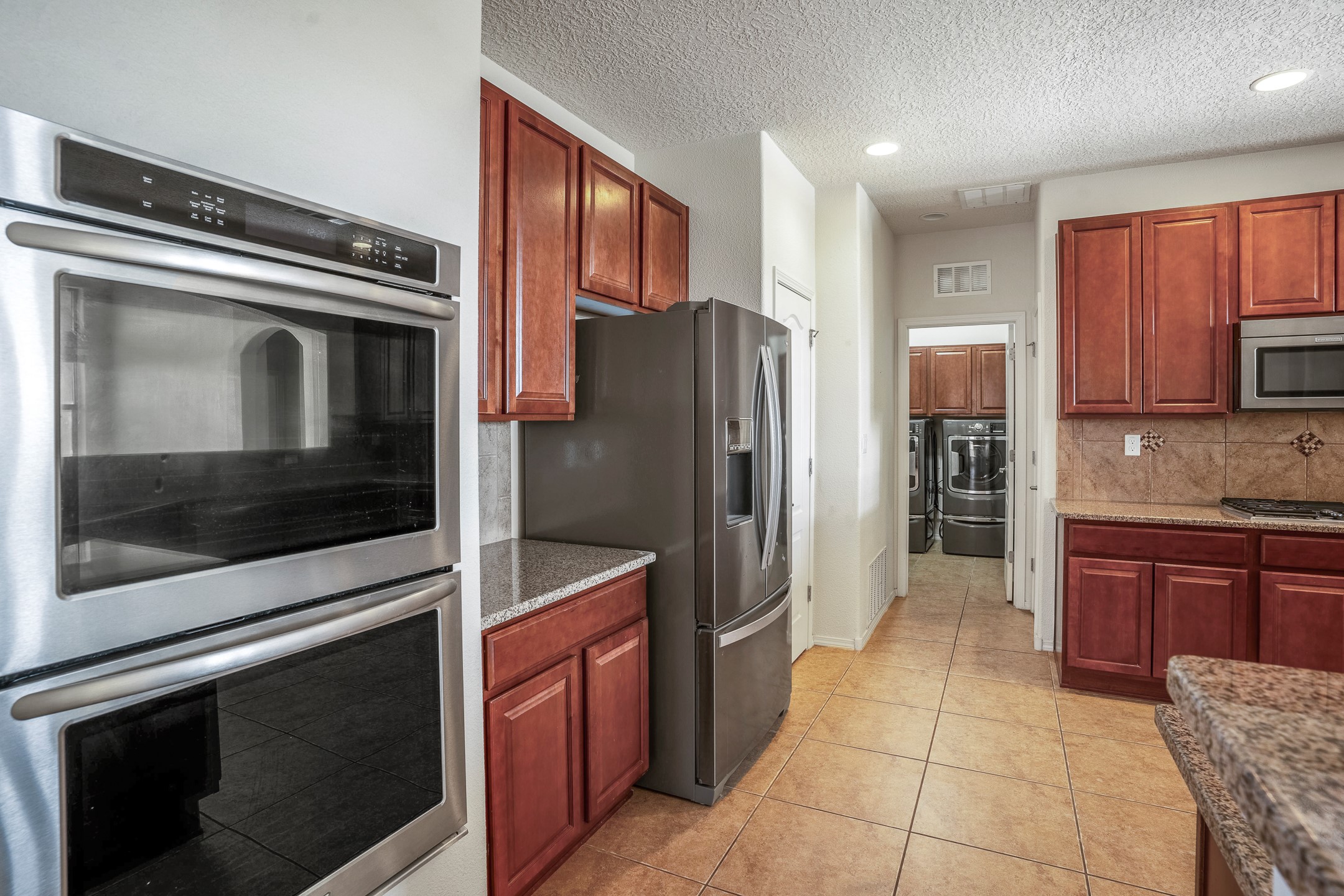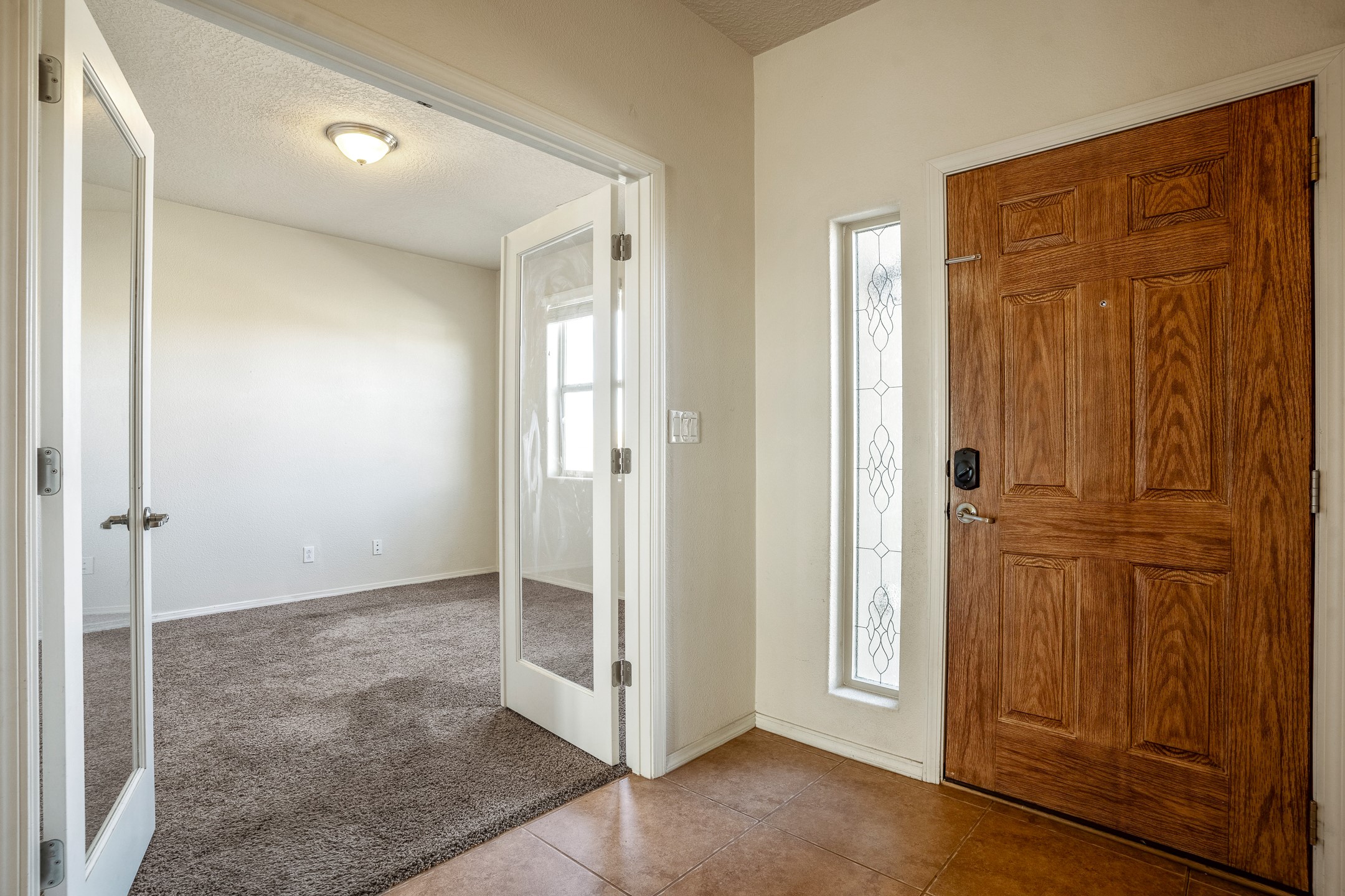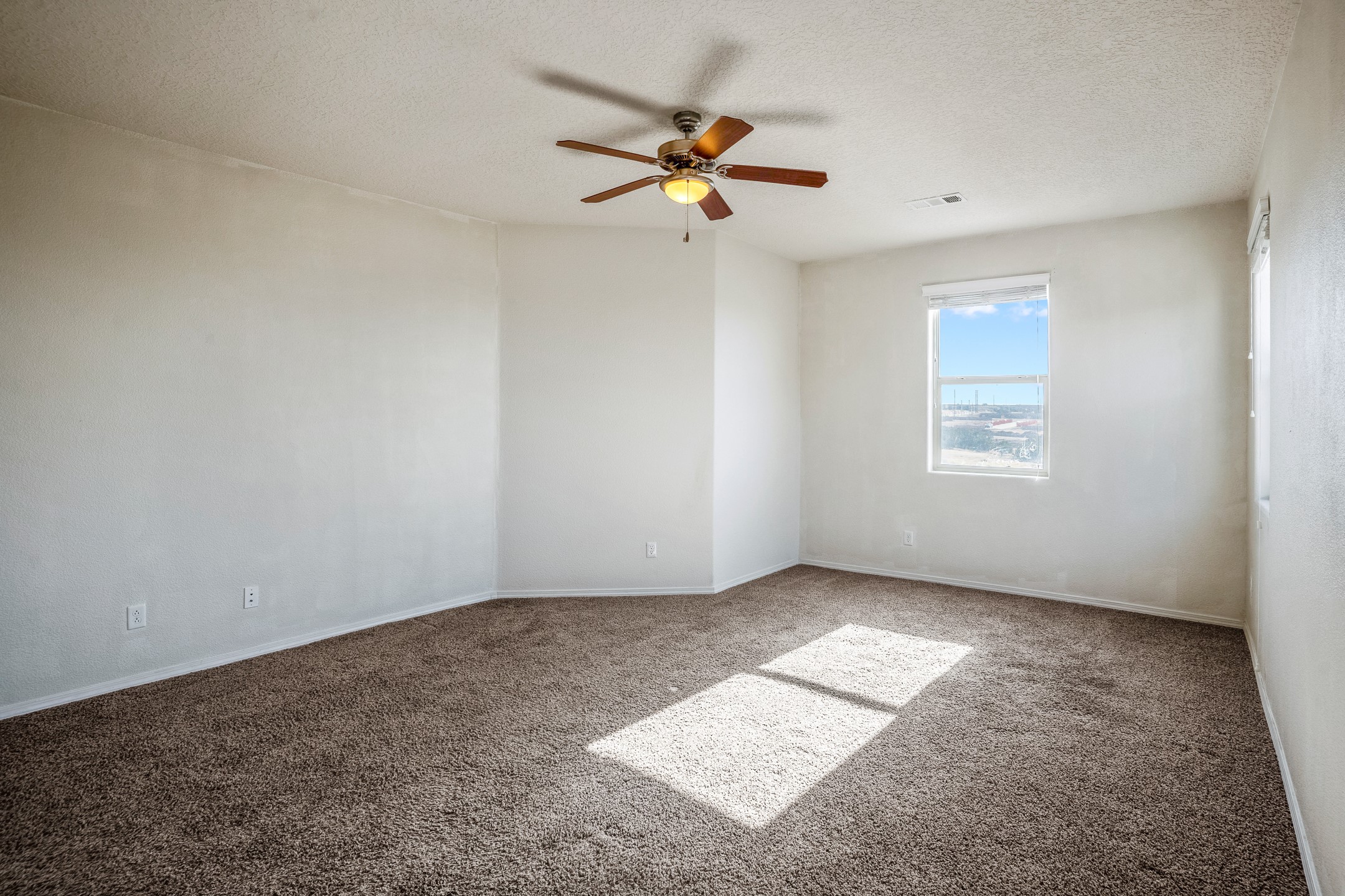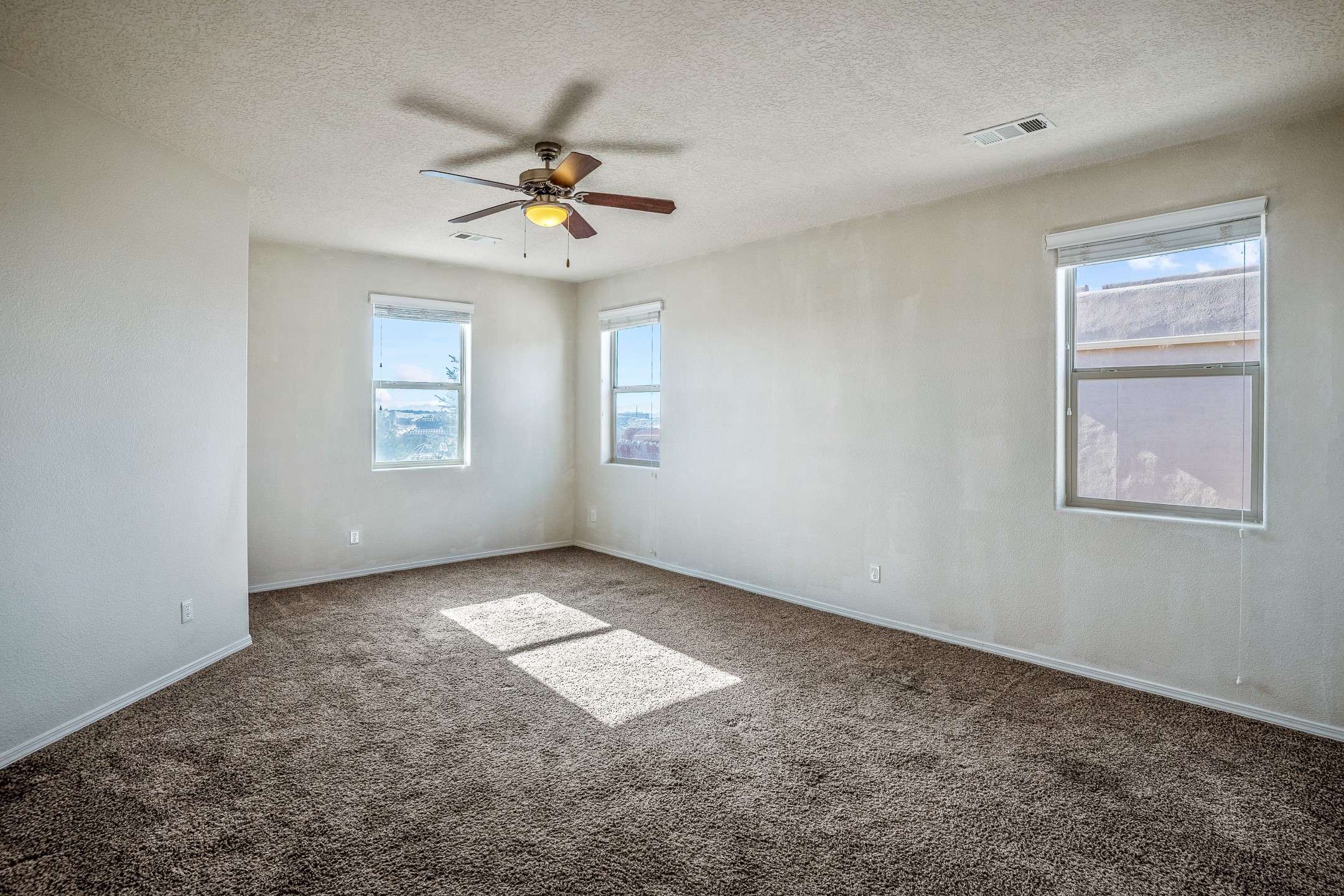 Back on the market after significant maintenance completed including stucco work, roof maintenance, deck was re-built, new hot water heater, new Bosch dishwasher, new carpet, and the tile floors had the grout cleaned and color sealed. Reach out for more details! This inviting home in the highly desirable Villa Sonata subdivision features a spacious and well-appointed floor plan featuring three generously sized bedrooms, a dedicated office space, a dining room, and a three car garage. High ceilings, and wonderful natural light throughout. The heart of the home is a gourmet kitchen, complete with stainless steel appliances, including a double oven, built-in gas range, ample cabinetry, and elegant granite countertops. The luxurious primary suite features a large walk-in closet, soaking tub, separate shower, separate sink vanities, and a water closet. Enjoy stunning views from the expansive back deck and relax or play in the side yard featuring low-maintenance artificial turf. This location offers easy access to shopping, dining, Santa Fe Community College, IAIA, and I-25 or 599 for convenient commuting. This home is priced to sell, call your favorite Realtor and schedule a showing today.