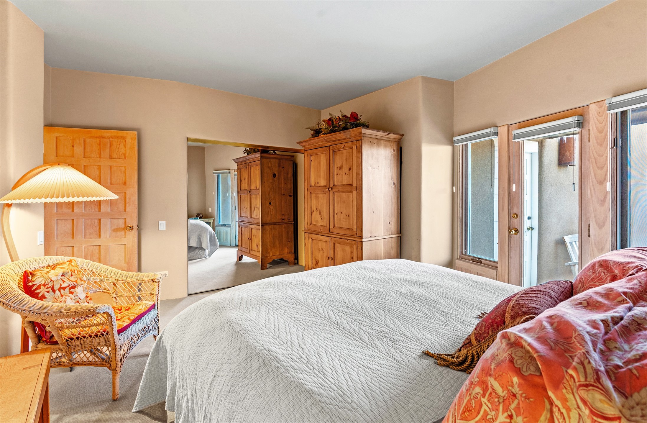 This refined house and guest house, on the market for the first time,is a hidden gem that's private, quiet, with a feeling of seclusion and set back on a charming street on the Eastside. The grounds unfold beyond the gate to a spacious,idyllic and entirely enclosed compound on .23 acres that is truly nestled among mature aspens and pines.The architectural harmony and green space create a feeling of tranquility, as if you're on retreat.The outdoor area, with garden beds and paved flagstone, brick patios and walkways, offer abundant opportunities for relaxation and entertaining.The great room has ceilings that soar to 14 ft. in height, a gracious primary bedroom has lovely views and spa-like ensuite bath.The home was refreshed to include wood and travertine flooring and a sunny kitchen with stunning granite counters.The pantry connects the kitchen to a rare feature:a two car attached garage.The loggias /extended portals frame lovely views and create a sense of movement and passage. Rich surfaces, fine details and classical references create a comfortable, polished and timeless take on Santa Fe style as designed by the award winning architect, Robert Zachry.Elegant details include fine metal and woodwork, skylights, symmetrical vigas, polished latillas, abundant storage, fireplaces and six French doors that make for breezy access to the lovely lawn and garden that connects the two homes.The guest house adds continuity of design and charm.What makes it truly special is the versatility of the spaces, with plenty of options as a home office and for guests. Inviting and soothing views connect you to the garden and the main house.A deep covered portal creates an al fresco room, with a generous patio and outdoor fireplace that's the perfect hub for garden parties and to enjoy quality time with family and friends.You are mere minutes from exciting Canyon Road and the Santa Fe Plaza and Kaunes grocery is just around the corner. Come and experience this place to call home.