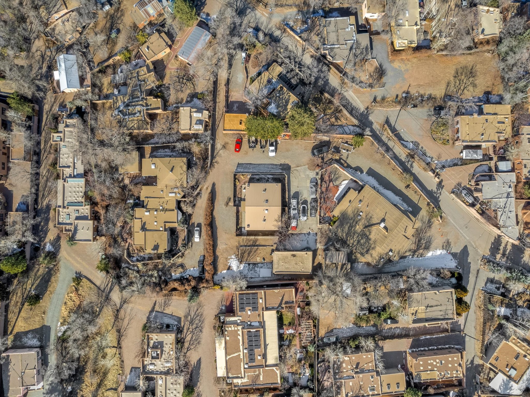 A unique duplex offering a fantastic opportunity for both homeowners and investors. This property features two mirroring apartments, each thoughtfully designed with 2 bedrooms, 1 bath, a laundry closet with hookups, and an open-concept living, dining, and kitchen area. The cozy kiva fireplaces add a touch of Southwestern charm, while the front portals and enclosed yards provide inviting outdoor spaces for relaxation or entertainment.Each kitchen is equipped with essential appliances, making the units move-in ready or perfect for rental opportunities. Live in one unit and rent out the other to generate income while enjoying the convenience of having tenants close by.Adding to the property's value is an oversized garage with stunning vigas, offering ample room for storage, workspace, or potential expansion. The expansive lot provides parking for over a dozen vehicles, making it ideal for those who need extra space or have plans for future development.Located in the heart of Santa Fe, this duplex combines comfort, functionality, and investment potential in one incredible package. Don't miss out on this rare opportunity--schedule your private showing today!