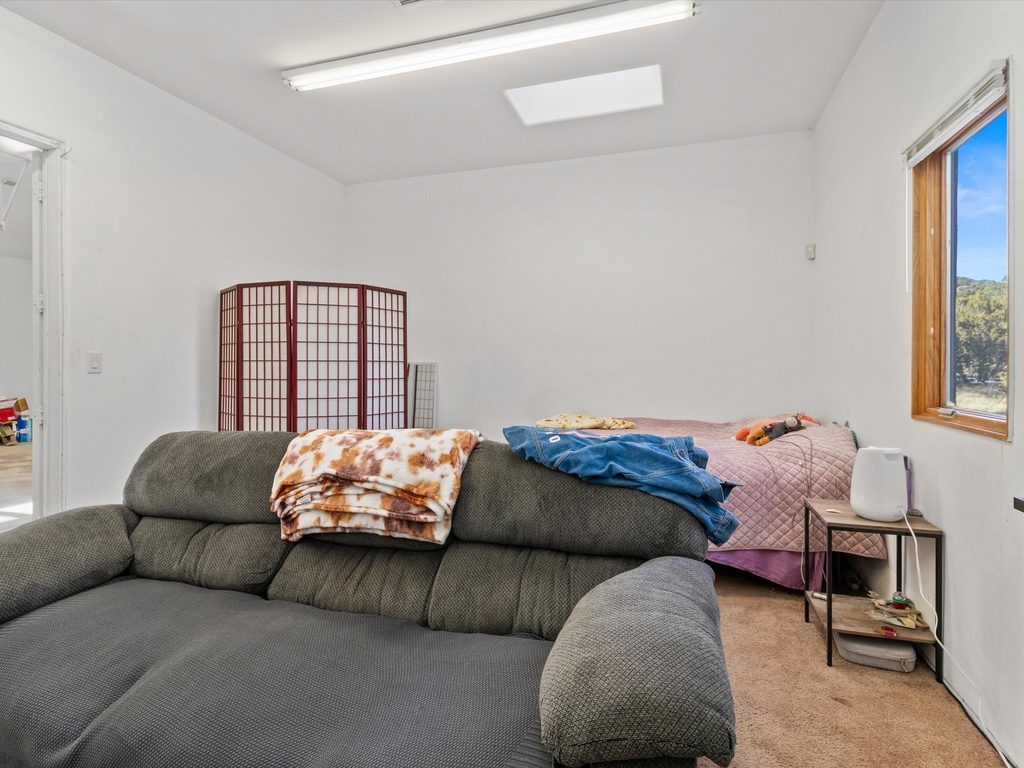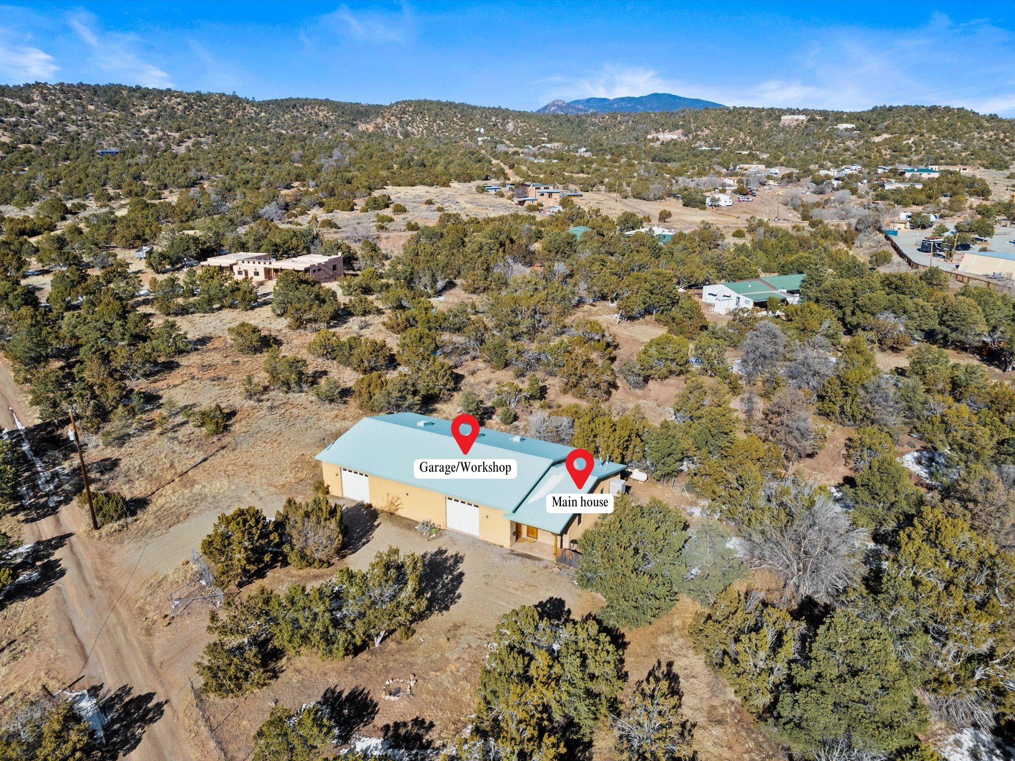 Santa Fe Style Barndominium.....A unique and thoughtfully designed property offering flexibility for living and working in a tranquil country setting just 20 minutes from downtown. Set on 2.24 acres, this inspiring space combines comfort, creativity, and convenience. The property has a 2400-square-foot studio/workshop/possible additional live space featuring 16-foot pitched ceilings, 11-foot side walls, and two oversized 10x10 garage doors. With abundant natural light, excellent ventilation, and easy access, the possibilities are endless for artisans, makers, and entrepreneurs alike--ideal for woodworking, sculpting, dance studios, photography, car restoration, pottery, and more. Complementing the studio/workshop/Garage space is a 440-square-foot Attached with its own private entrance. Inside, you'll find a cozy yet functional layout including a bedroom/office, full bath, kitchen, utility room, and living area--perfect for a residence, guest suite, or additional office space. Additional highlights: - Private water association with county water source - On-grid utilities and year-round easy access - room for expansion and finish out if one chose to Don't miss this one-of-a-kind opportunity to create, innovate, and thrive close to town yet surrounded by nature. Schedule your private showing today!
