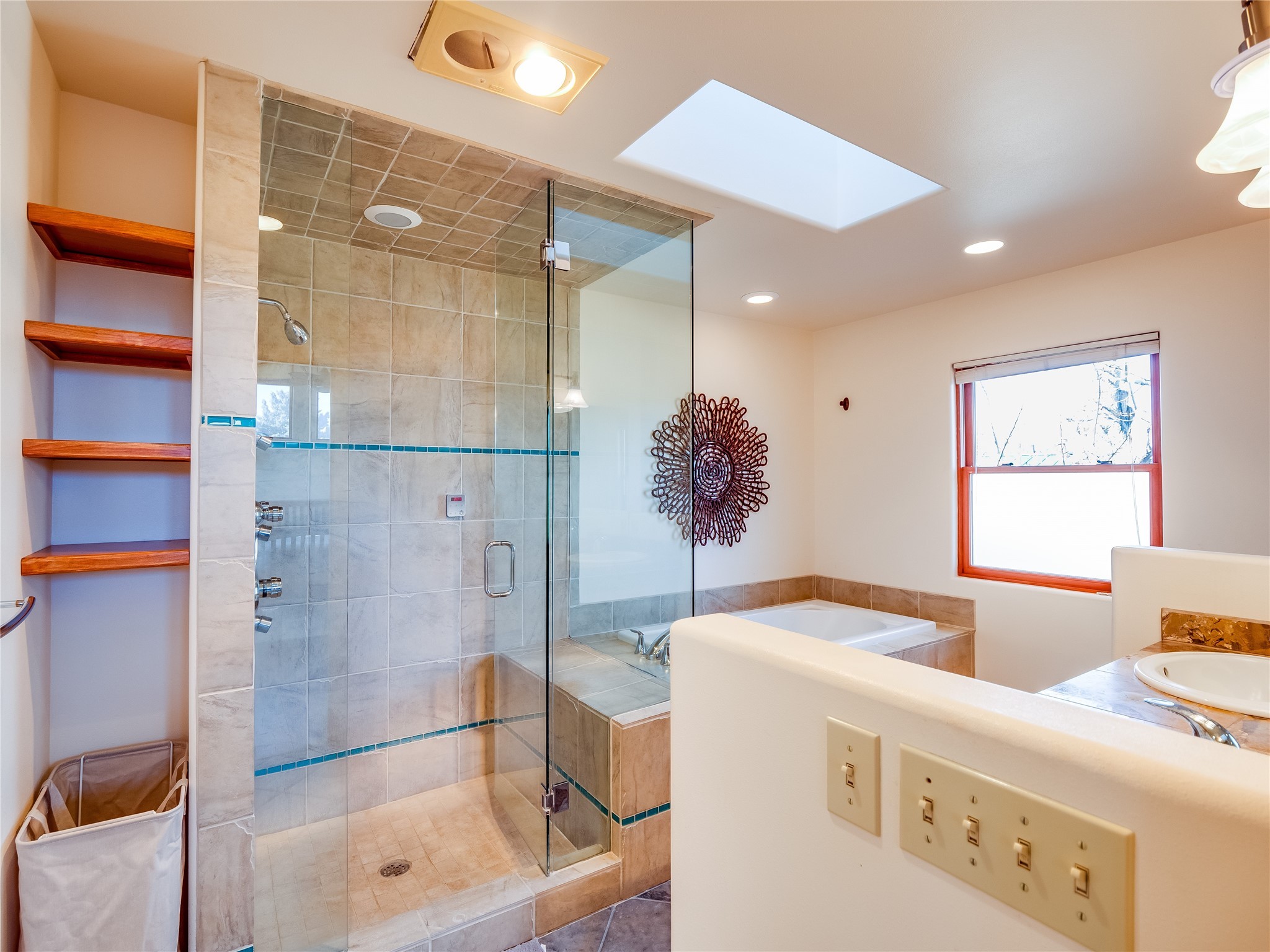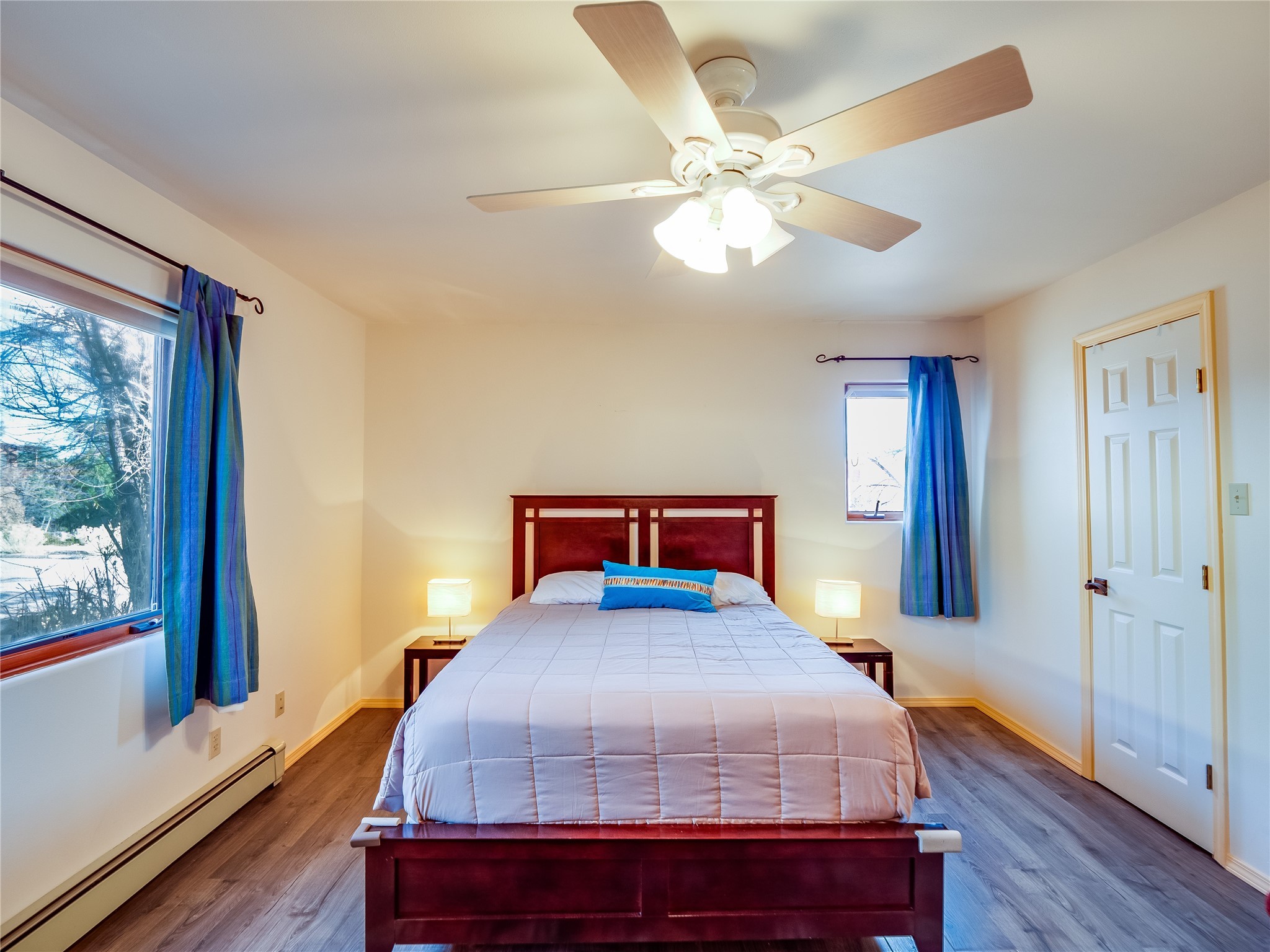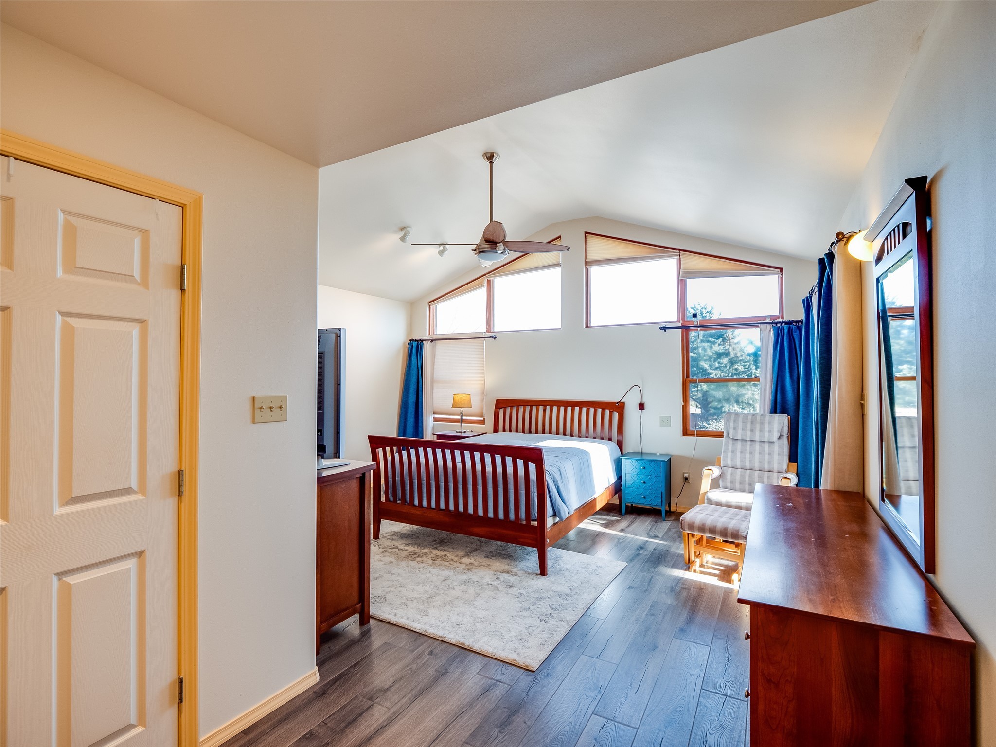 In the heart of North Mesa, this gorgeous two-story home offers the perfect blend of style and comfort. The large, low-maintenance front yard welcomes you, leading up to a two-car garage with direct access to the home. Step inside to find grey laminate wood floors that flow throughout the main living areas. To the left of the entryway is a bright living and dining space, featuring vaulted ceilings and a striking stone wood-burning fireplace that serves as the room's centerpiece. A spacious kitchen with tons of rich wood cabinets for storage, granite counters, stainless steel appliances. The kitchen's large island overlooks the family room, where a cozy wood-burning stove adds warmth, and sliders lead to the fully fenced-in backyard, an entertainer space with a covered patio and a retaining walls showcasing fruit trees. The main floor continues with two guest bedrooms, each featuring walk-in closets, and a full guest bathroom. Down the hall is a guest en-suite with a walk-in closet and its own bathroom, complete with a single-sink vanity and tiled shower/tub. A spacious laundry room with included washer and dryer completes the main level. The second floor boasts a private guest en-suite with a charming loft and access to a shared deck. The primary en-suite is bathed in natural light, thanks to a wall of windows and sliding glass doors that lead to a shared deck perfect for enjoying a quiet morning coffee or stargazing at night. The spa-inspired primary bathroom is the epitome of relaxation. Featuring sleek tile floors and a stunning walk-in shower with a glass door enclosure, tiled from floor to ceiling for a luxurious and polished look. A deep soaking tub for unwinding after a long day, complemented by a large double-sink vanity. Located near horse stables, parks, and scenic hiking trails, this home provides a perfect balance of peaceful living and easy access to outdoor recreation. Don't miss your chance to make this incredible property your own!