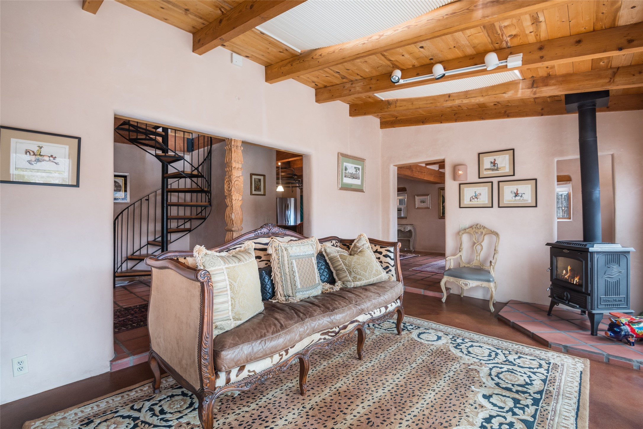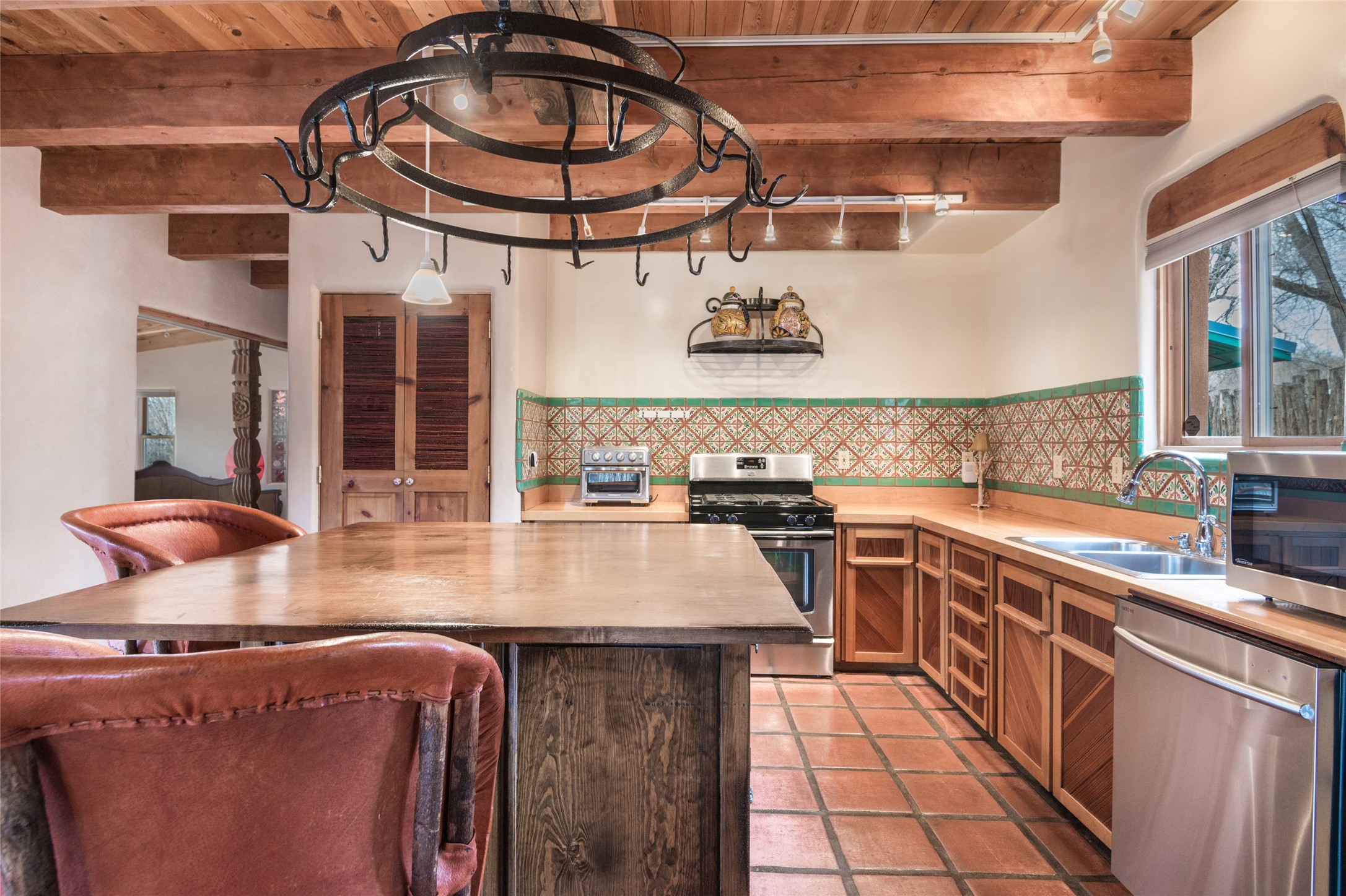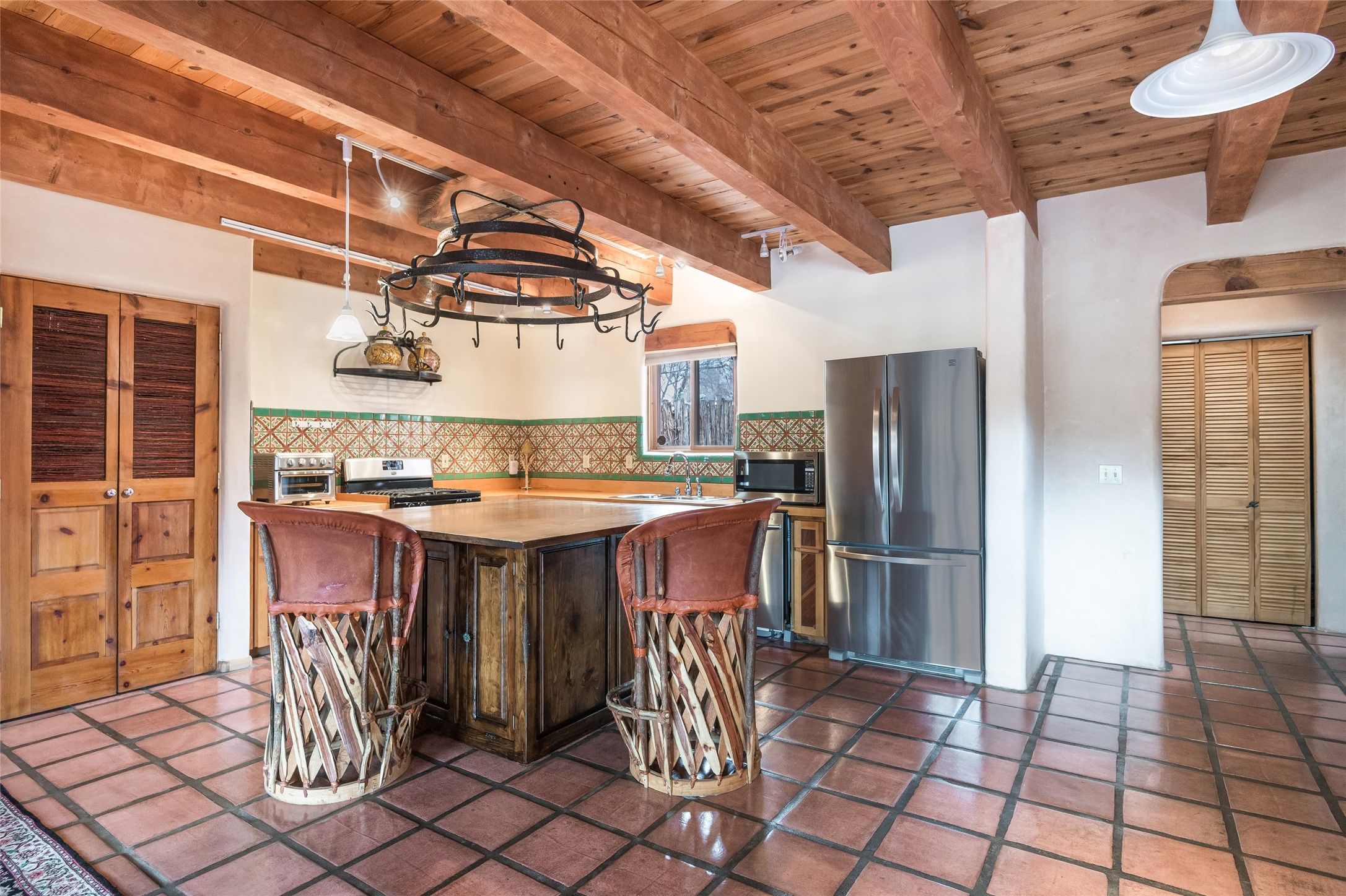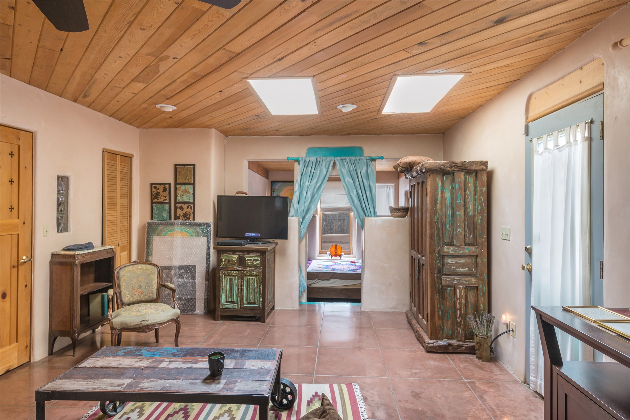 NOW $995,000. Act quickly! Discover a truly unique South Capitol property full of Santa Fe charm and endless flexibility. Just a short walk to the Plaza and close to Trader Joe's and Whole Foods, this home offers multiple living, working, and hosting options. The main house includes the primary bedroom and bath, kitchen, living room, and dining room on the main level, with two additional guest rooms and a full bath upstairs. The attached but very private 900-square-foot one-bedroom guest house makes an ideal quiet retreat, space for extended family, or potential rental. A separate 575-square-foot studio/office/flex building--with an attached storage room--adds even more possibilities for creative work, a home business, or additional workspace. Set on a serene 0.33-acre lot, the property features beautiful landscaping, rockwork, and a soothing fountain. The gated driveway and full walled/fenced perimeter offer rare privacy in this prime location. All furnishings are available.