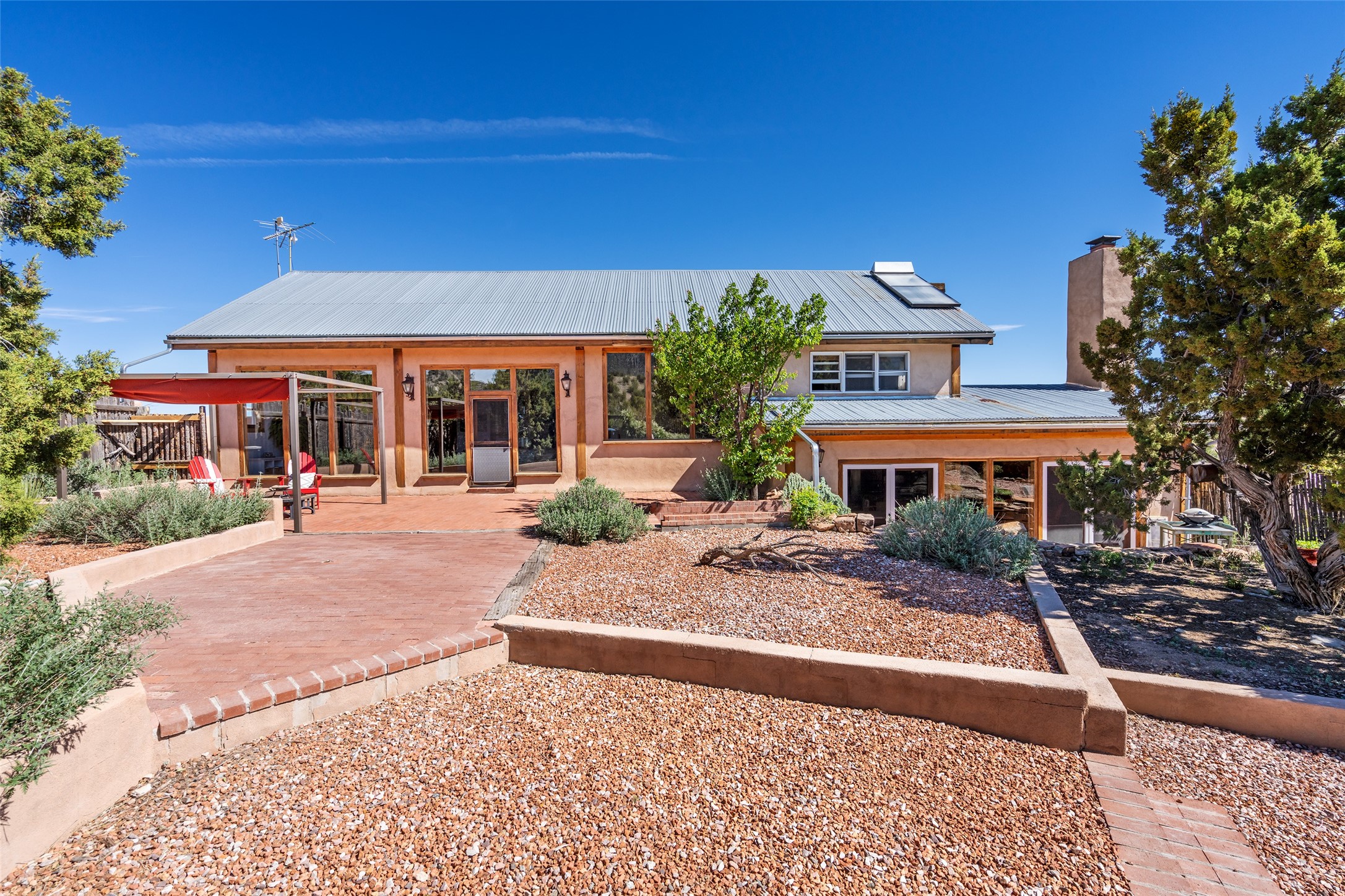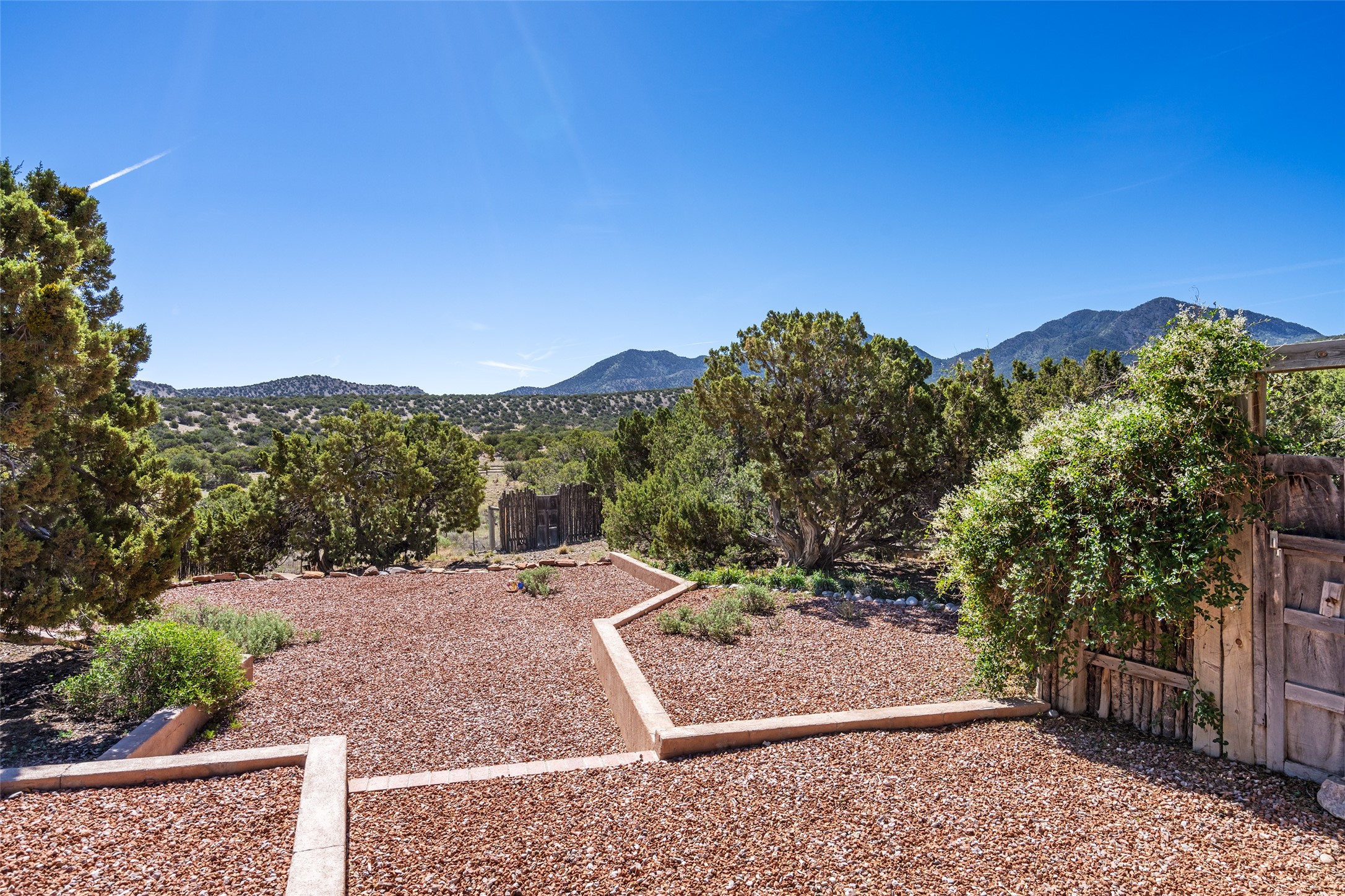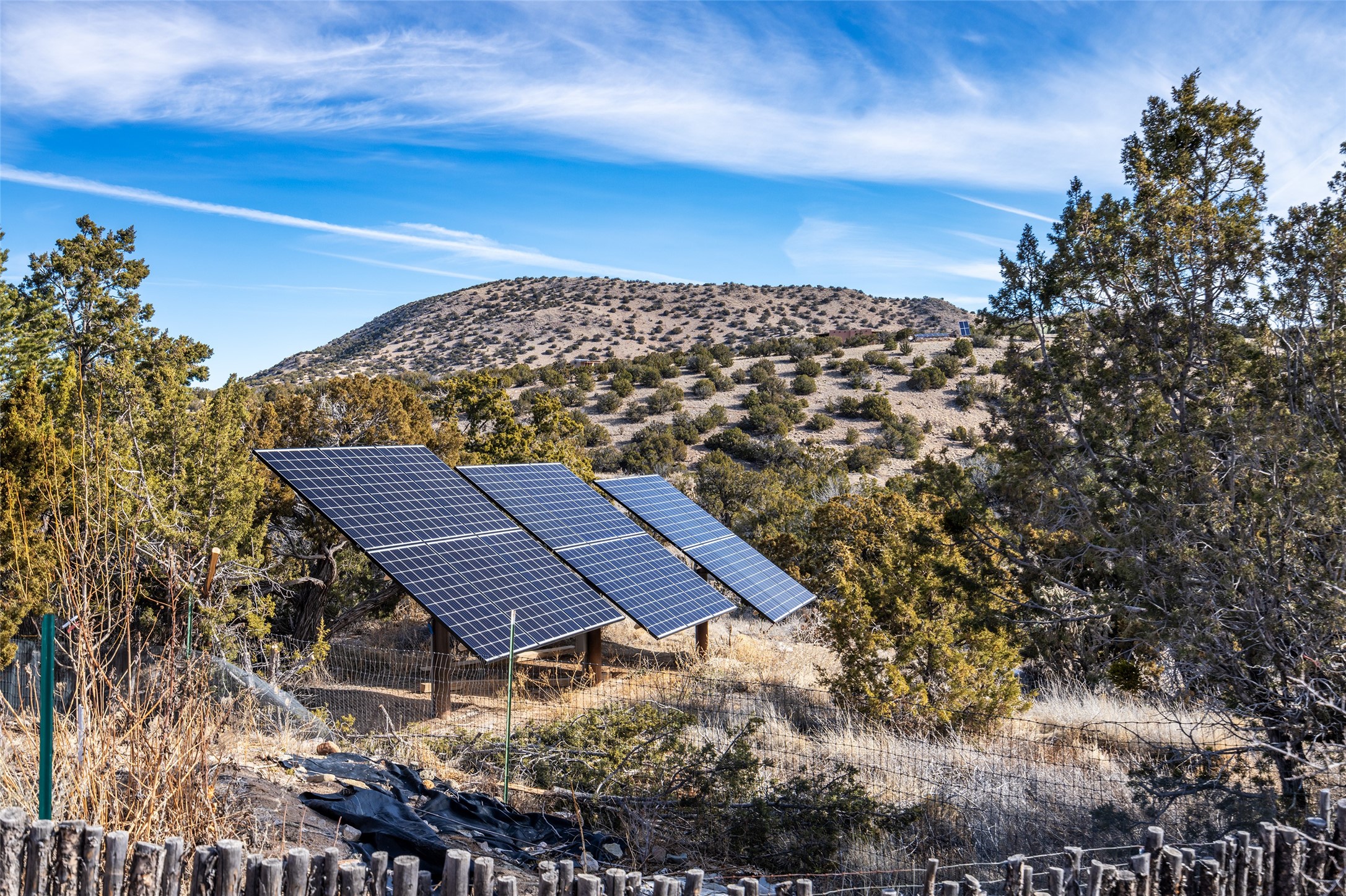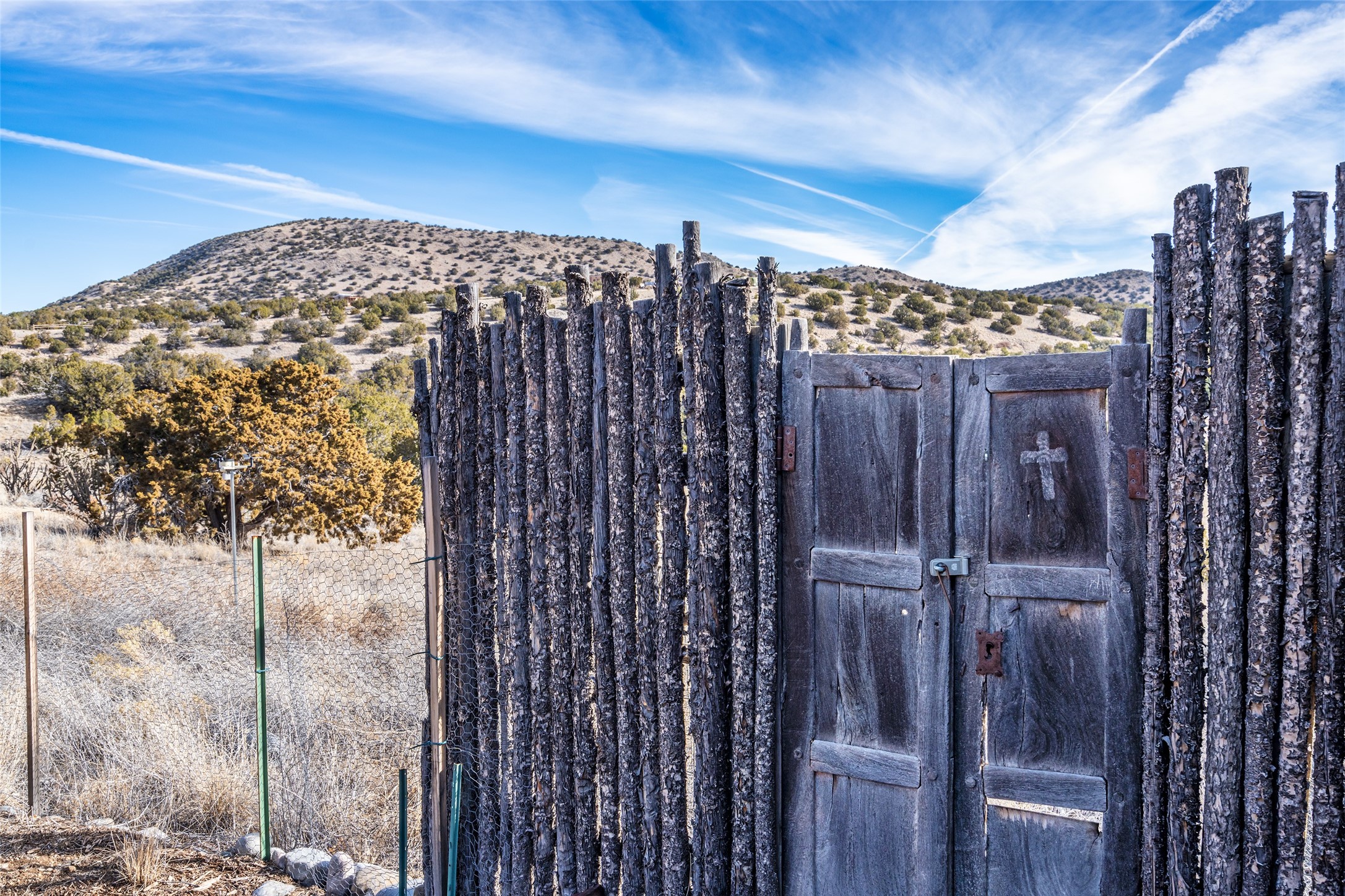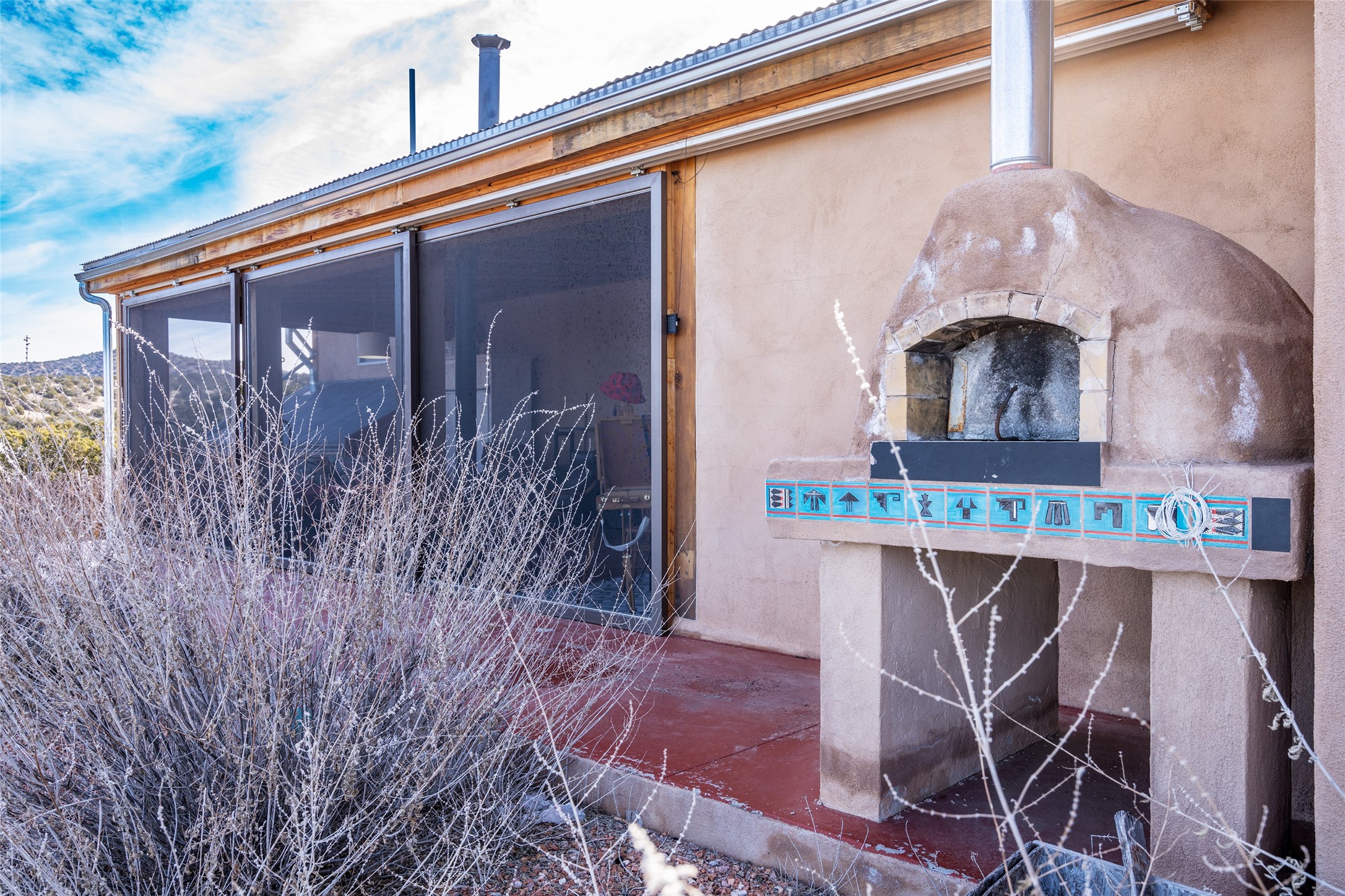 Indulge in a lifestyle where every sunset is a celebration. This real estate gem provides comfortable and luxurious eco off-grid living on 30 acres. The main house with its vaulted ceiling and exposed wood beams in the living/dining area is both light-filled and airy; the large view-filled windows overlooking the fenced courtyard garden also affording passive solar heating. Within this split level house, the gourmet kitchen features a commercial Wolf stove, double ovens, and griddle, granite countertops and hickory cabinets. Situated on the property is a charming fully appointed casita, providing a private retreat for guests. For those with a passion for recreational vehicles, this property goes above and beyond with its dedicated RV garage, and your very own service pit. The RV garage also includes a spacious studio, offering a multifunctional space that can be customized to suit your craft. Whether you envision it as an art studio, or a personal gym, the possibilities are endless. Other features include a fenced organic garden with raised beds, private well, new solar system, and heavy duty generator- making off-grid living easy. Horses are allowed and a fenced corral and water are in place. Situated half-way between Santa Fe and Albuquerque, don't miss the chance to make this picturesque haven your new home!