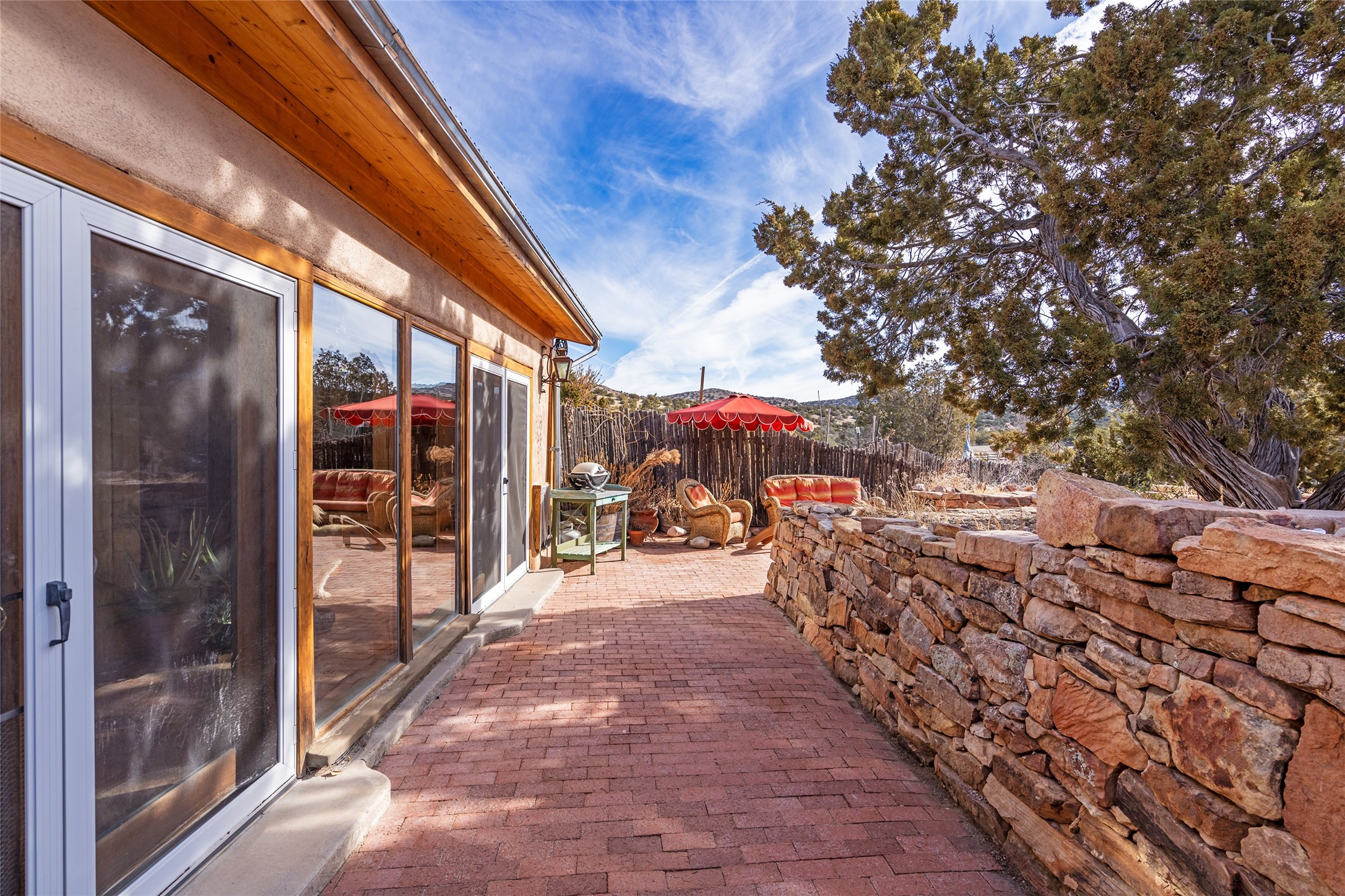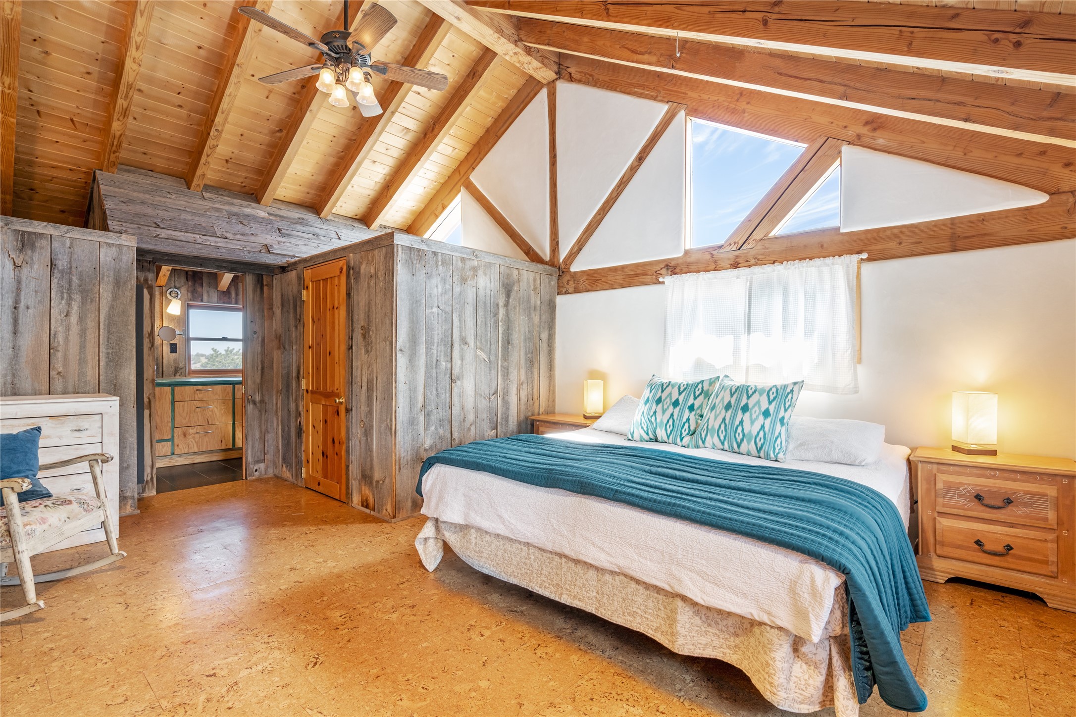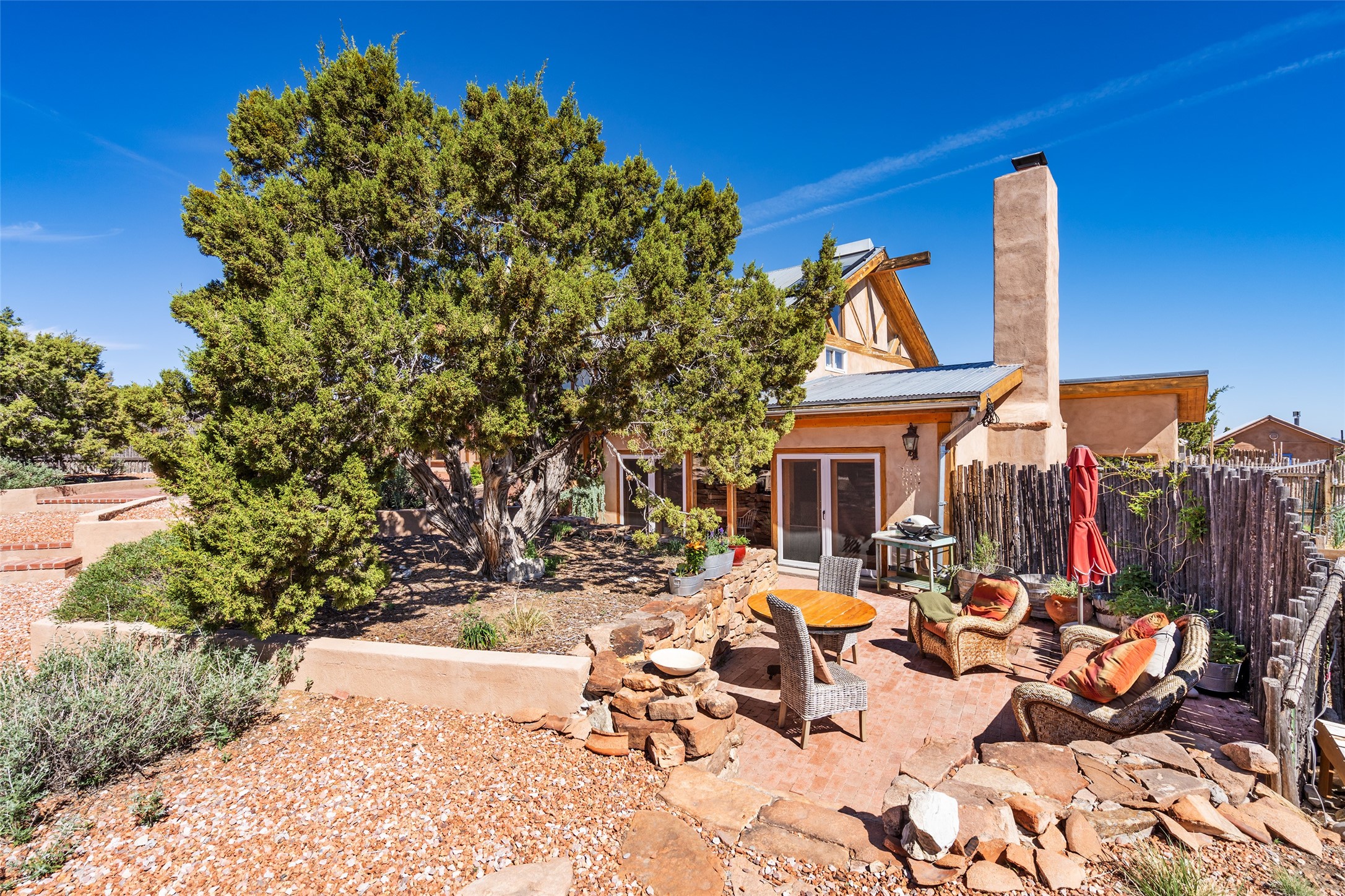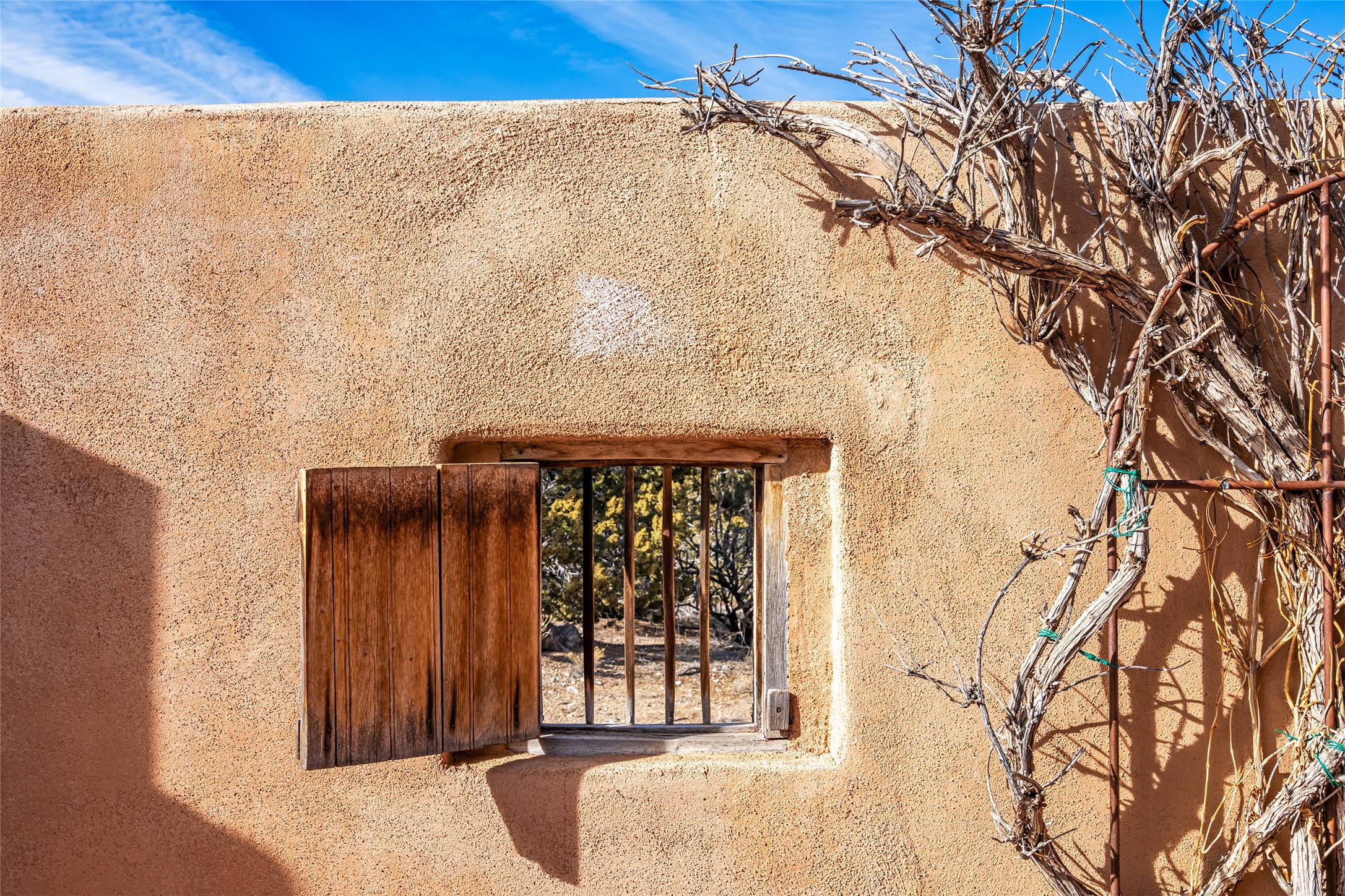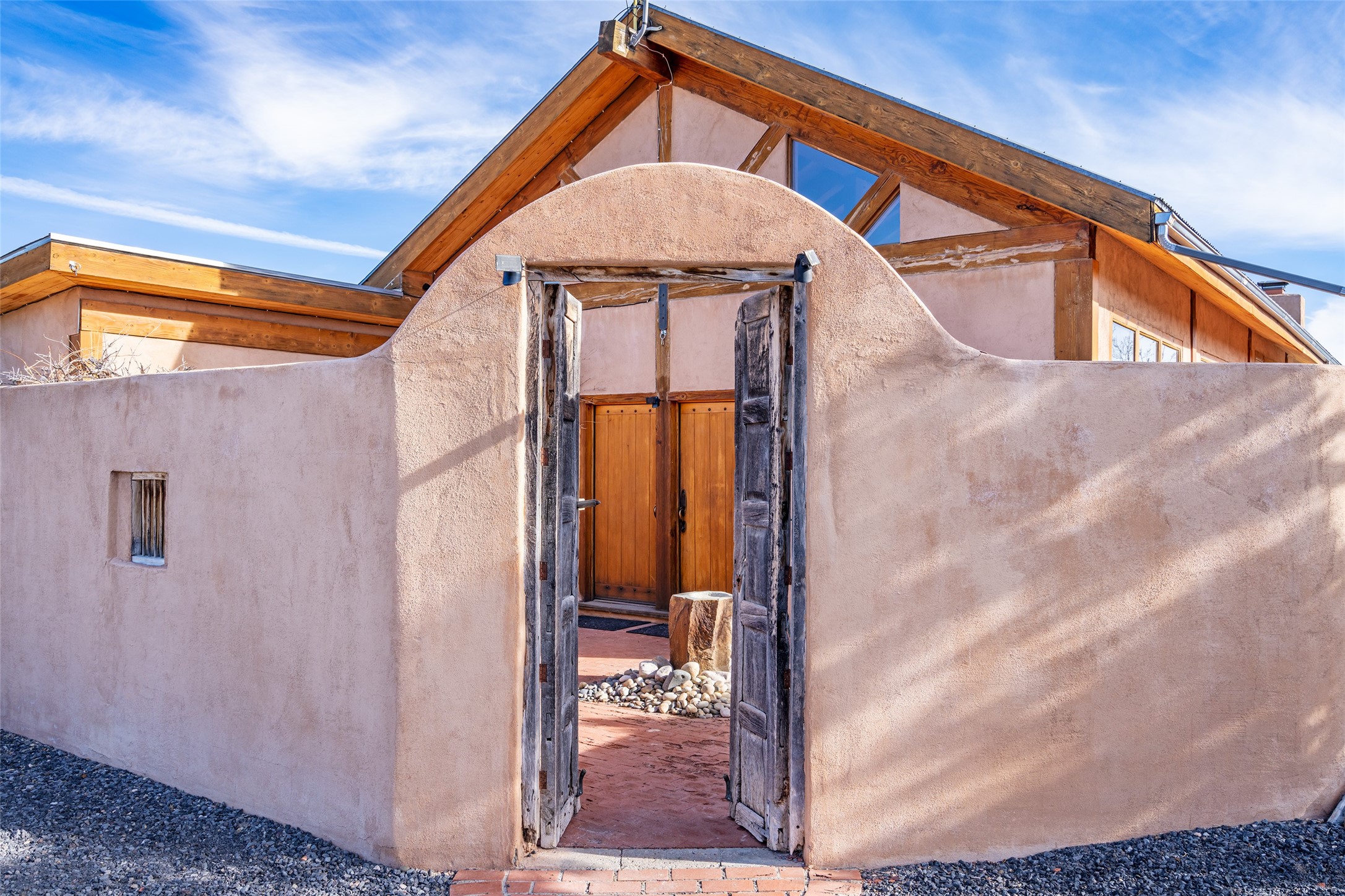 Indulge in a lifestyle where every sunset is a celebration. This real estate gem provides comfortable and luxurious eco off-grid living on 30 acres. The main house with its vaulted ceiling and exposed wood beams in the living/dining area is both light-filled and airy; the large view-filled windows overlooking the fenced courtyard garden also affording passive solar heating. Within this split level house, the gourmet kitchen features a commercial Wolf stove, double ovens, and griddle, granite countertops and hickory cabinets. Situated on the property is a charming fully appointed casita, providing a private retreat for guests. For those with a passion for recreational vehicles, this property goes above and beyond with its dedicated RV garage, and your very own service pit. The RV garage also includes a spacious studio, offering a multifunctional space that can be customized to suit your craft. Whether you envision it as an art studio, or a personal gym, the possibilities are endless. Other features include a fenced organic garden with raised beds, private well, new solar system, and heavy duty generator- making off-grid living easy. Horses are allowed and a fenced corral and water are in place. Situated half-way between Santa Fe and Albuquerque, don't miss the chance to make this picturesque haven your new home!