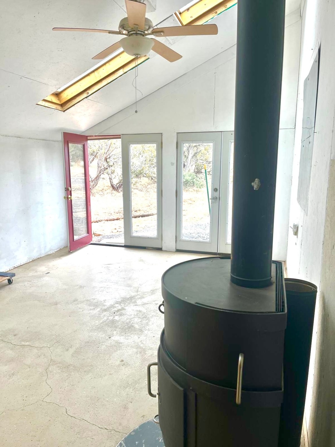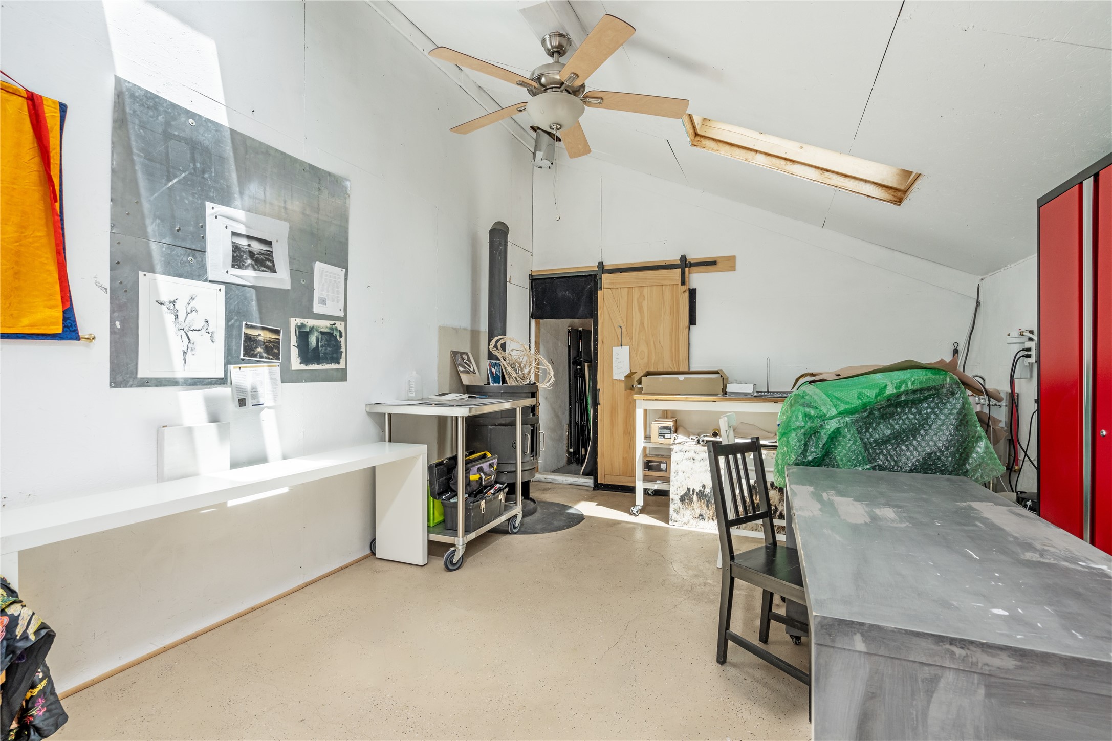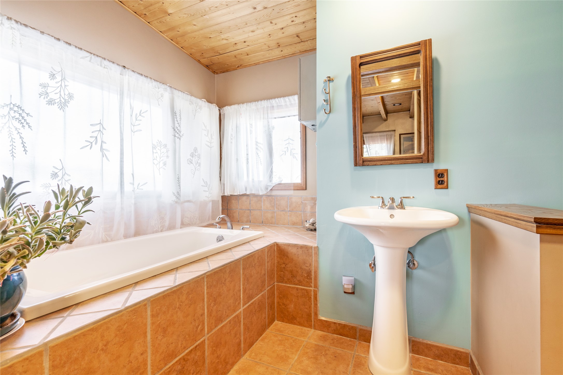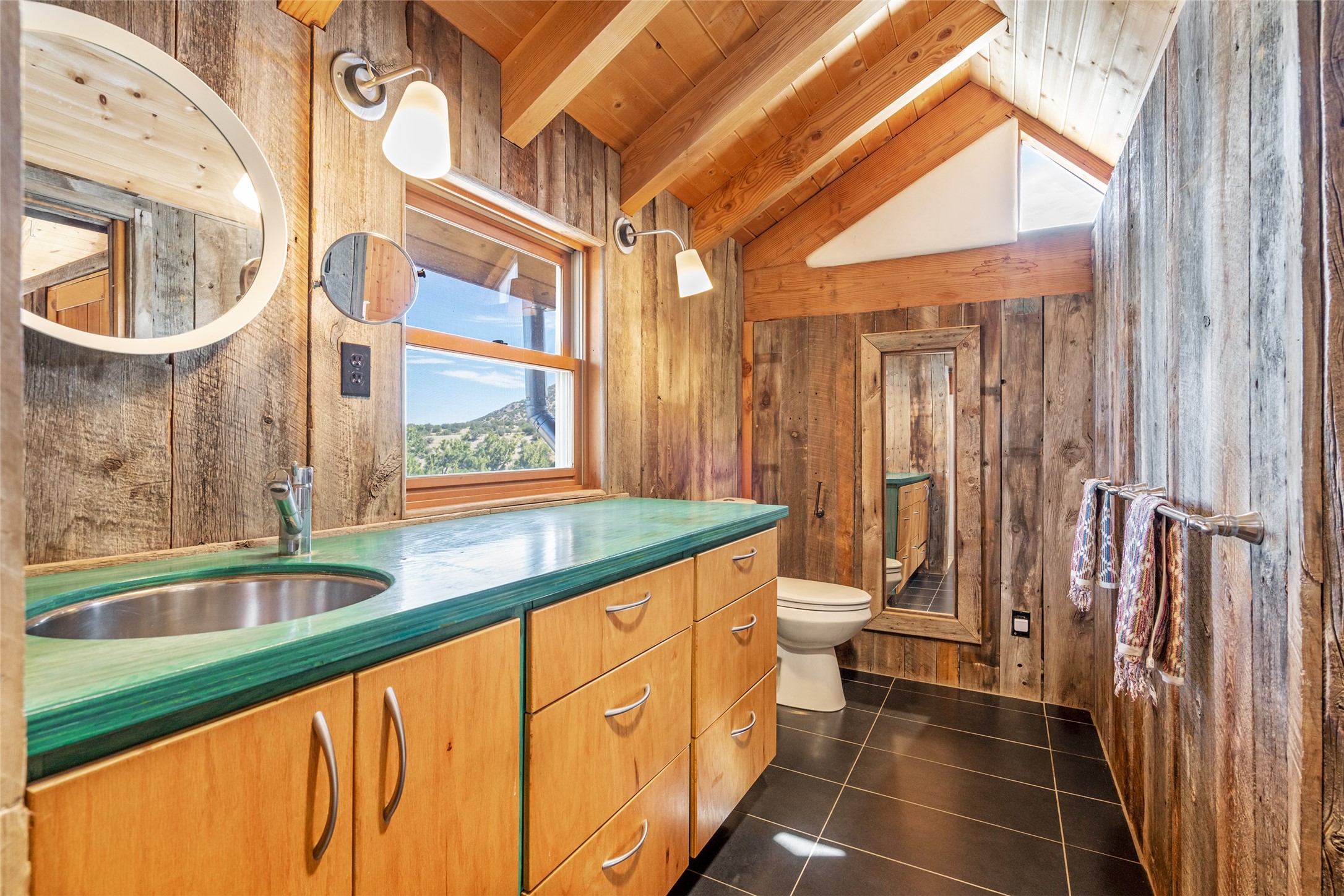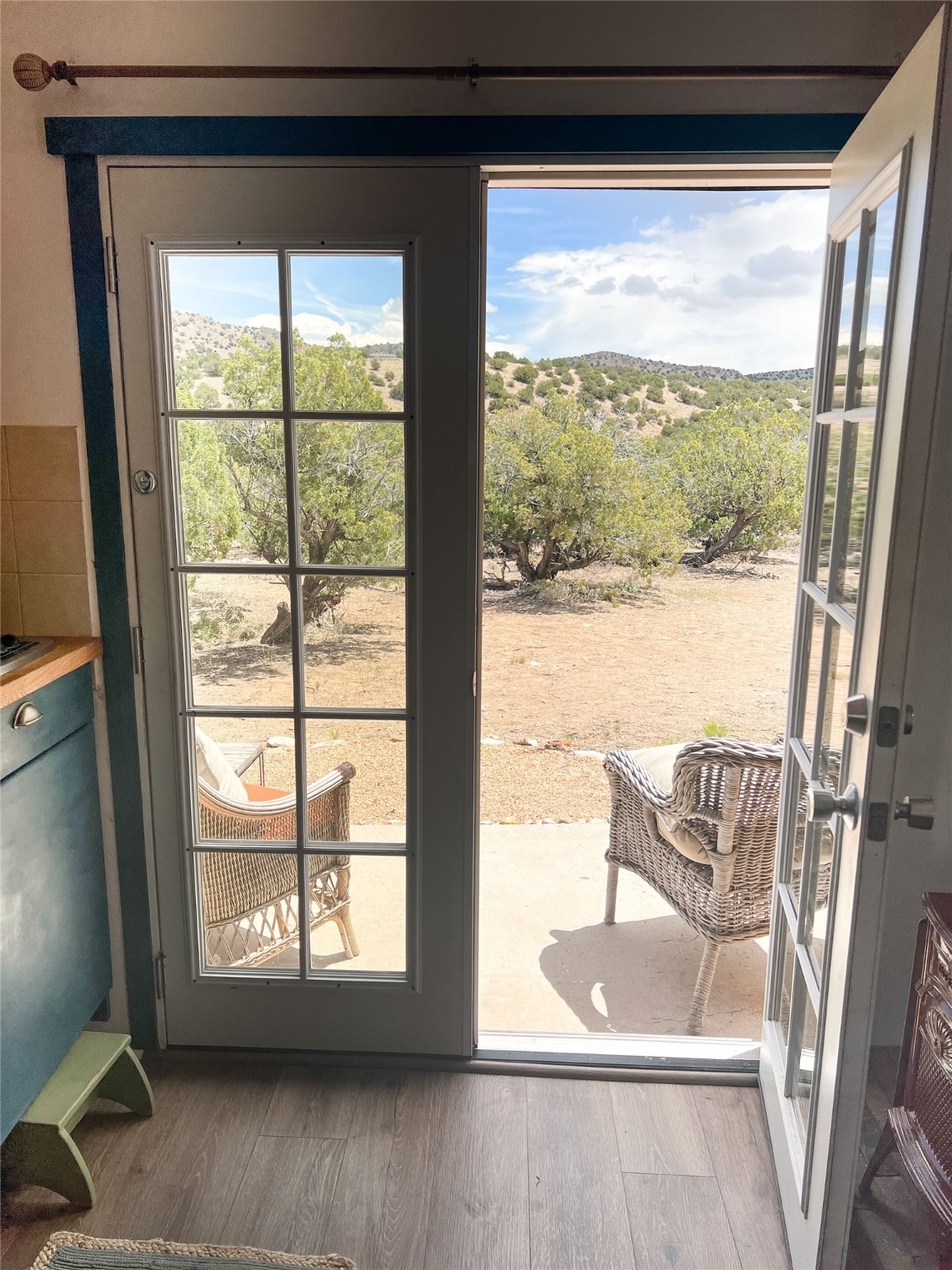 Indulge in a lifestyle where every sunset is a celebration. This real estate gem provides comfortable and luxurious eco off-grid living on 30 acres. The main house with its vaulted ceiling and exposed wood beams in the living/dining area is both light-filled and airy; the large view-filled windows overlooking the fenced courtyard garden also affording passive solar heating. Within this split level house, the gourmet kitchen features a commercial Wolf stove, double ovens, and griddle, granite countertops and hickory cabinets. Situated on the property is a charming fully appointed casita, providing a private retreat for guests. For those with a passion for recreational vehicles, this property goes above and beyond with its dedicated RV garage, and your very own service pit. The RV garage also includes a spacious studio, offering a multifunctional space that can be customized to suit your craft. Whether you envision it as an art studio, or a personal gym, the possibilities are endless. Other features include a fenced organic garden with raised beds, private well, new solar system, and heavy duty generator- making off-grid living easy. Horses are allowed and a fenced corral and water are in place. Situated half-way between Santa Fe and Albuquerque, don't miss the chance to make this picturesque haven your new home!