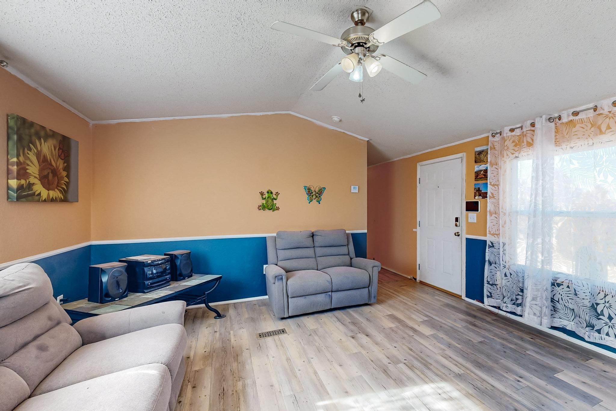 Charming home on a spacious lot! Don't miss out on this opportunity for an open floor plan that offers 3 bedrooms and 2 bathrooms, and many updates such as central air system, new energy efficient windows in the living, primary and third bedroom. The living area is light and bright with plenty of room for seating and entertaining. Enjoy the open kitchen with tons of cabinets and counter space, and eat-in dining area. The primary bedroom is well sized with it's own bathroom- complete with large vanity and garden tub for relaxation. Two secondary bedrooms and full bath to follow! Outside offers lots of room to make your own, With an open patio and plenty of yard out back to enjoy in the cool spring evenings and can accommodate a travel trailer, including a dedicated electrical pole. This home is close to shopping and schools, and ready for it's new owner!