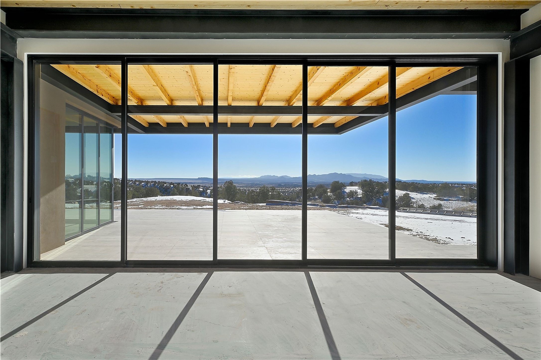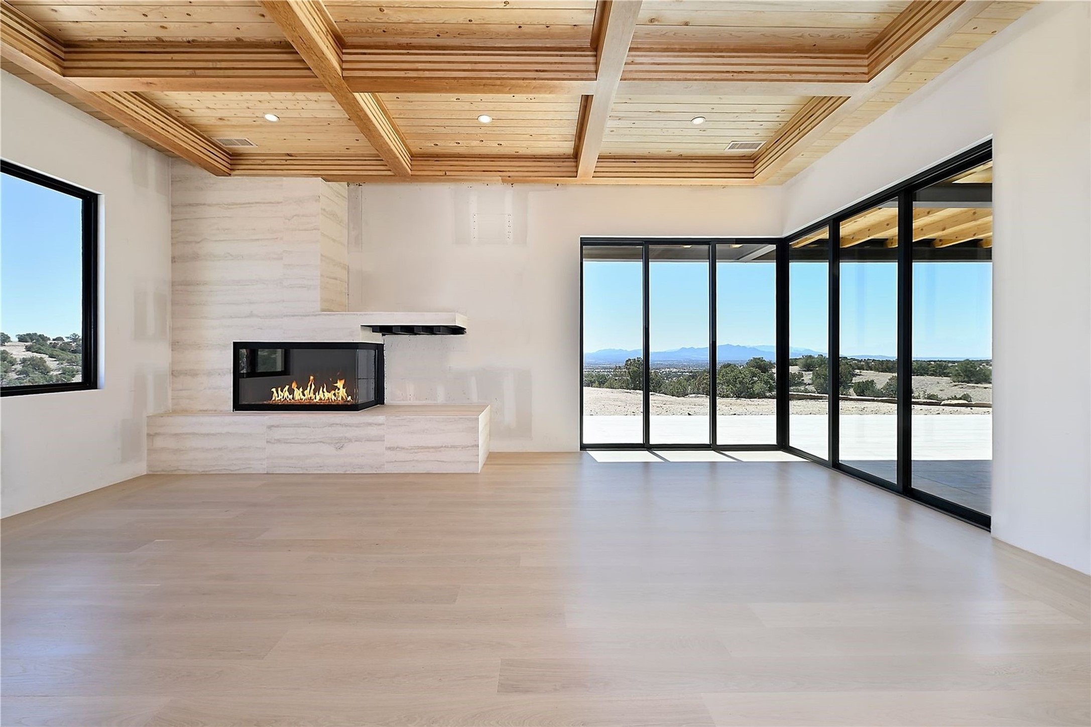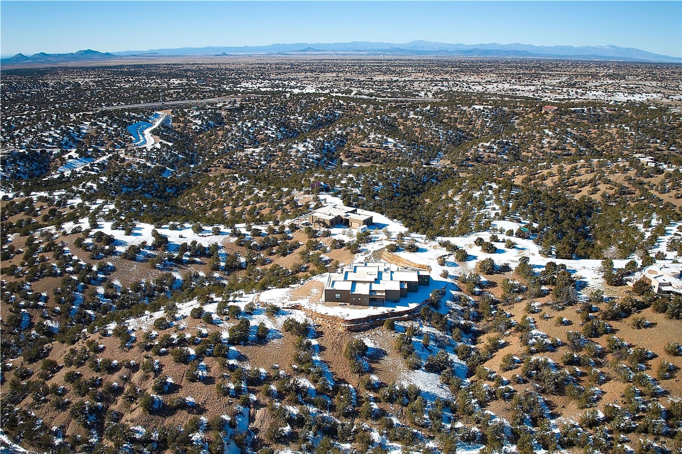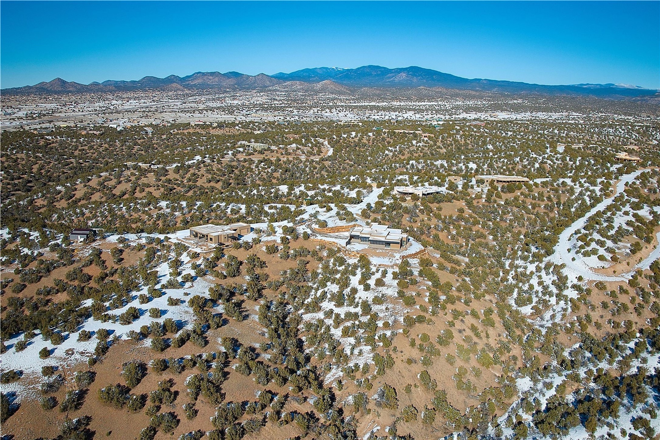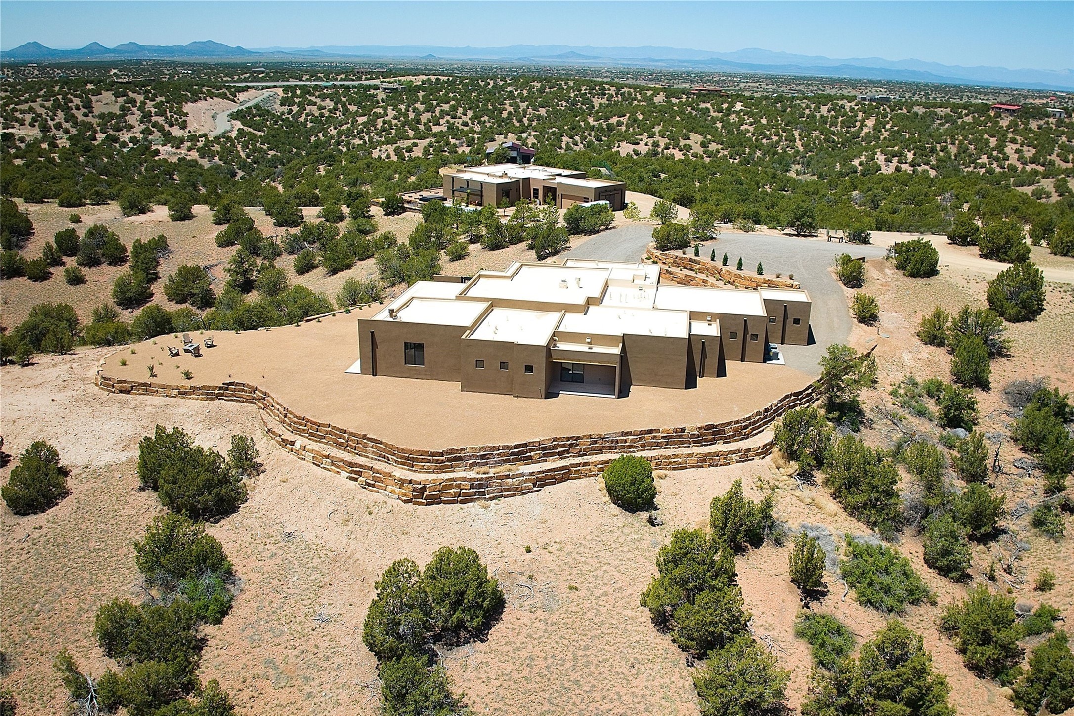 ** 2025 Grand Hacienda Winner!17 Vista Bella will be the #1 Property on the Haciendas 2025 Parade of Homes Tour 8/8-8/10 and 8/15-8/17. Breathtaking views and stellar night skies- this new build is move in ready! Boasting (approx.) 4,400 sq. ft. & nestled on 12.68 acres, this home offers unparalleled views of the Galisteo Basin and mountains. Designed by Mark Schwebel of Big Art Builders, 2024 Parade of Homes for Natural Materials winner, this masterpiece blends cantilevered steel beams, glass, natural wood, and stone to harmonize with its high-desert surroundings. A contemporary design brings the outdoors in, with expansive windows, a stunning outdoor kitchen, and spaces perfect for entertaining. Each element has been meticulously crafted to highlight the surrounding beauty while creating a warm, luxurious environment. The kitchen's stunning centerpiece is crafted from white oak slabs, complemented by Italian stone floors and walls. Counters are custom-milled Brazilian stone, with BlueStar appliances and True refrigeration. Each bathroom is a work of art, clad in exotic stones sourced from Mexico, Turkey, and Italy. Vanities are crafted from exotic hardwoods like West African Padauk and Black Limba, paired with countertops of Persian travertine, Brazilian Taj Mahal, and Namibian granite. The powder room features Italian stone and a unique concrete sink. Refined details include: 7" French white oak floors, Lake Tahoe white fir ceilings, and two showpiece gas fireplaces: a modern shepherd's design in the primary suite and a black granite-clad peninsula in the living room. Take advantage of the unrivaled comfort this home offers with High-efficiency Carrier forced air heating and cooling, radiant heating throughout, and superior insulation with closed-cell spray foam (R60 ceilings, R30 walls). This home is a celebration of luxury, nature, and artistry, a truly one-of-a-kind property that must be experienced.