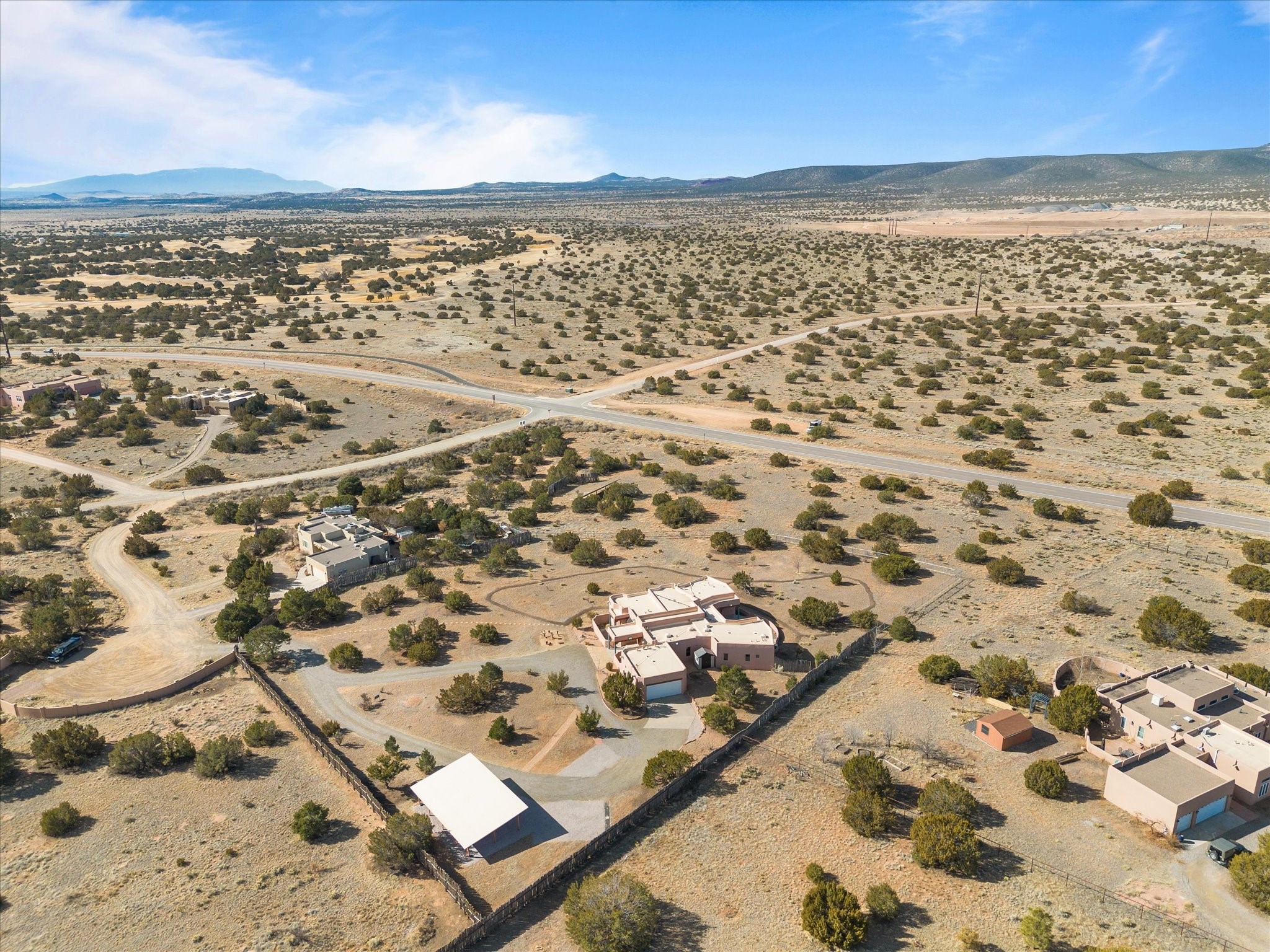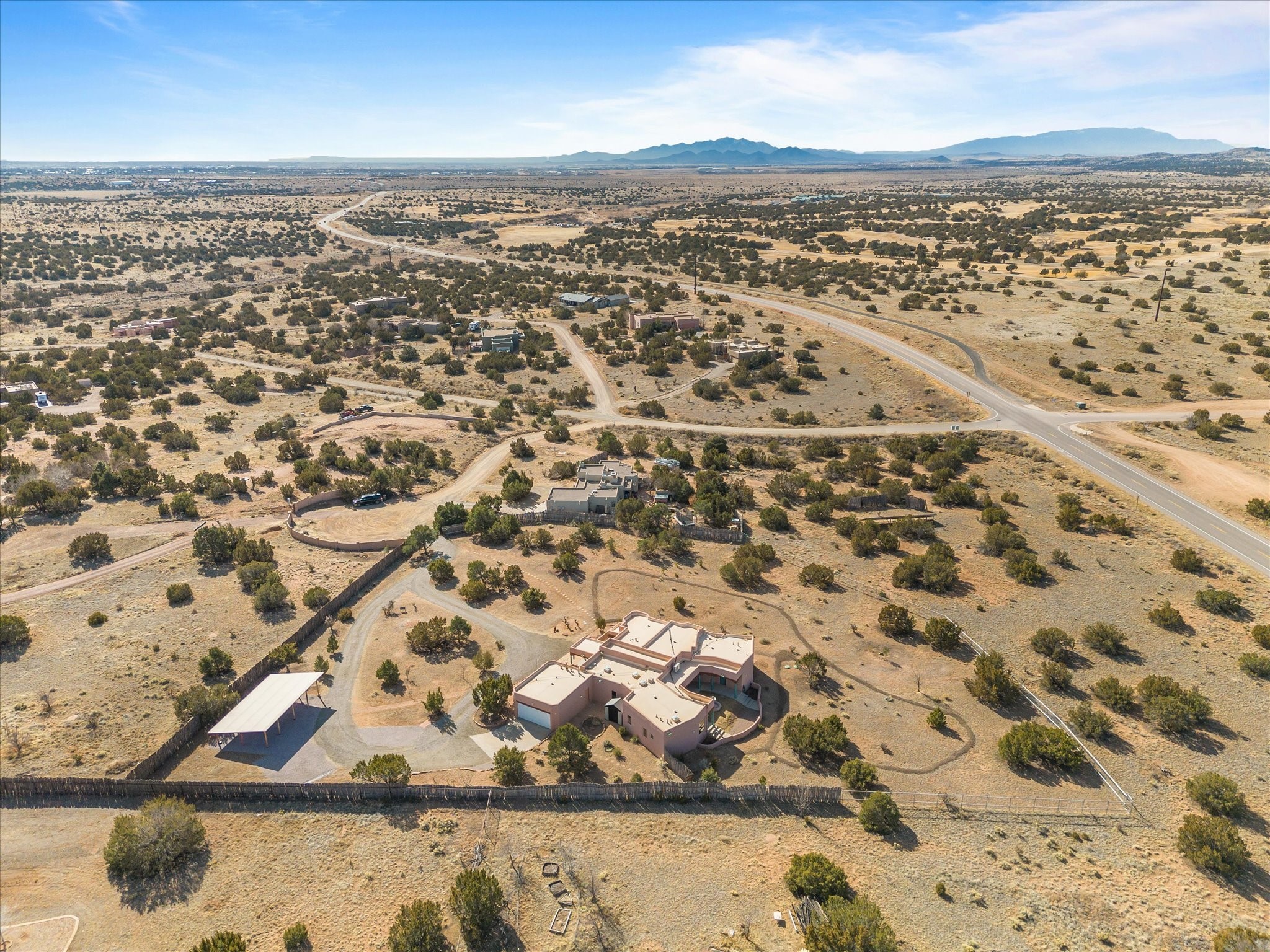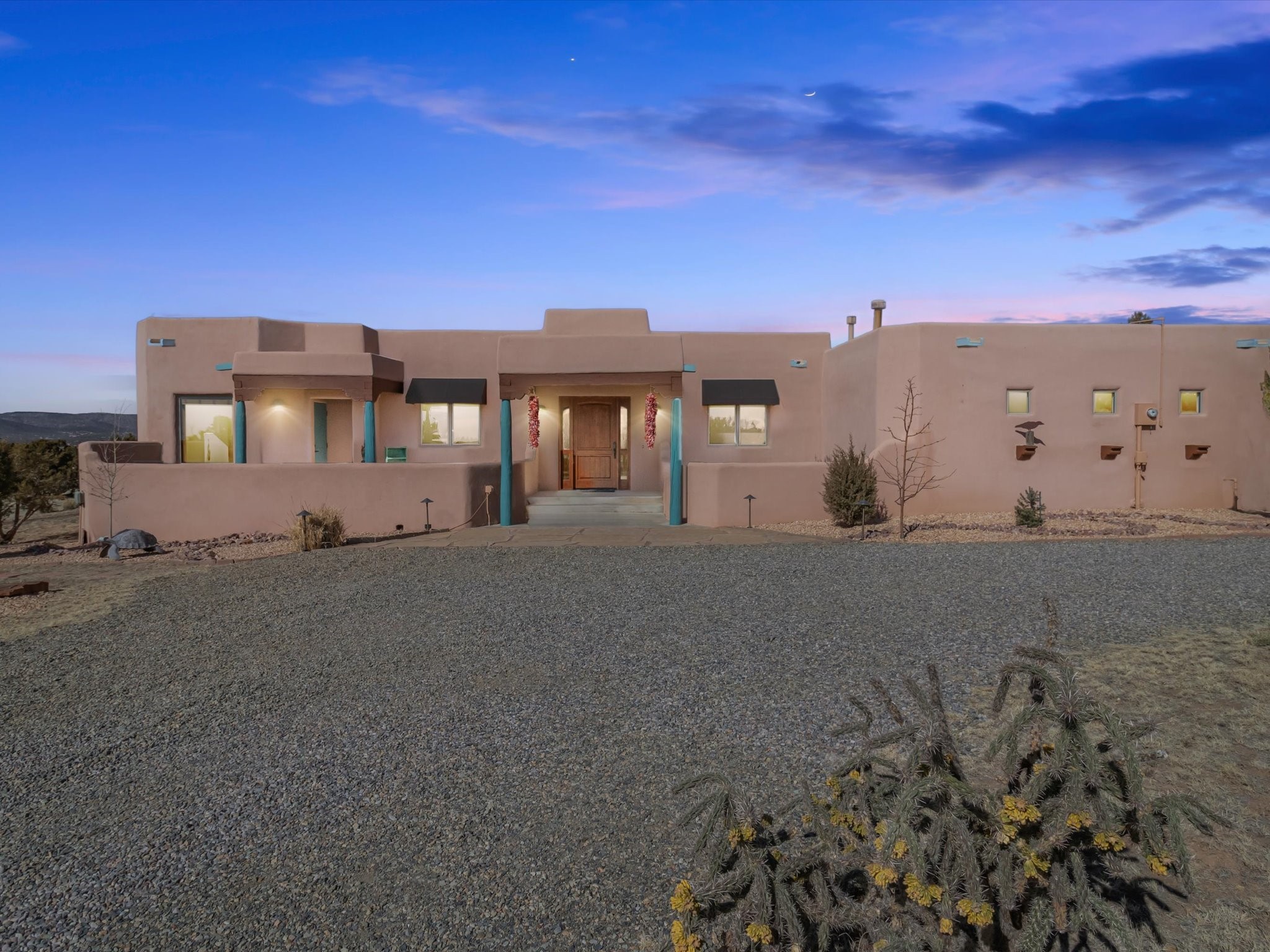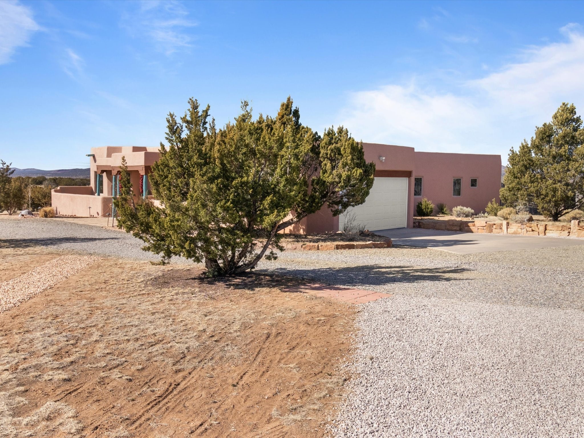 Captivating Pueblo-Style Retreat with Panoramic Views!Nestled on 2.35 acres, this lovely 3-bedroom pueblo-style home is thoughtfully designed to embrace Santa Fe's breathtaking landscapes. From the moment you step inside, the home draws you toward the inviting central patio--an ideal space for gatherings, relaxation, and savoring the vibrant hues of Santa Fe sunsets alongside the tranquil sounds of a water fountain.The high-ceilinged living room, complete with corner fireplace, creates a warm and welcoming atmosphere for entertaining. The kitchen is equipped with stainless steel appliances and has an elongated layout, leading to a charming informal dining area with large windows that perfectly frame the sweeping views of the Sandia, Ortiz, and Cerrillos mountains.The privately situated Primary suite offers a cozy gas fireplace, a spacious walk-in closet, and an En-suite bath featuring a soaking tub and separate shower. A second suite includes a comfortable sitting area with a picture window showcasing stunning views of the Jemez Mountains.Recent updates elevate this home's appeal, including a newer roof, a solar-powered entry gate, skylights, New appliances, mature landscaping with lighting, Automatic drip irrigation, fencing, Newer Boiler, Motordeck garage flooring, New garage door and motor, 220v plug for Electric car charger in the garage, intercom for front entry gate and additional 4 car covered parking. A true Santa Fe sanctuary, this residence blends timeless elegance with modern comforts for a life of beautiful vistas and tranquility.