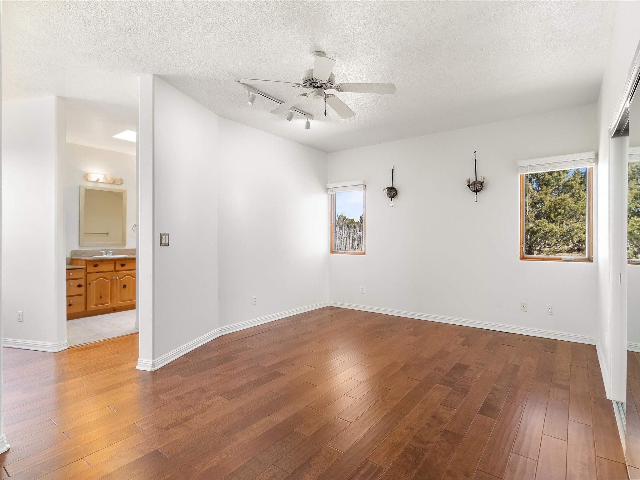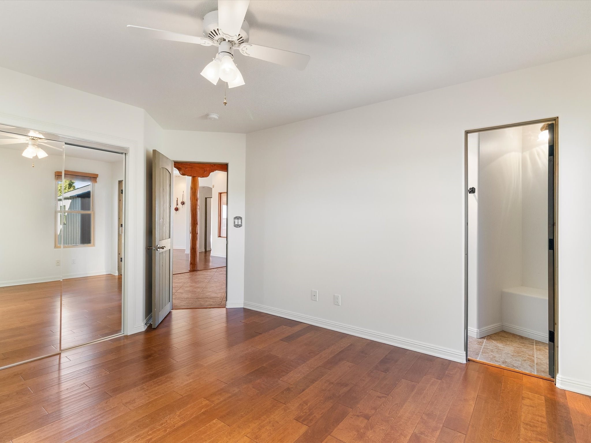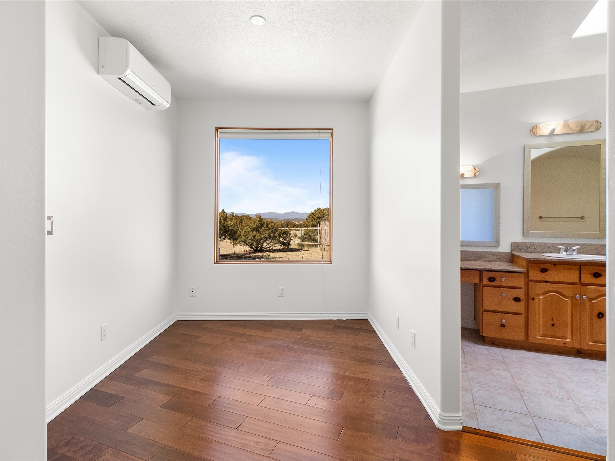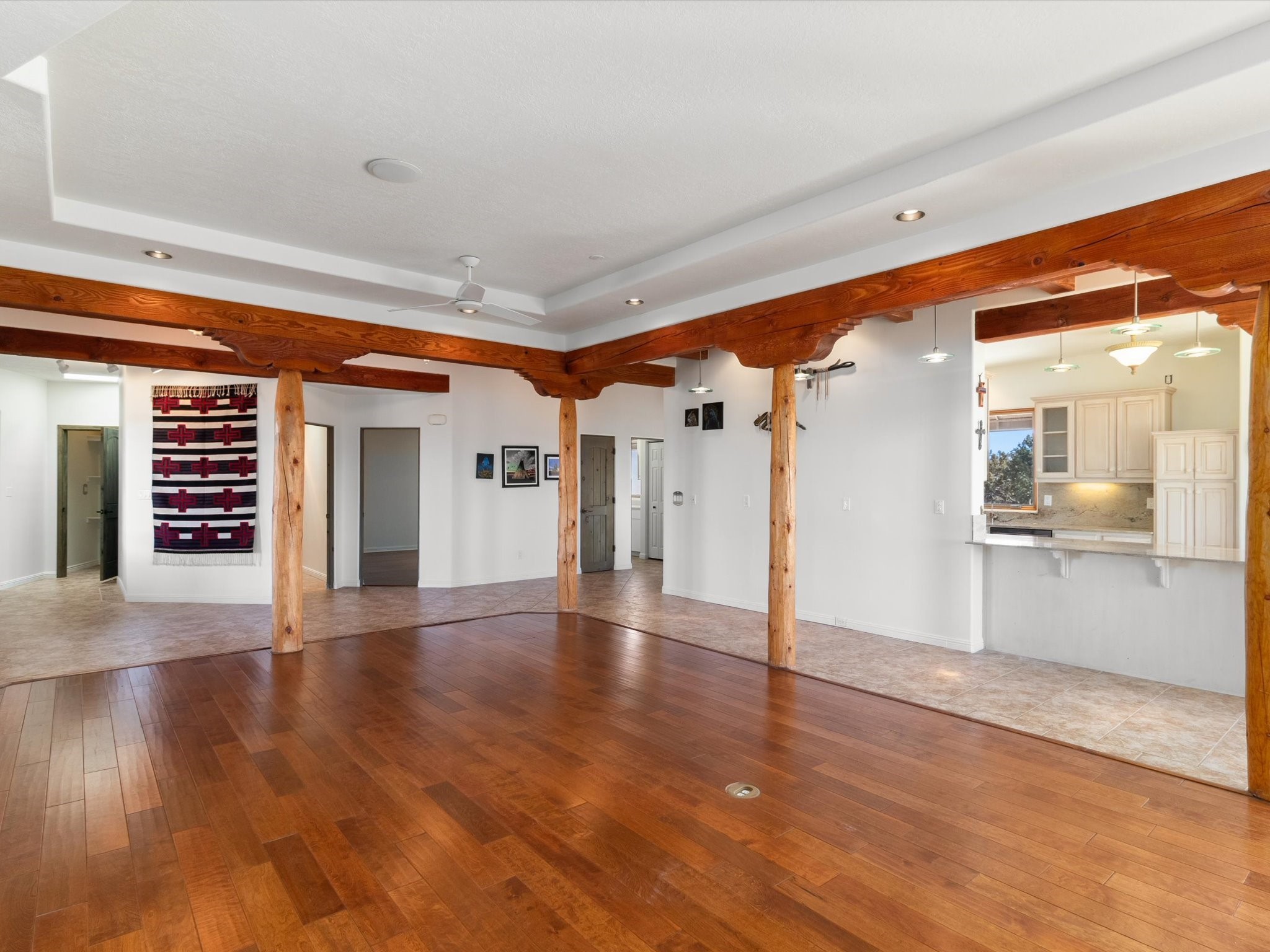 Captivating Pueblo-Style Retreat with Panoramic Views!Nestled on 2.35 acres, this lovely 3-bedroom pueblo-style home is thoughtfully designed to embrace Santa Fe's breathtaking landscapes. From the moment you step inside, the home draws you toward the inviting central patio--an ideal space for gatherings, relaxation, and savoring the vibrant hues of Santa Fe sunsets alongside the tranquil sounds of a water fountain.The high-ceilinged living room, complete with corner fireplace, creates a warm and welcoming atmosphere for entertaining. The kitchen is equipped with stainless steel appliances and has an elongated layout, leading to a charming informal dining area with large windows that perfectly frame the sweeping views of the Sandia, Ortiz, and Cerrillos mountains.The privately situated Primary suite offers a cozy gas fireplace, a spacious walk-in closet, and an En-suite bath featuring a soaking tub and separate shower. A second suite includes a comfortable sitting area with a picture window showcasing stunning views of the Jemez Mountains.Recent updates elevate this home's appeal, including a newer roof, a solar-powered entry gate, skylights, New appliances, mature landscaping with lighting, Automatic drip irrigation, fencing, Newer Boiler, Motordeck garage flooring, New garage door and motor, 220v plug for Electric car charger in the garage, intercom for front entry gate and additional 4 car covered parking. A true Santa Fe sanctuary, this residence blends timeless elegance with modern comforts for a life of beautiful vistas and tranquility.