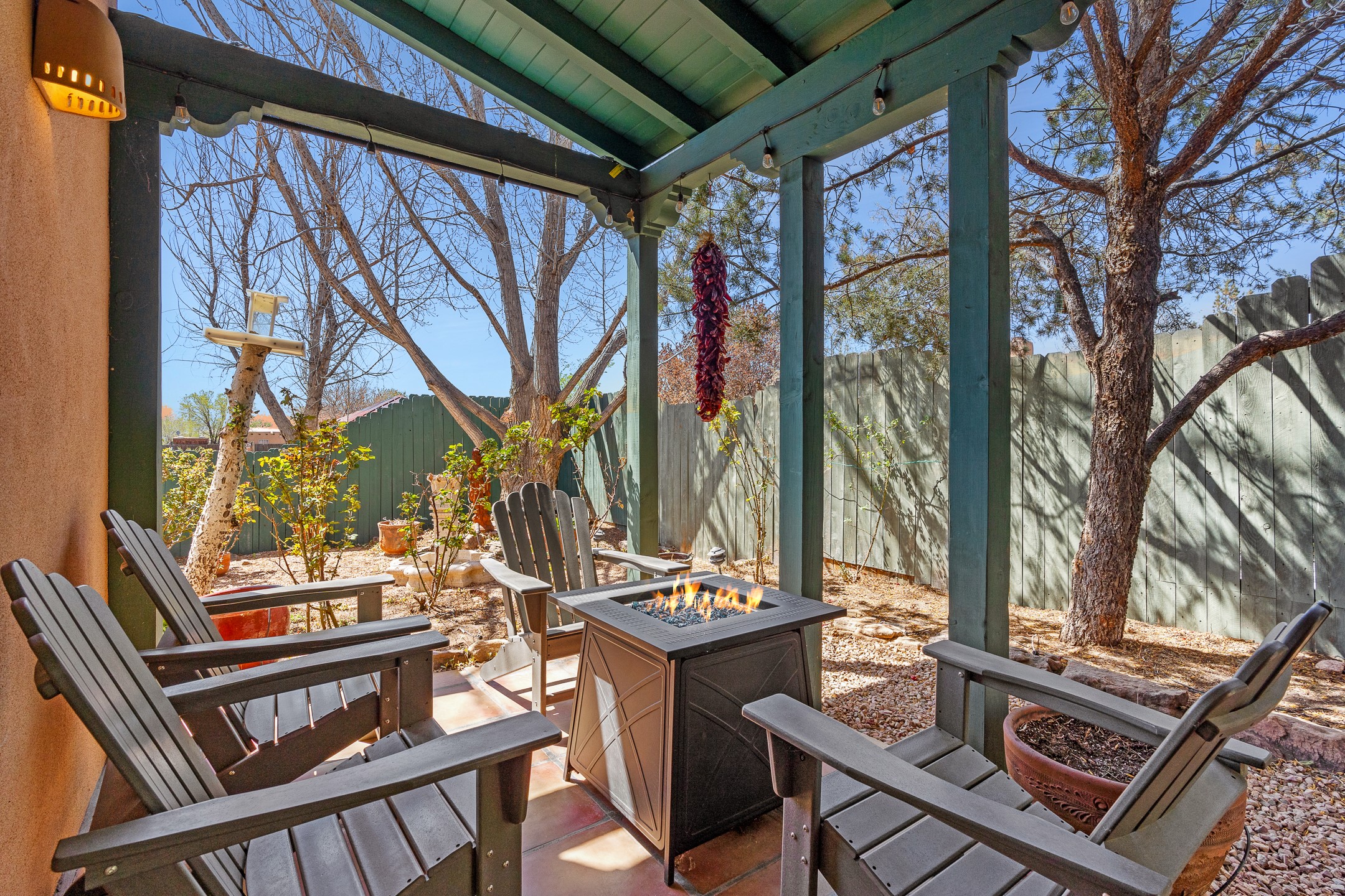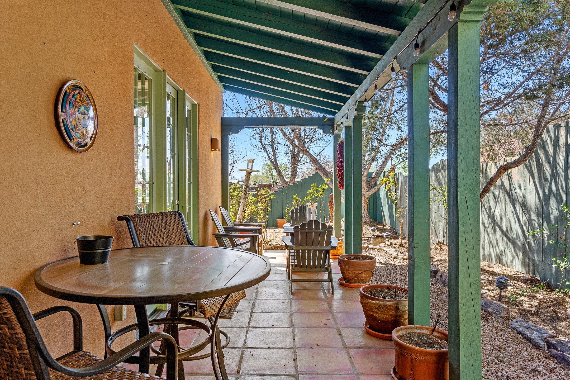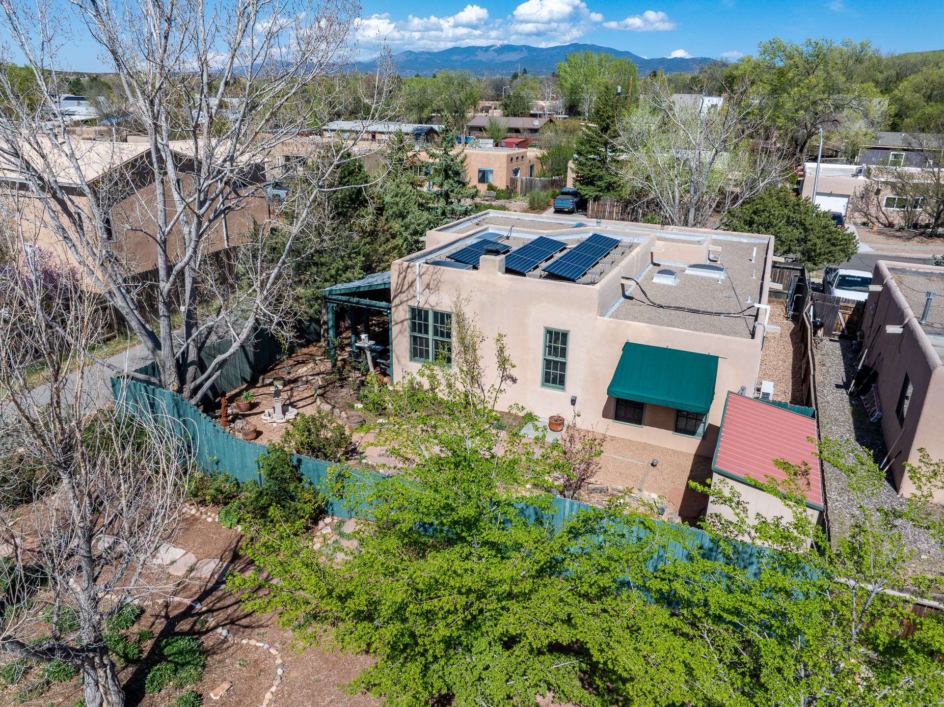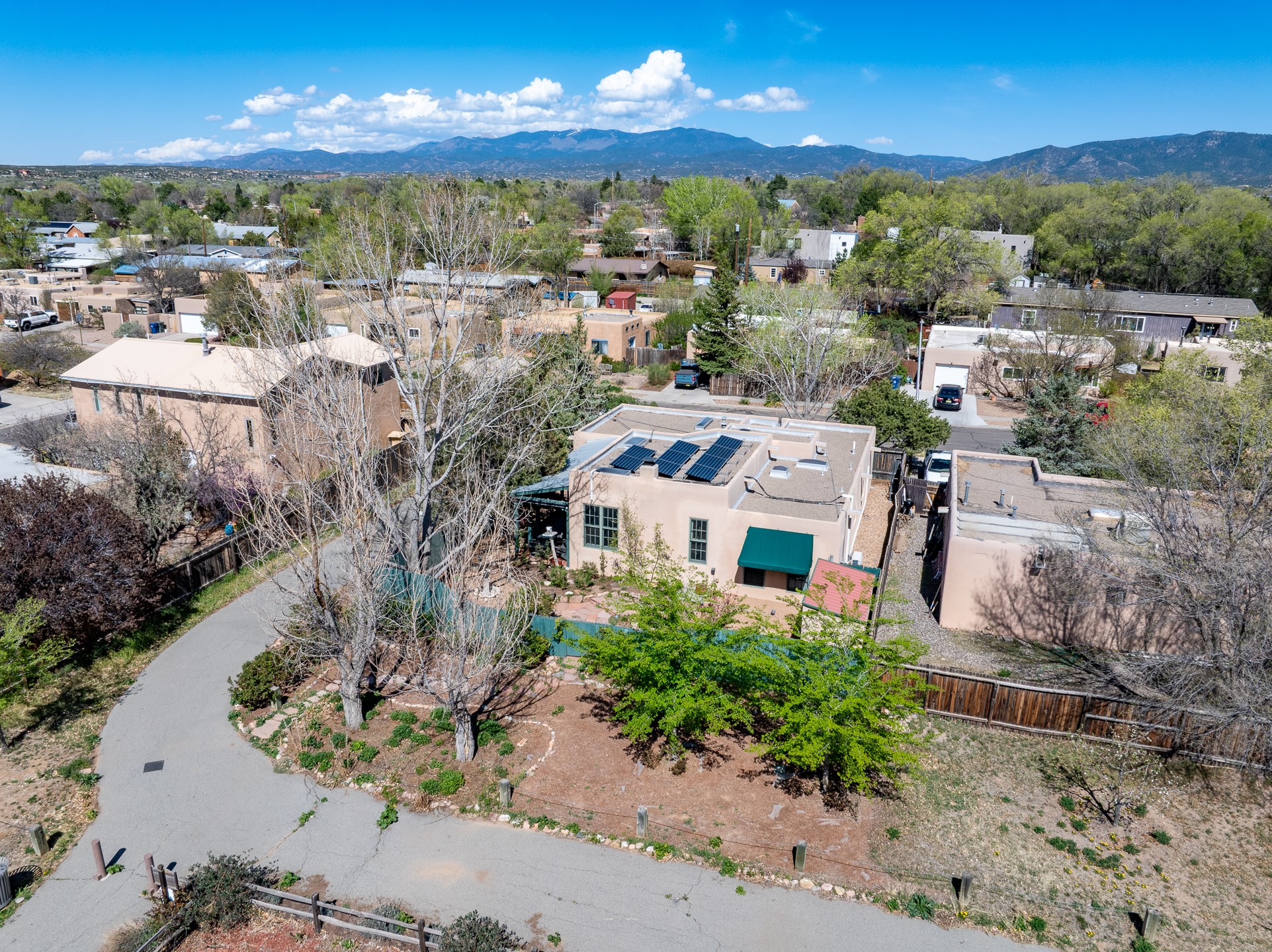 A must-see hidden gem! Tucked away on a peaceful cul-de-sac in the charming Cielo Vista neighborhood, this home blends comfort, style, and sustainability into a warm Southwestern retreat. Surrounded by lush landscaping and private gardens, this beautifully updated 2-bedroom, 2-bath home offers a serene escape just minutes from Santa Fe's historic Plaza, Canyon Road, and the Opera.Inside, you'll find a chef's kitchen with high-end Bosch appliances, custom cabinetry, and a spacious butler's pantry complete with a wet bar, second oven, and full-size fridge--perfect for hosting. The great room features soaring ceilings with exposed vigas, Saltillo tile floors, skylights, and a cozy Kiva fireplace. Both bedrooms are generously sized, including a primary suite with a walk-in closet and en-suite bath. French doors open to a covered patio overlooking a vibrant backyard oasis with a tranquil fountain, bird feeders, and private gate access to a neighborhood park with walking trails, a basketball court, and a community garden.Even better--Casa Carmilita is solar-powered, meaning no electric bill and a greener way to live. Additional features include radiant heat throughout, a brand-new boiler, a full laundry room, off-street parking, and a one-car garage.Casa Carmilita is more than a home--it's your gateway to the Santa Fe lifestyle. Come see it for yourself.