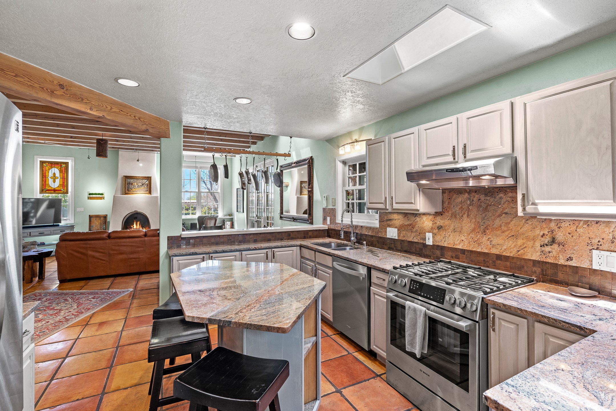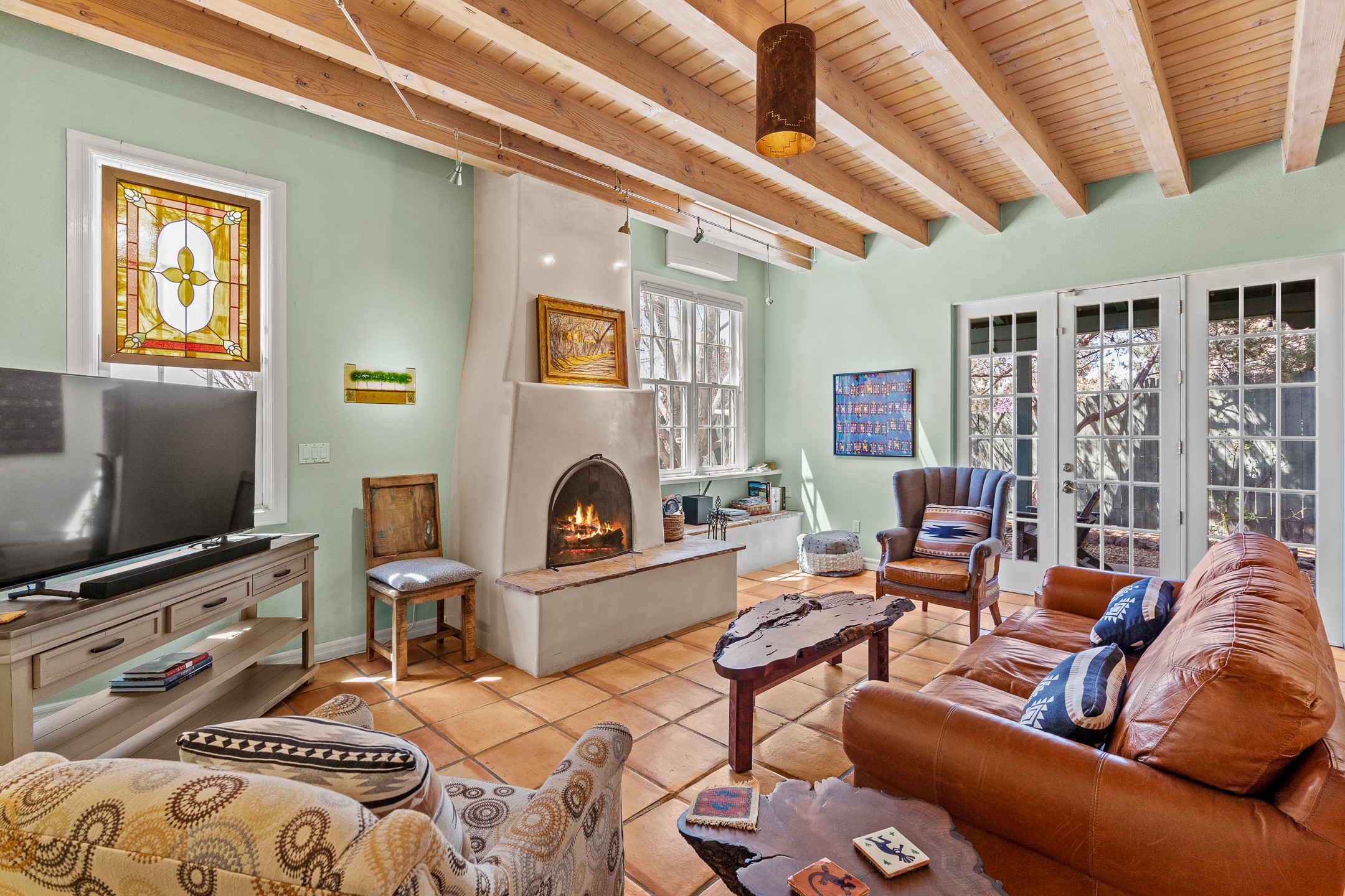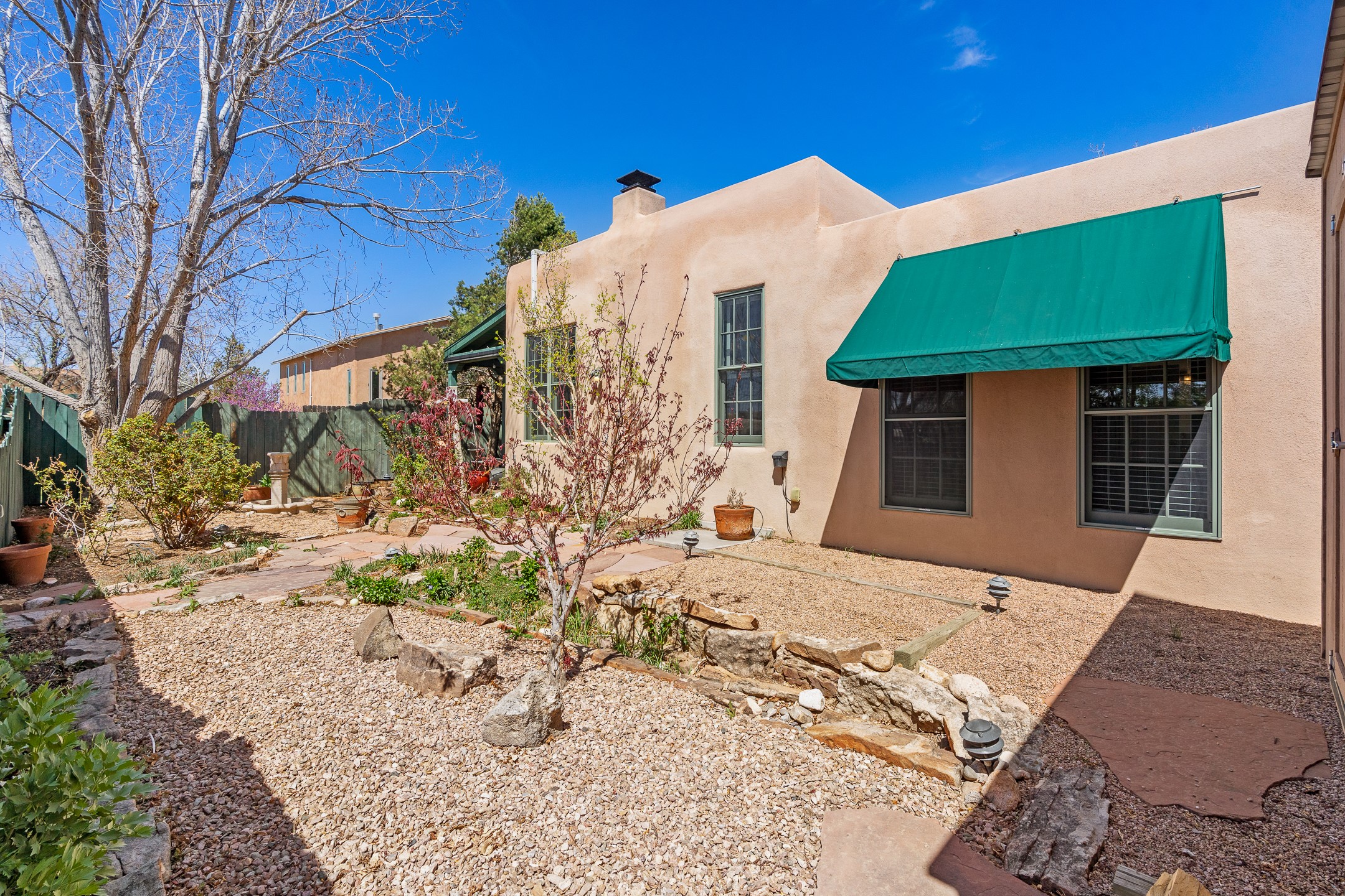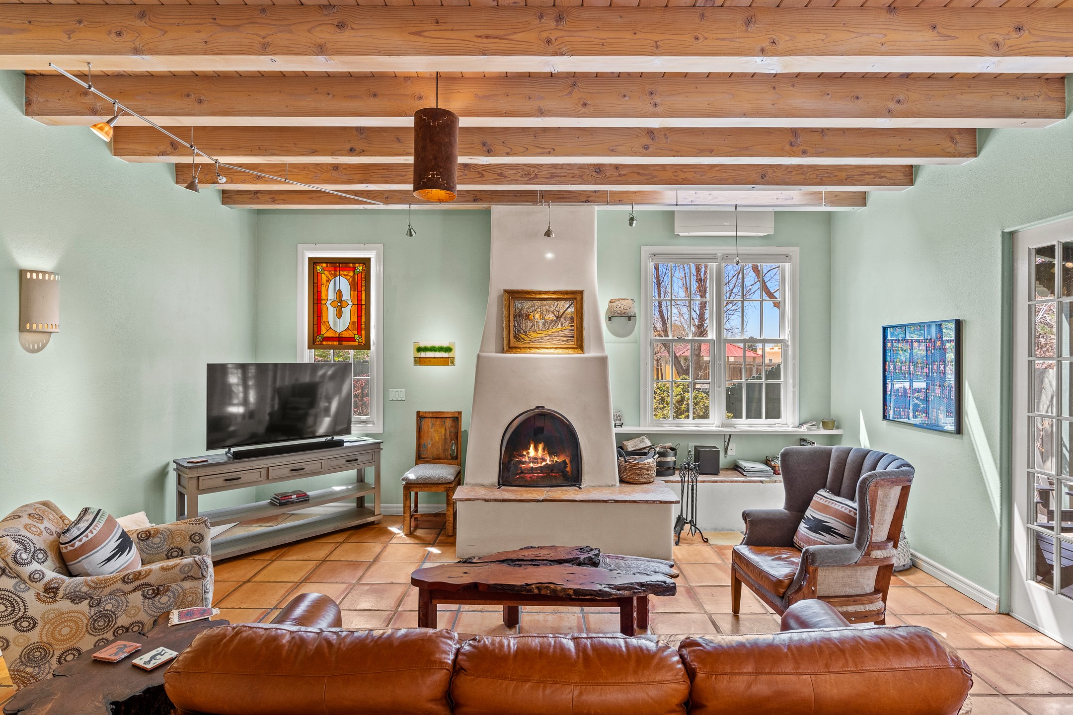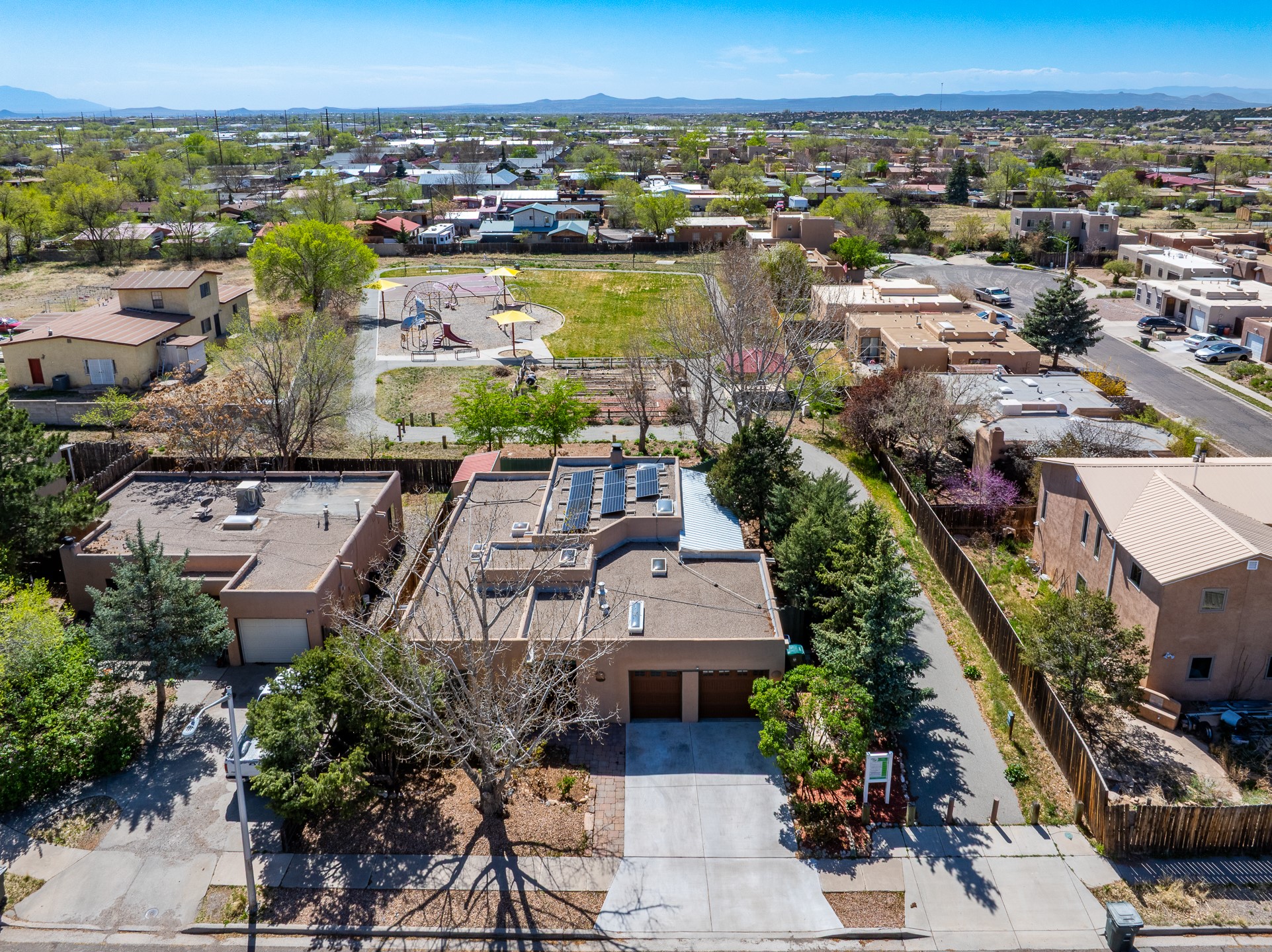 A must-see hidden gem! Tucked away on a peaceful cul-de-sac in the charming Cielo Vista neighborhood, this home blends comfort, style, and sustainability into a warm Southwestern retreat. Surrounded by lush landscaping and private gardens, this beautifully updated 2-bedroom, 2-bath home offers a serene escape just minutes from Santa Fe's historic Plaza, Canyon Road, and the Opera.Inside, you'll find a chef's kitchen with high-end Bosch appliances, custom cabinetry, and a spacious butler's pantry complete with a wet bar, second oven, and full-size fridge--perfect for hosting. The great room features soaring ceilings with exposed vigas, Saltillo tile floors, skylights, and a cozy Kiva fireplace. Both bedrooms are generously sized, including a primary suite with a walk-in closet and en-suite bath. French doors open to a covered patio overlooking a vibrant backyard oasis with a tranquil fountain, bird feeders, and private gate access to a neighborhood park with walking trails, a basketball court, and a community garden.Even better--Casa Carmilita is solar-powered, meaning no electric bill and a greener way to live. Additional features include radiant heat throughout, a brand-new boiler, a full laundry room, off-street parking, and a one-car garage.Casa Carmilita is more than a home--it's your gateway to the Santa Fe lifestyle. Come see it for yourself.